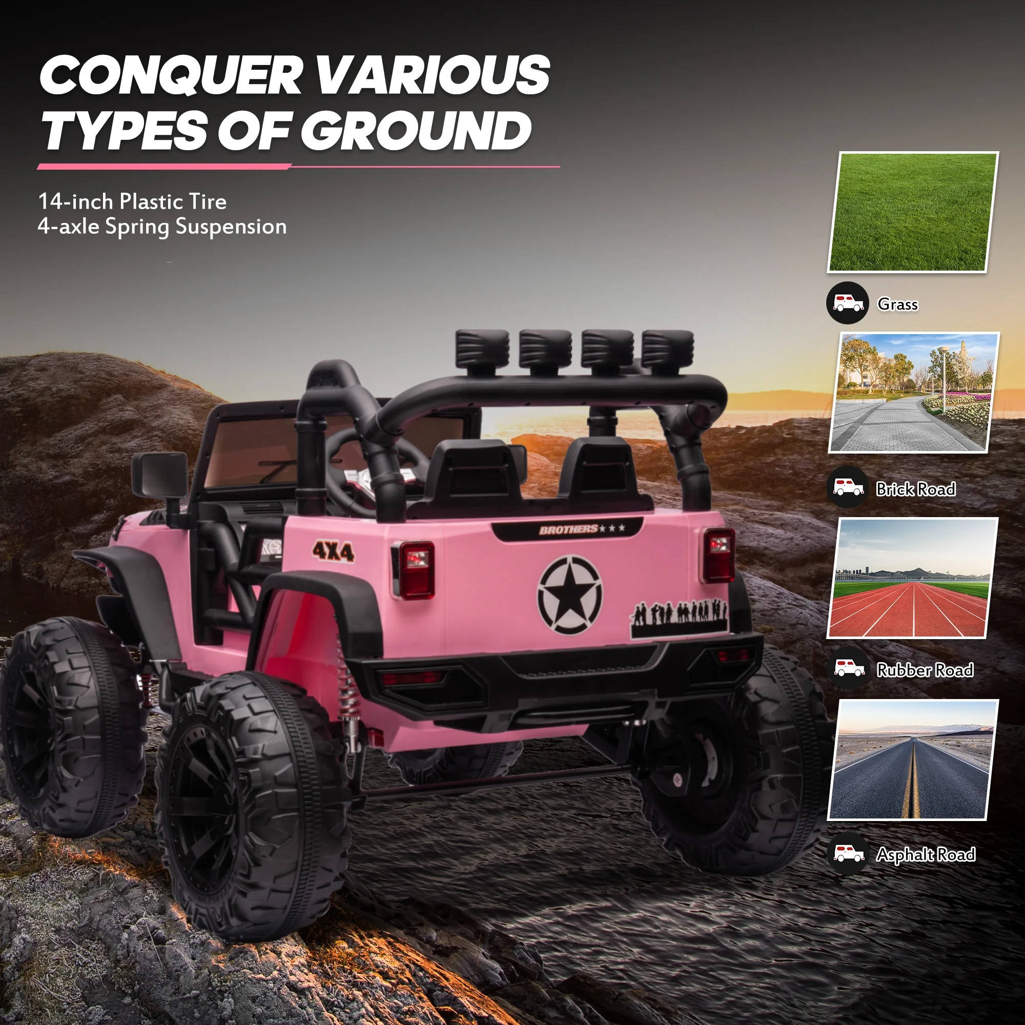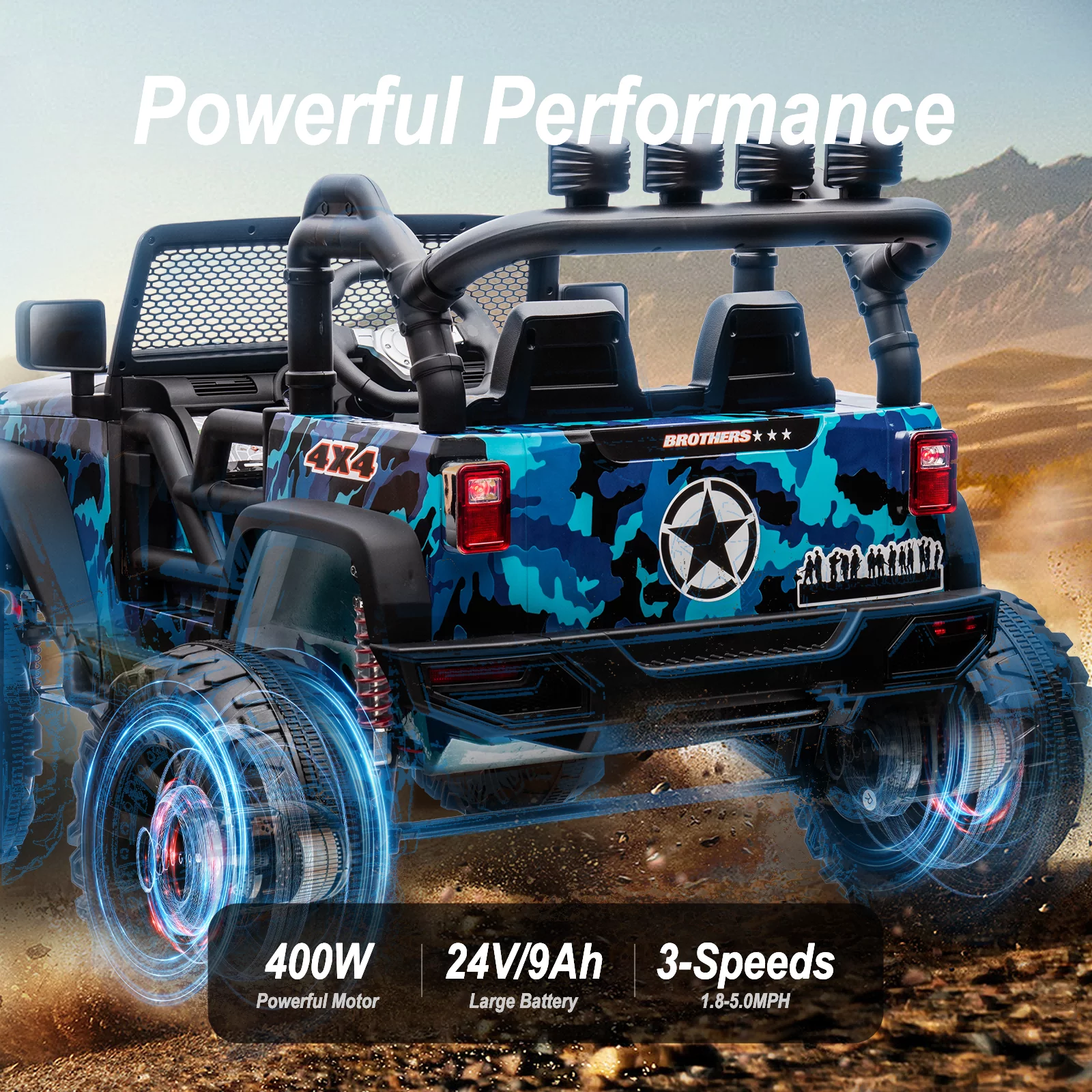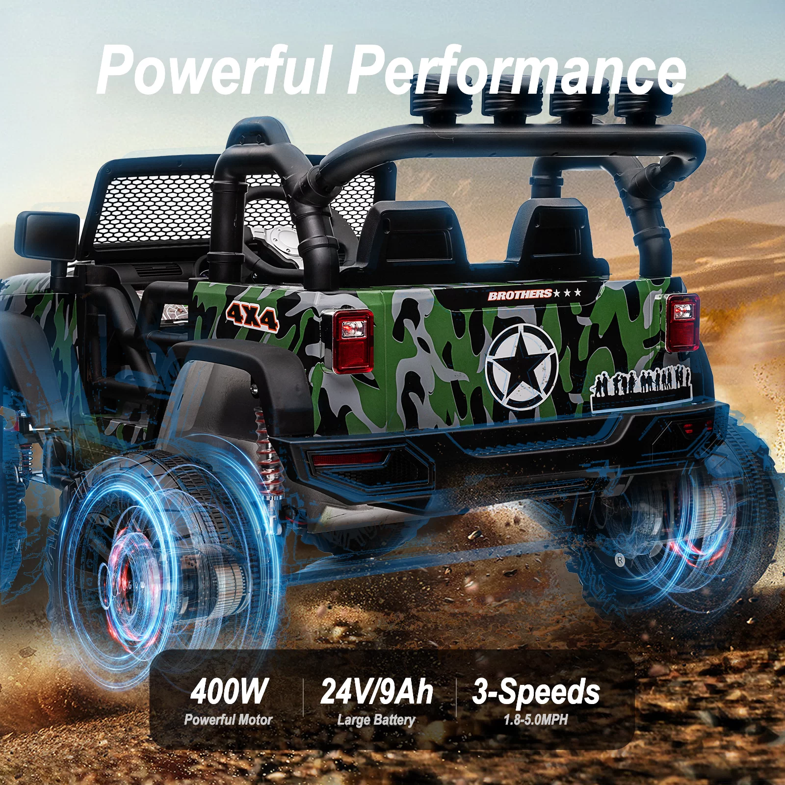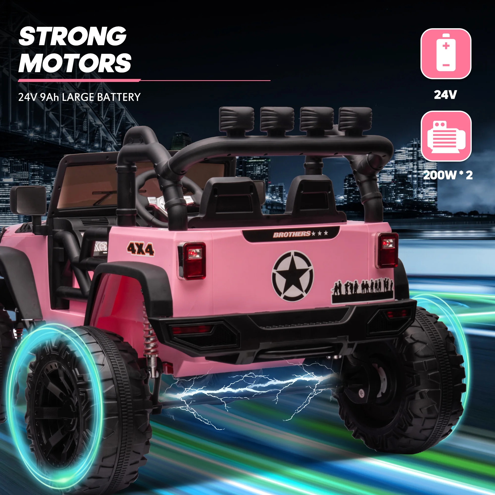 Joywhale 24V Kids Ride on ATV 4WD 2 Seater Quad Easy-Drag 4-Wheeler, with Big Battery, 4x75W Powerful Engine, Metal Suspension, BW-A20s