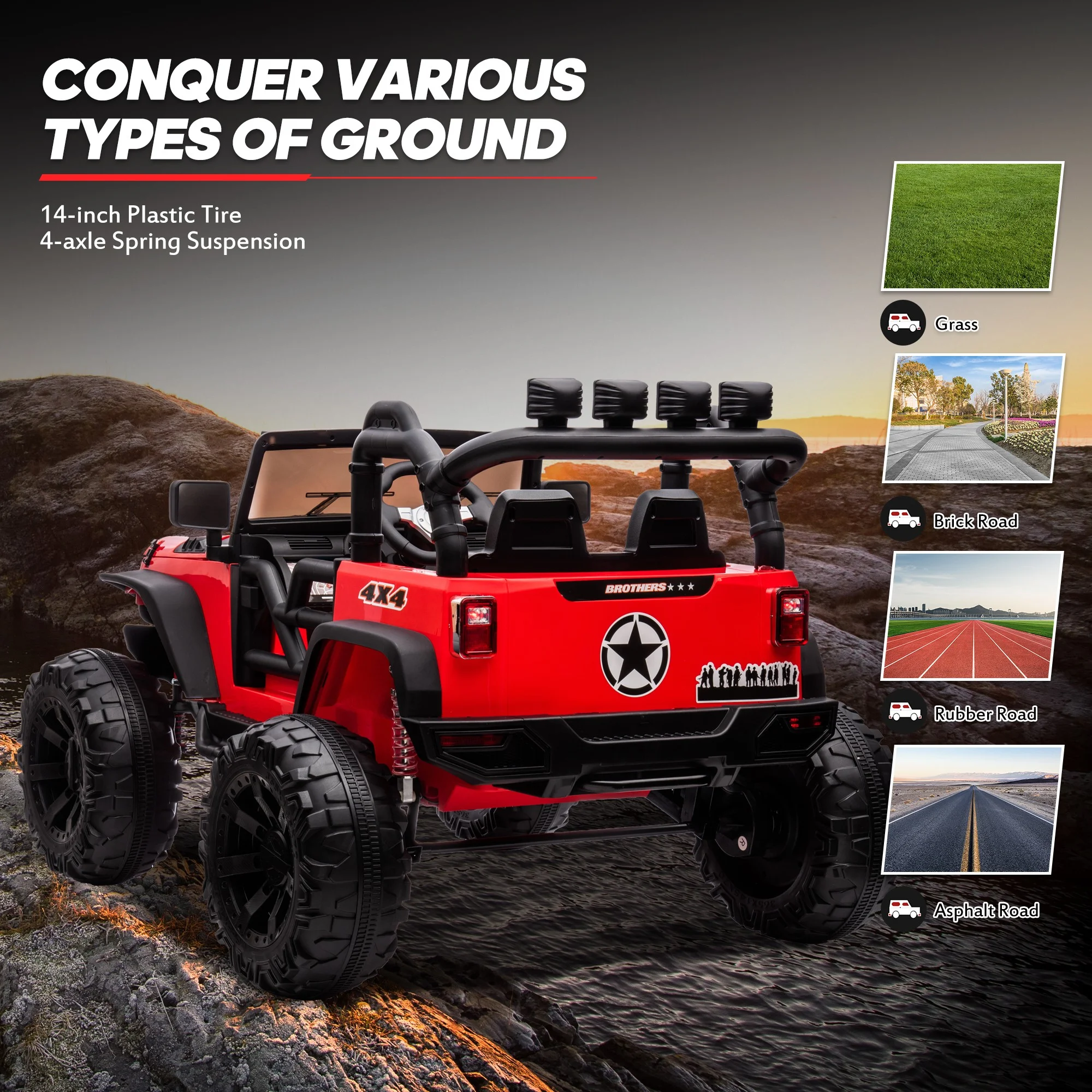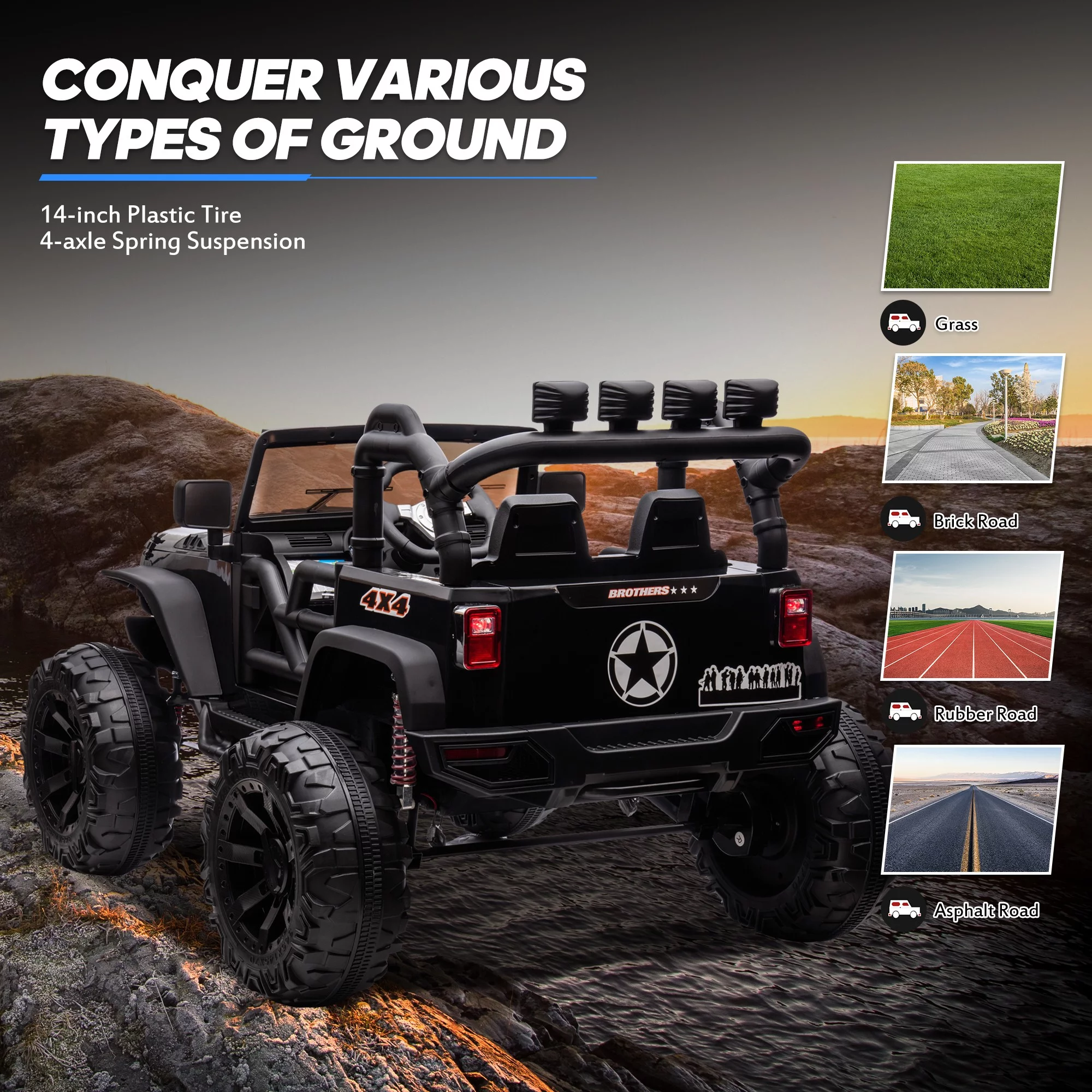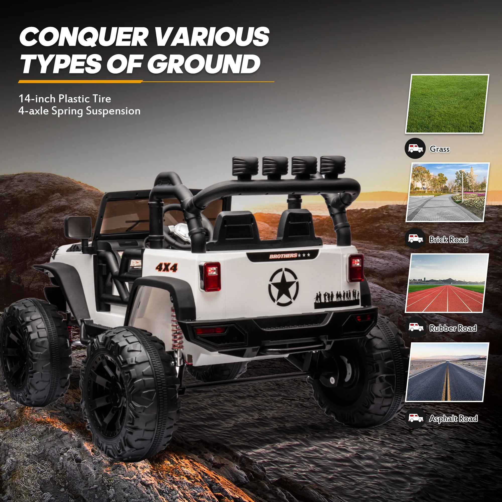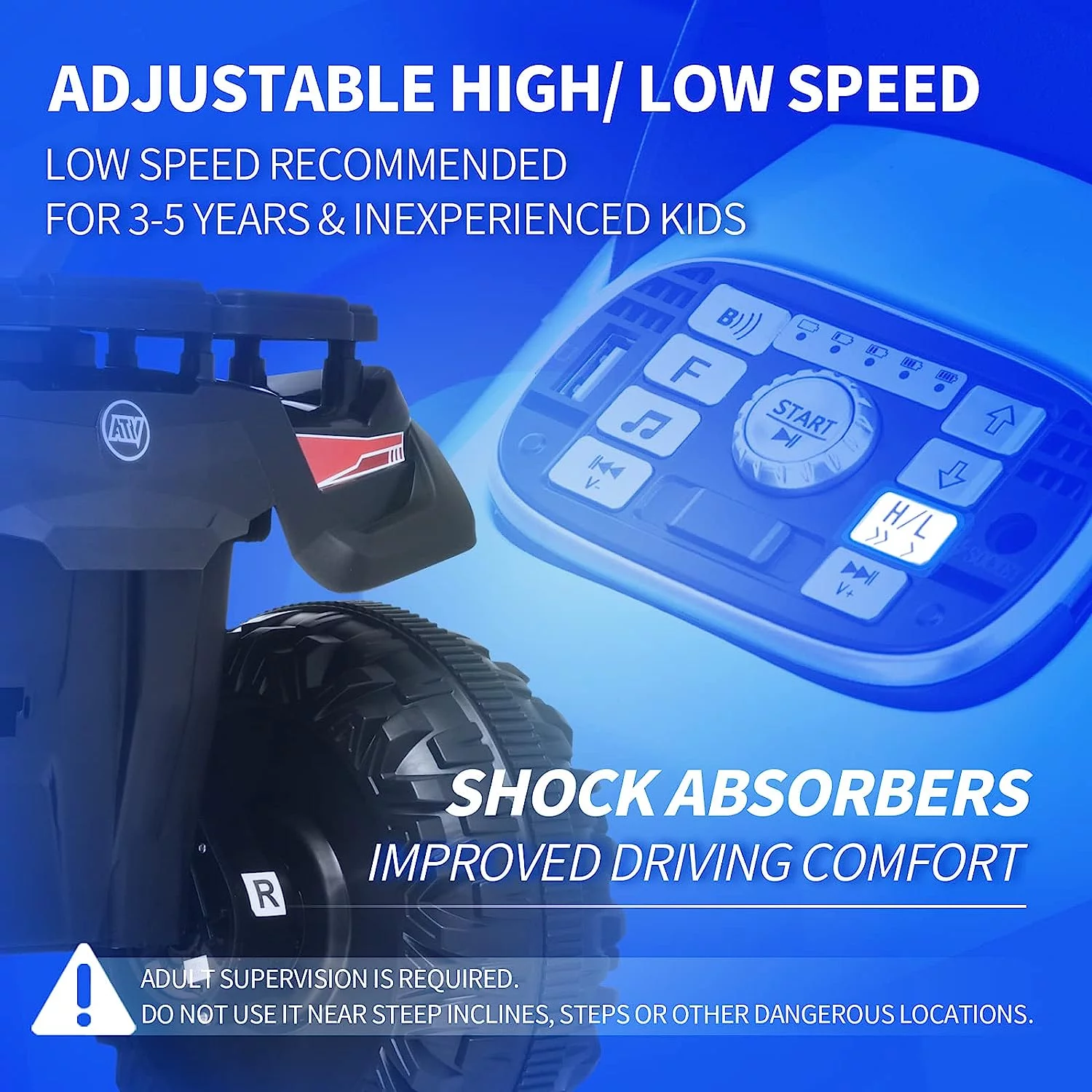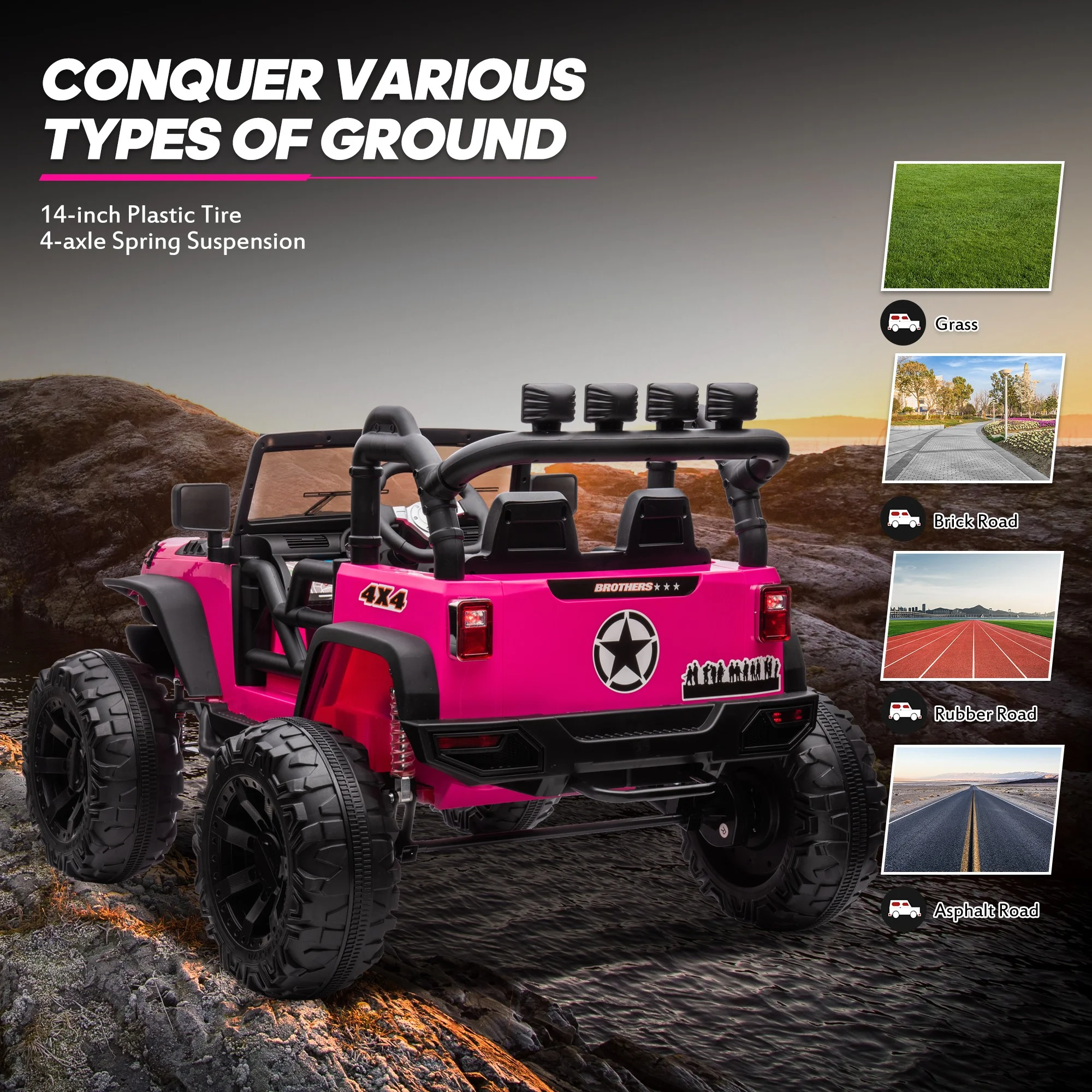 Joywhale 24V Kids Ride on ATV 4WD 2 Seater Quad Easy-Drag 4-Wheeler, with Big Battery, 4x75W Powerful Engine, Metal Suspension, BW-A20s