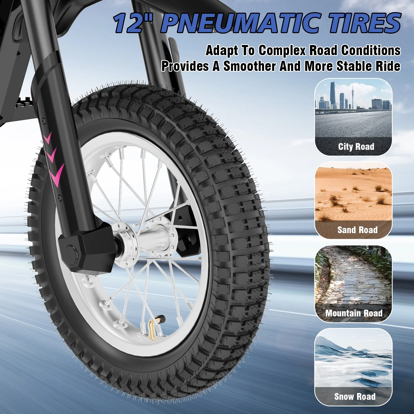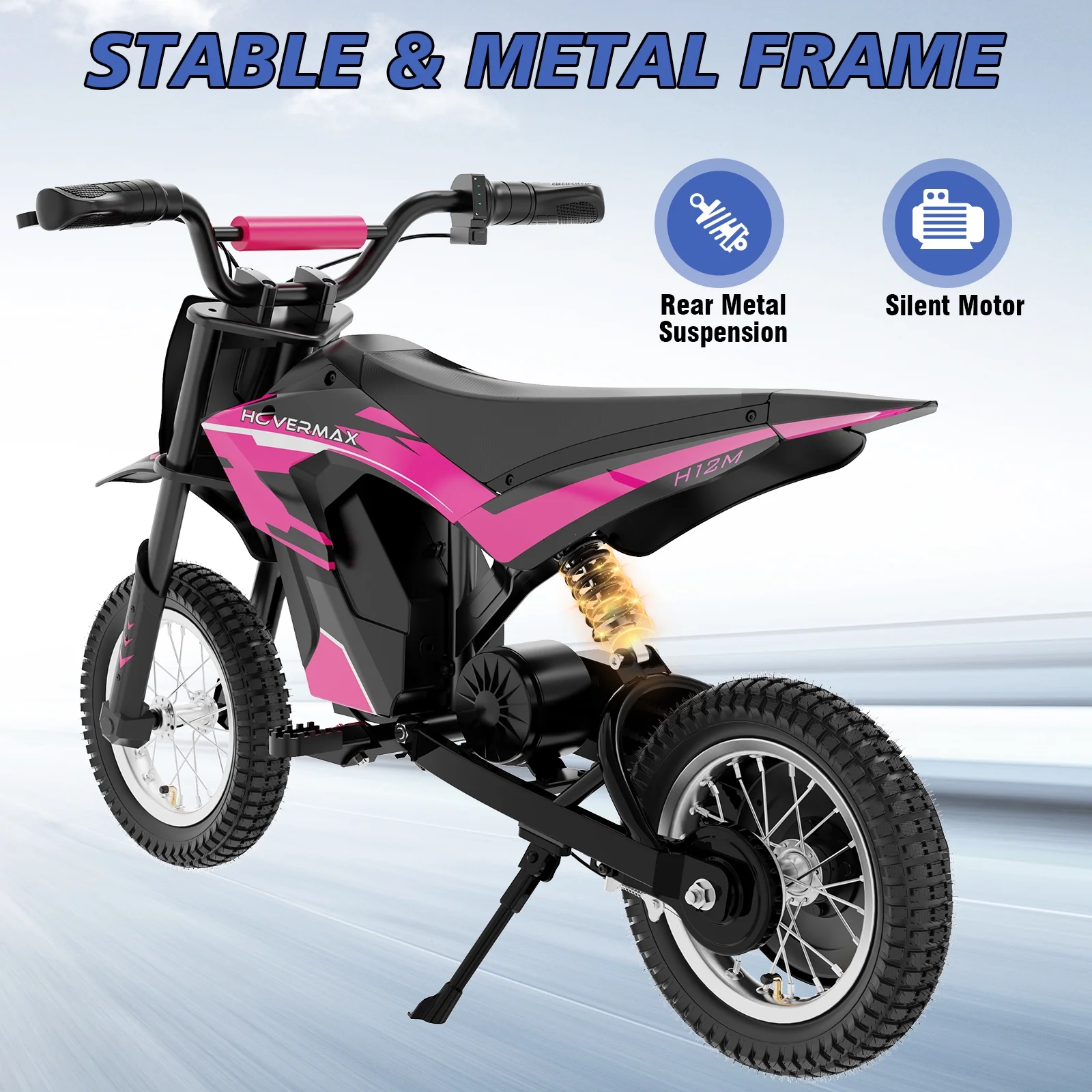 HOVERMAX H12M 24V Electric Dirt Bike, 300W Electric Motorcycle 12.5MPH Max Speed, Ride On Toys motocross for Kids Teens, Blue
