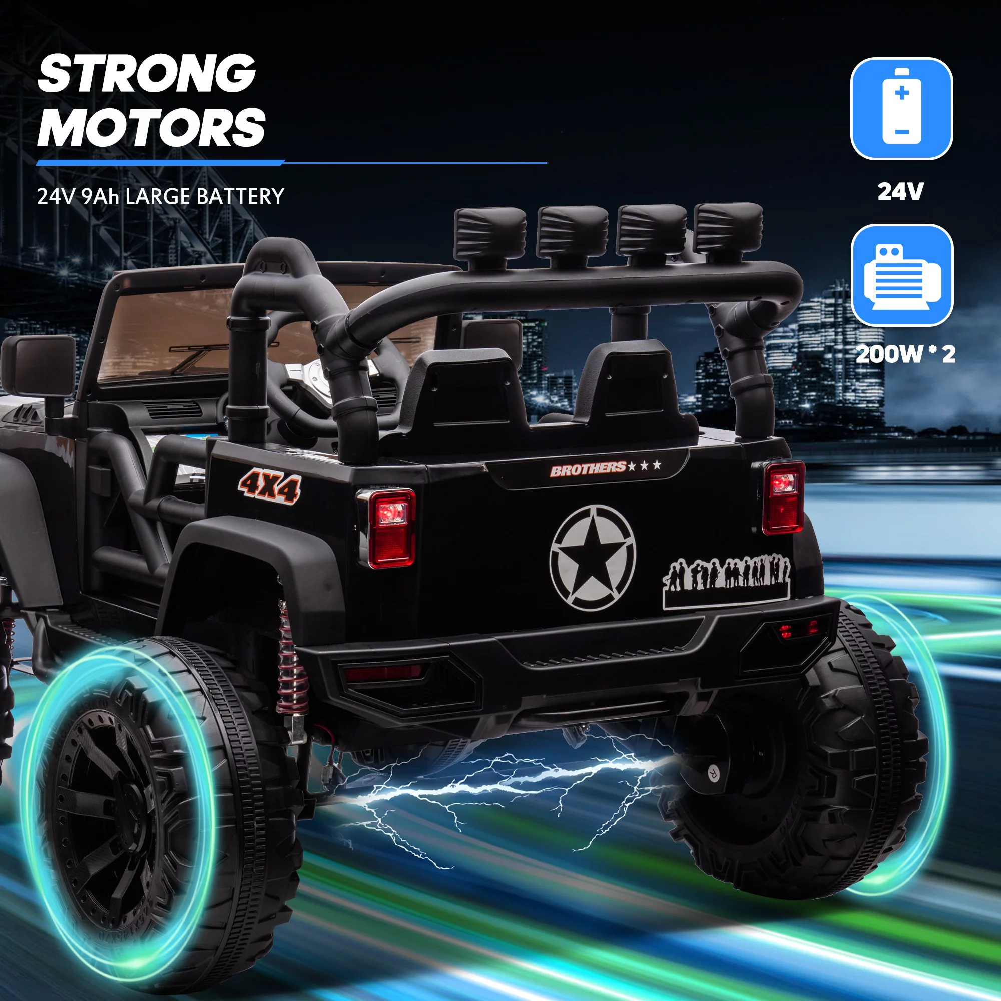 4x4 Kids Ride on ATV, 2 Seater 24 Volt Ride on Toys, 800W 4-Wheeler Quad Car for Big Kids, Black