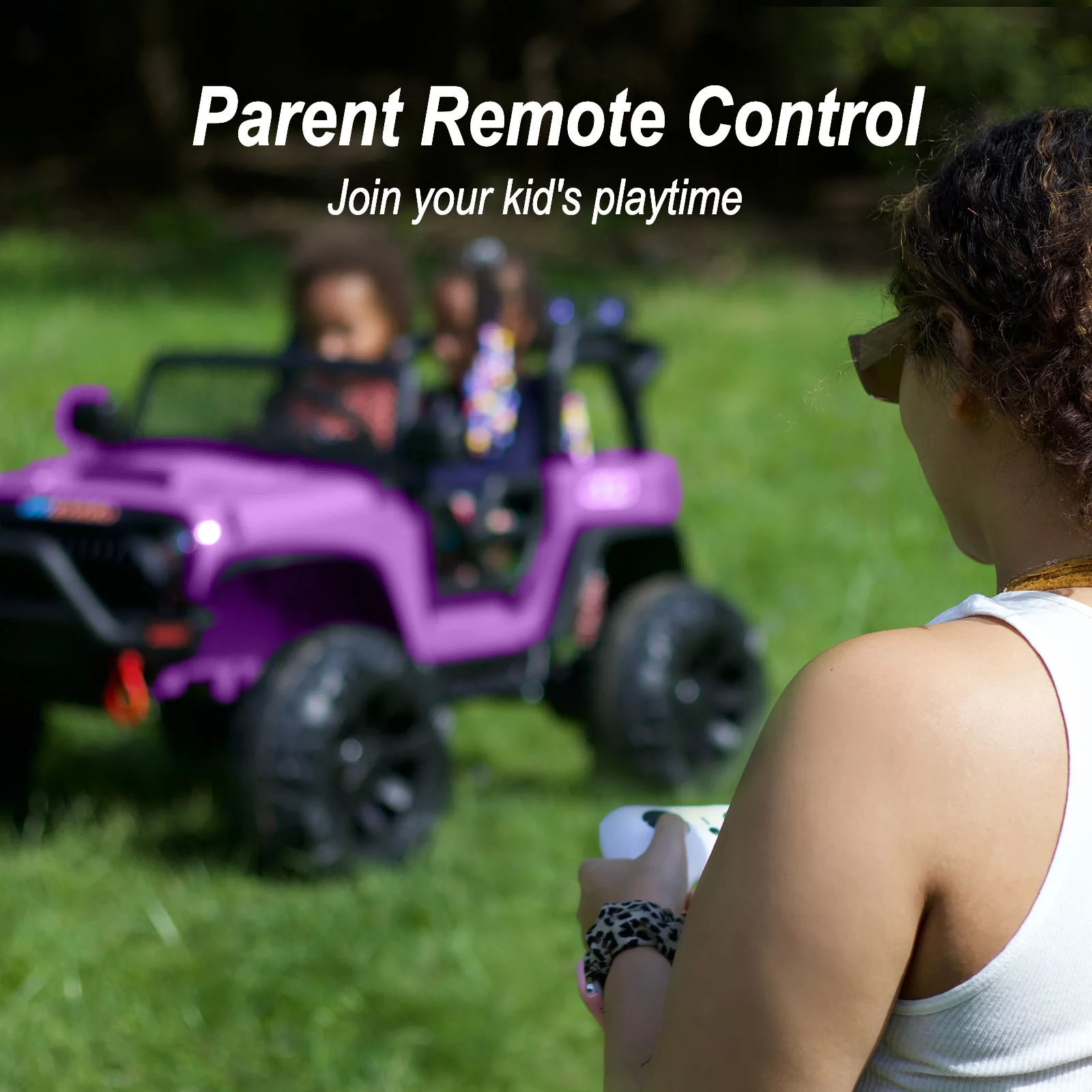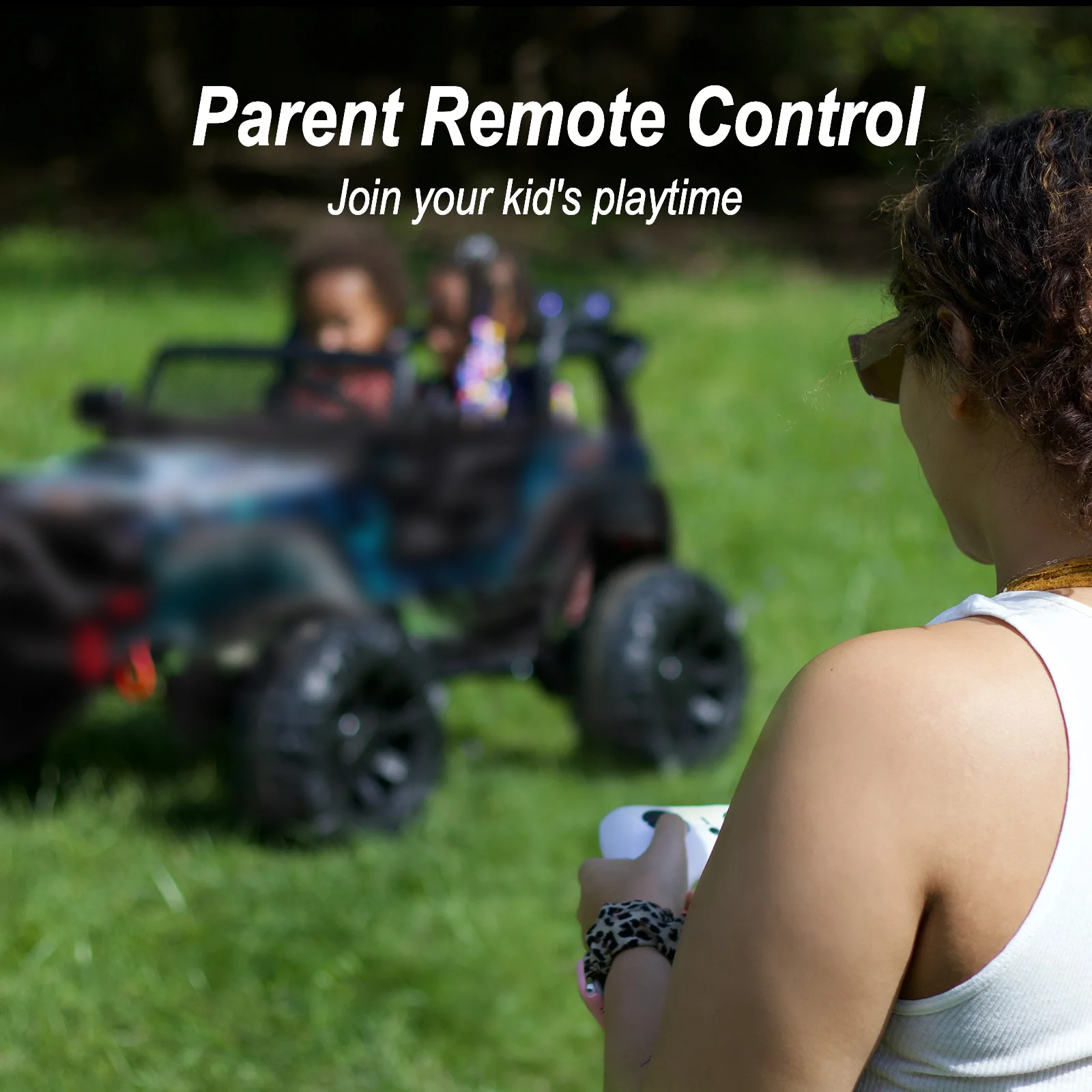12 V Ride on Car,2 Seater Powered on Truck,4WD Electric Off-Road,Remote Control,Spring Suspension Ride on UTV for 3-8 Kids,Blue