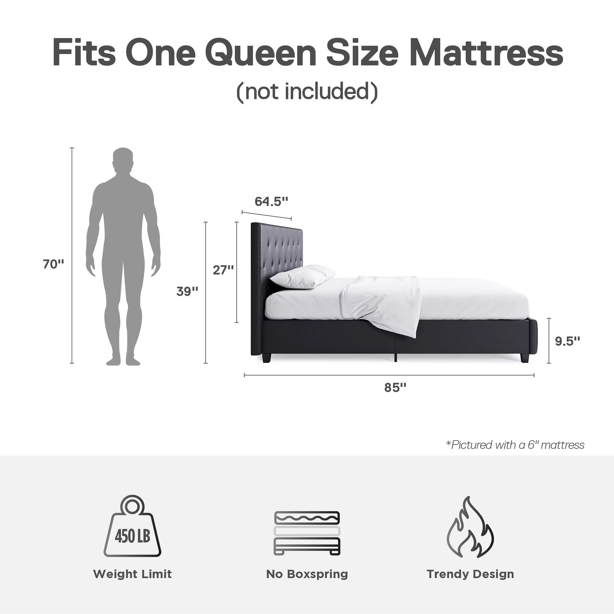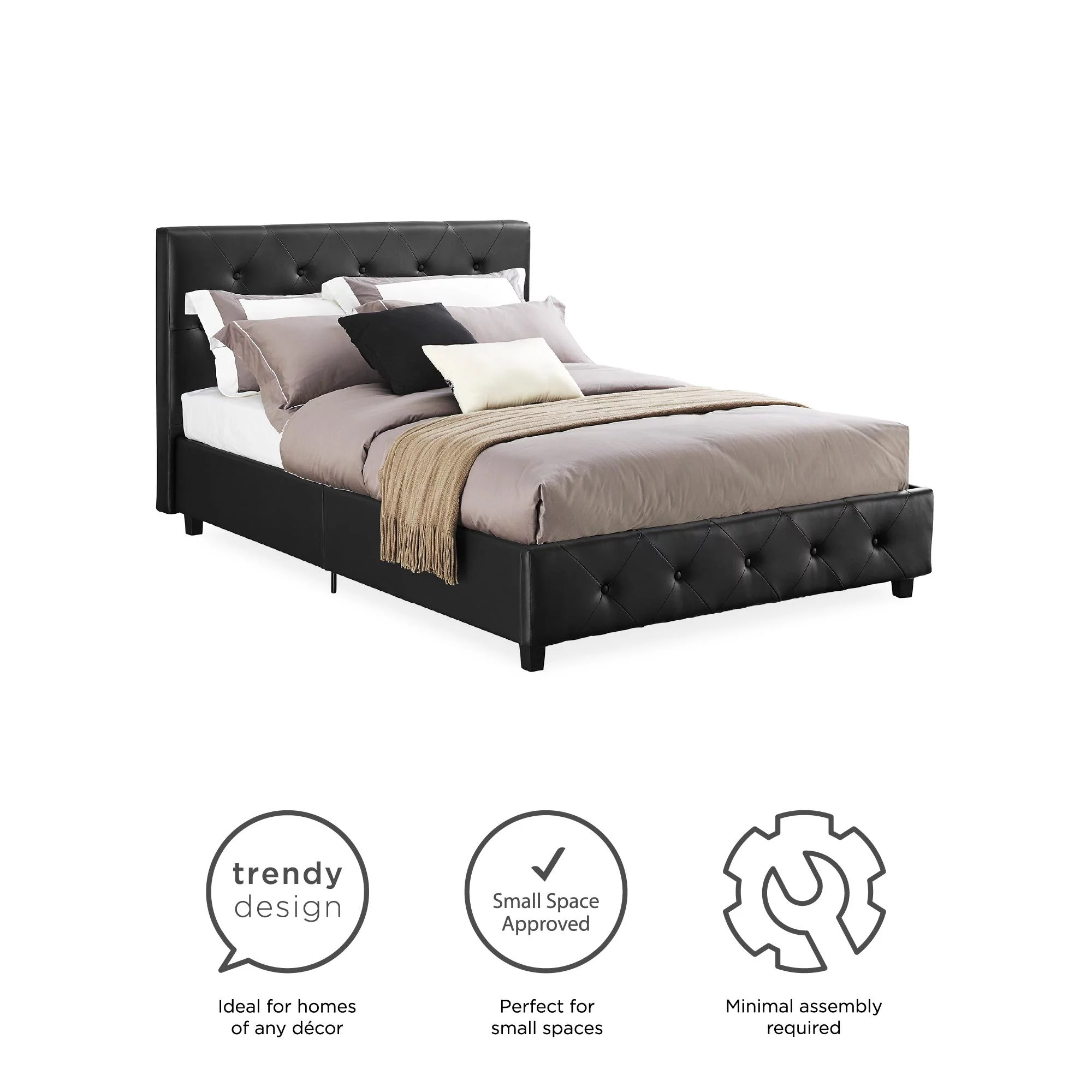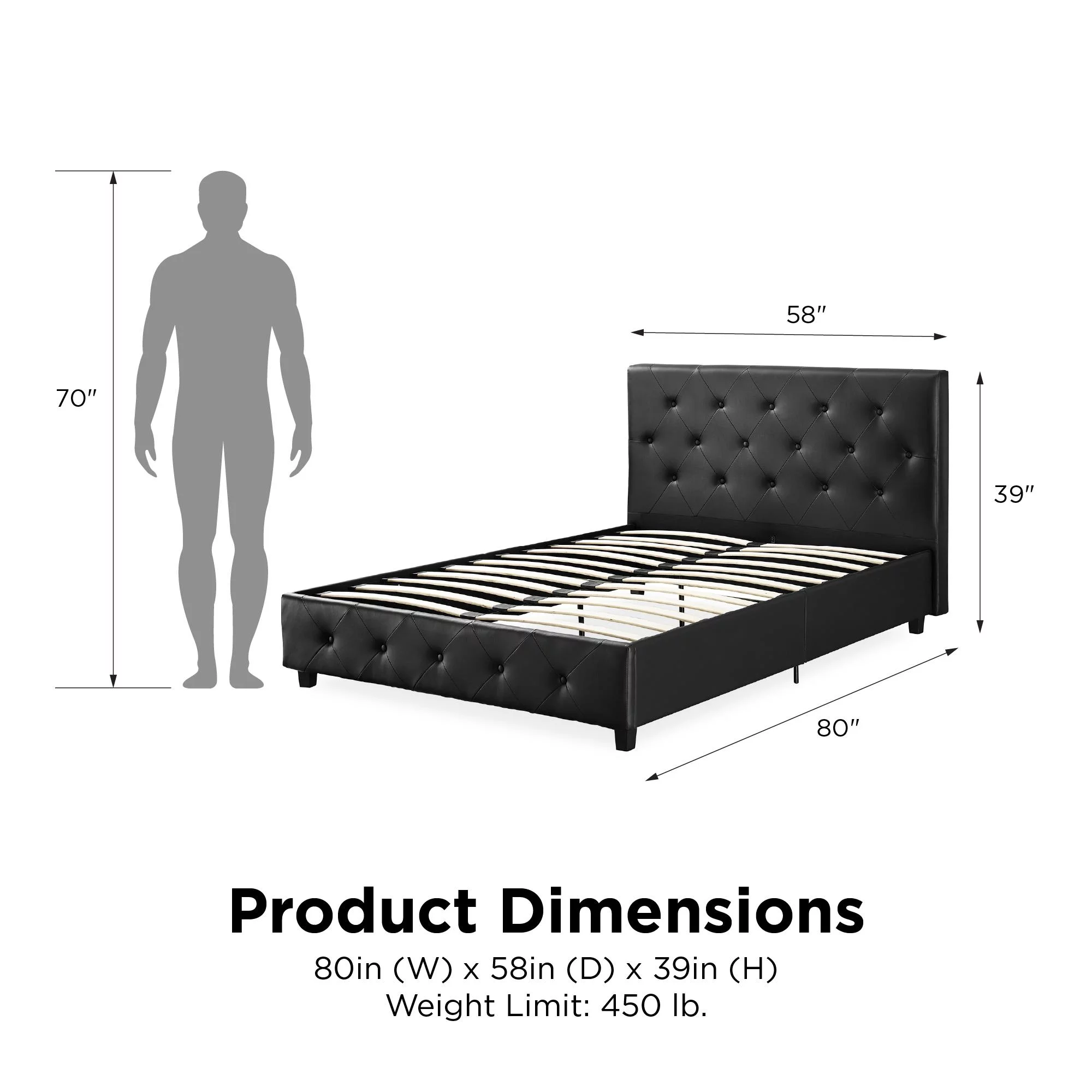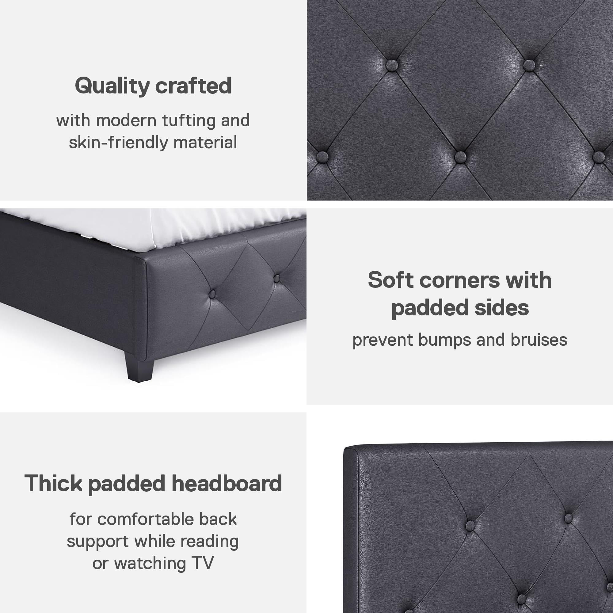 DHP Dakota Upholstered Platform Bed, Queen, Gray Faux Leather
