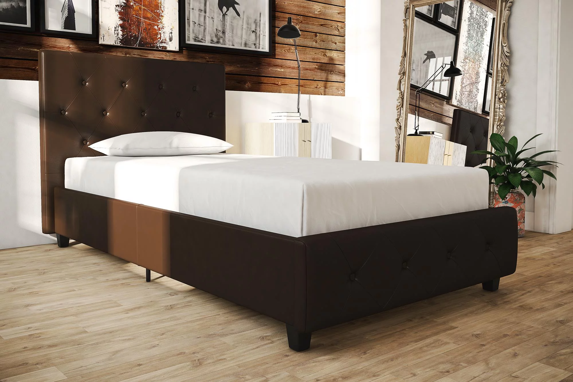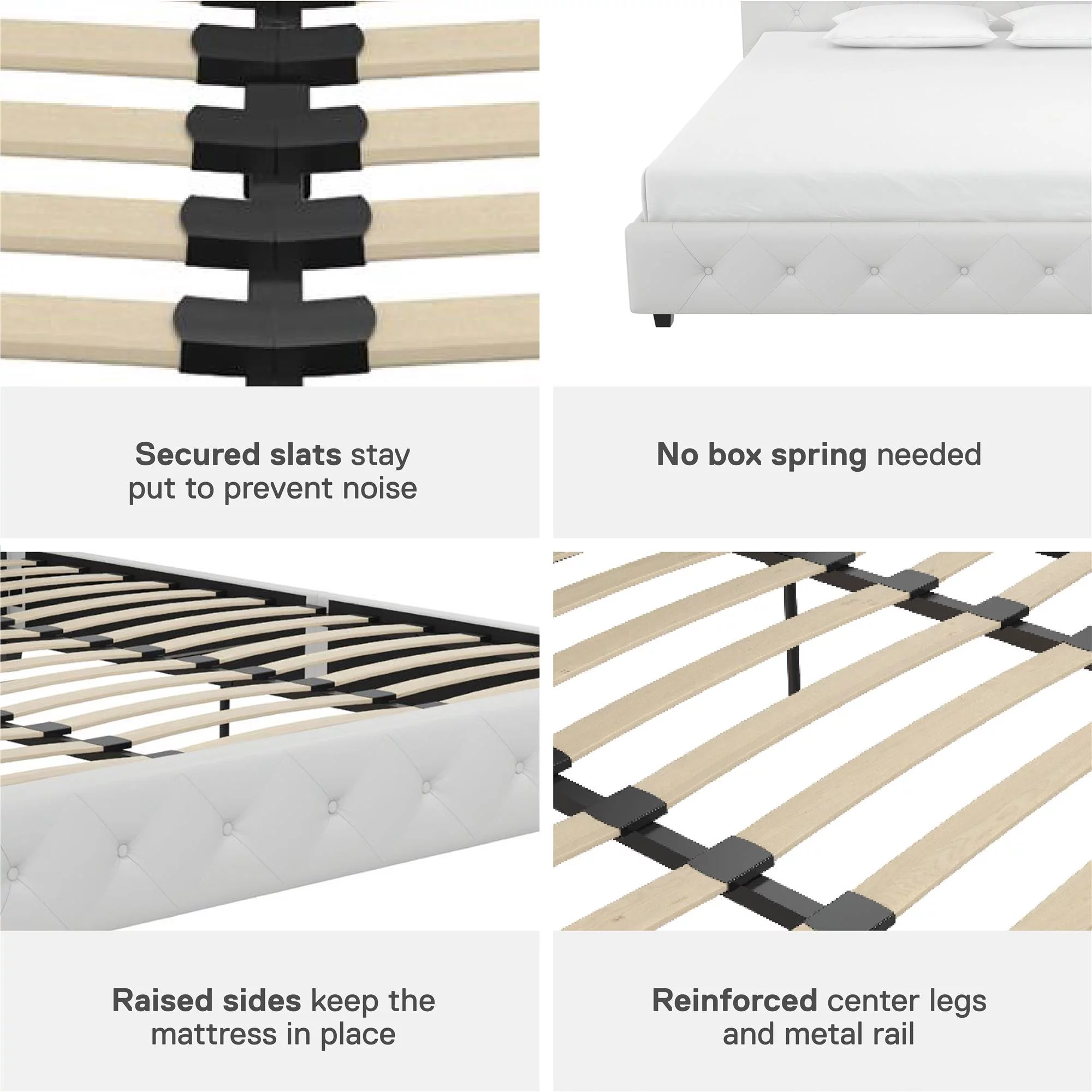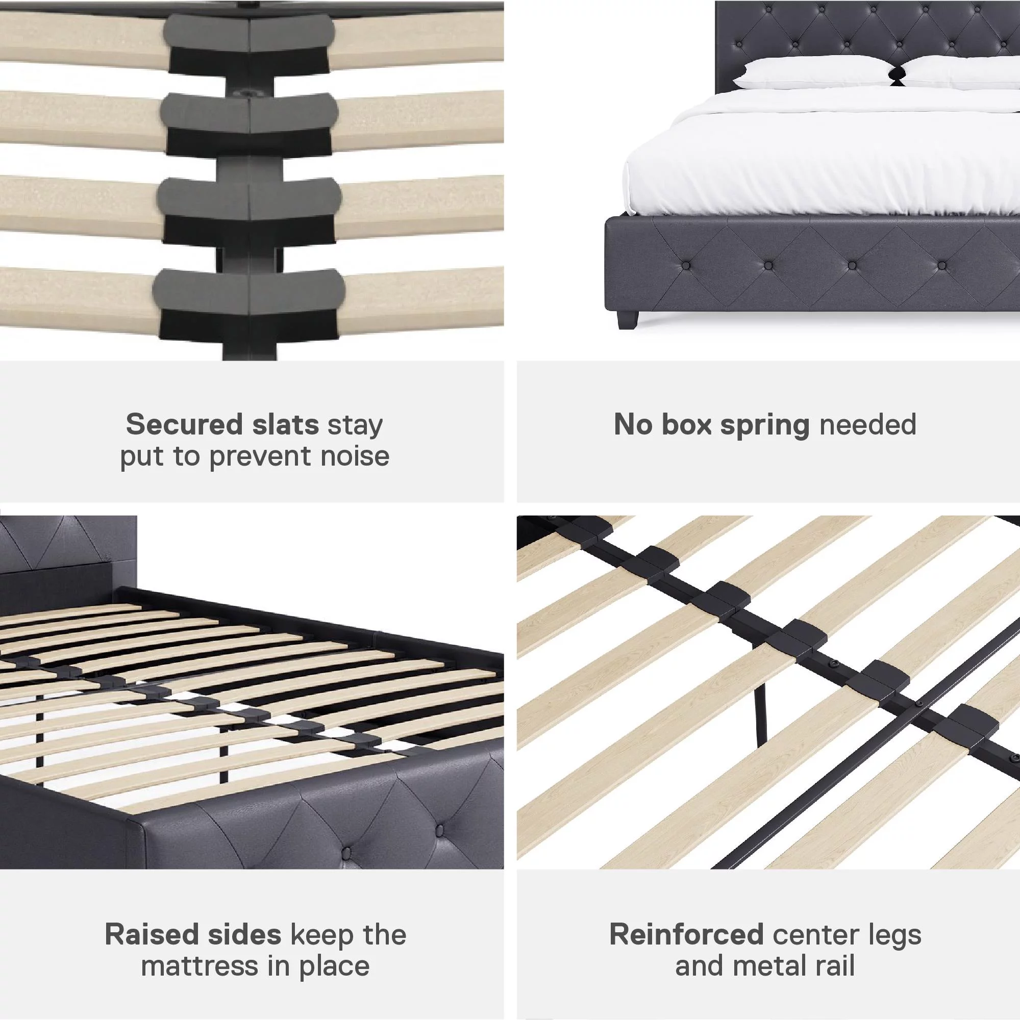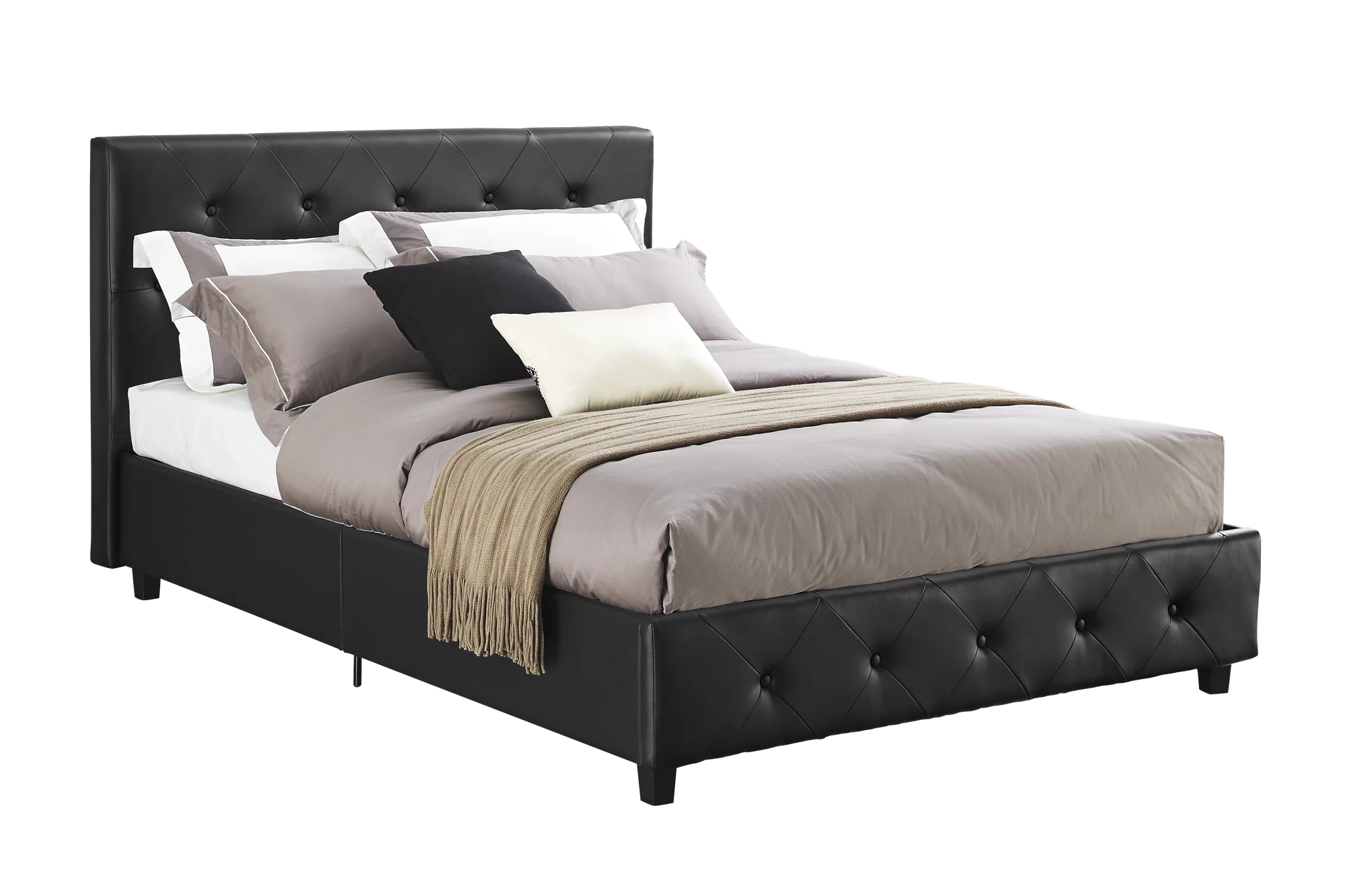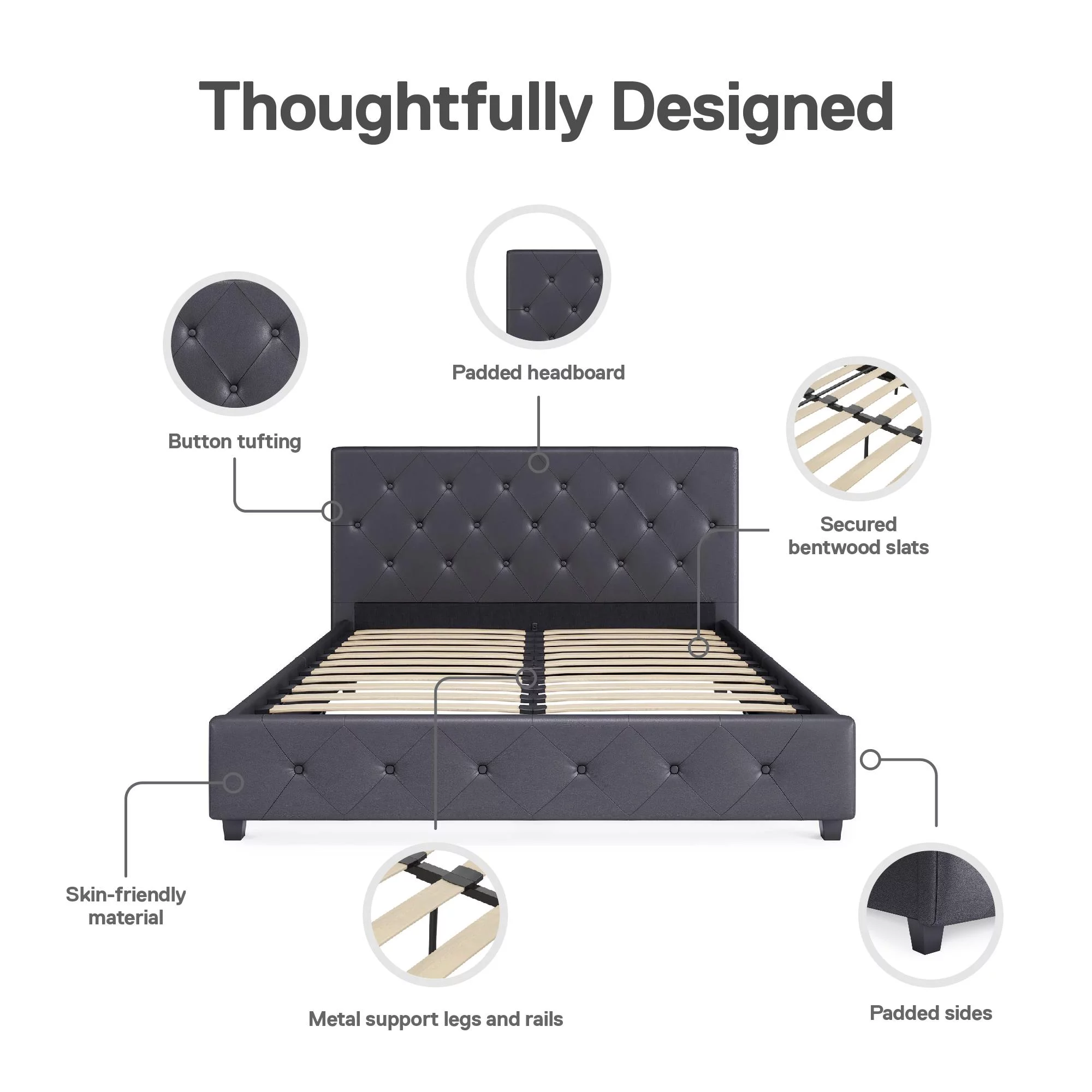 DHP Dakota Upholstered Platform Bed, Queen, Gray Faux Leather