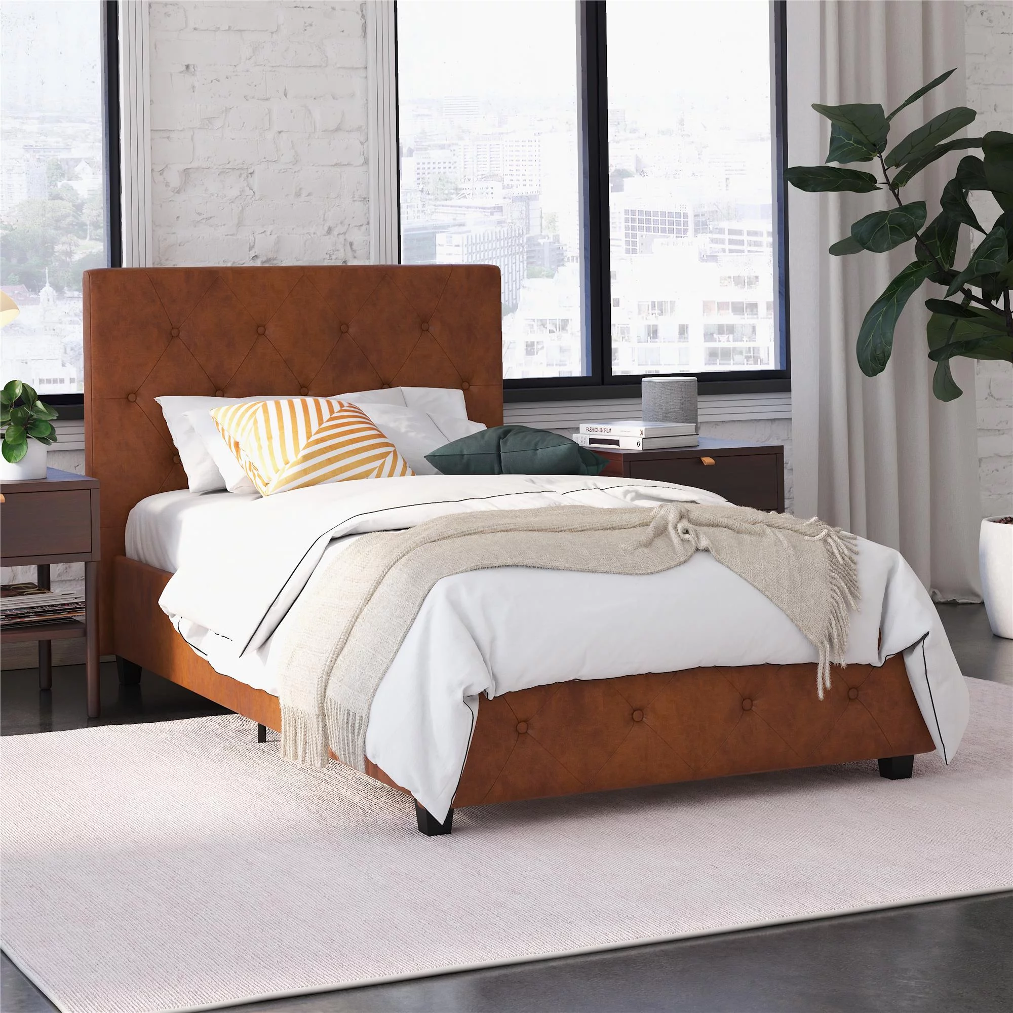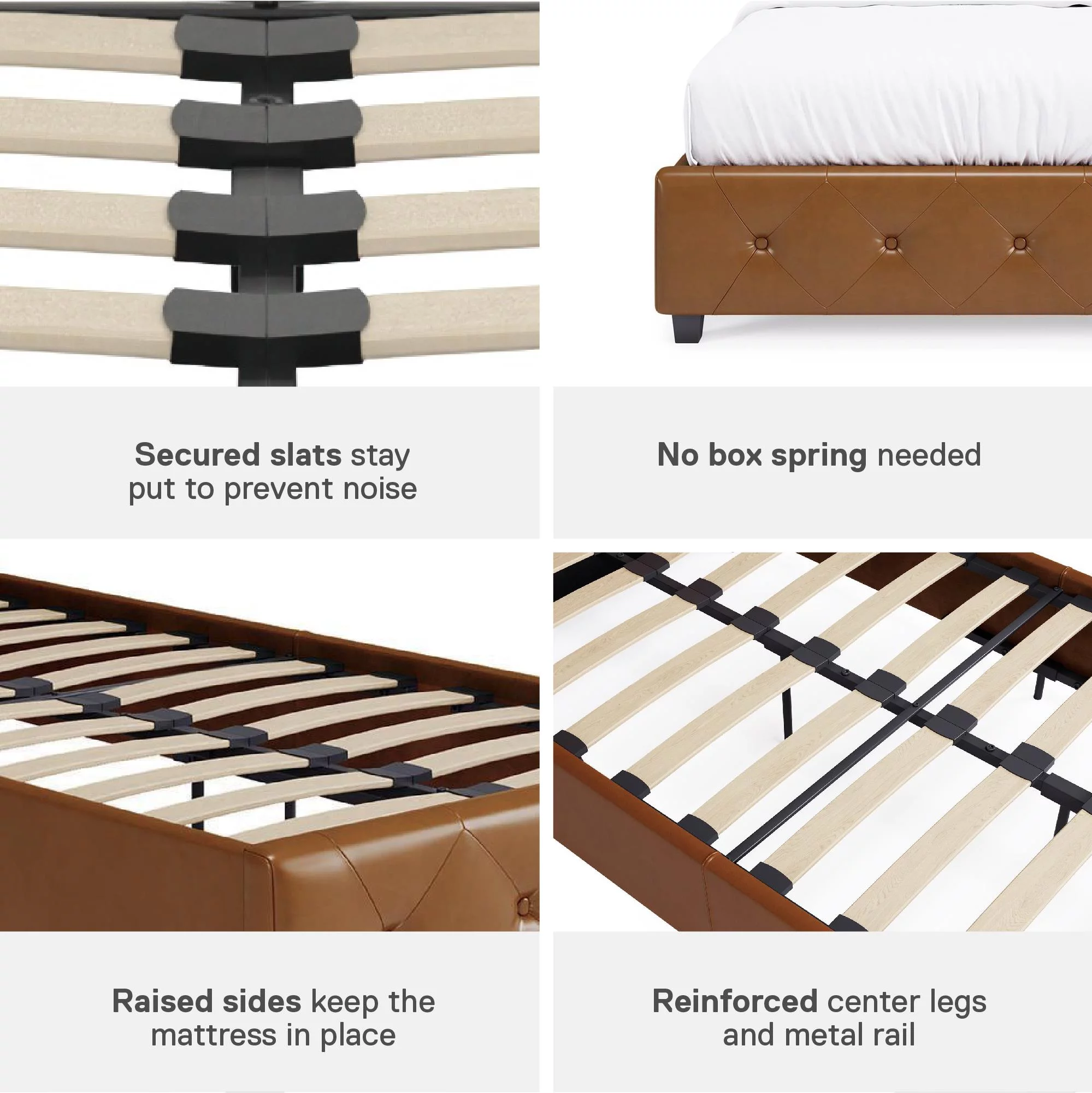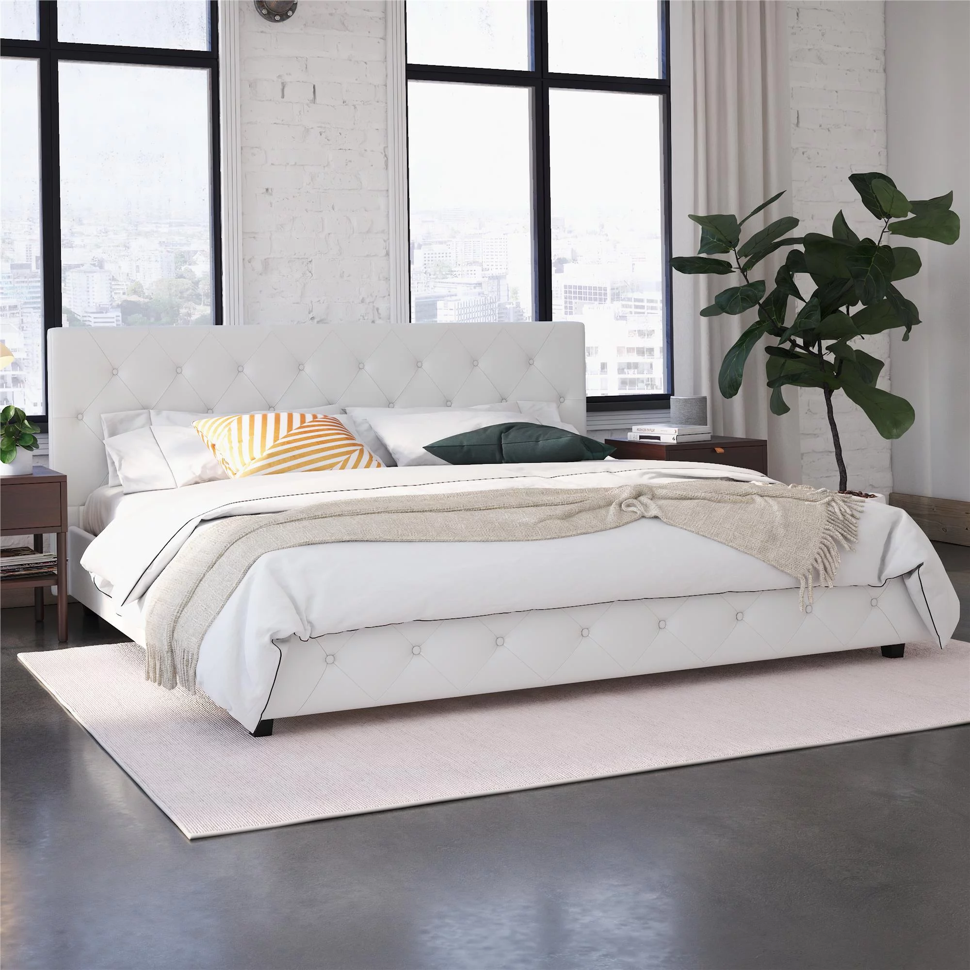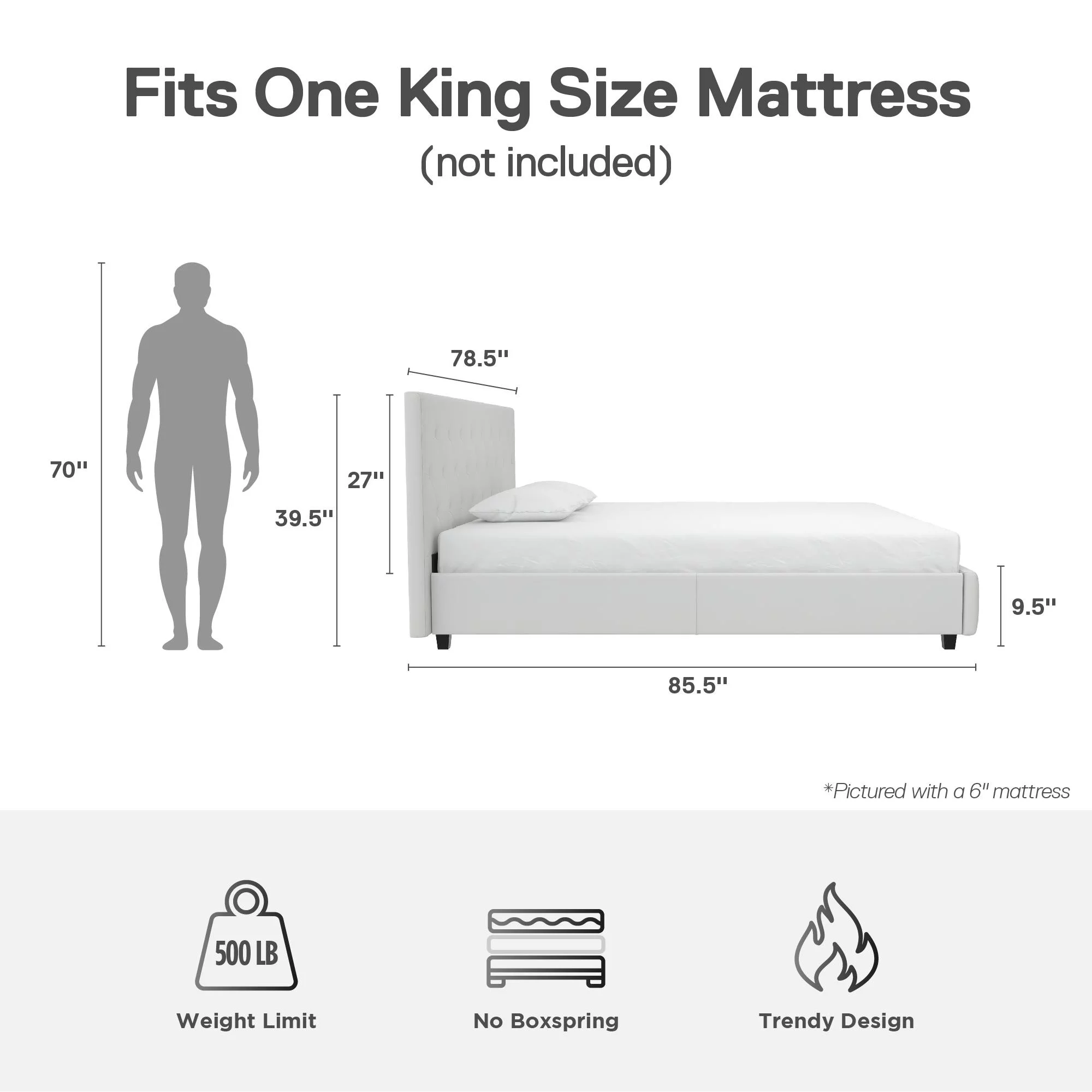 DHP Dakota Upholstered Platform Bed, Queen, Gray Faux Leather