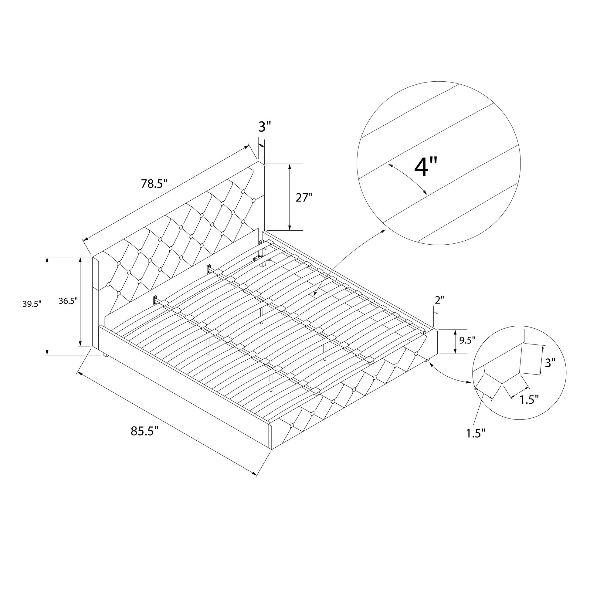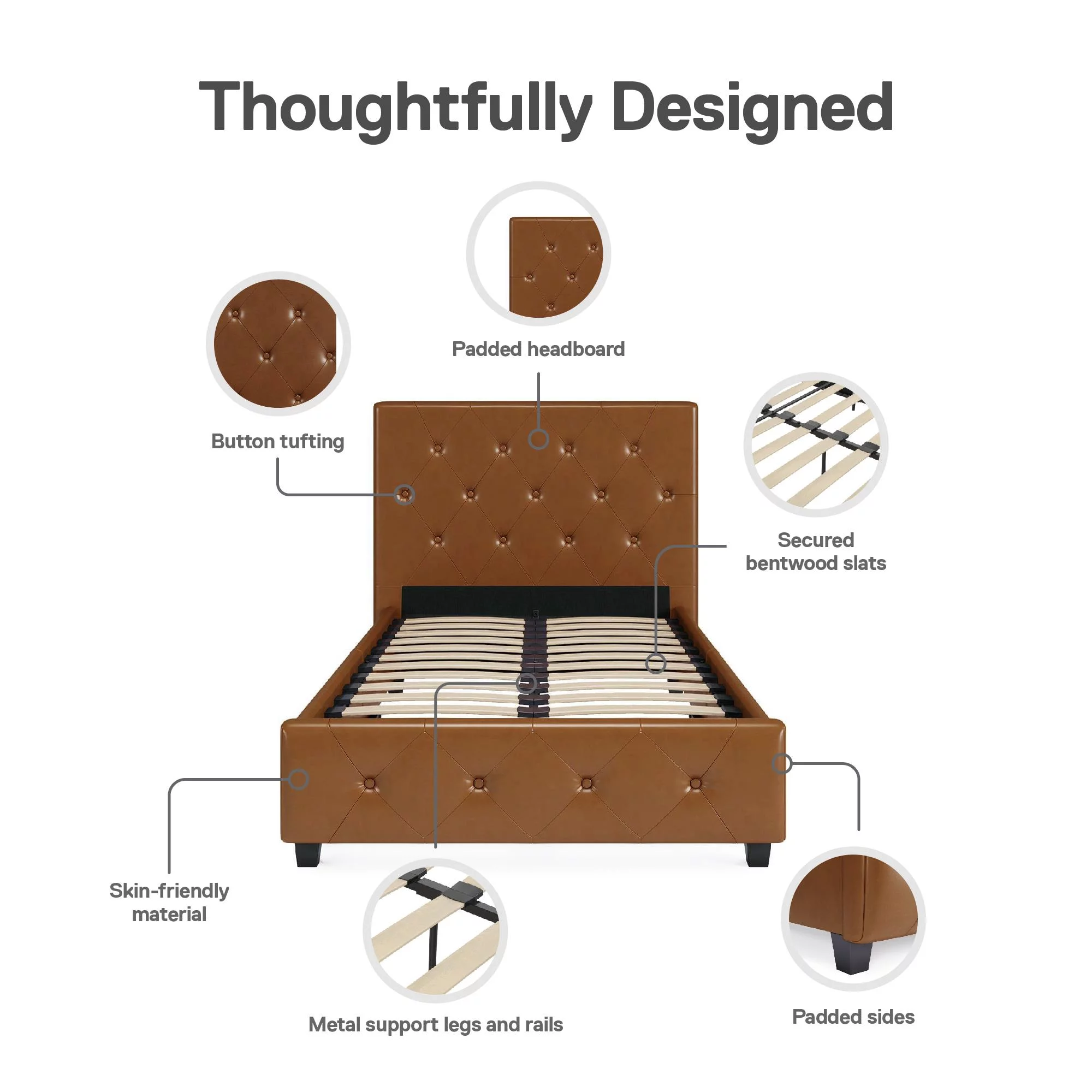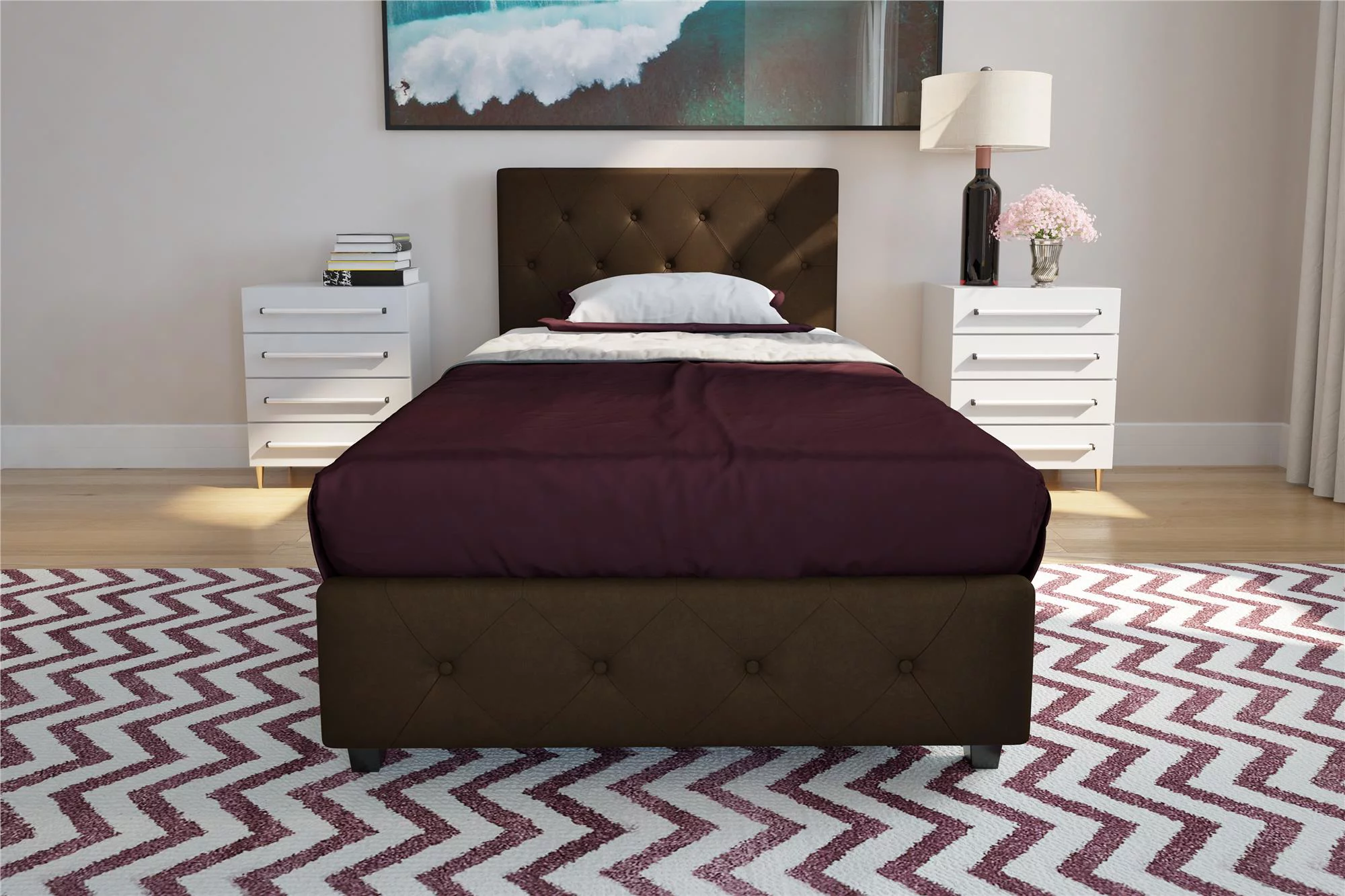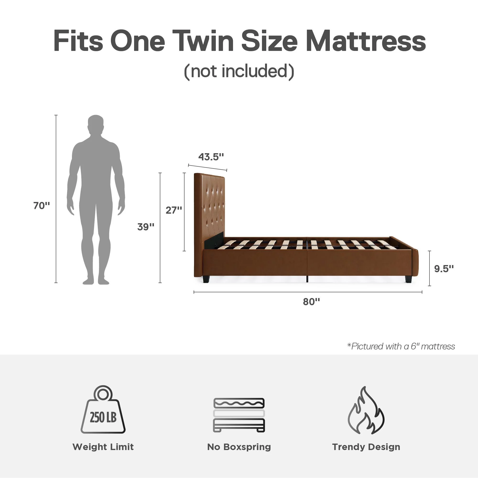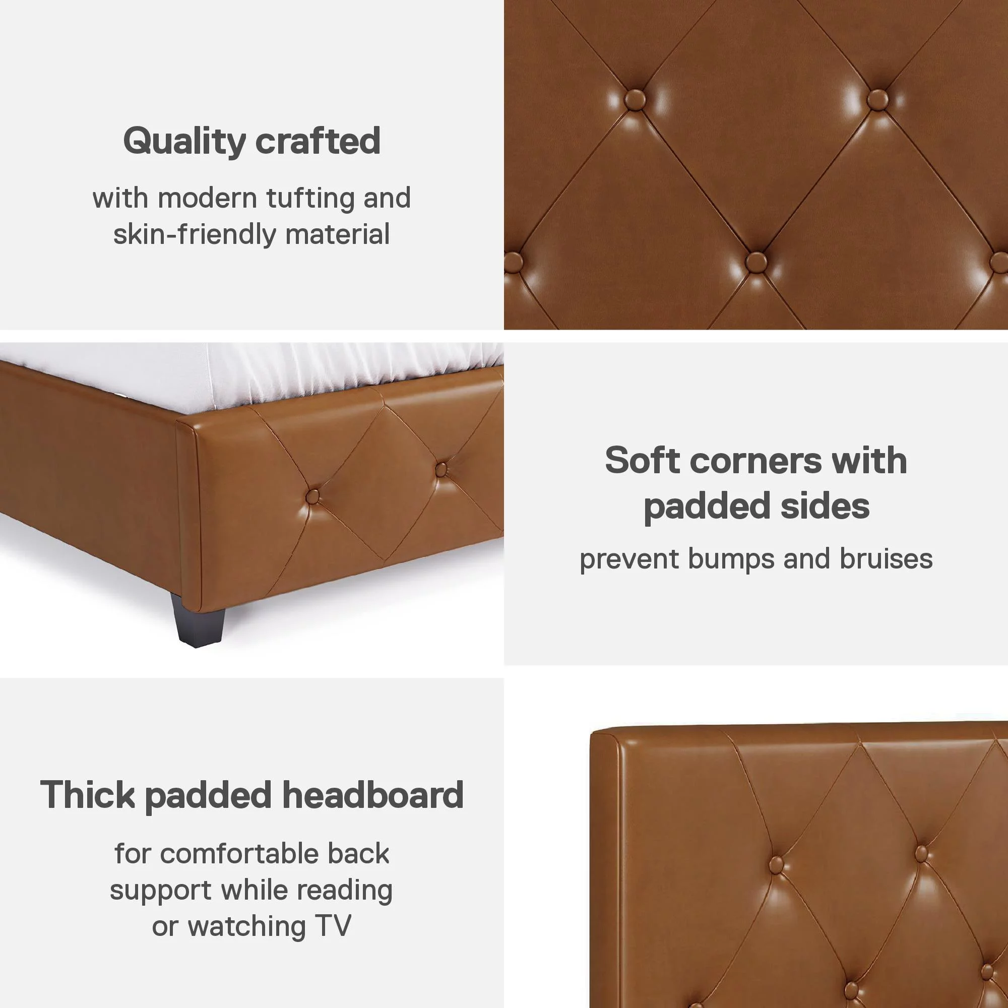 DHP Dakota Upholstered Platform Bed, Queen, Gray Faux Leather