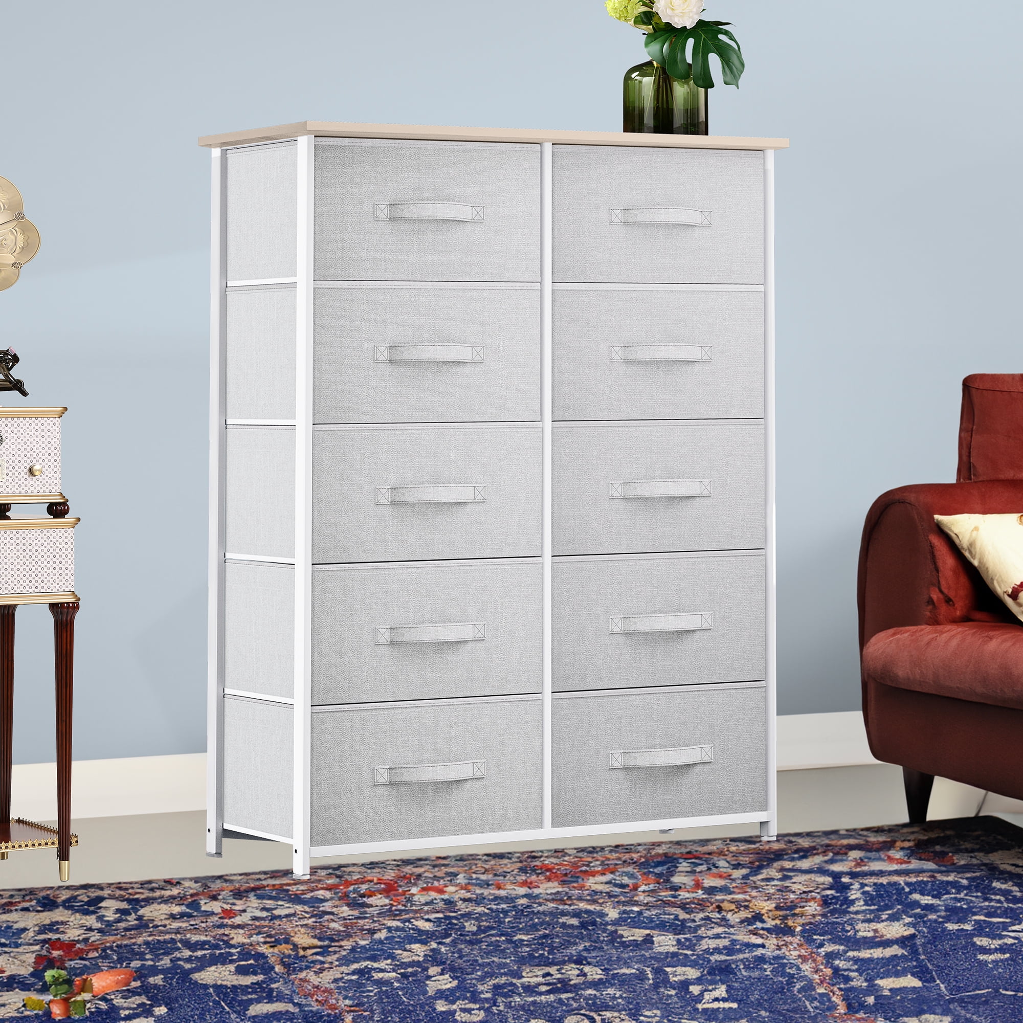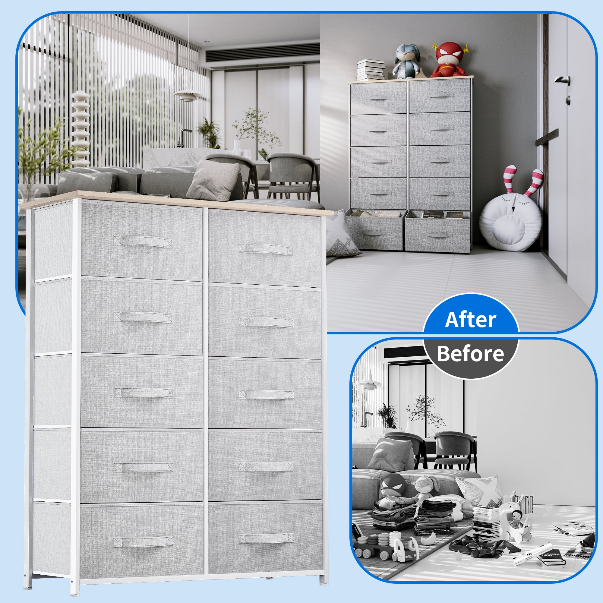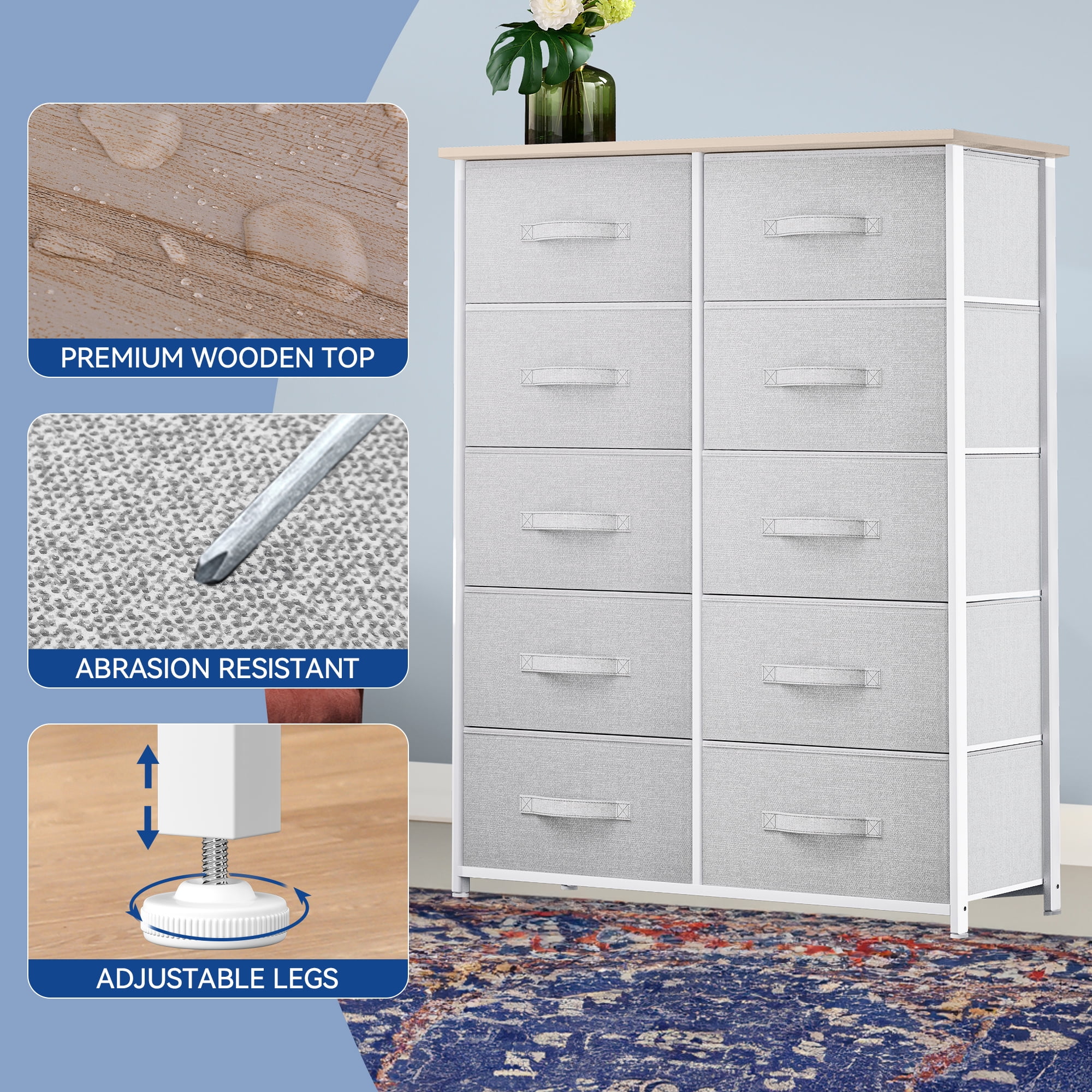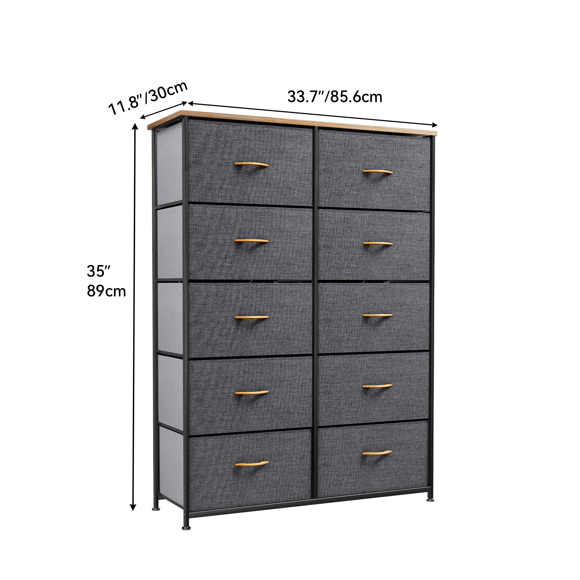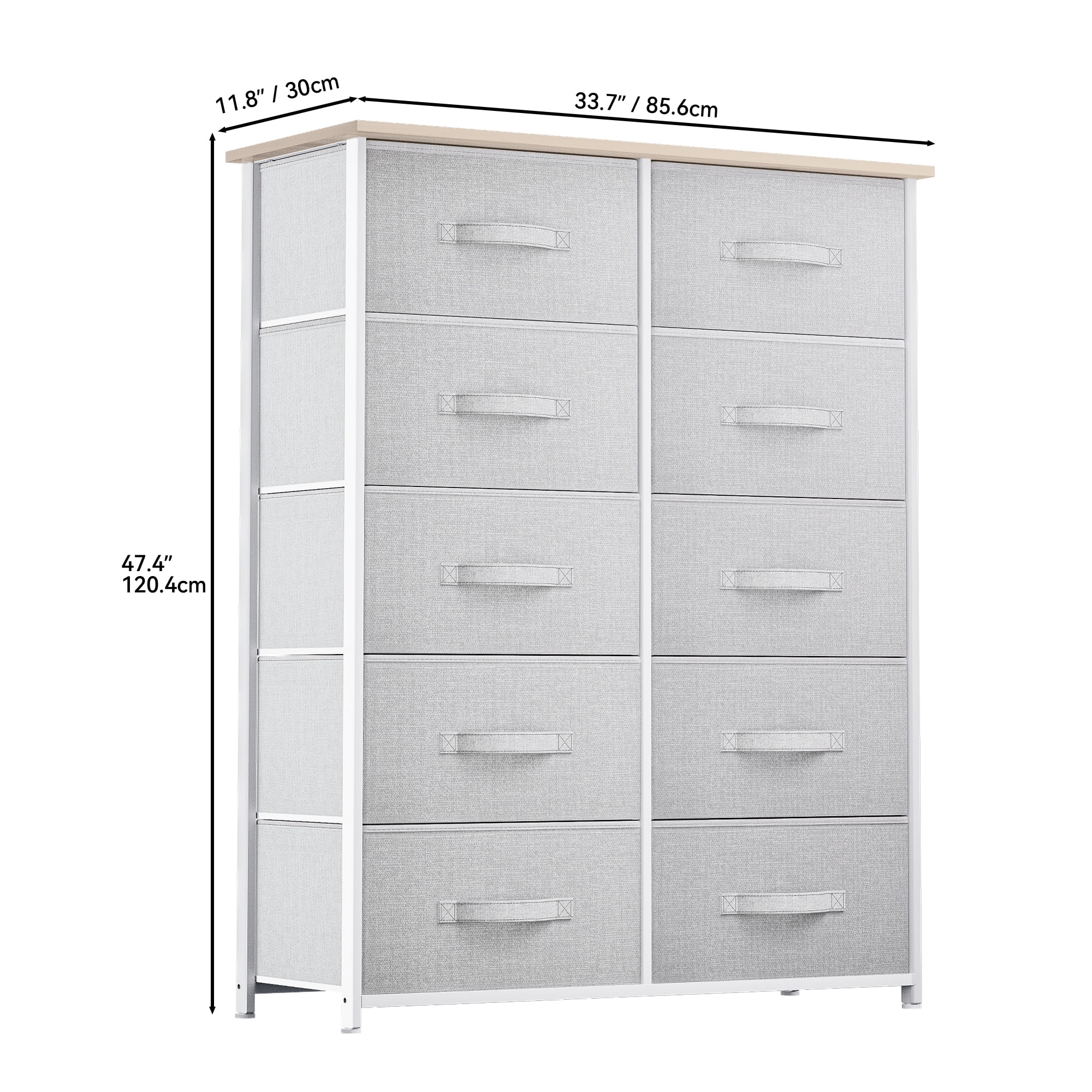 Dextrus Dresser with 10 Drawers - Fabric Storage Tower, Organizer Unit for Bedroom, Living Room, Hallway, Cool Gray