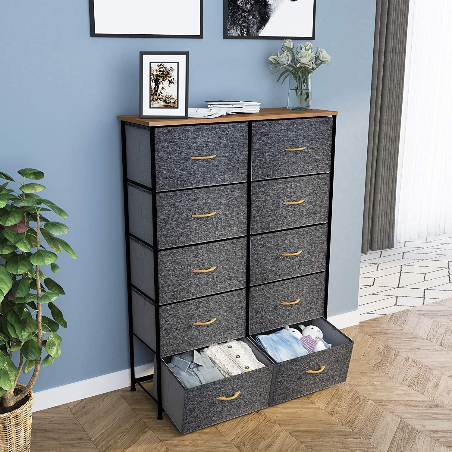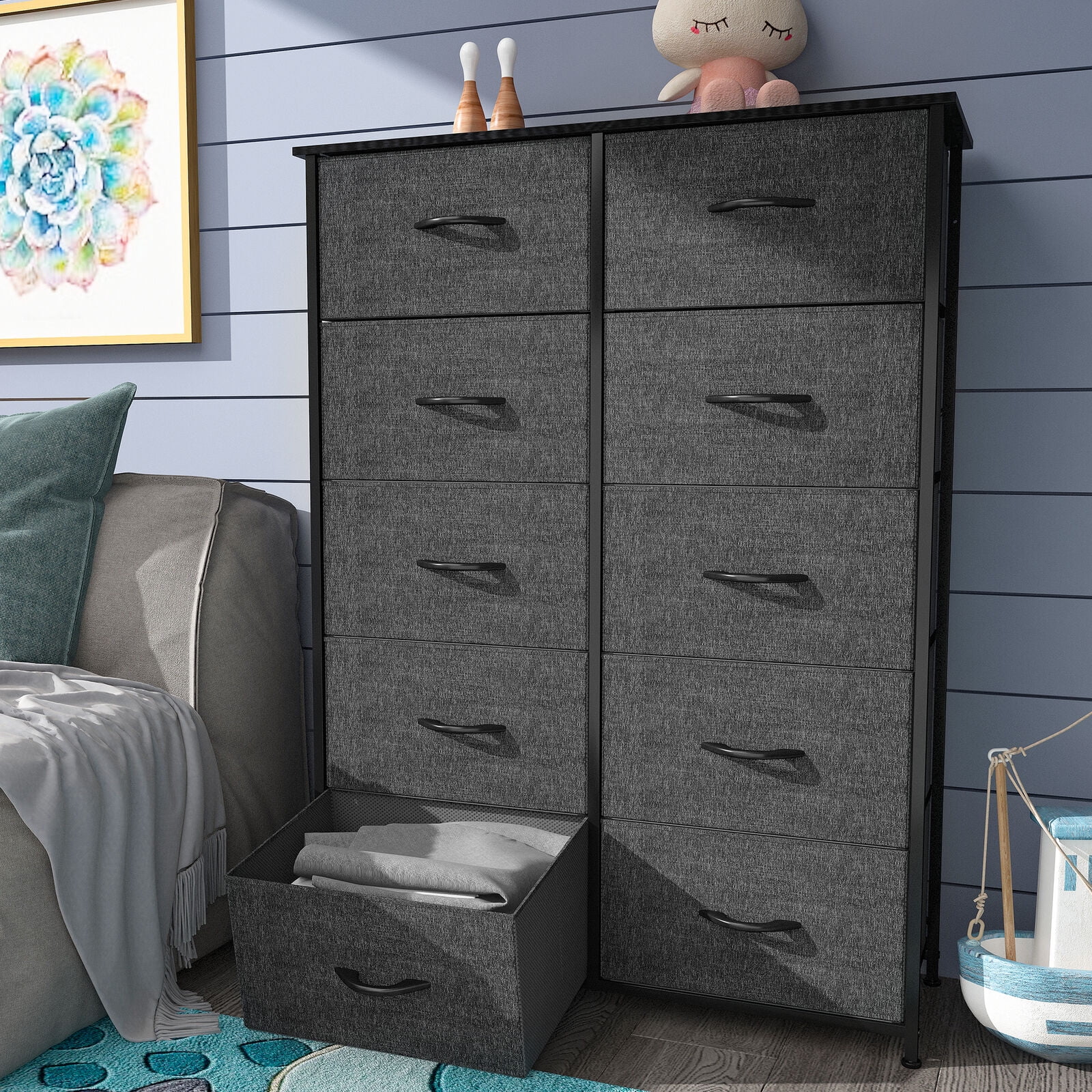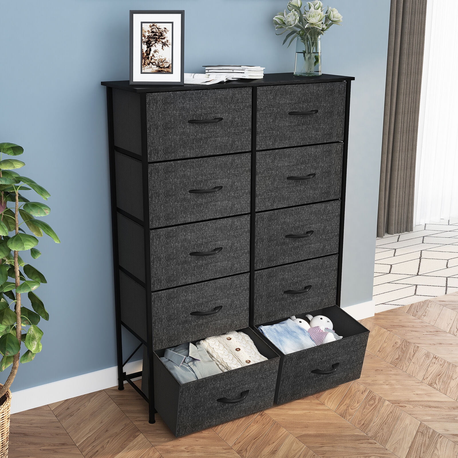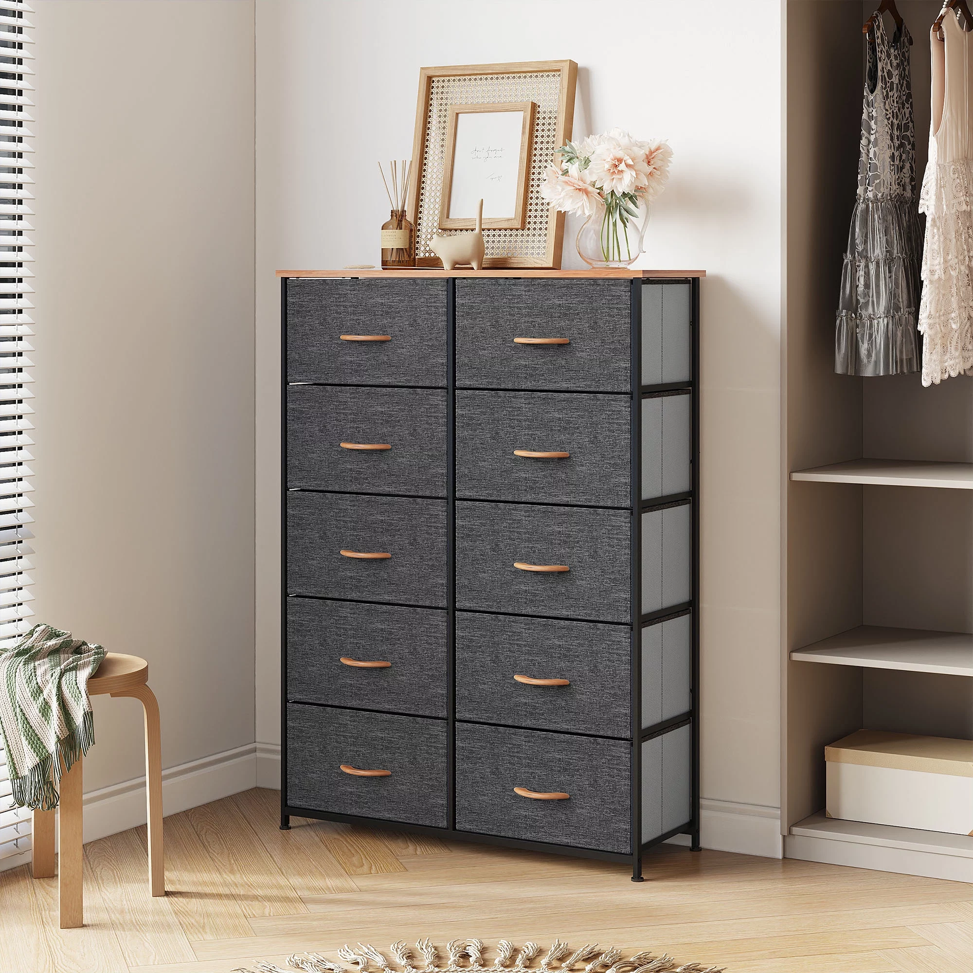 Dextrus Dresser with 10 Drawers - Fabric Storage Tower, Organizer Unit for Bedroom, Living Room, Hallway, Cool Gray