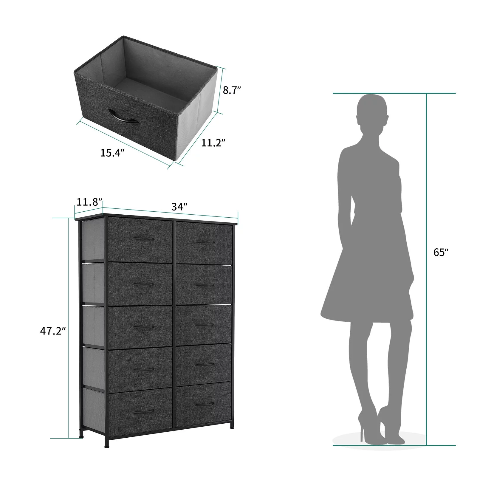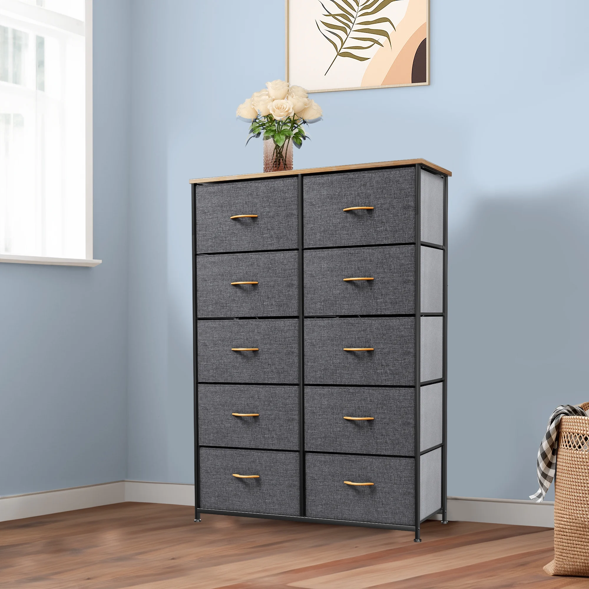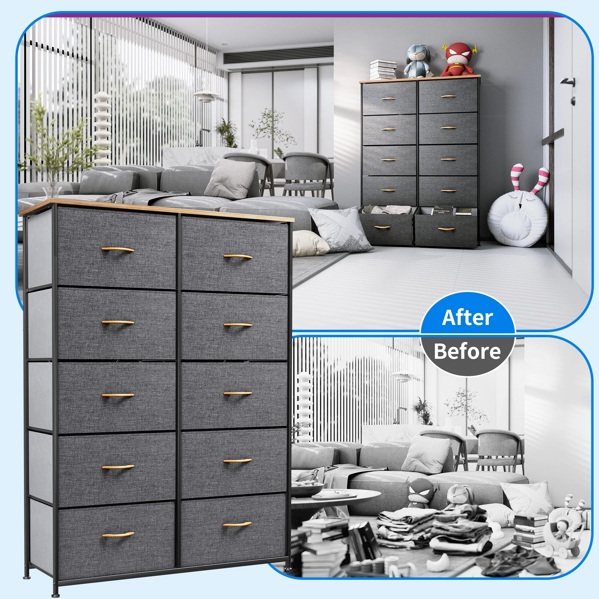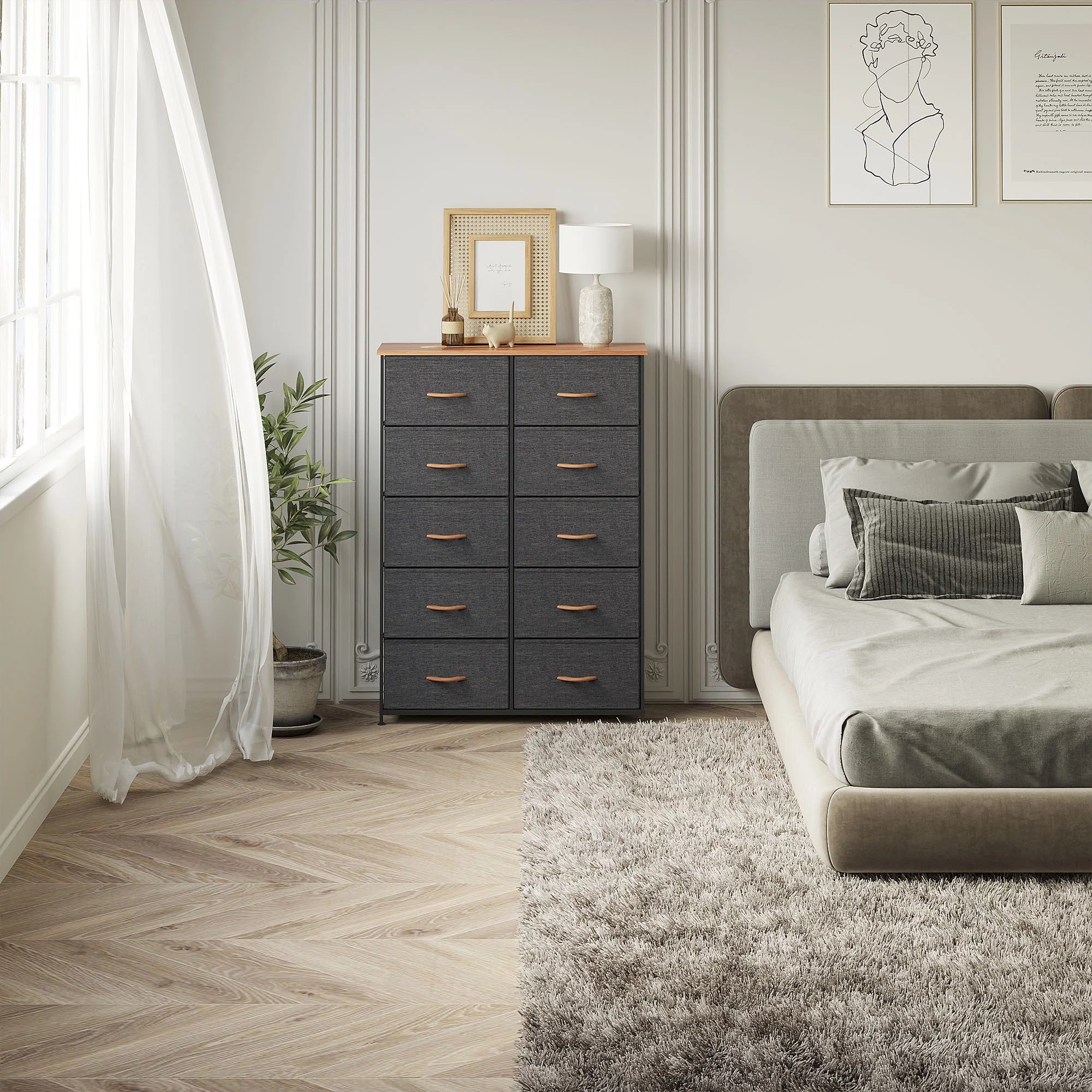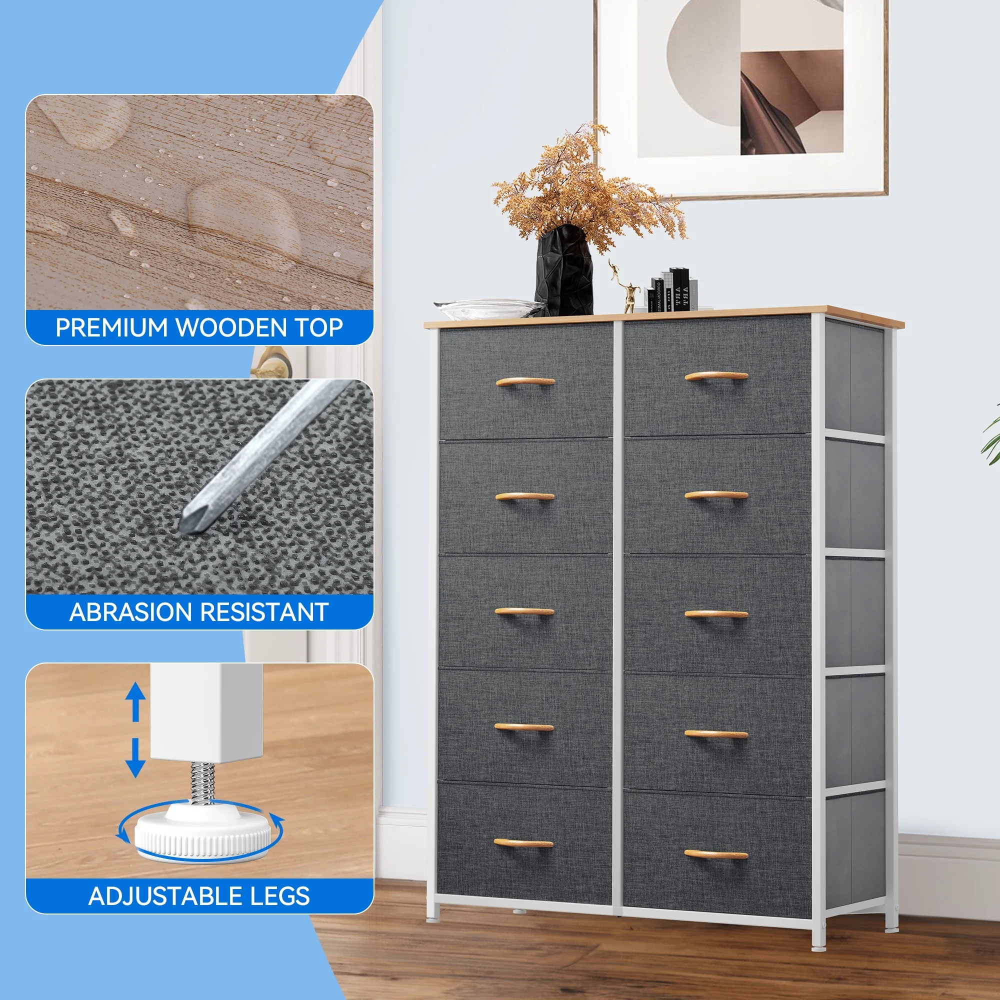 Dextrus Dresser with 10 Drawers - Fabric Storage Tower, Organizer Unit for Bedroom, Living Room, Hallway, Cool Gray