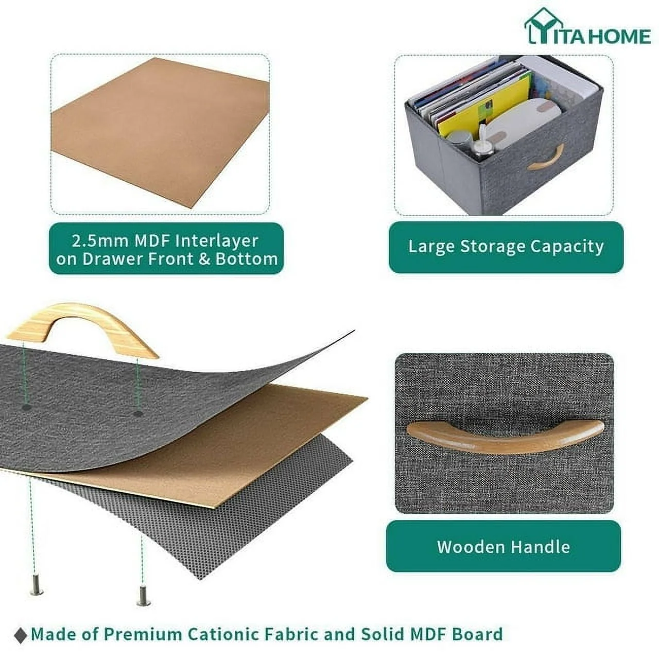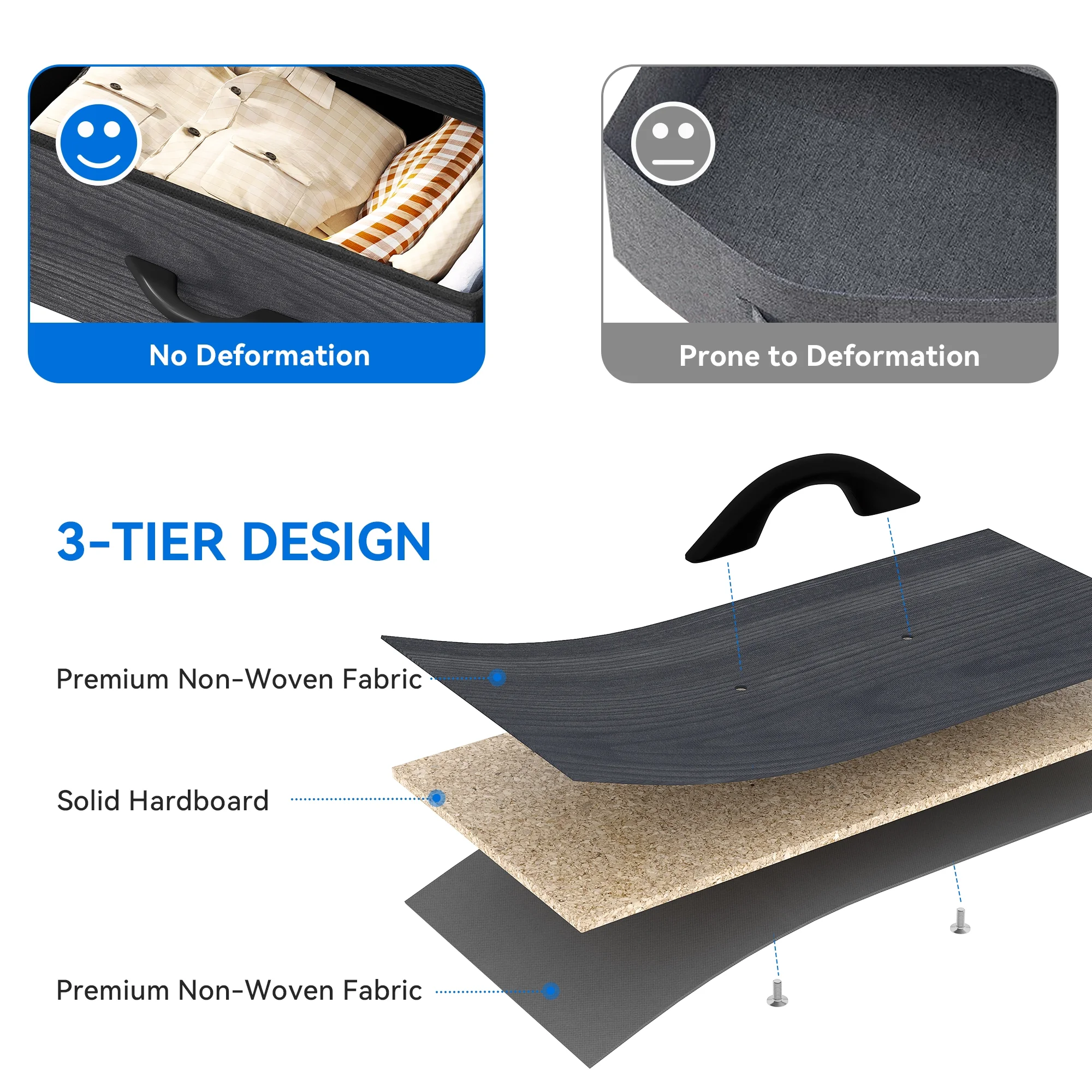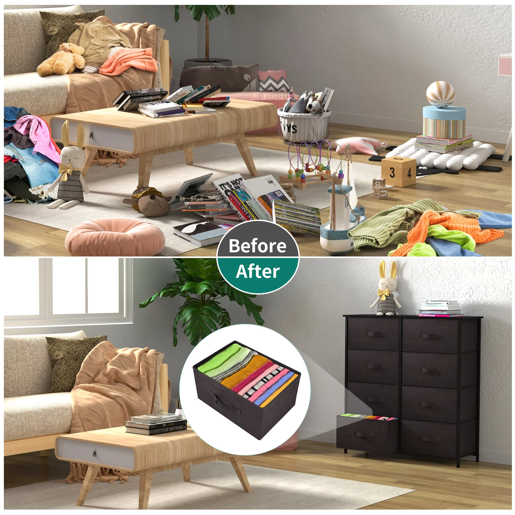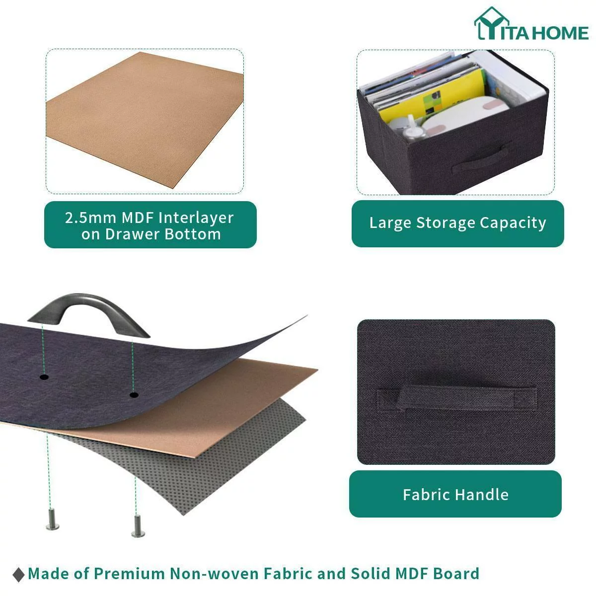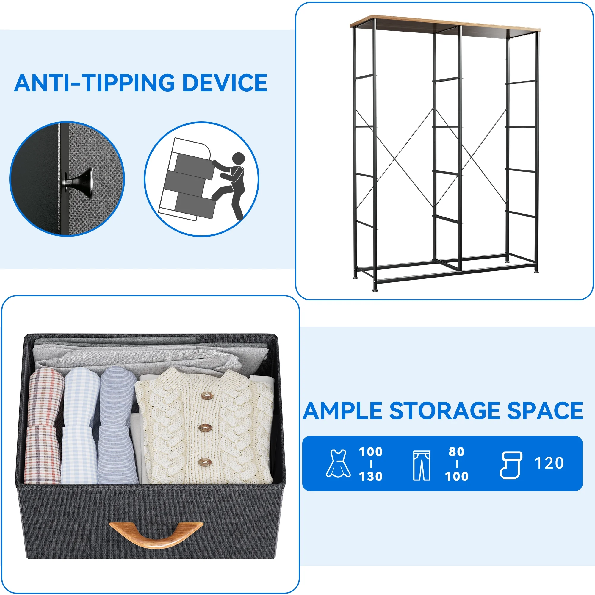 Dextrus 8 Drawer Dresser for Bedroom Fabric Dresser Chest of Closets Storage Units Organizer Tower Wooden Top Shelf, for Bedroom, Hallway, Entryway, Closet(Black Grey)