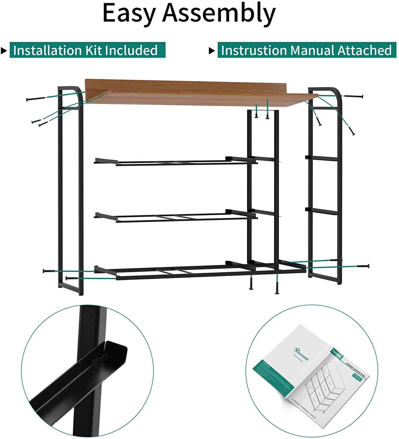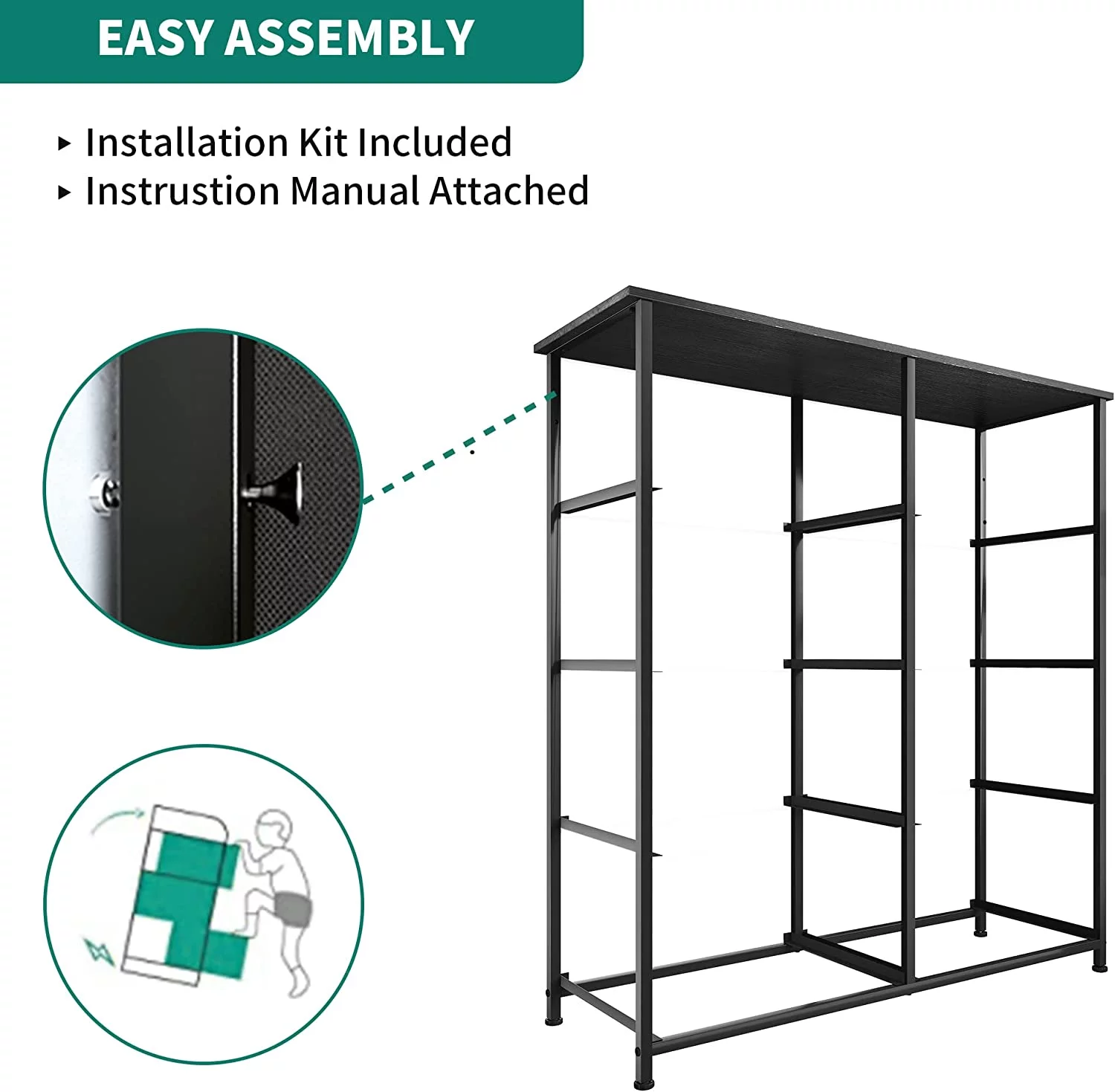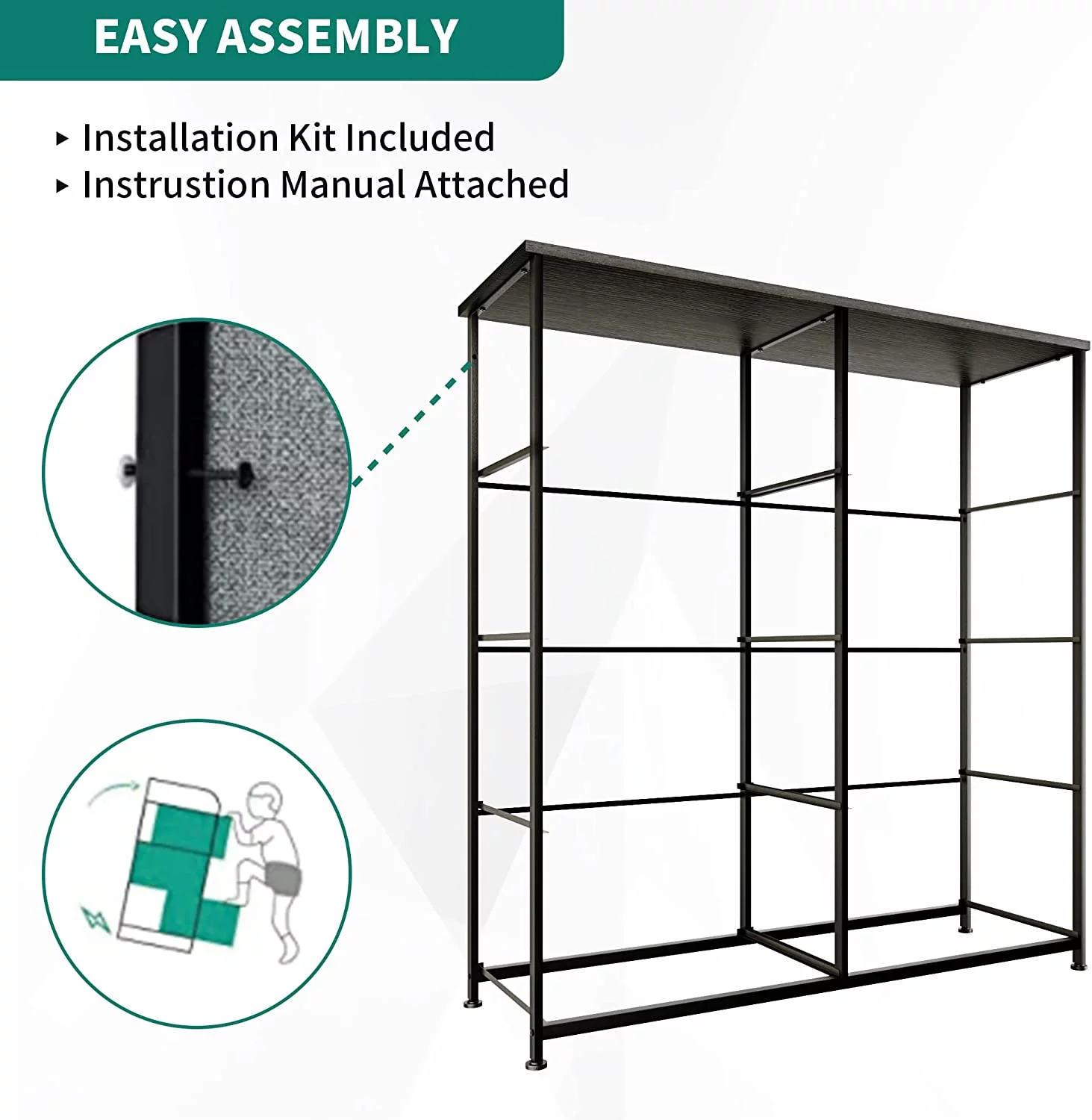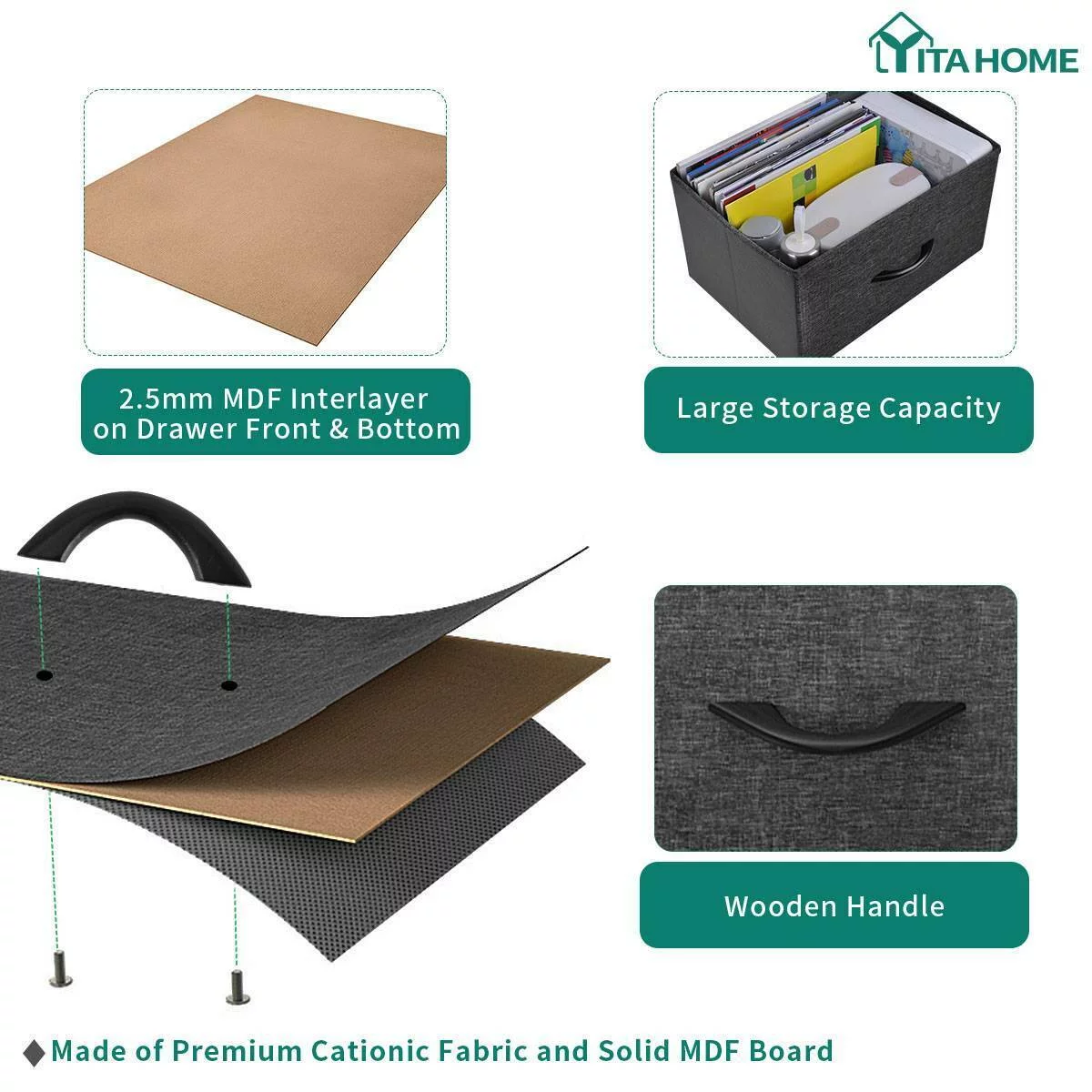 Dextrus 8 Drawer Dresser for Bedroom Fabric Dresser Chest of Closets Storage Units Organizer Tower Wooden Top Shelf, for Bedroom, Hallway, Entryway, Closet(Black Grey)