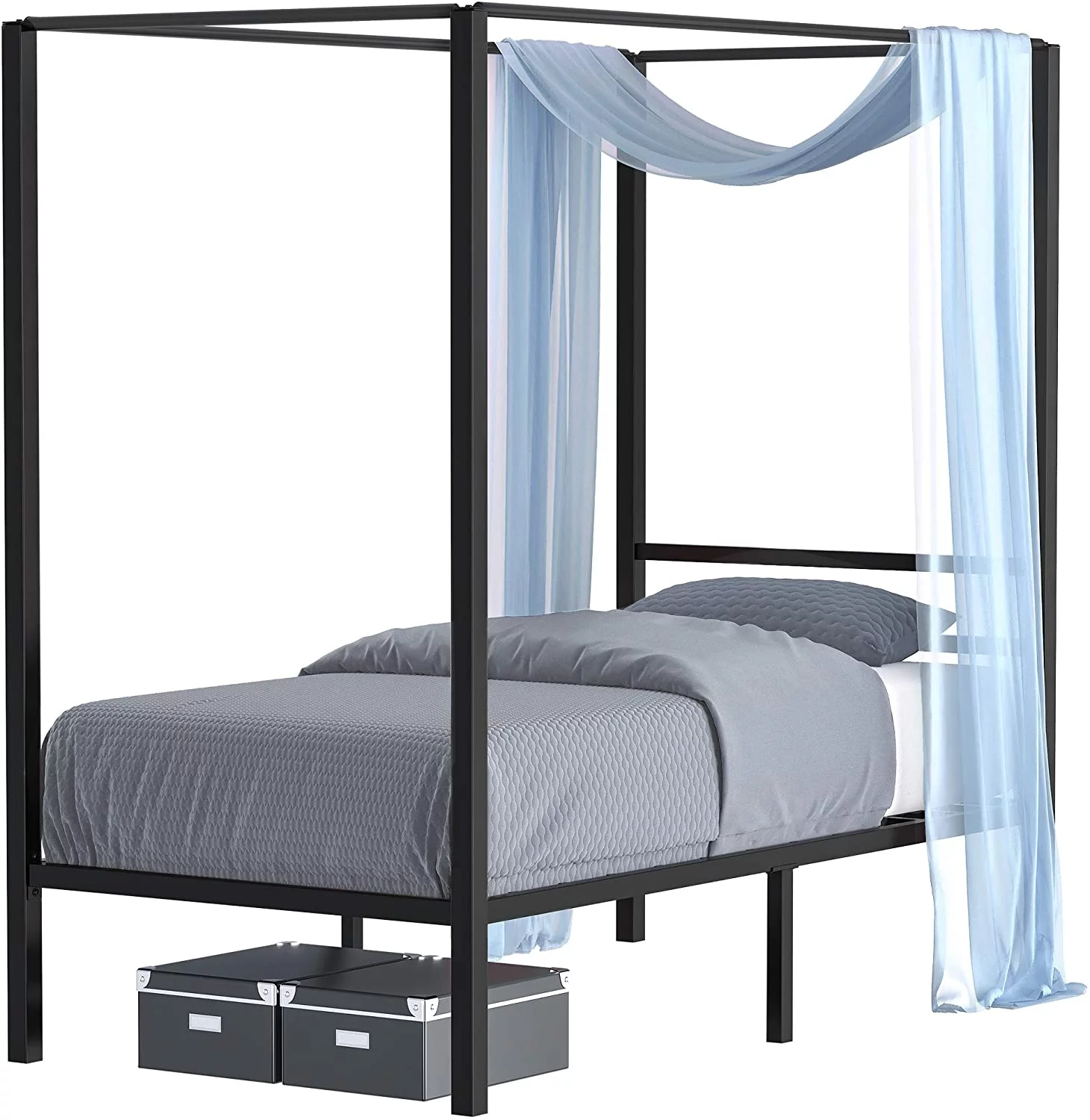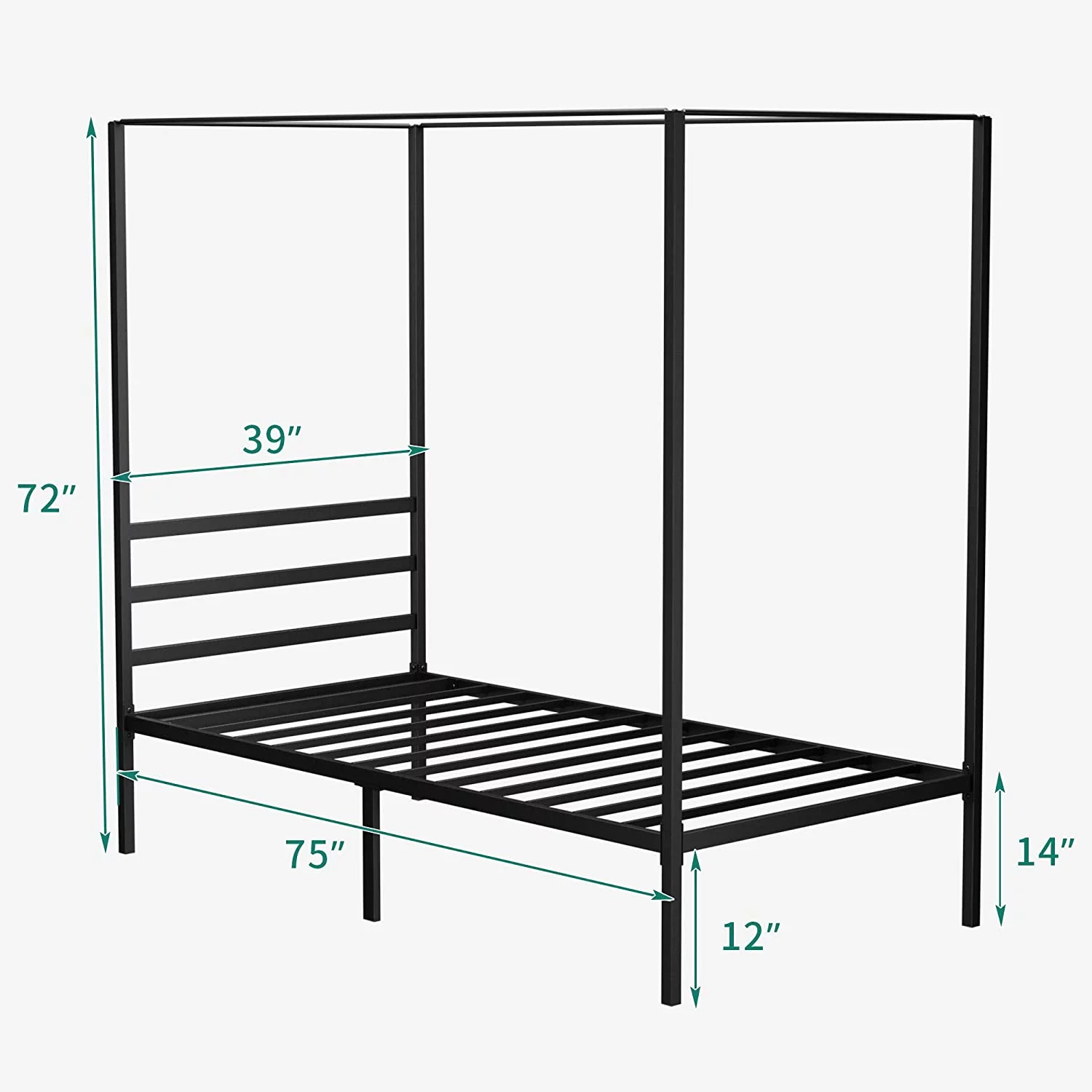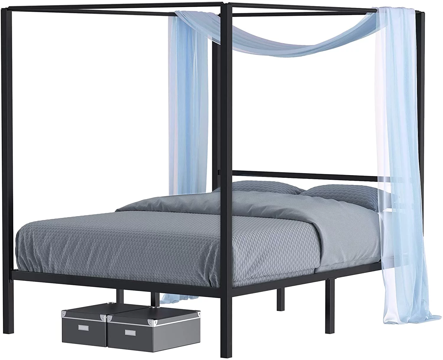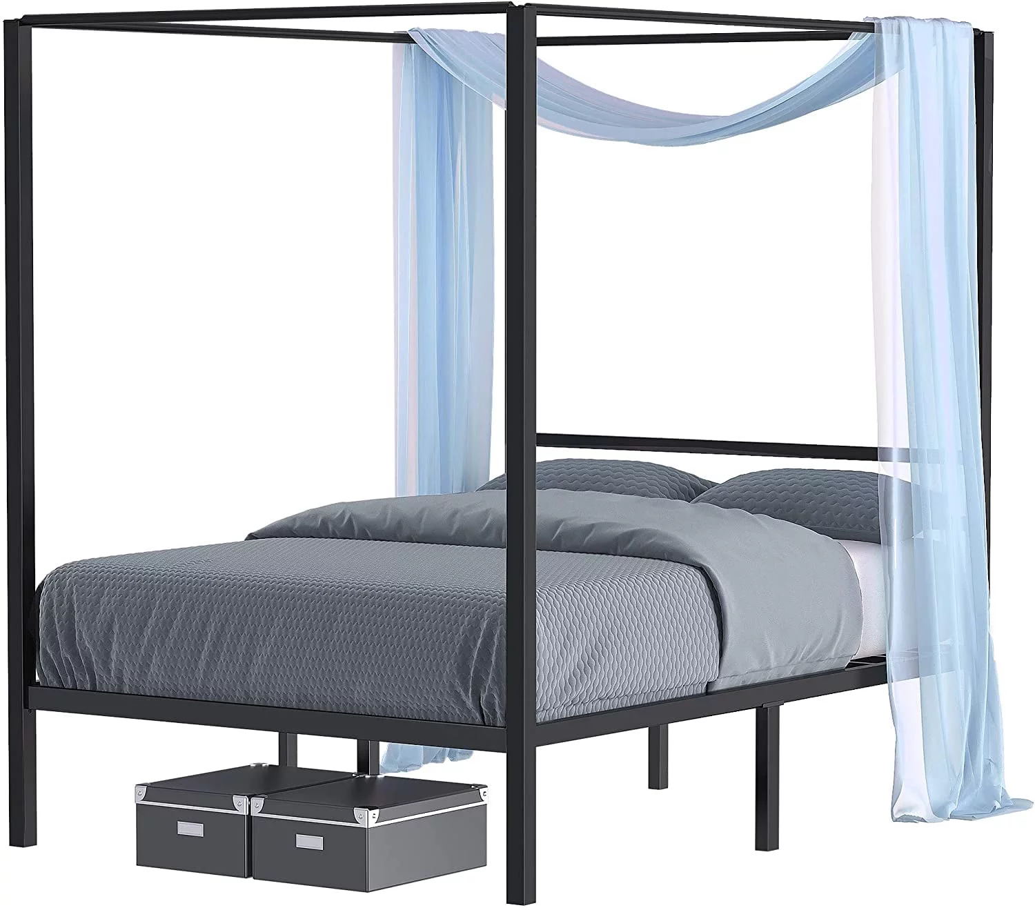 Dextrus Metal Canopy Bed Frame 14 Inch Platform Four Posters Bed with Built-in Headboard Strong Metal Slat Mattress Support, No Box Spring Needed, Black, Full Size