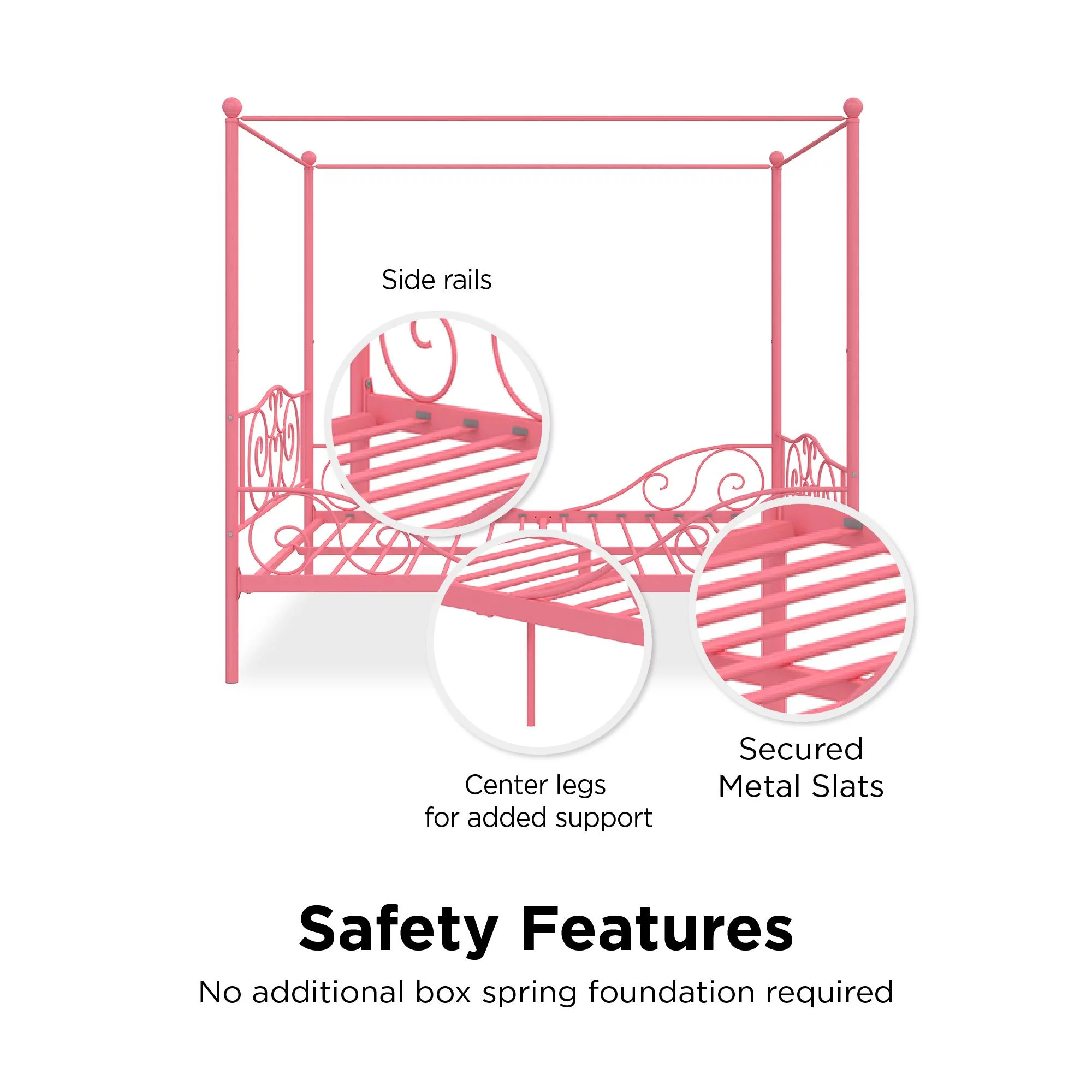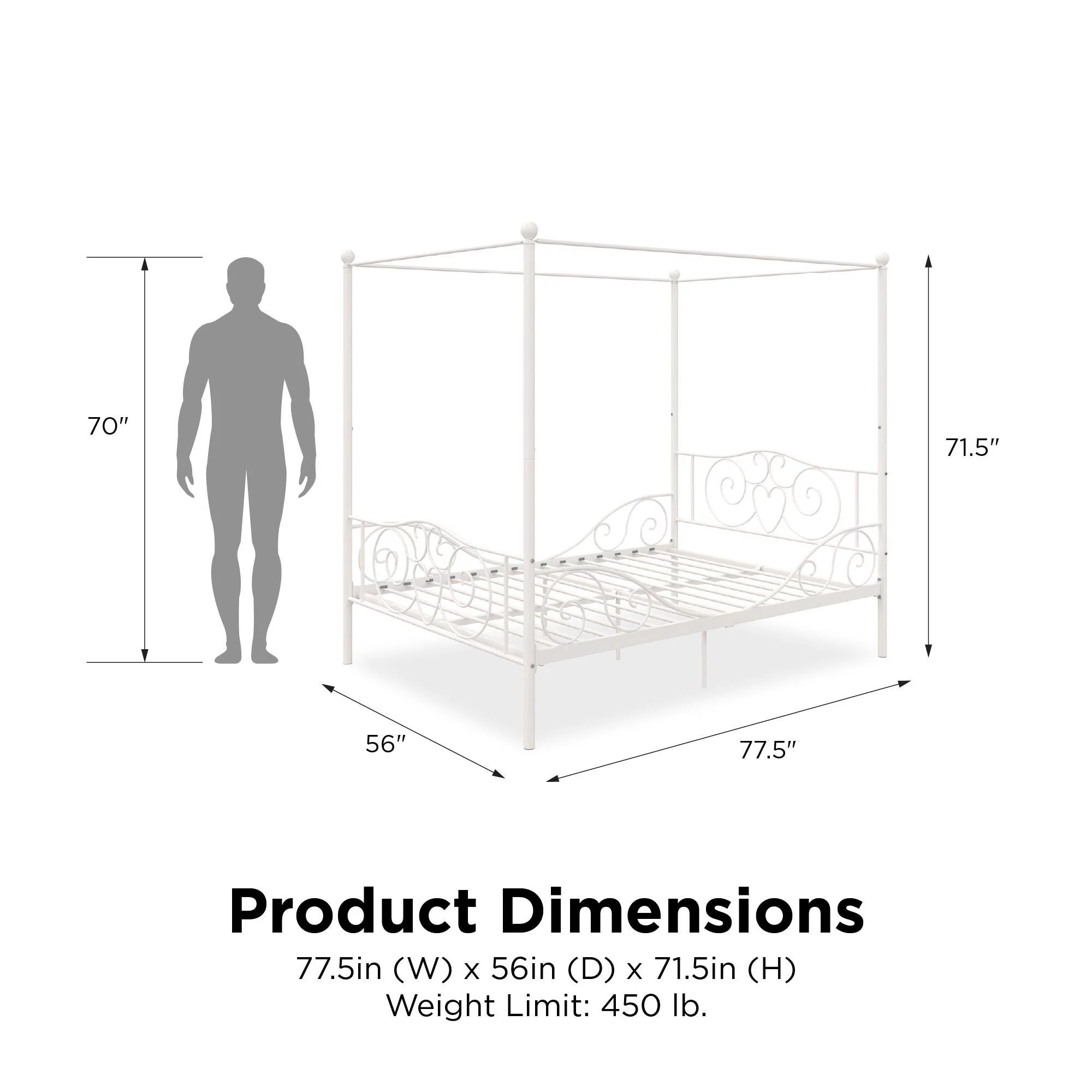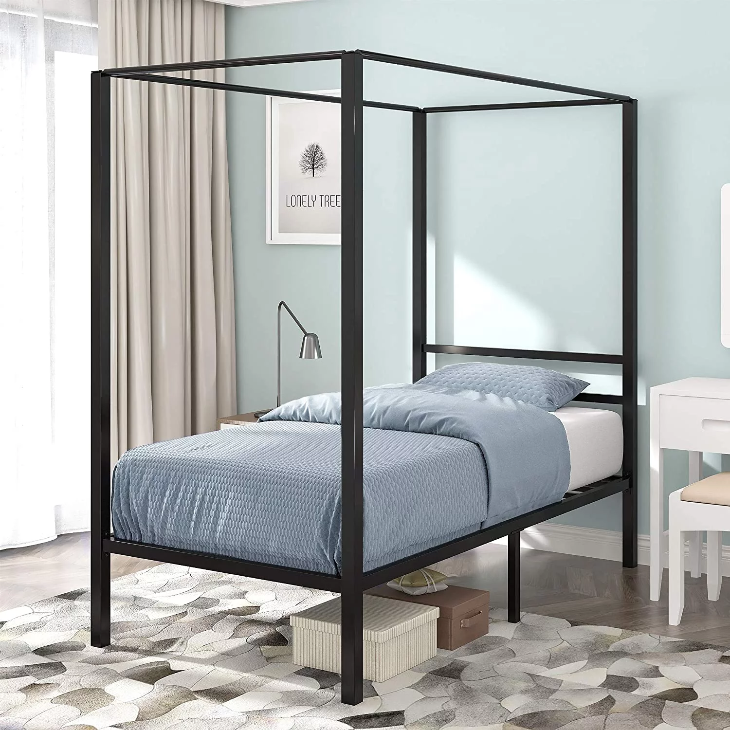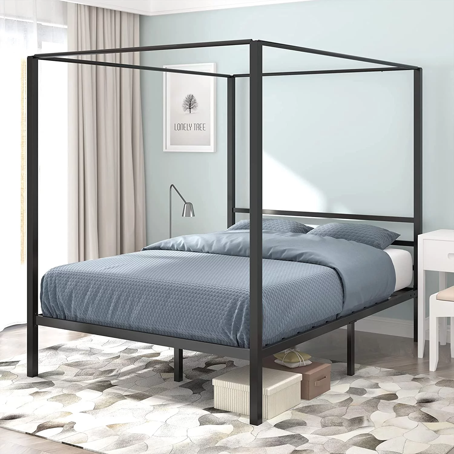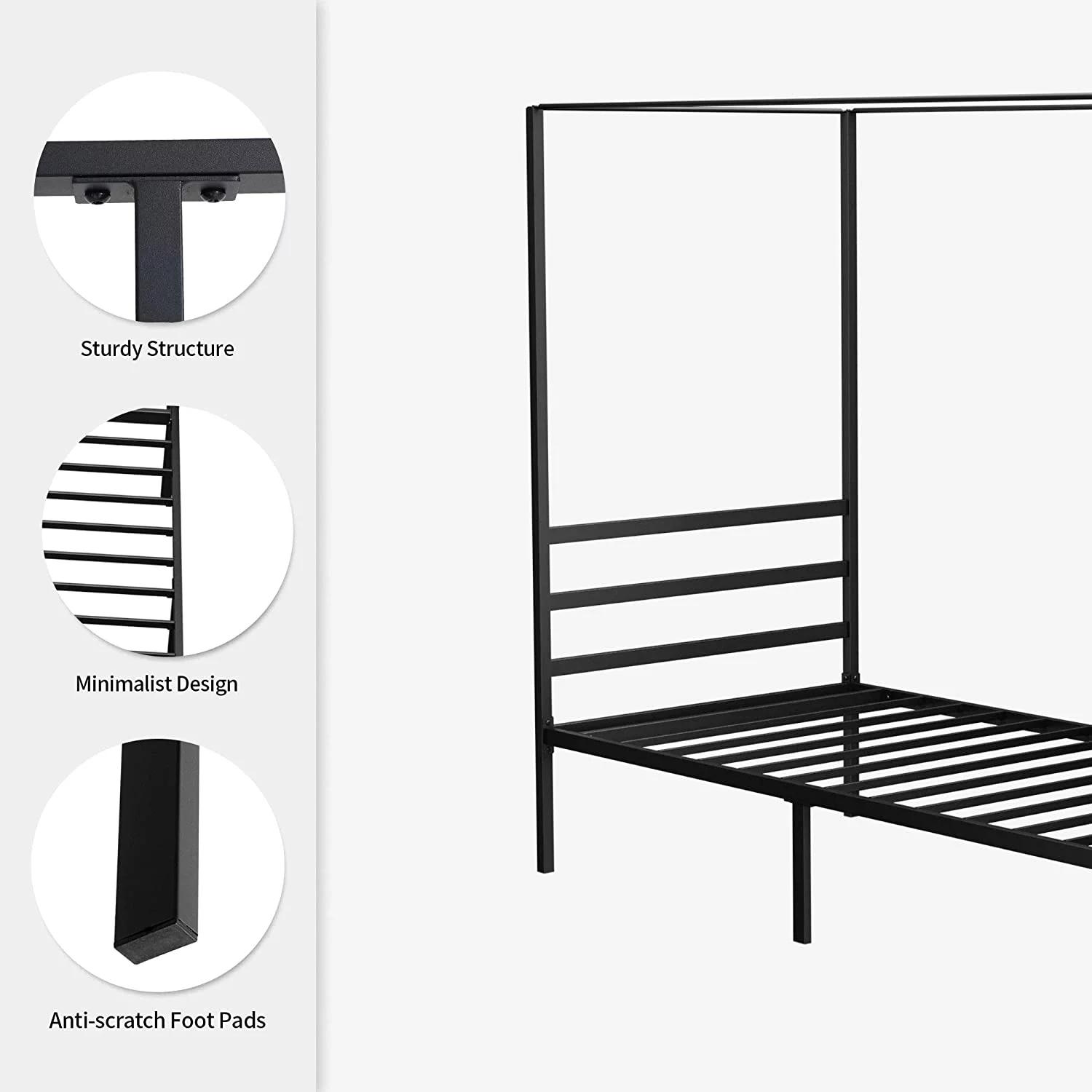 Dextrus Metal Canopy Bed Frame 14 Inch Platform Four Posters Bed with Built-in Headboard Strong Metal Slat Mattress Support, No Box Spring Needed, Black, Full Size