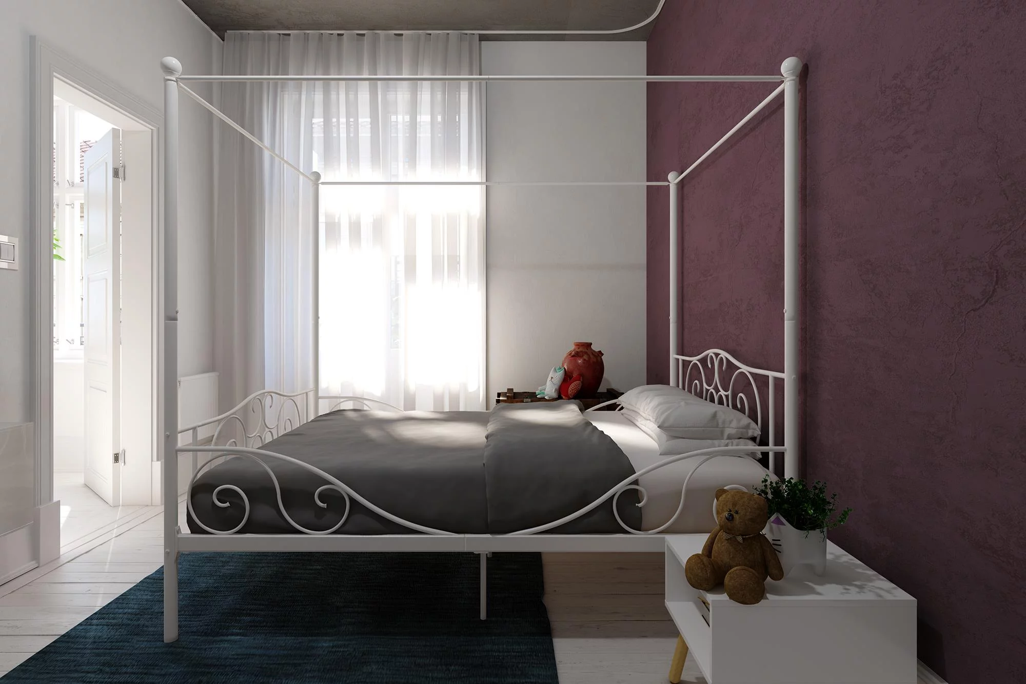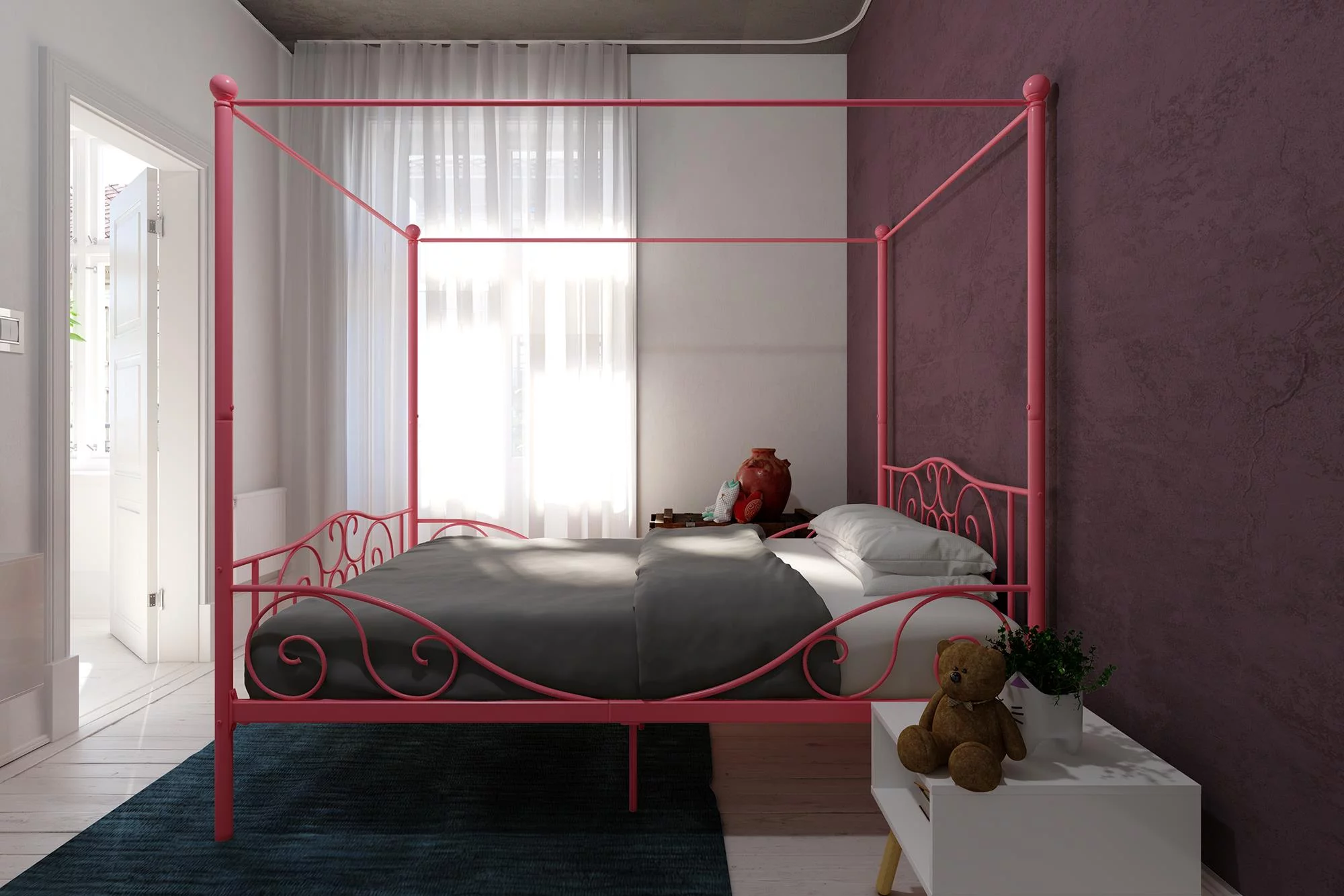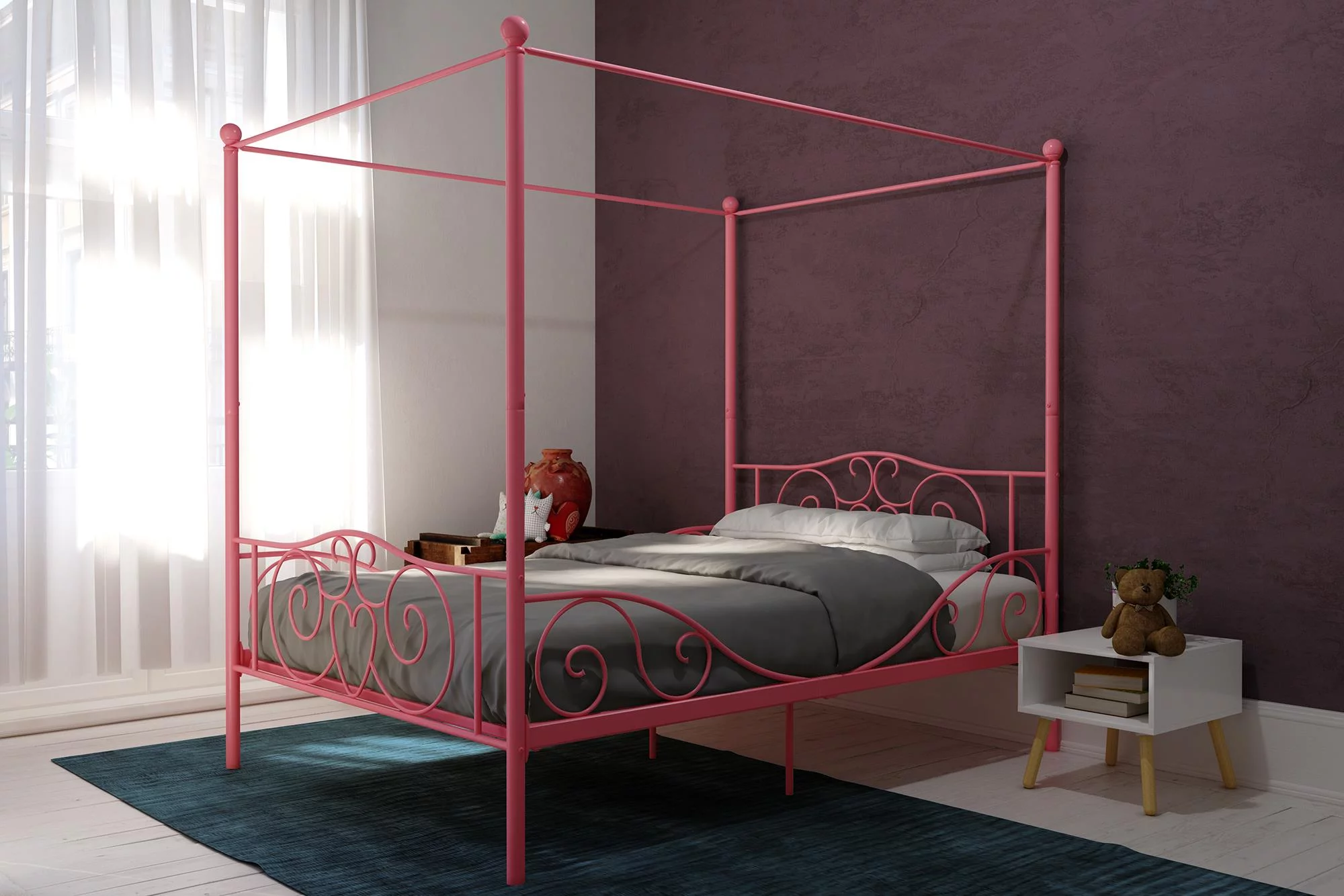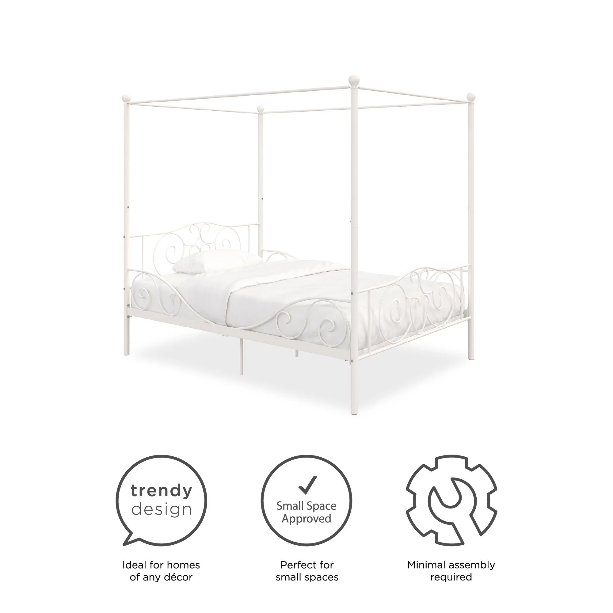 Dextrus Metal Canopy Bed Frame 14 Inch Platform Four Posters Bed with Built-in Headboard Strong Metal Slat Mattress Support, No Box Spring Needed, Black, Full Size