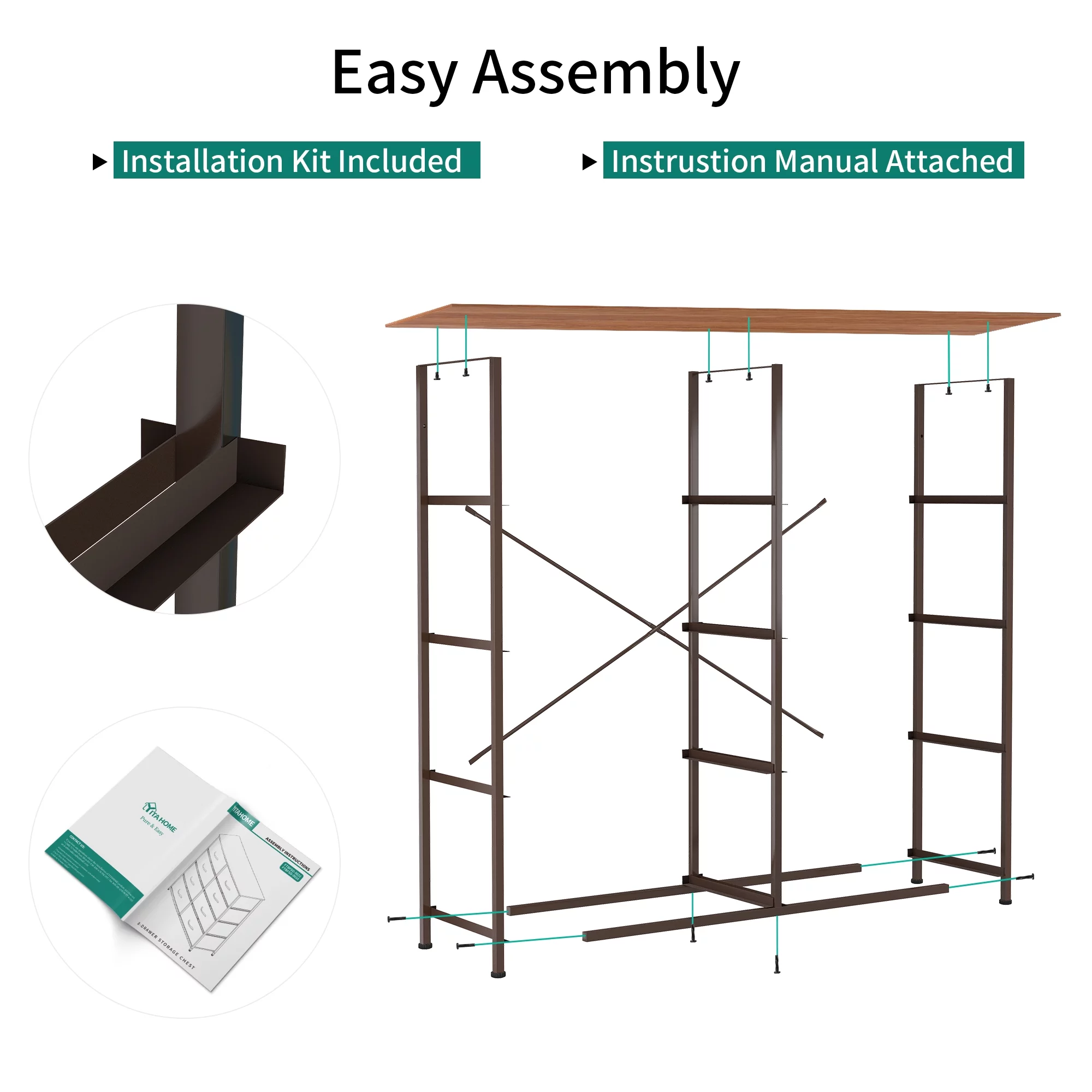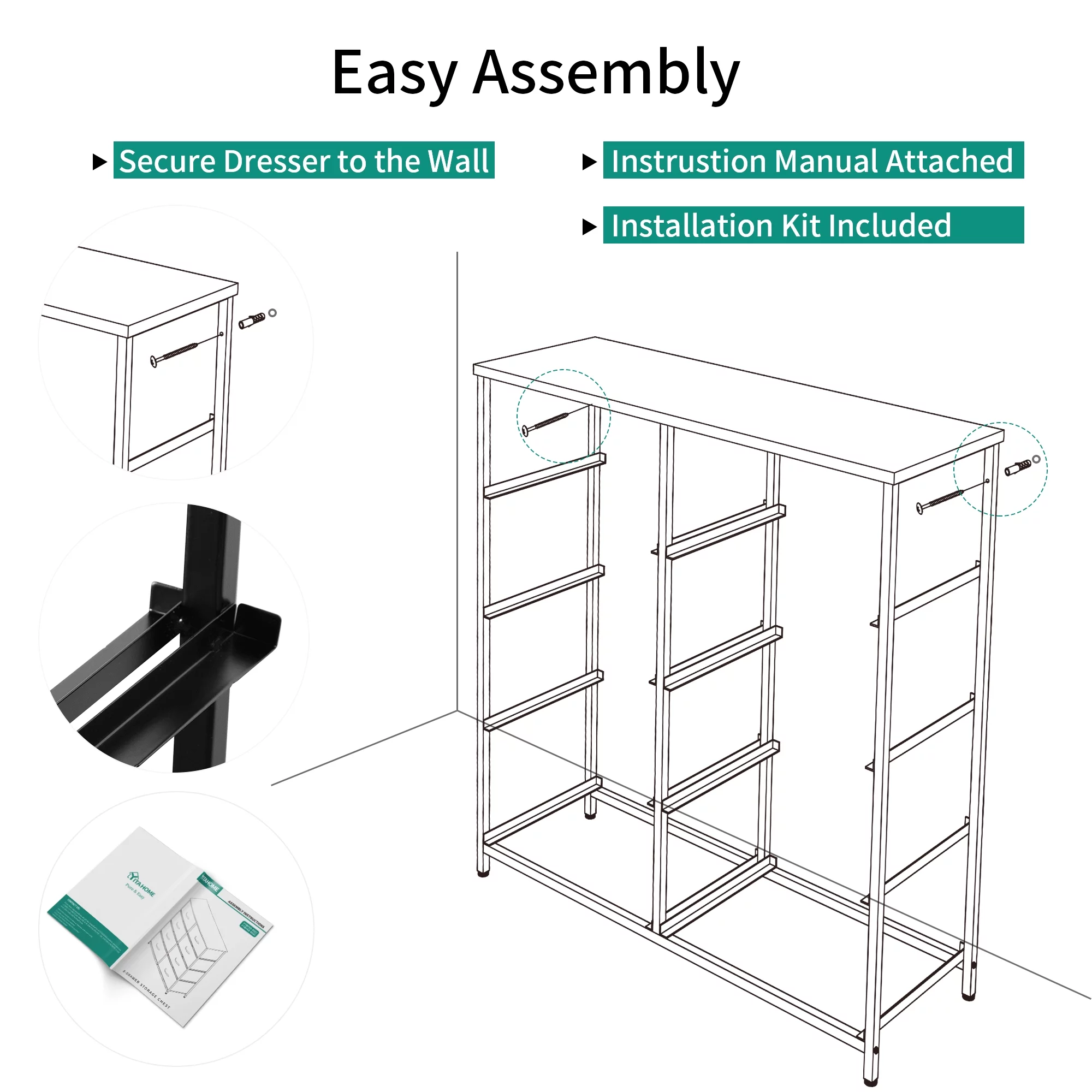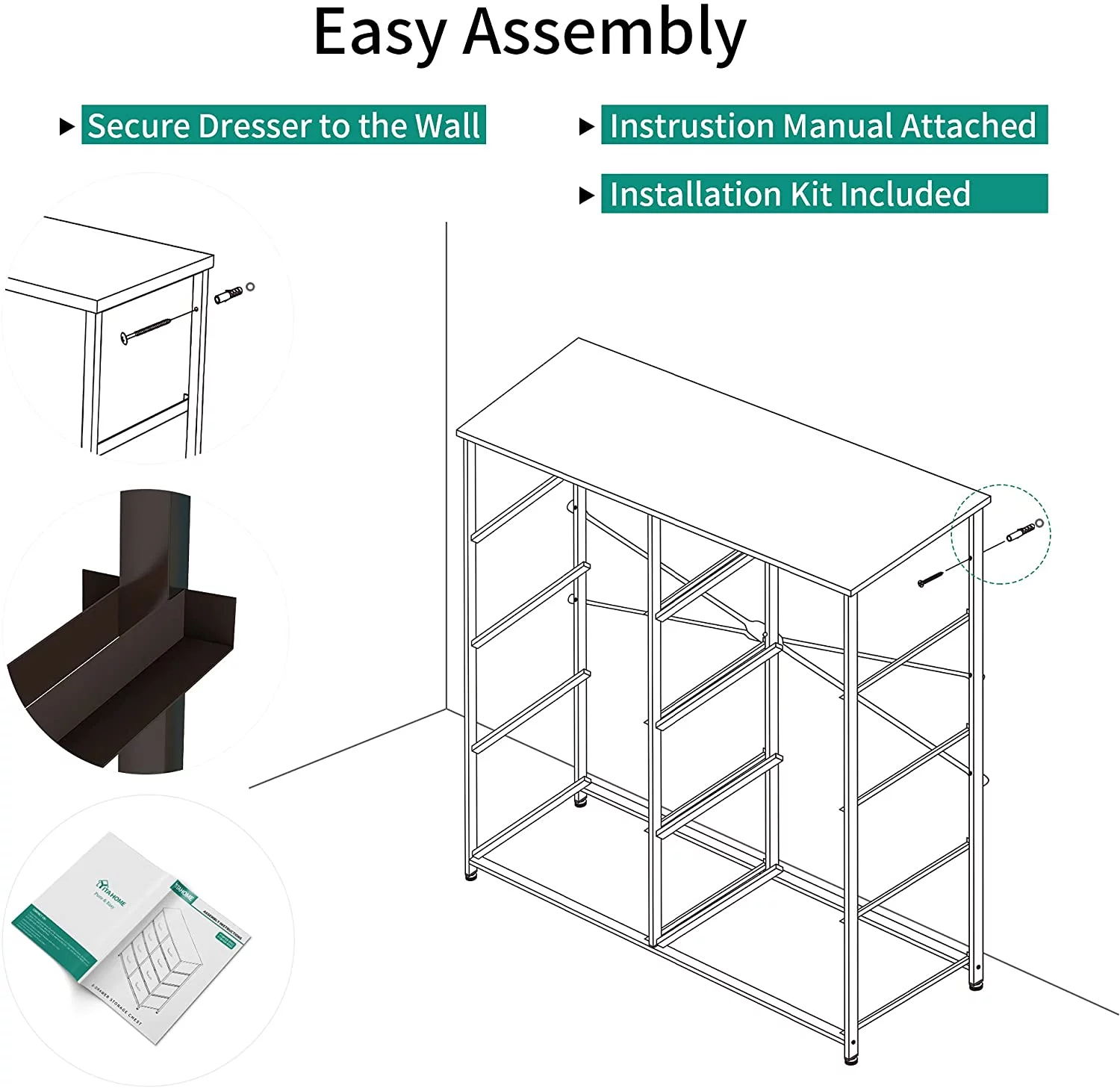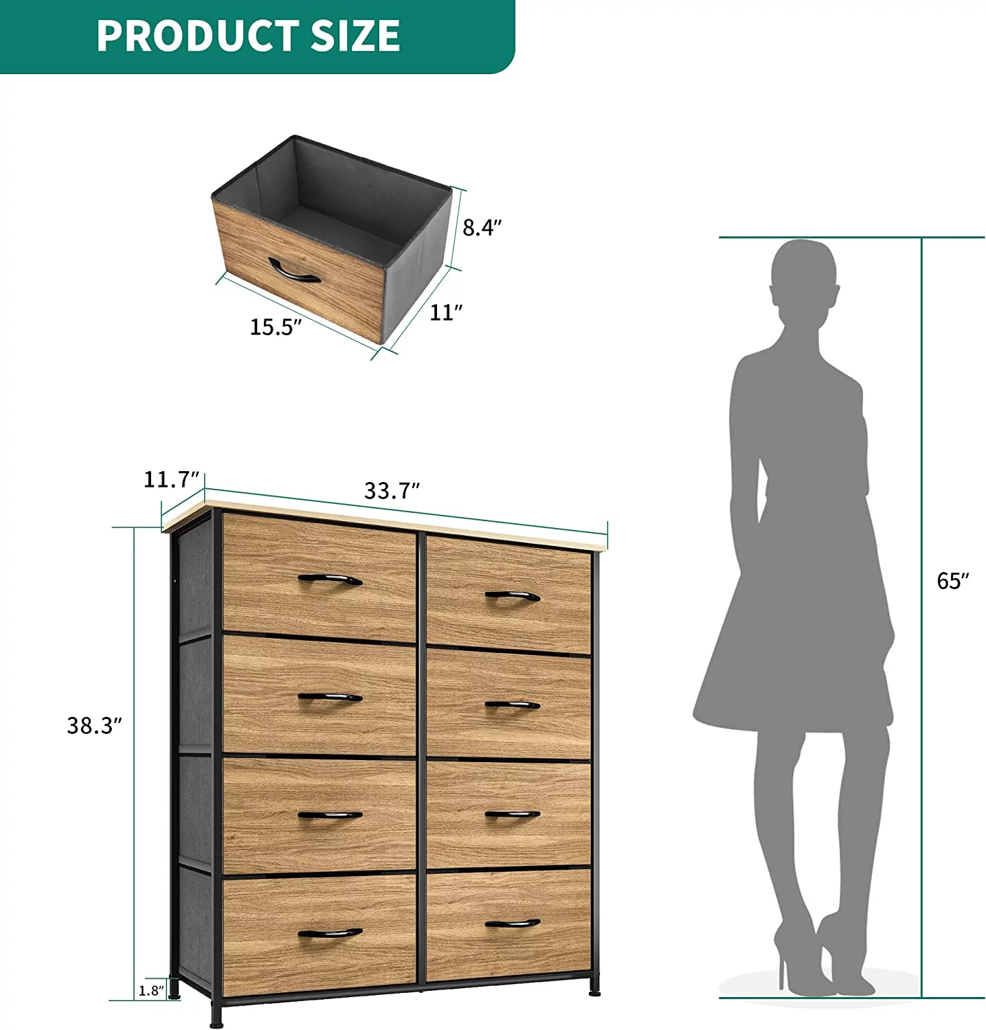 Dextrus 8 Drawers Tall Dresser for Bedroom, Storage Tower with Fabric Bins, Chest of Drawers for Closet & Living Room - Sturdy Steel Frame, Wooden Top