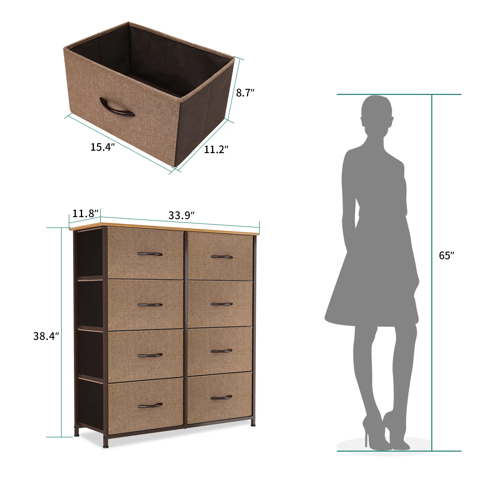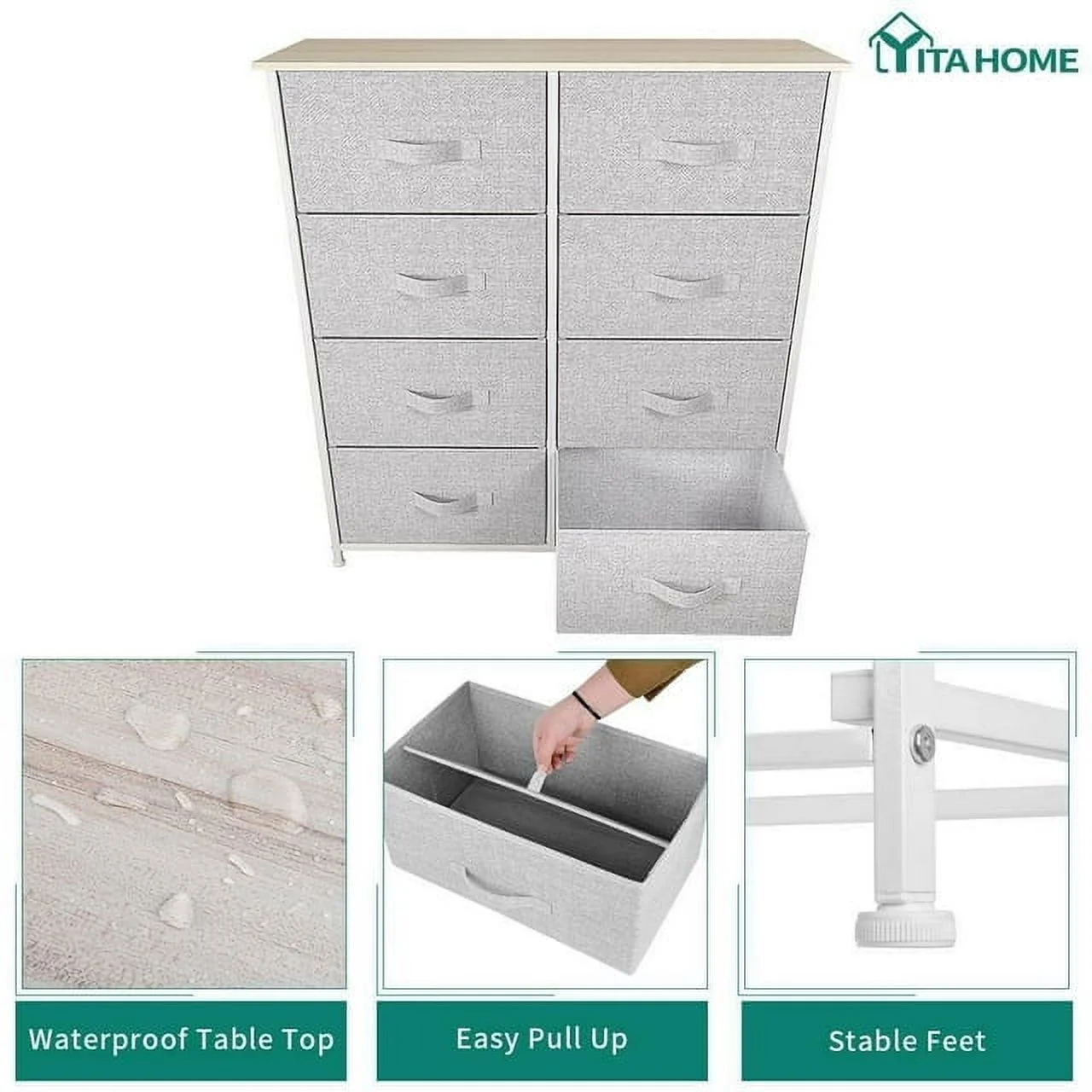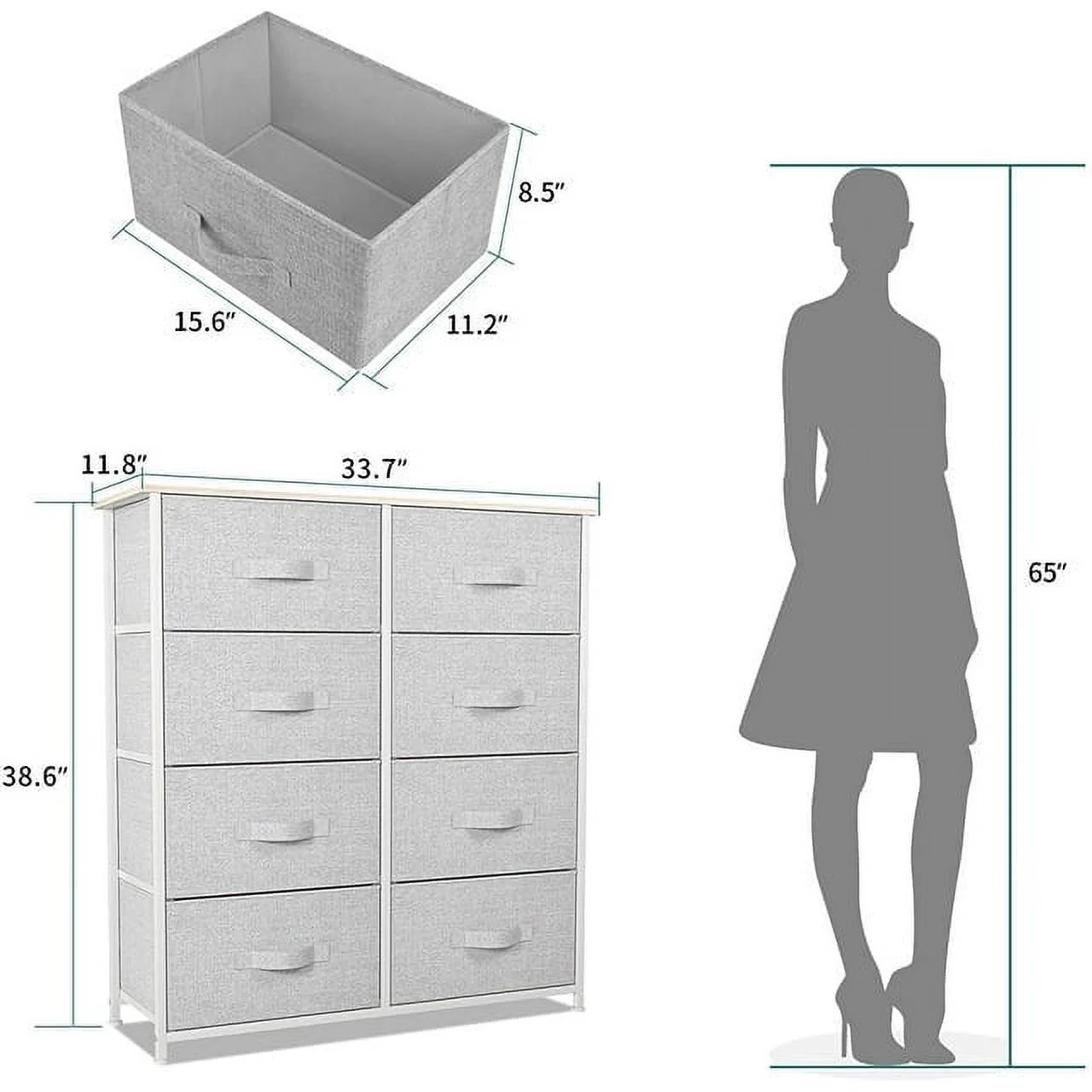 Dextrus 8-Drawer Fabric Dresser, Furniture Storage Tower Cabinet, Organizer for Bedroom, Living Room, Hallway