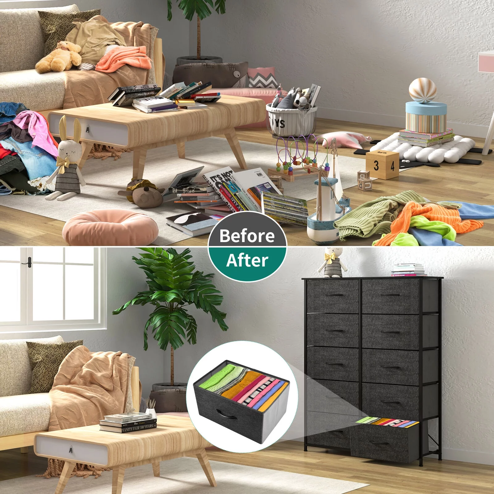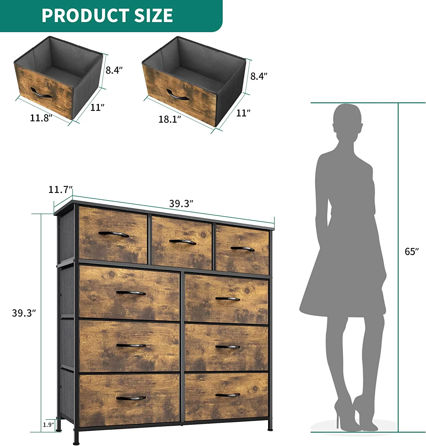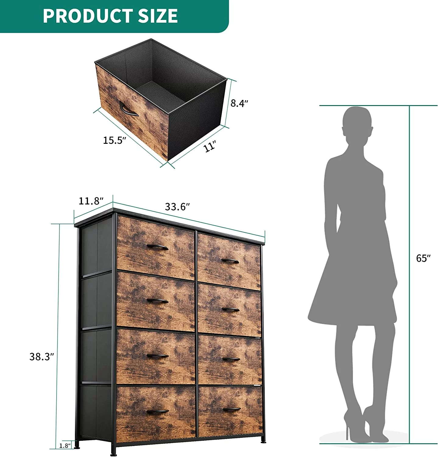 Dextrus 8-Drawer Fabric Dresser, Furniture Storage Tower Cabinet, Organizer for Bedroom, Living Room, Hallway