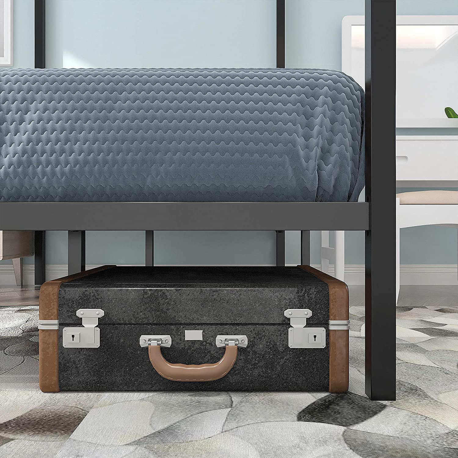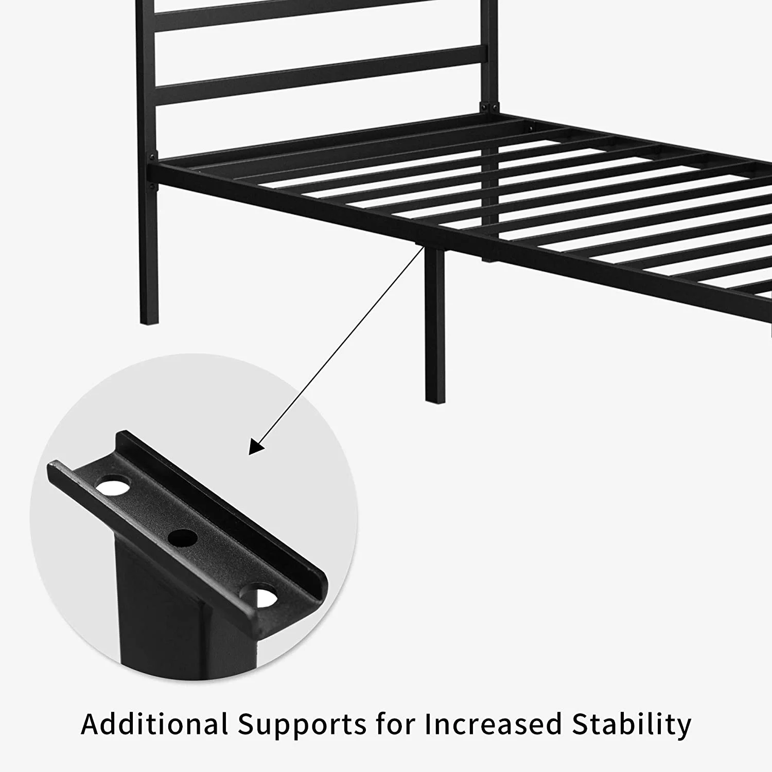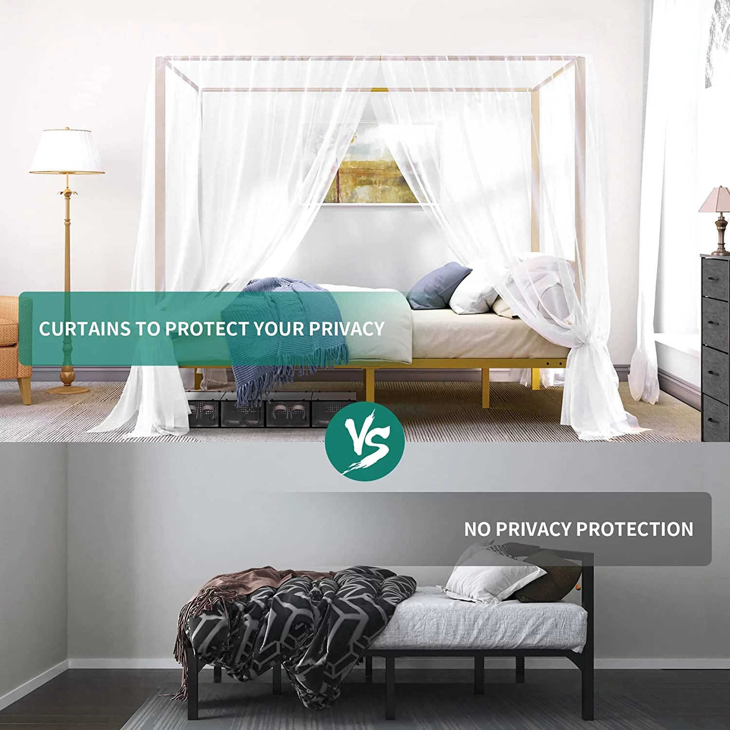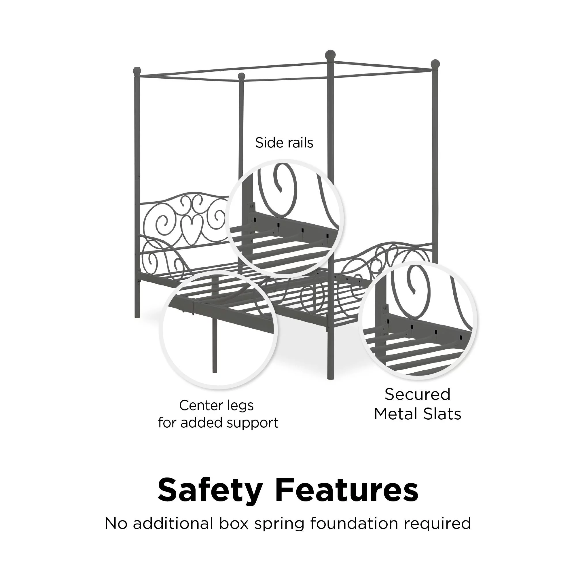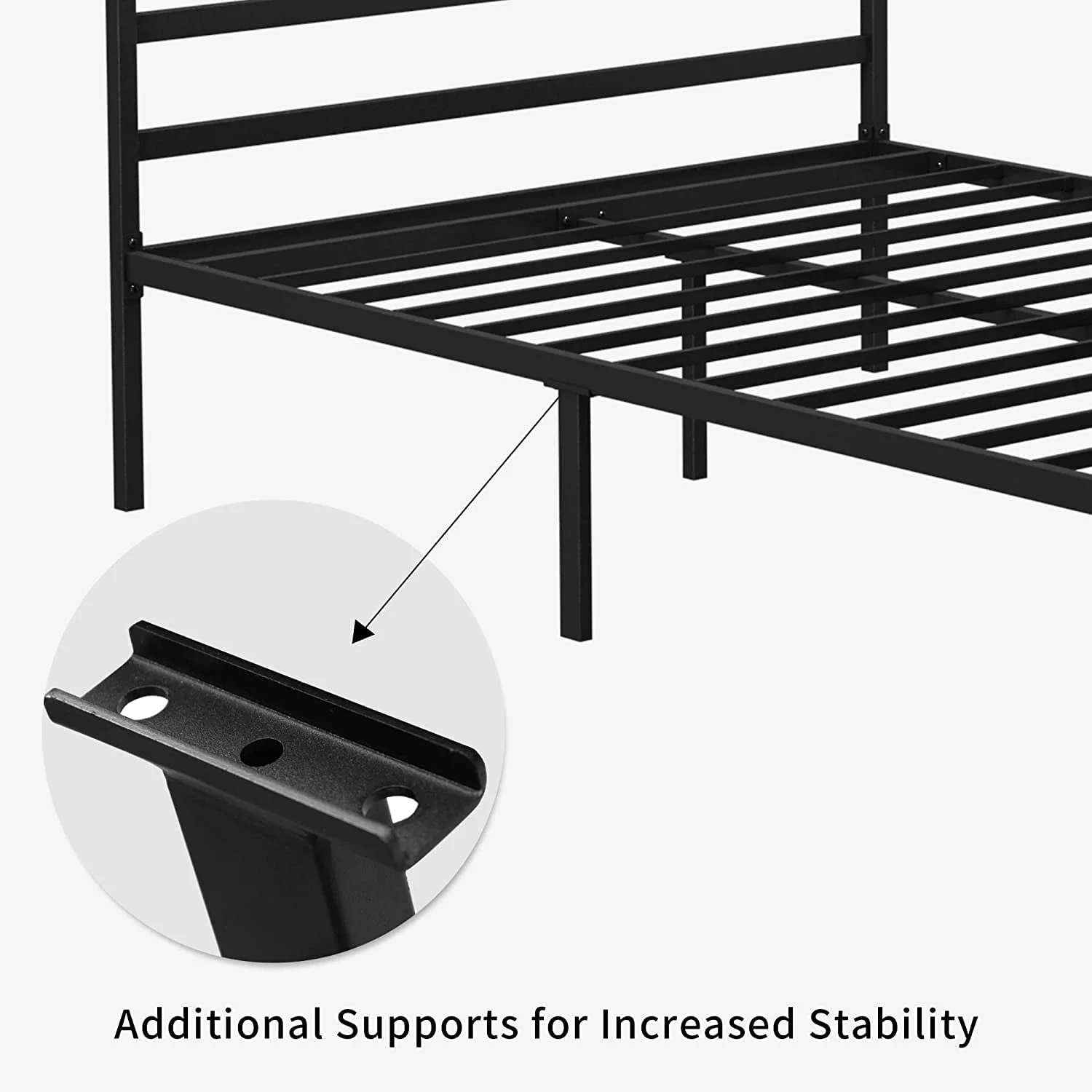 Dextrus Metal Canopy Bed Frame 14" Platform with Headboard Strong Metal Slat Support Mattress Foundation, No Box Spring Needed, Black, Queen Size