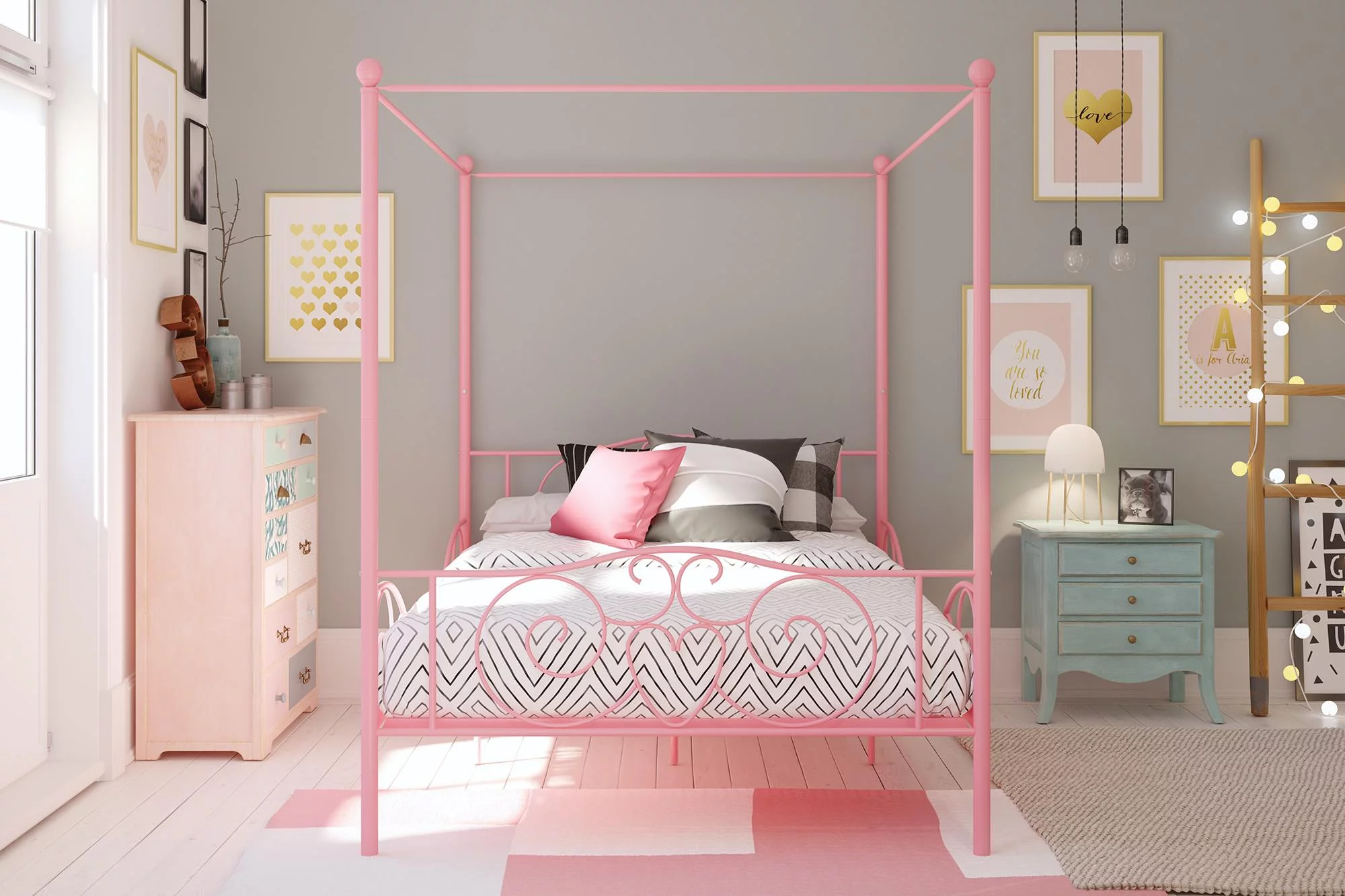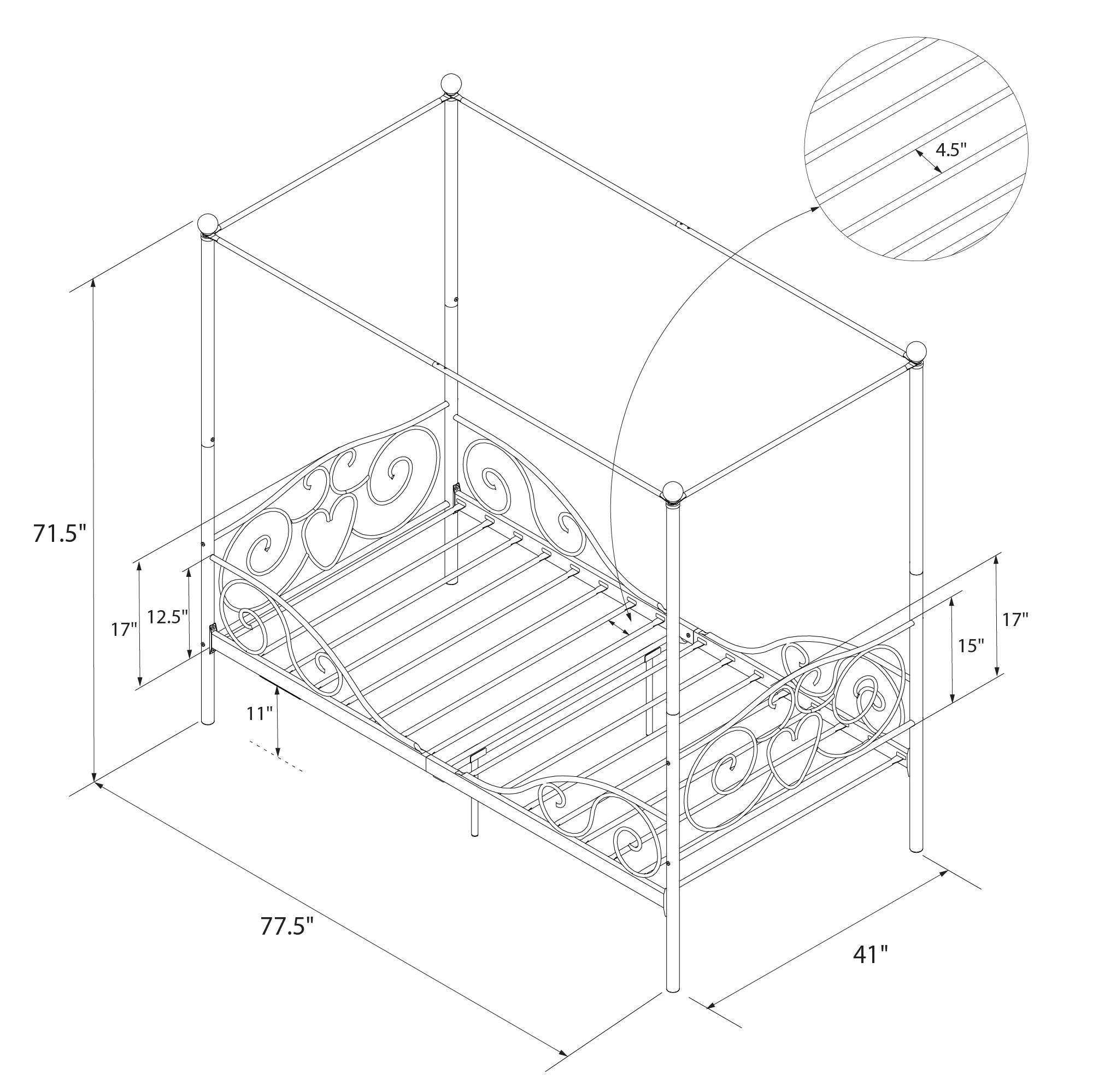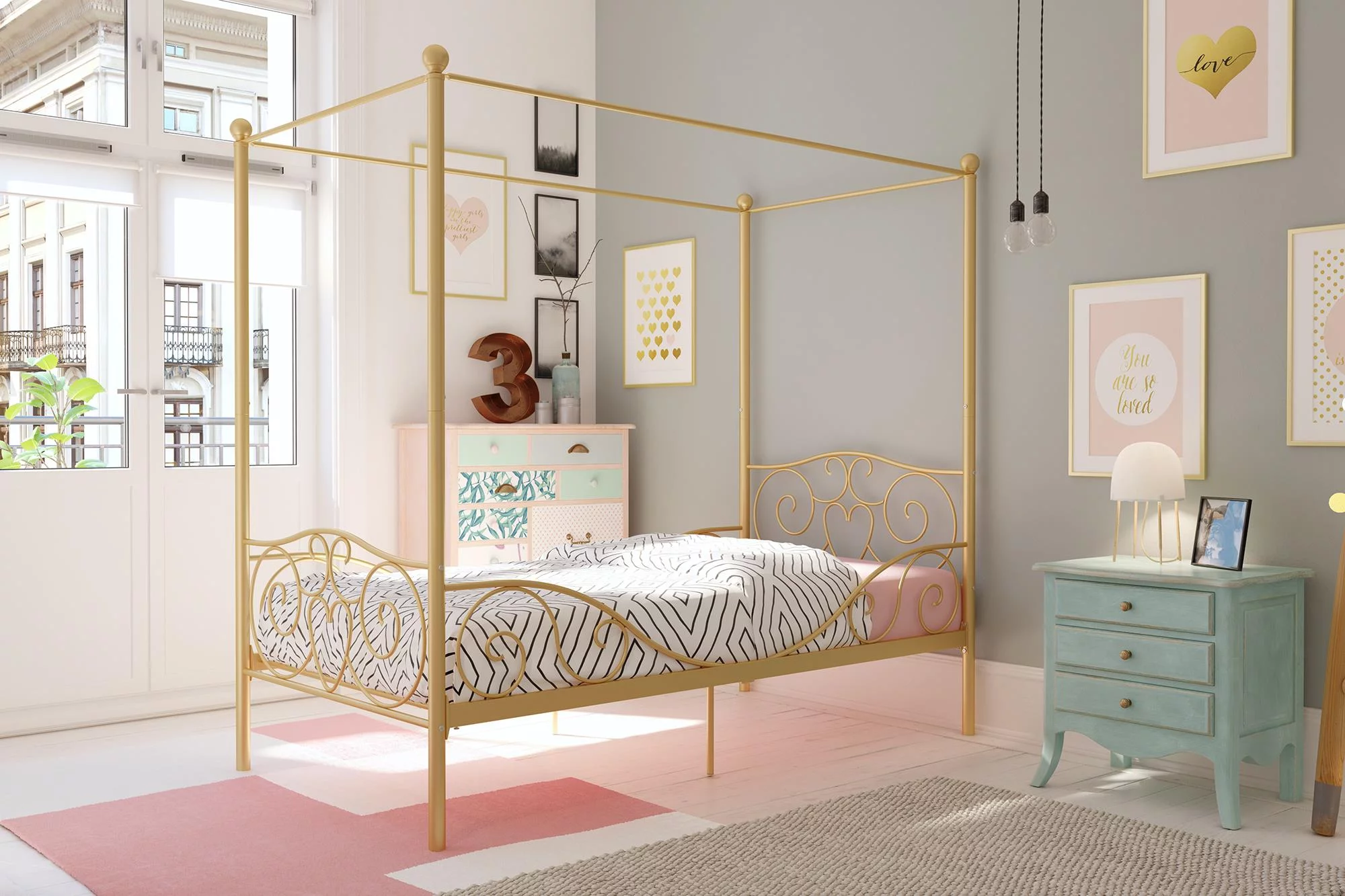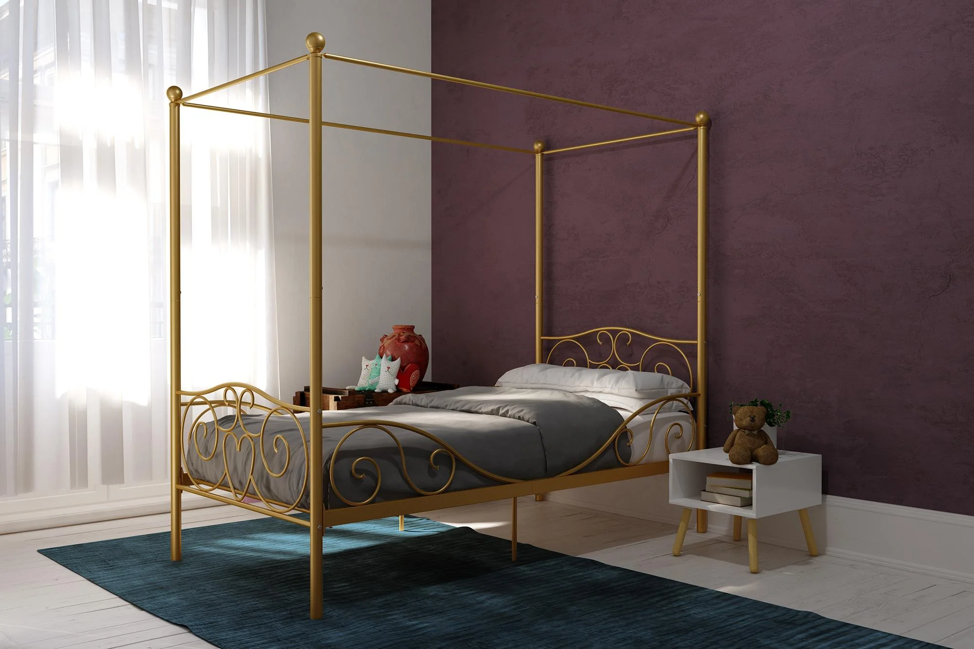 DHP Canopy Metal Bed, Twin, Gold