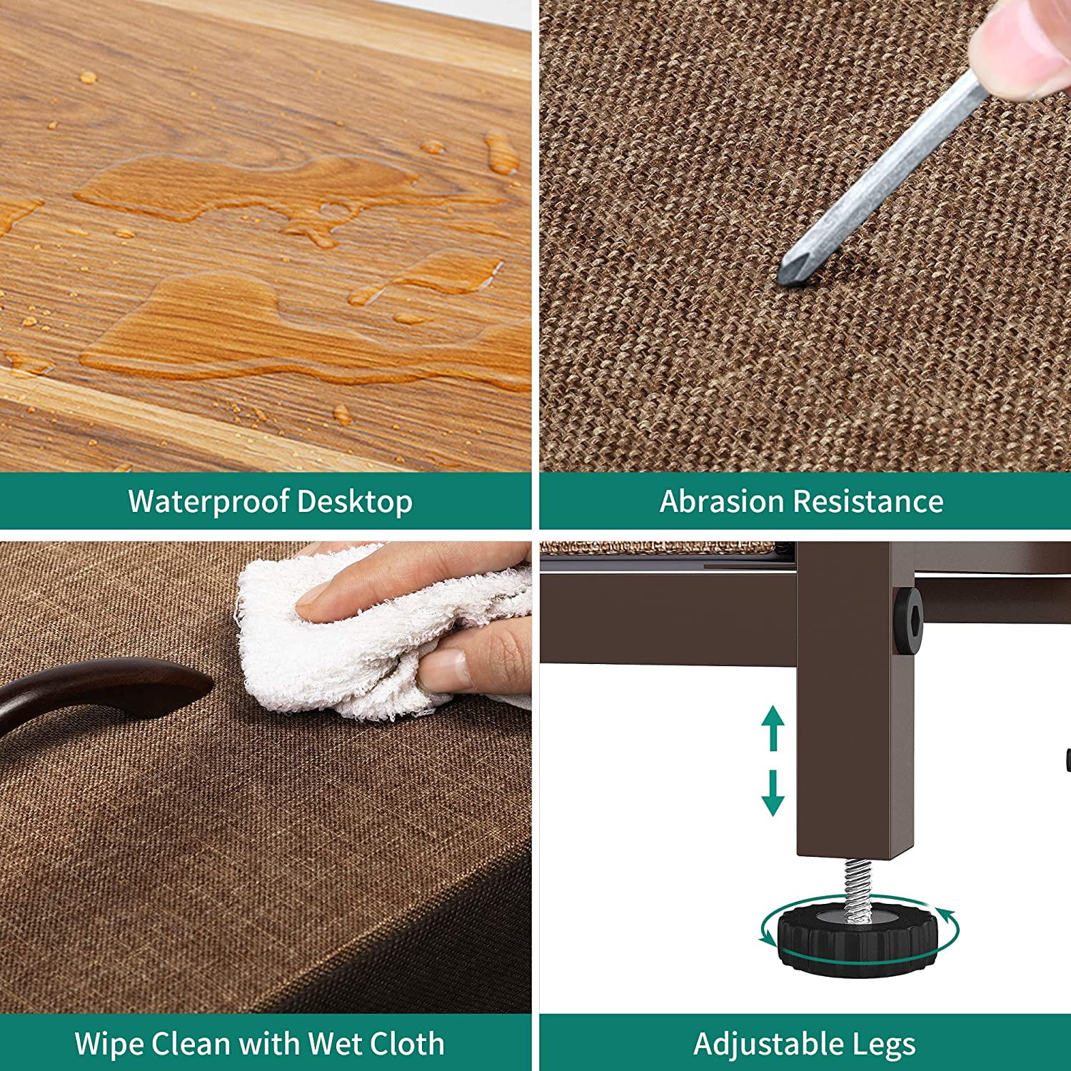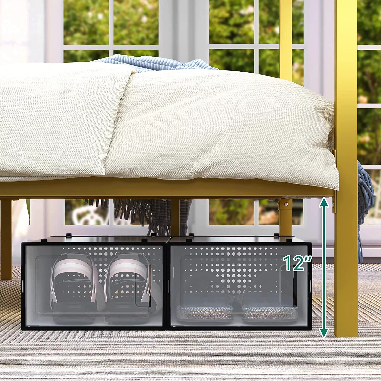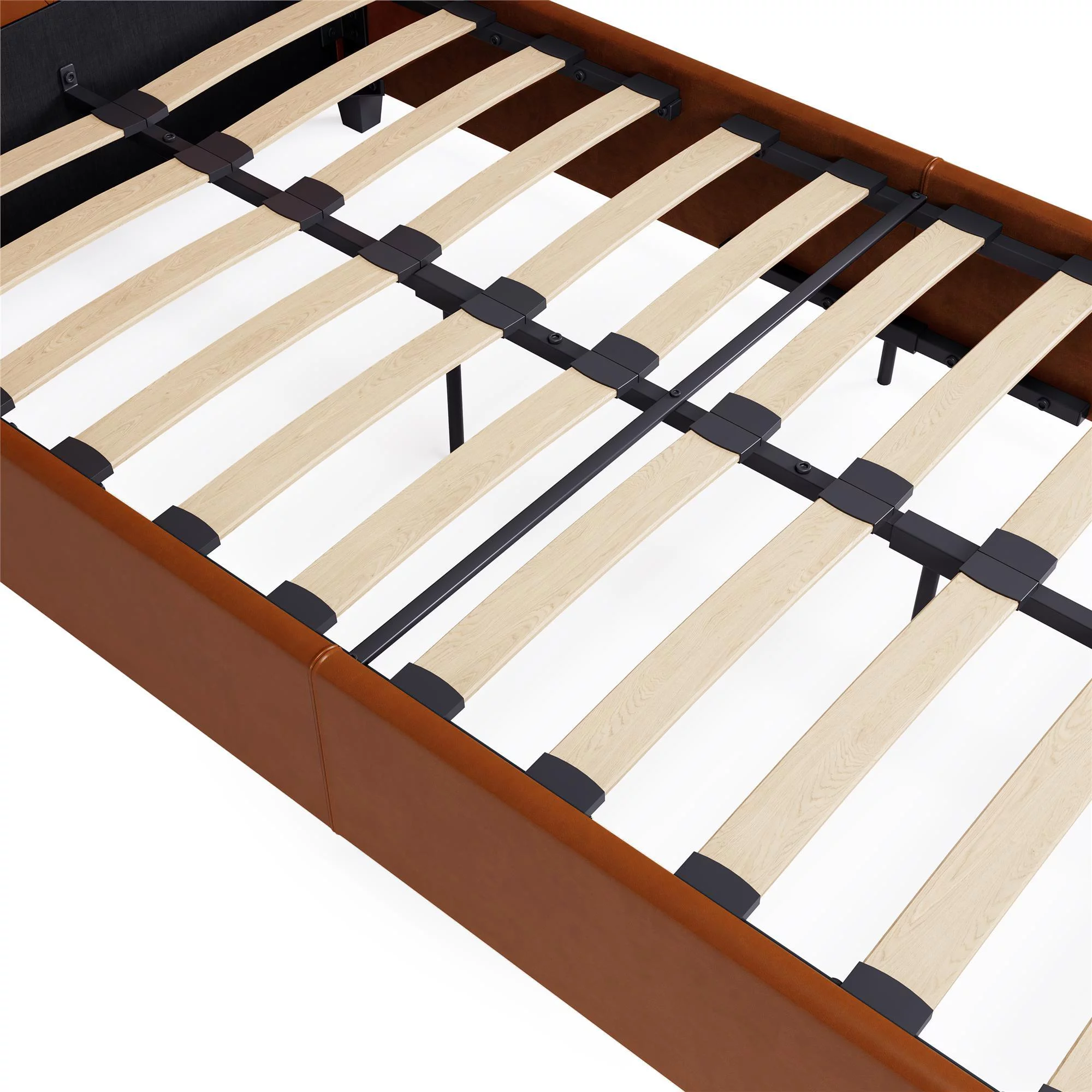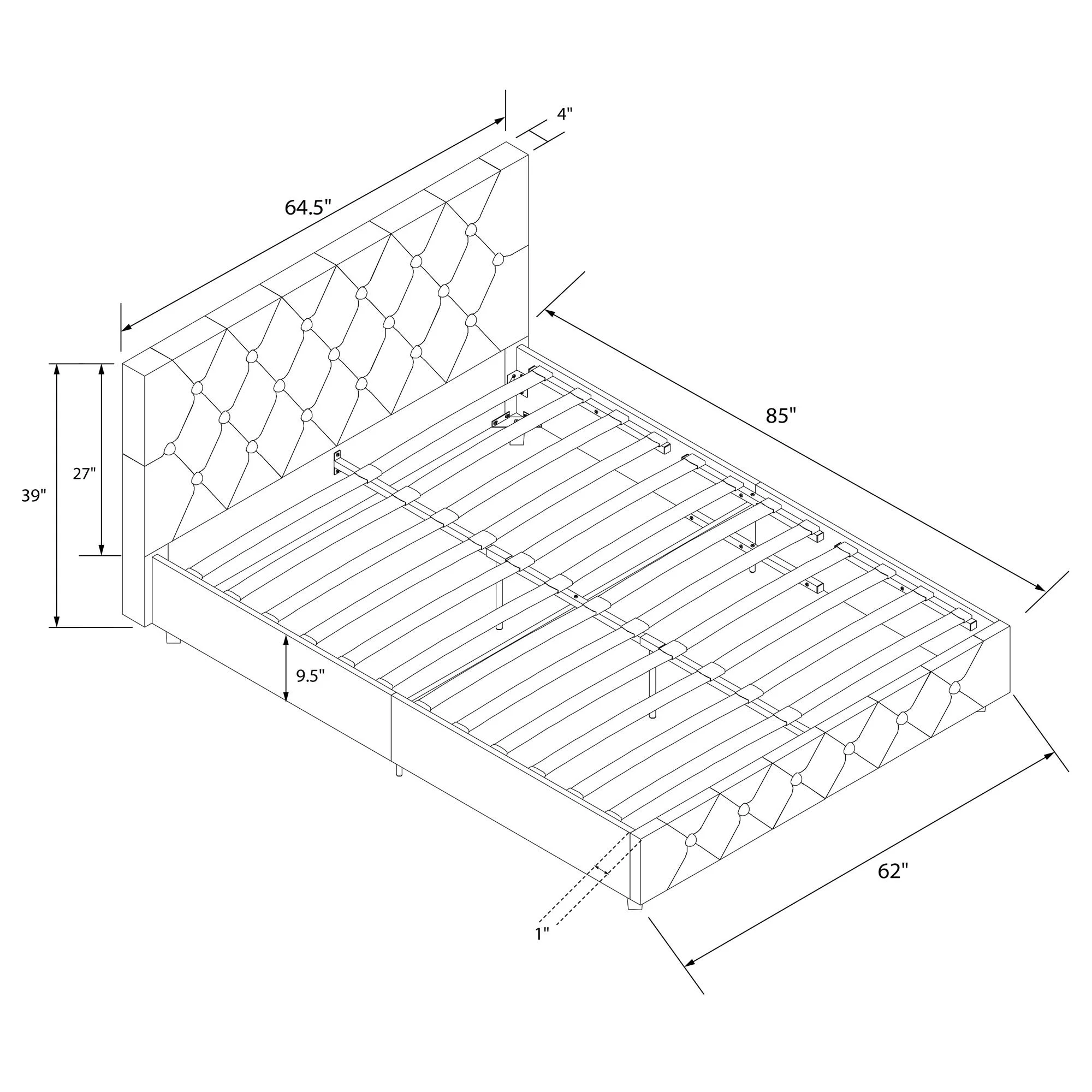 Dextrus Queen Size Bed Frame with Charging Station Footboard Metal Slats, and Storage Headboard, Beige