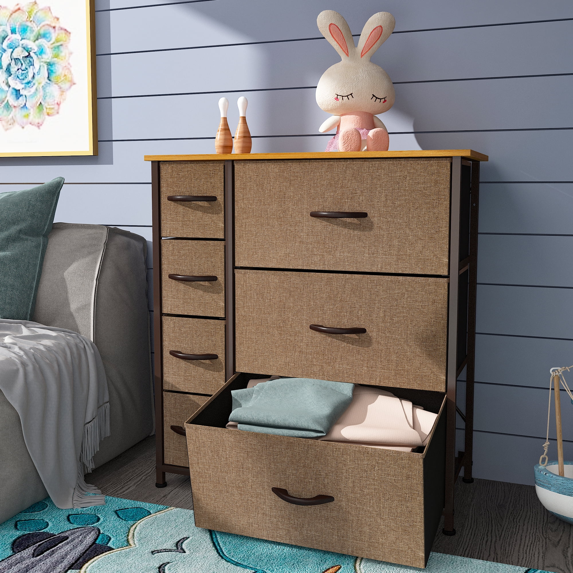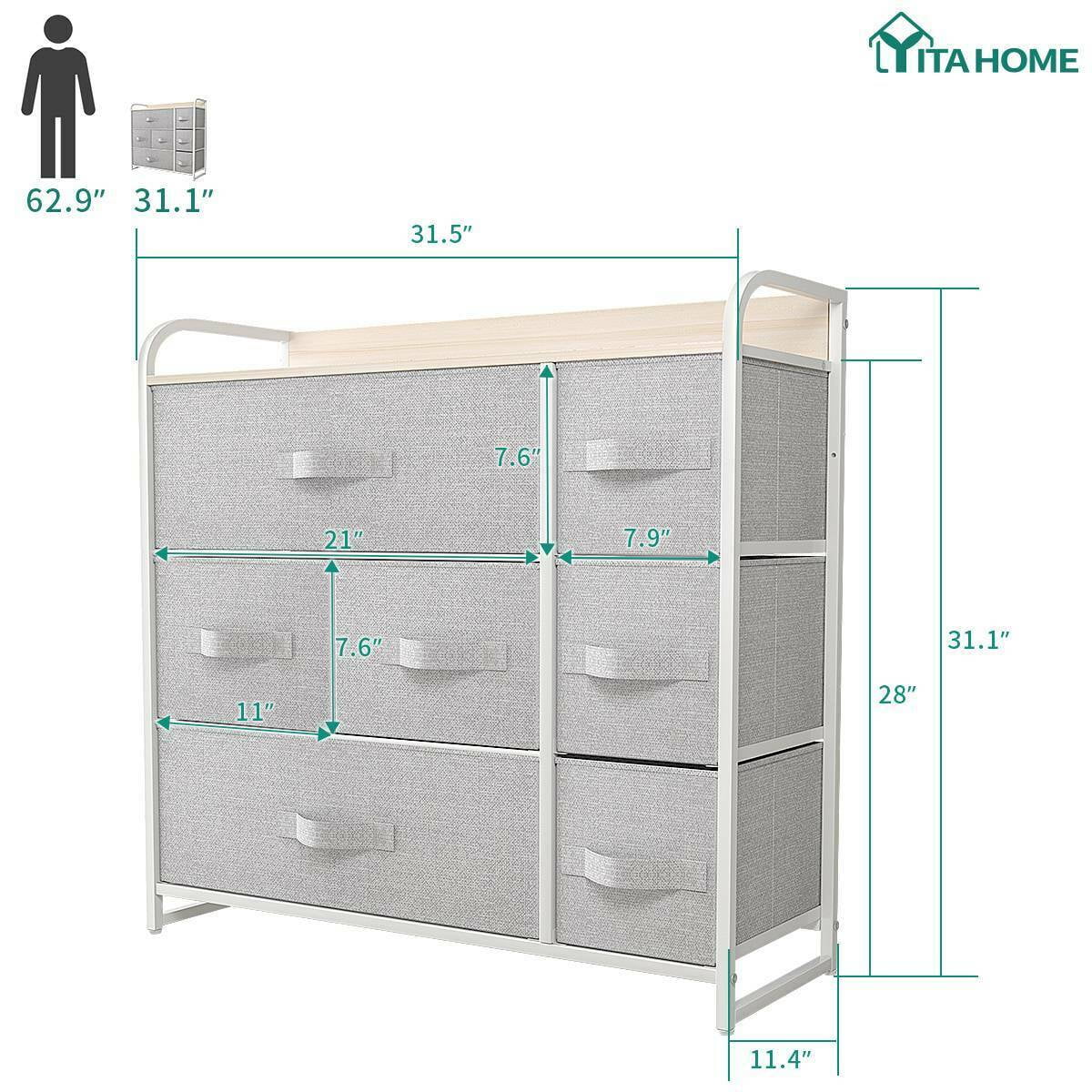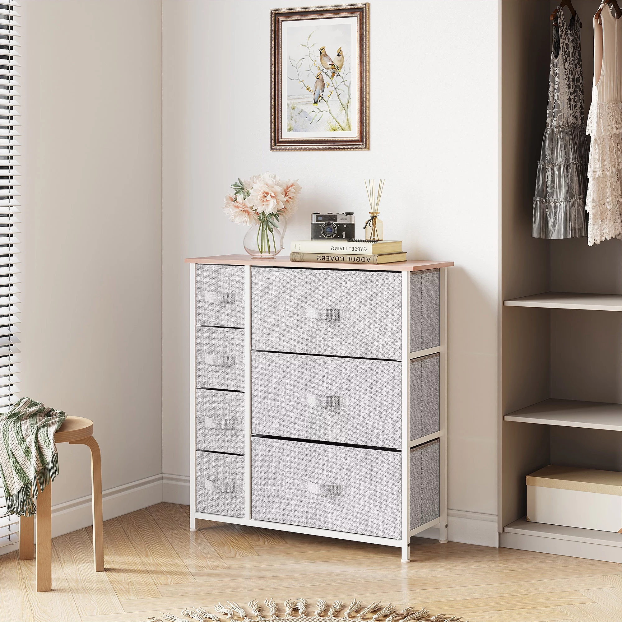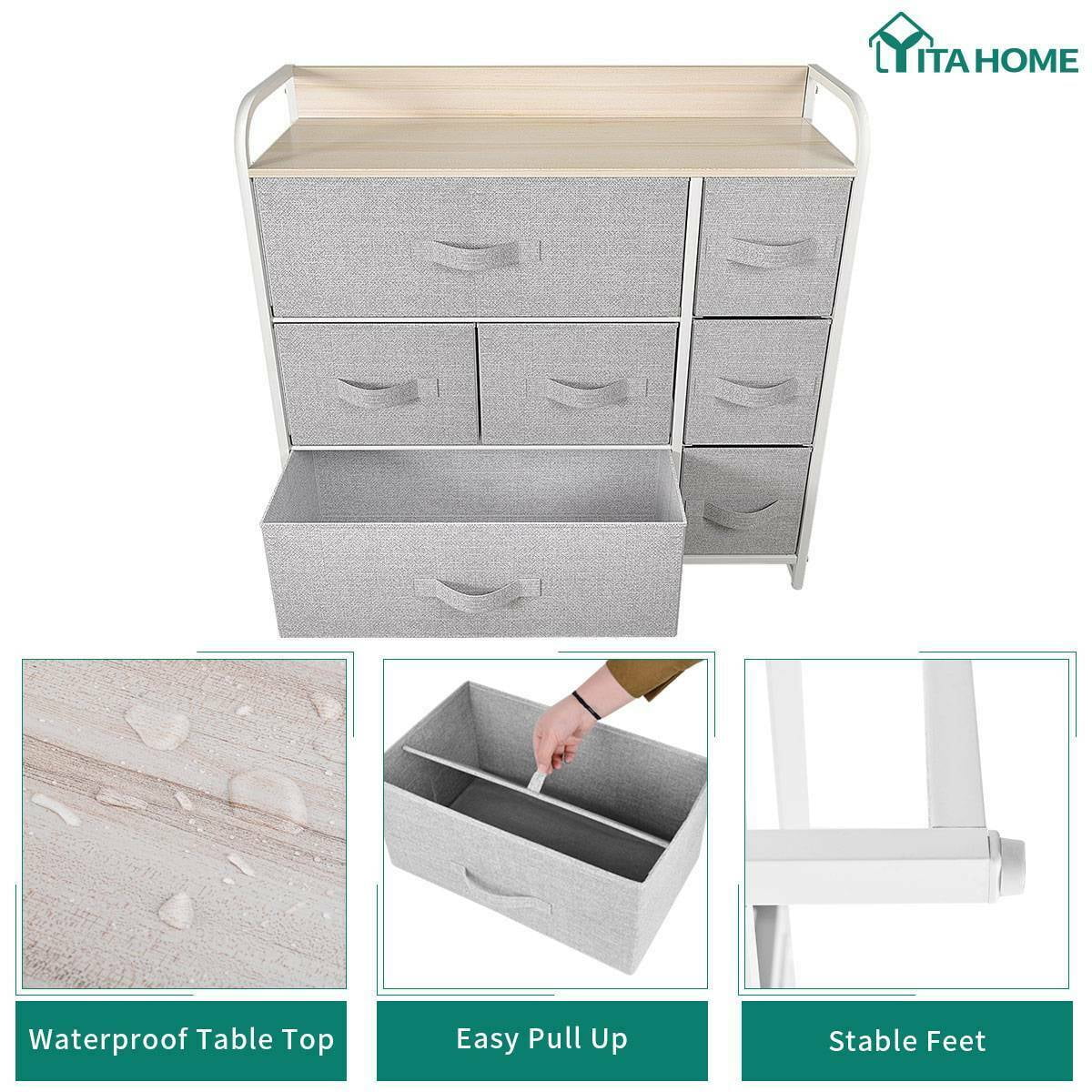 Dextrus Chest of Fabric 7 Drawers Dresser Storage Organizer Furniture Home Office, Light Gray