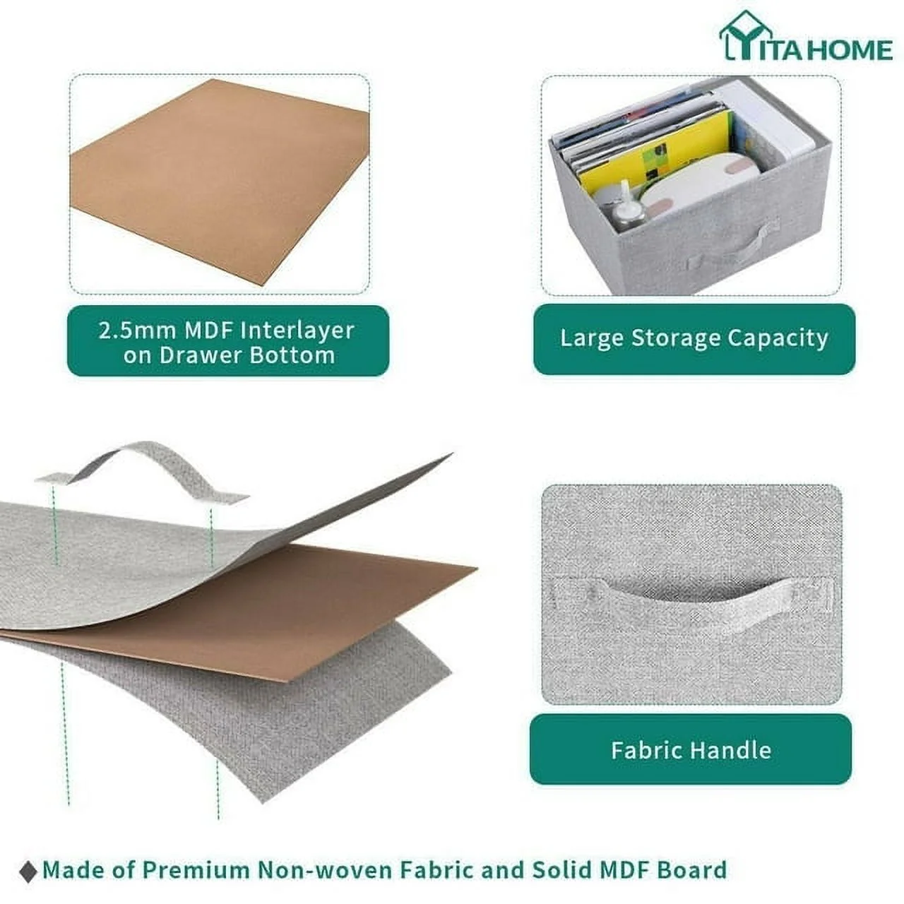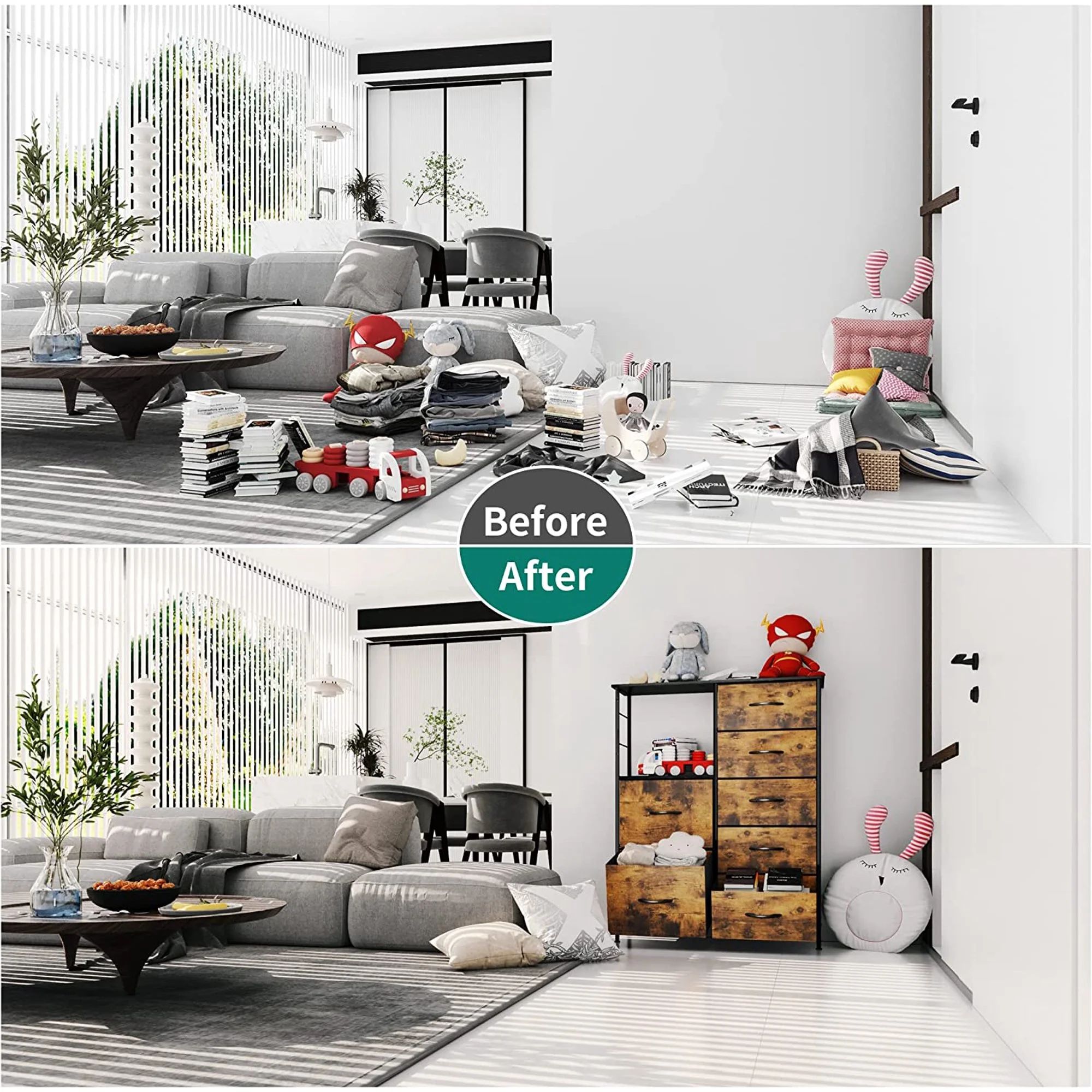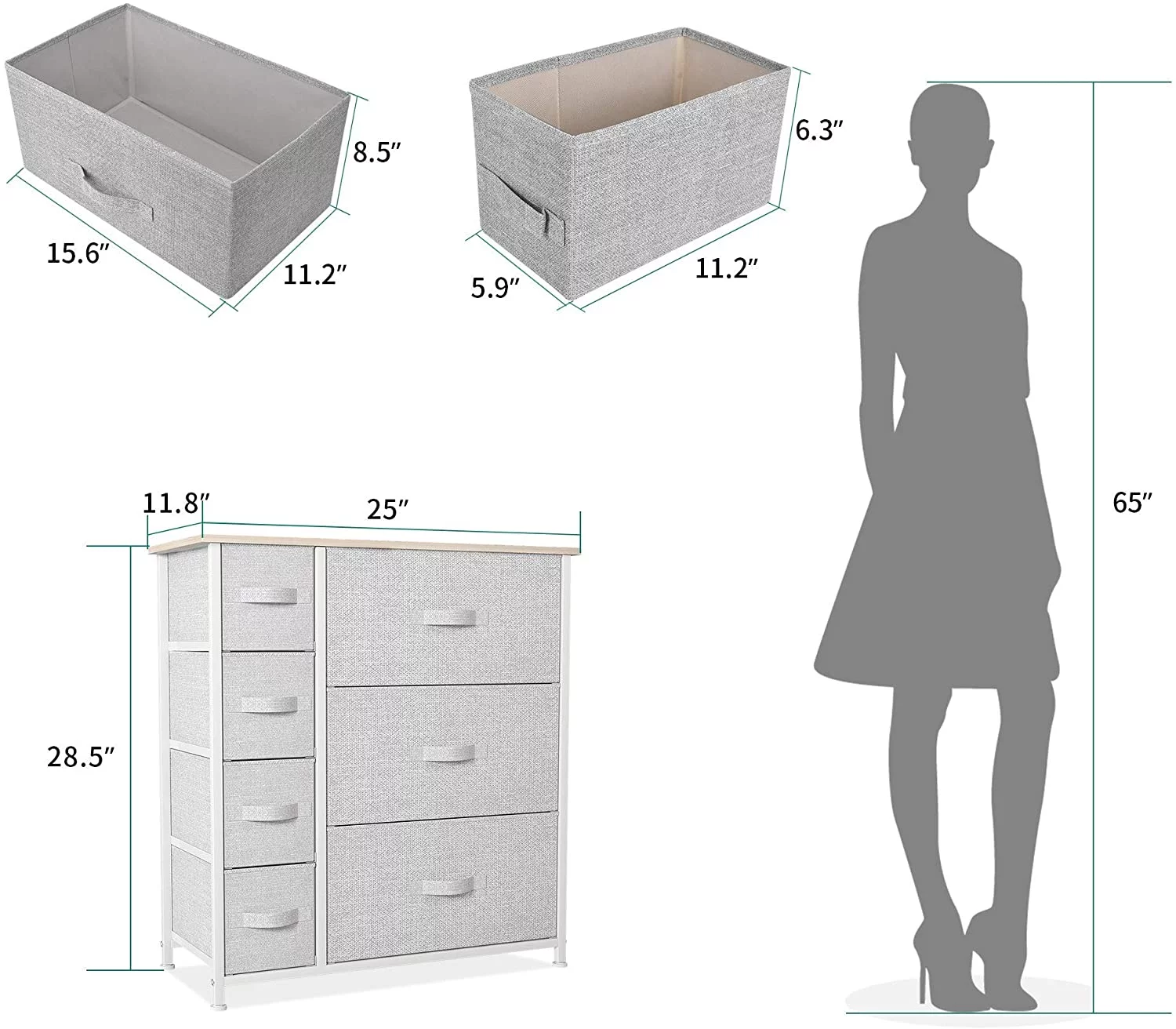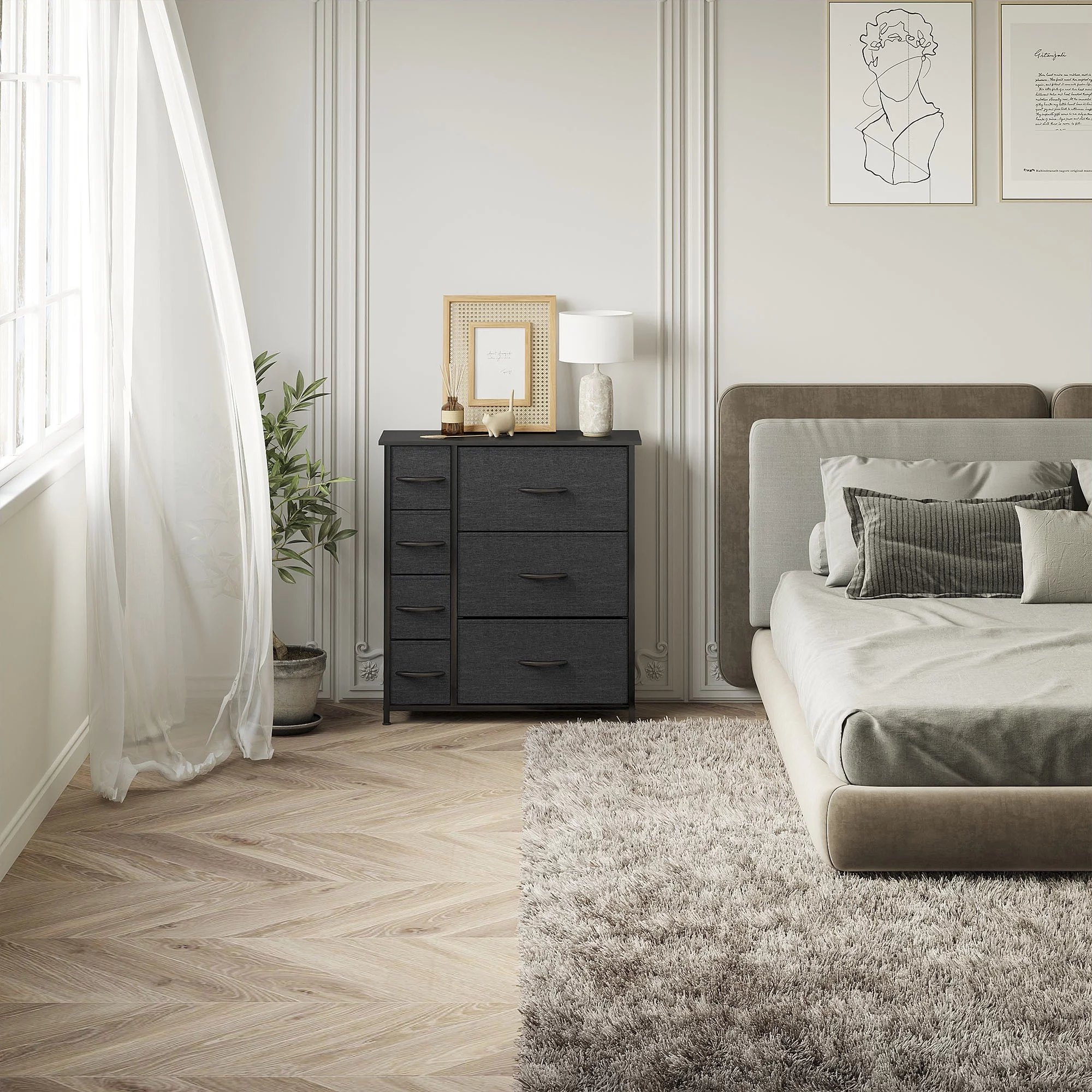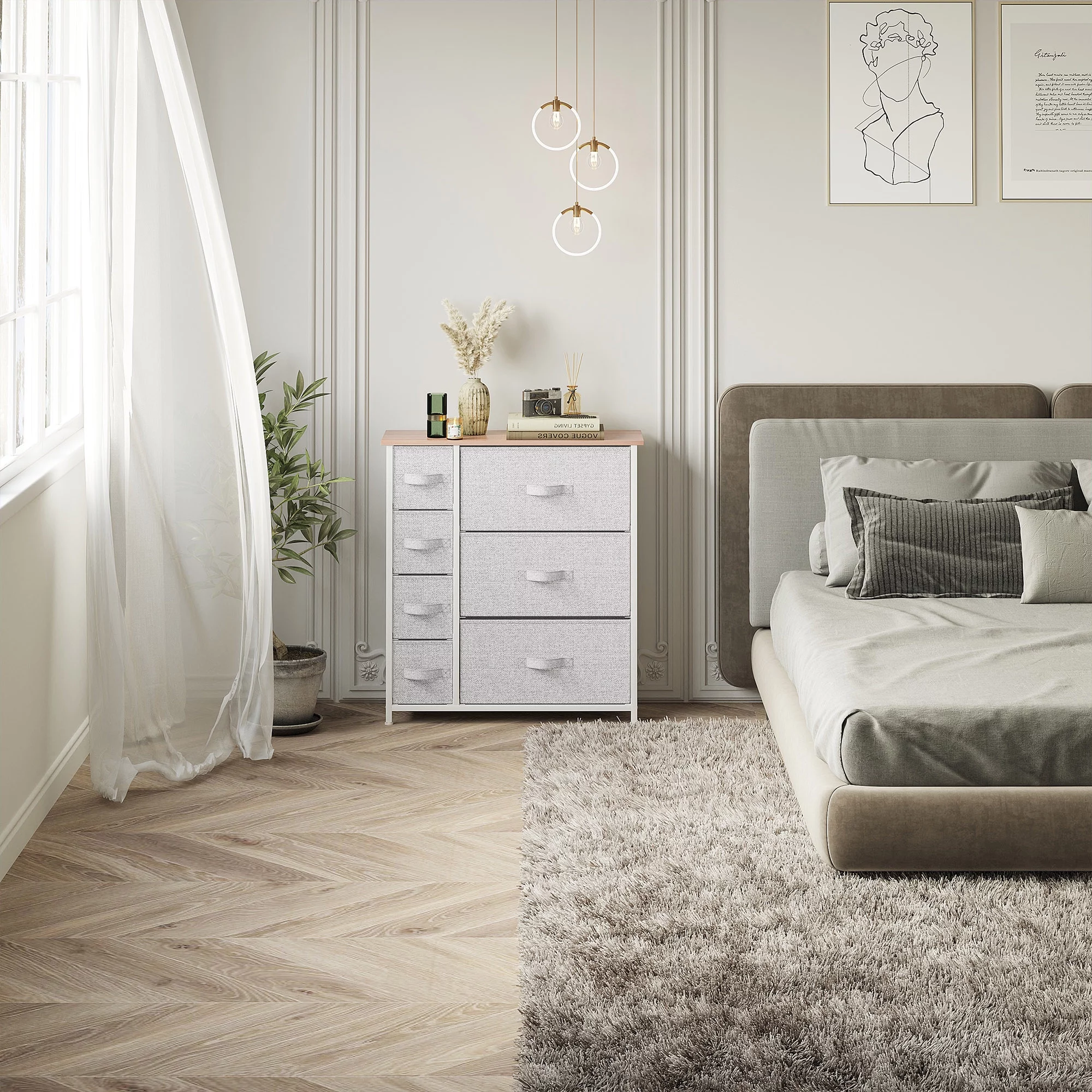 Dextrus Chest of Fabric 7 Drawers Dresser Storage Organizer Furniture Home Office, Light Gray