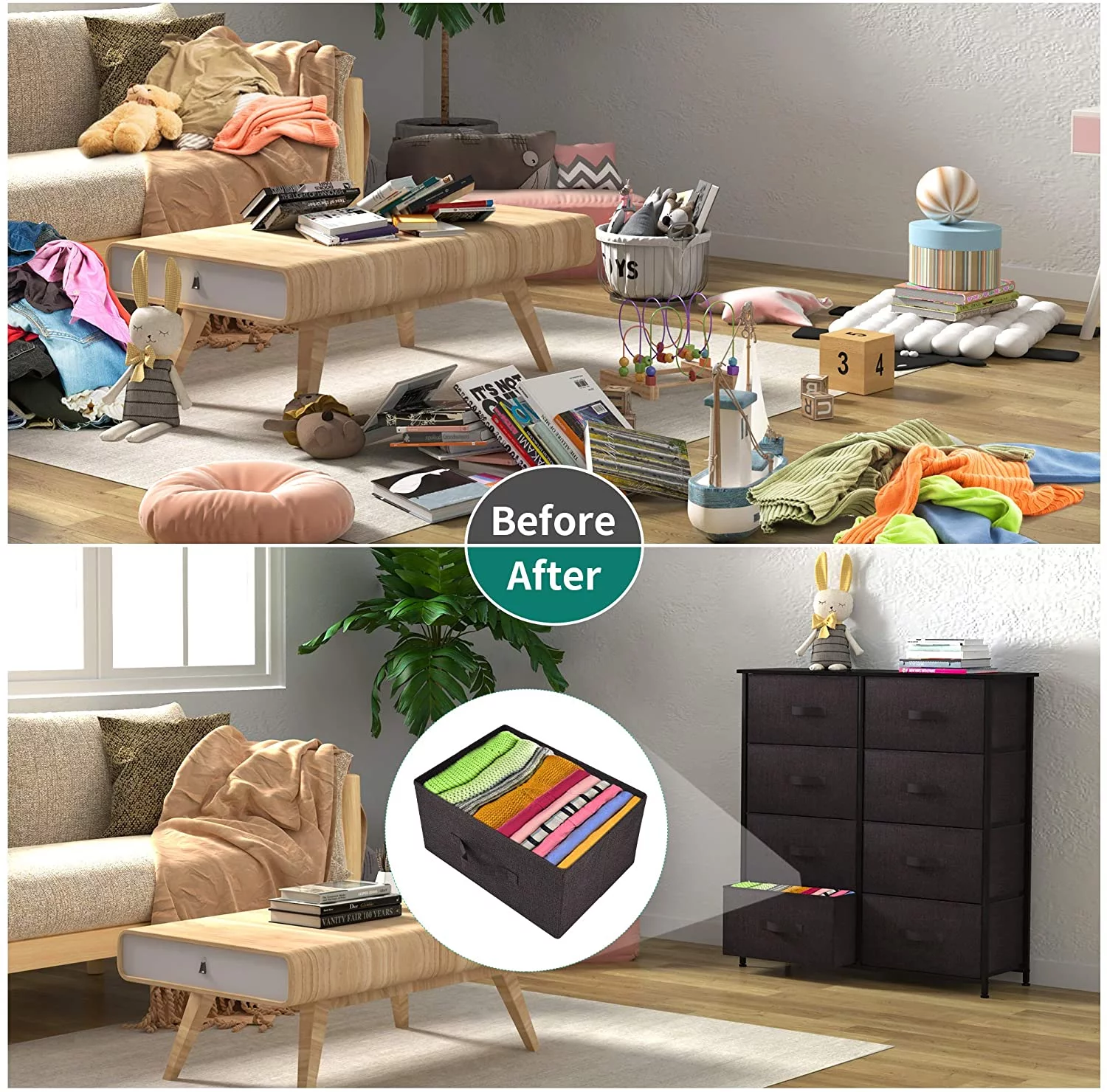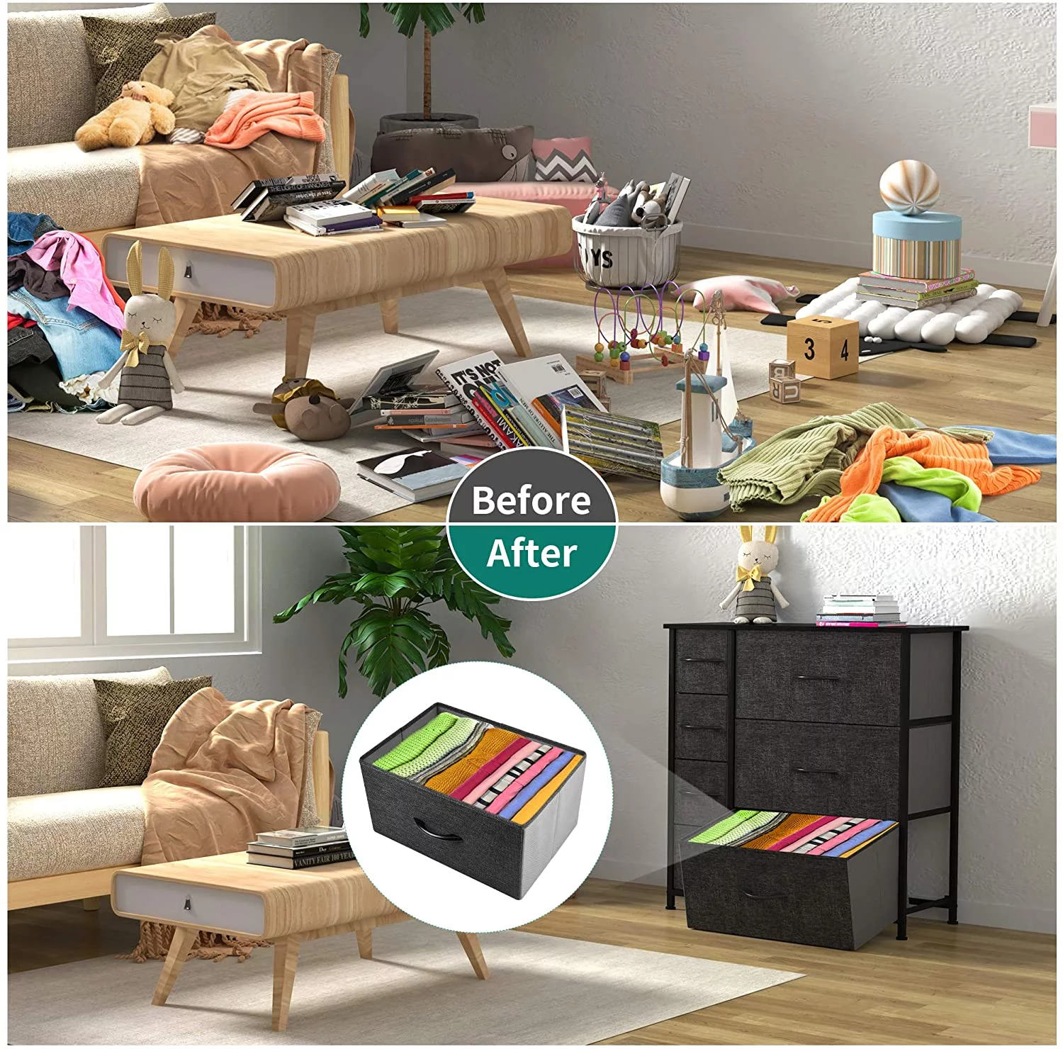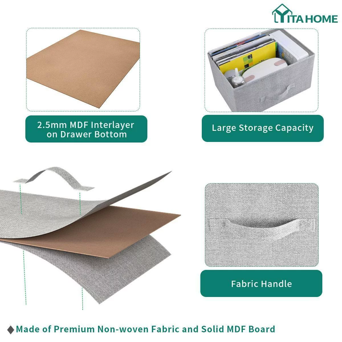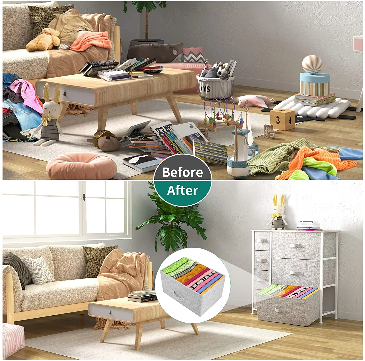 Dextrus Chest of Fabric 7 Drawers Dresser Storage Organizer Furniture Home Office, Light Gray