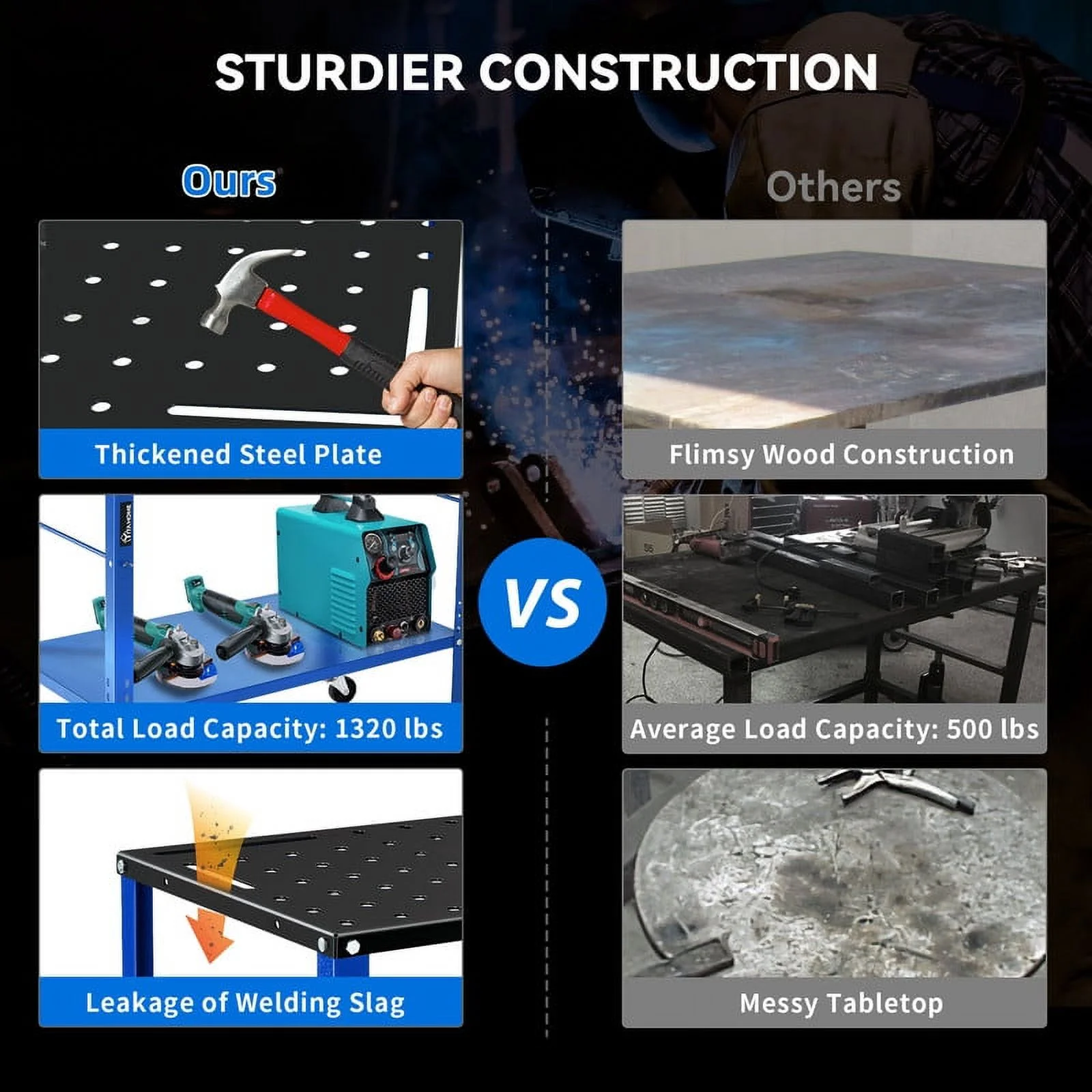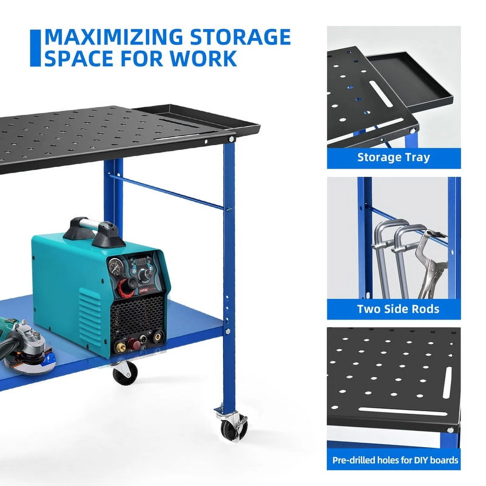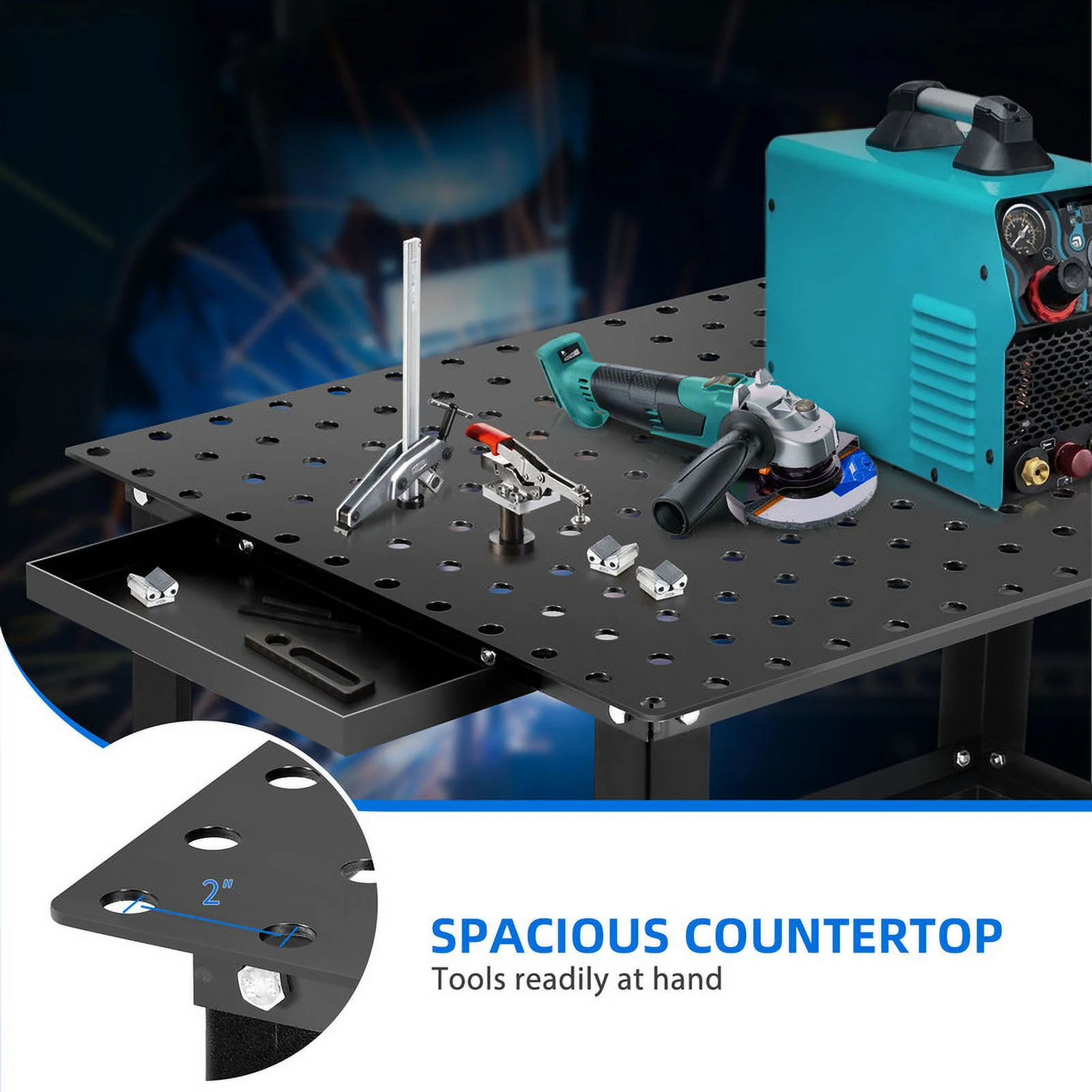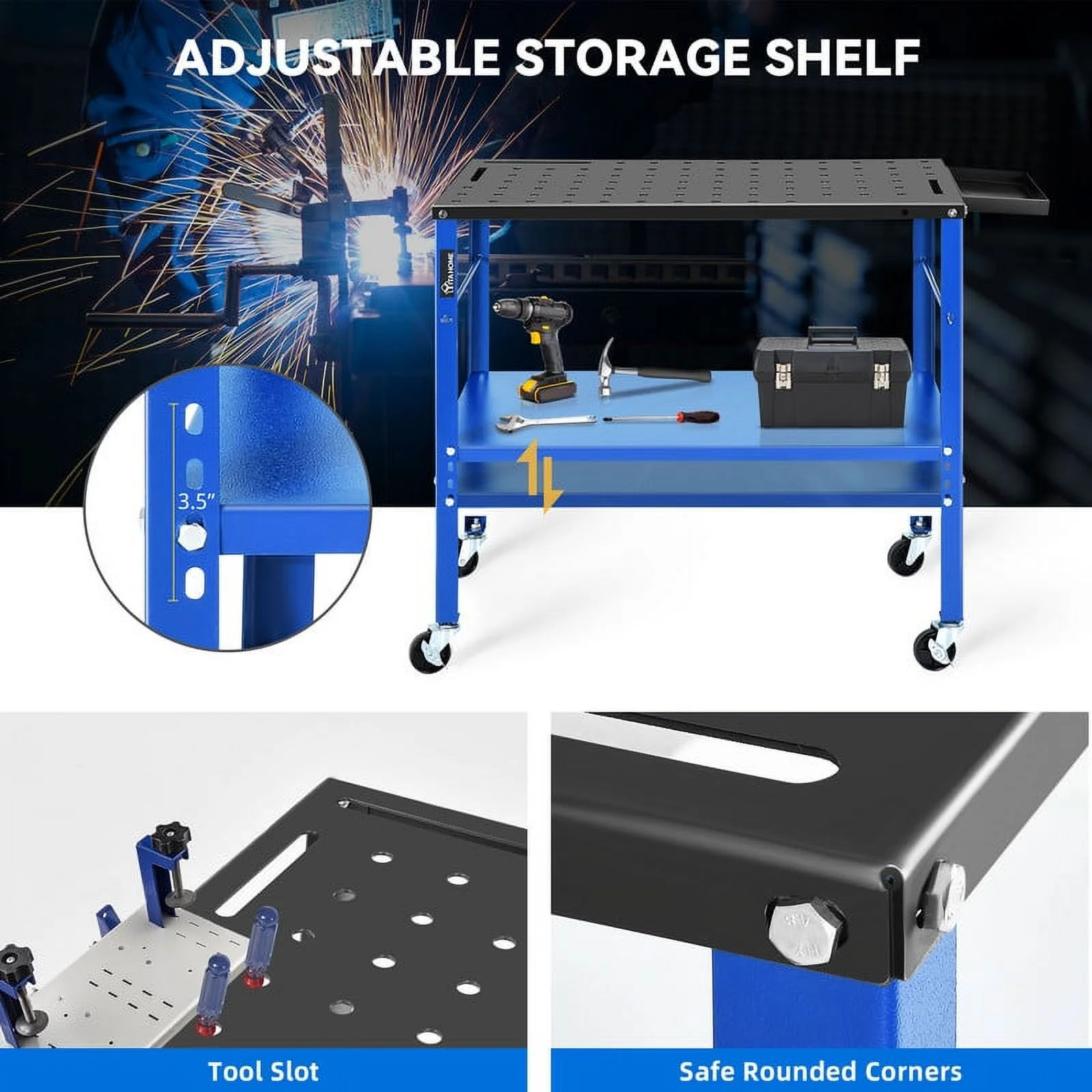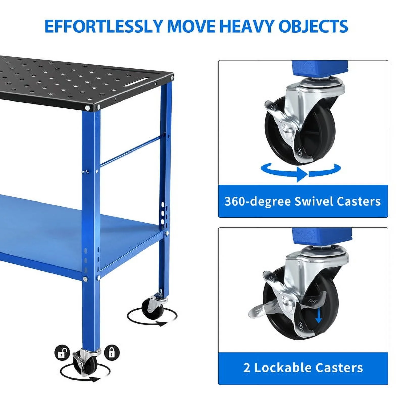 Dextrus 36" x 24" Welding Table, 1320lb Load Capacity Heavy Duty Welding Table, Metal Workbench with 5/8" Holes, Lockable Caster for Welding Sawing, Black