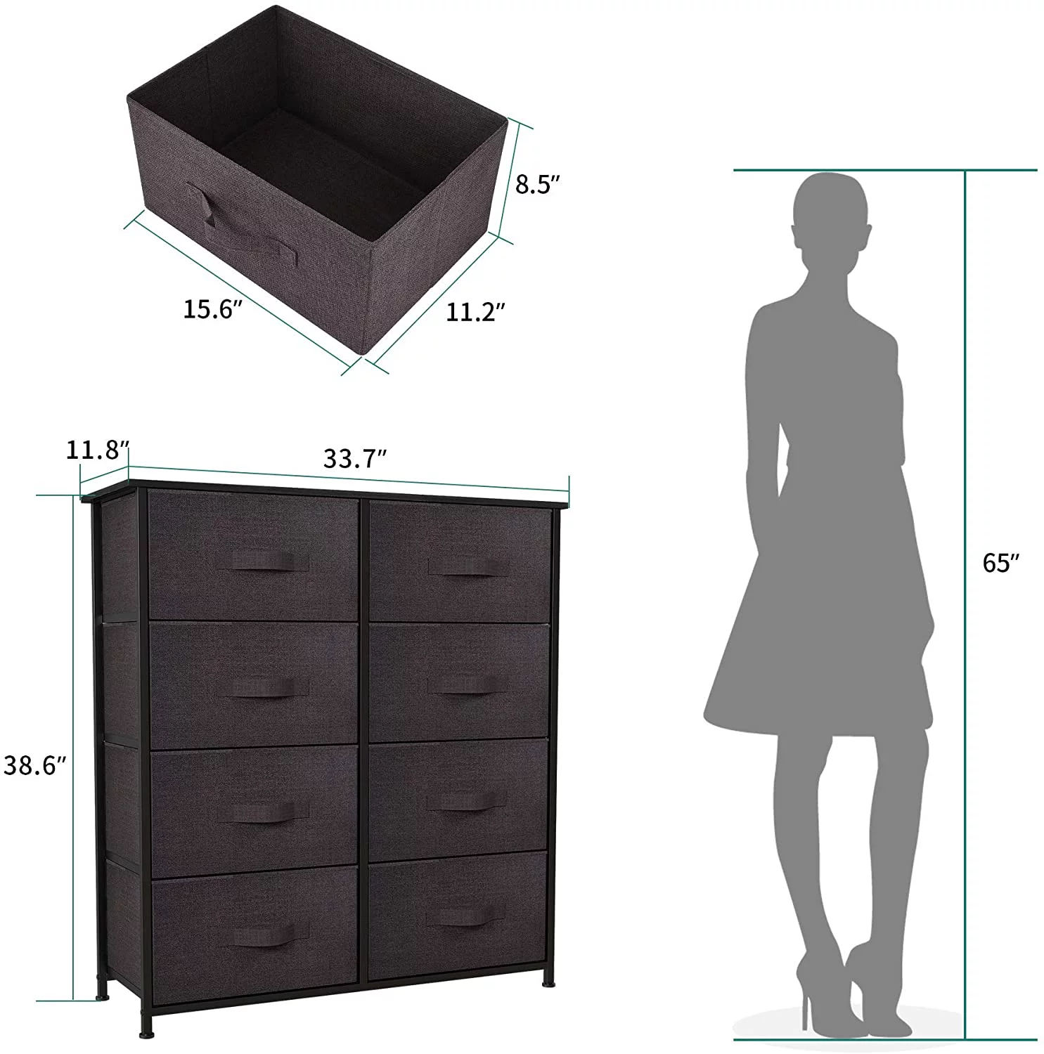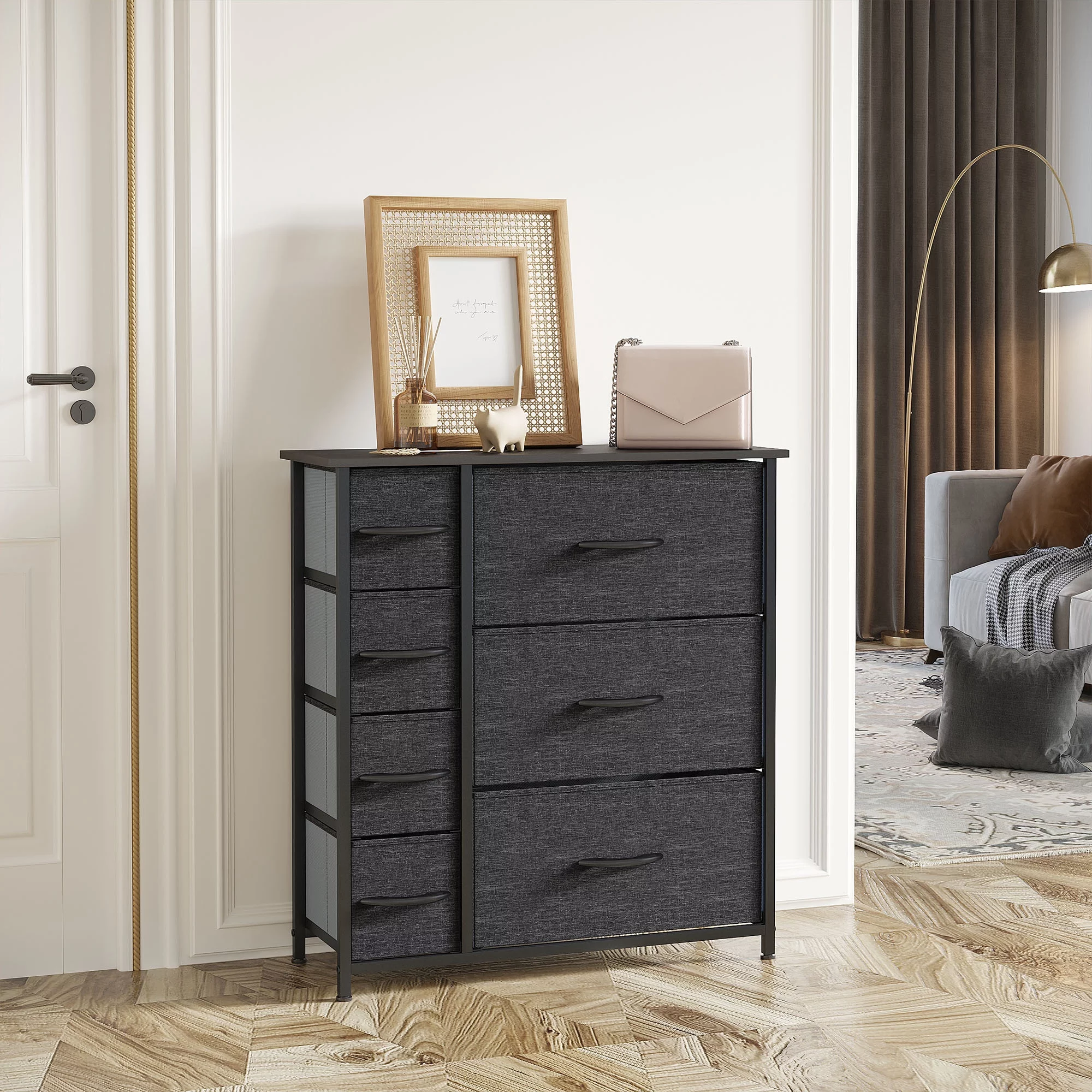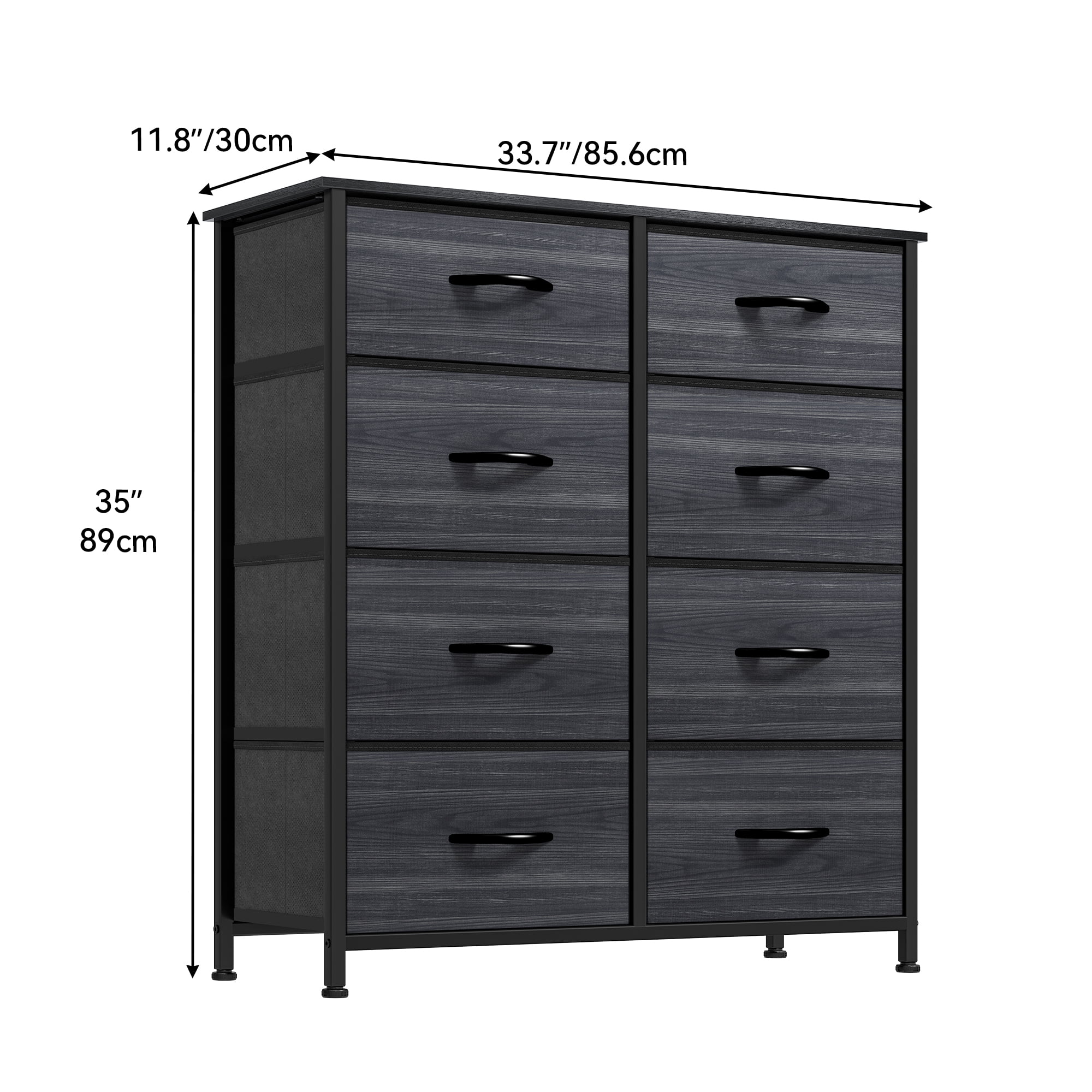 Dextrus 8 Drawers Dresser - Fabric Storage Tower, Organizer Unit for Bedroom, Hallway, Living Room, Charcoal Black Wood Grain