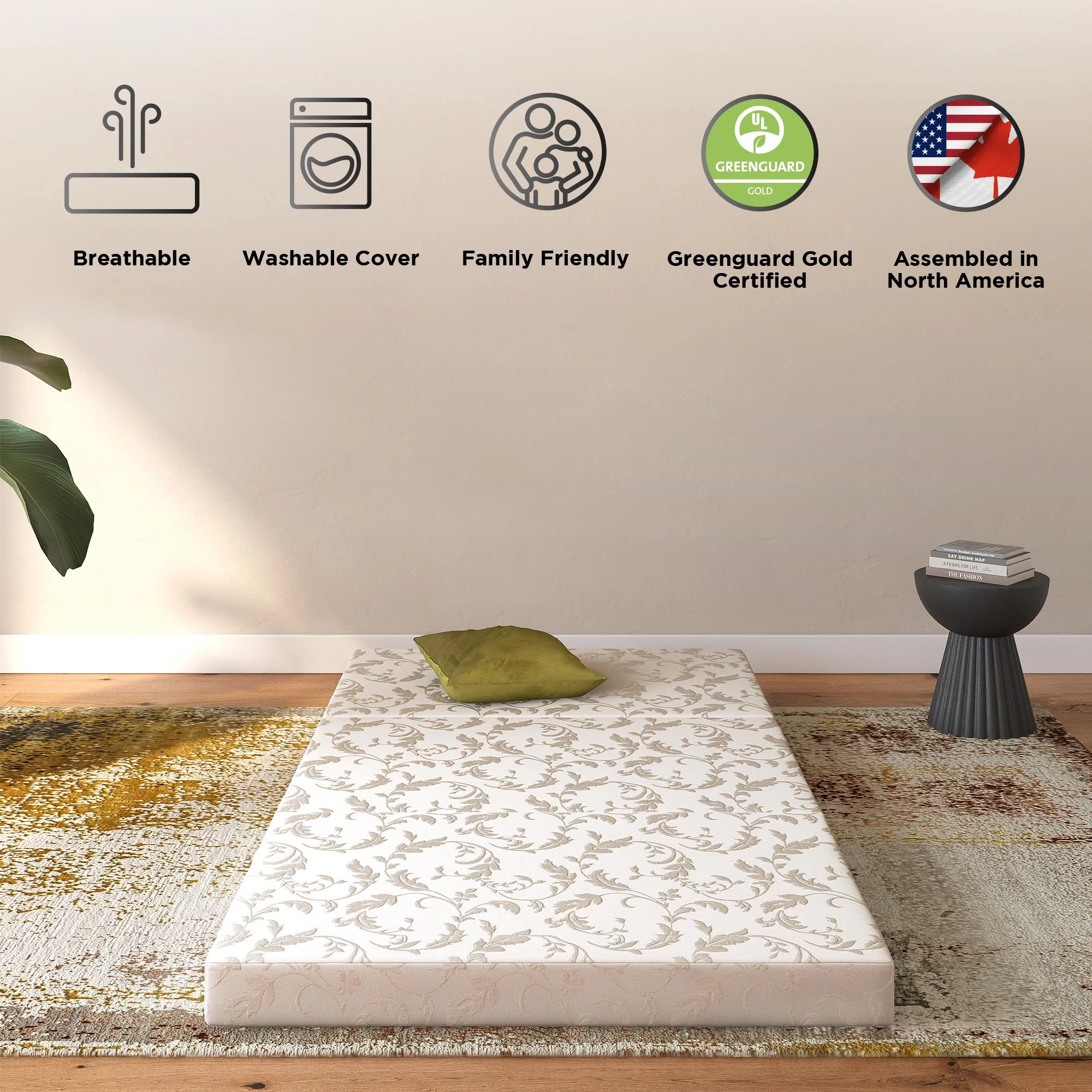 DHP Aries 4-Inch Tri Folding Mattress with Carry Bag and Washable Cover, Twin Size