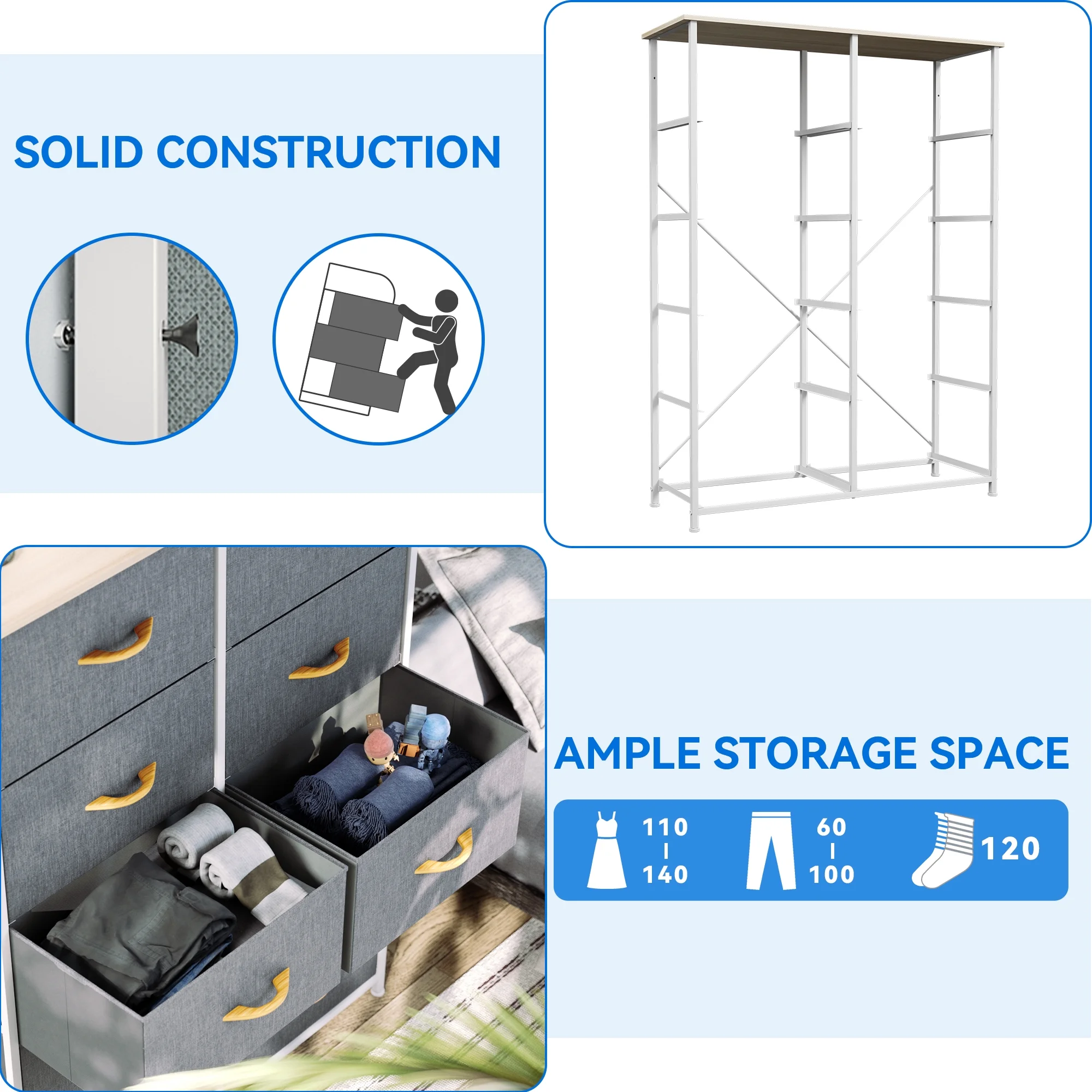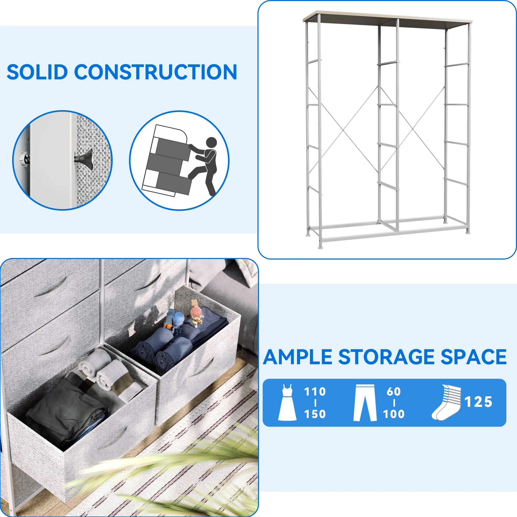 Dextrus High Storage Tower with 8 Fabric Drawers Organizer Unit Steel Frame, Light Gray