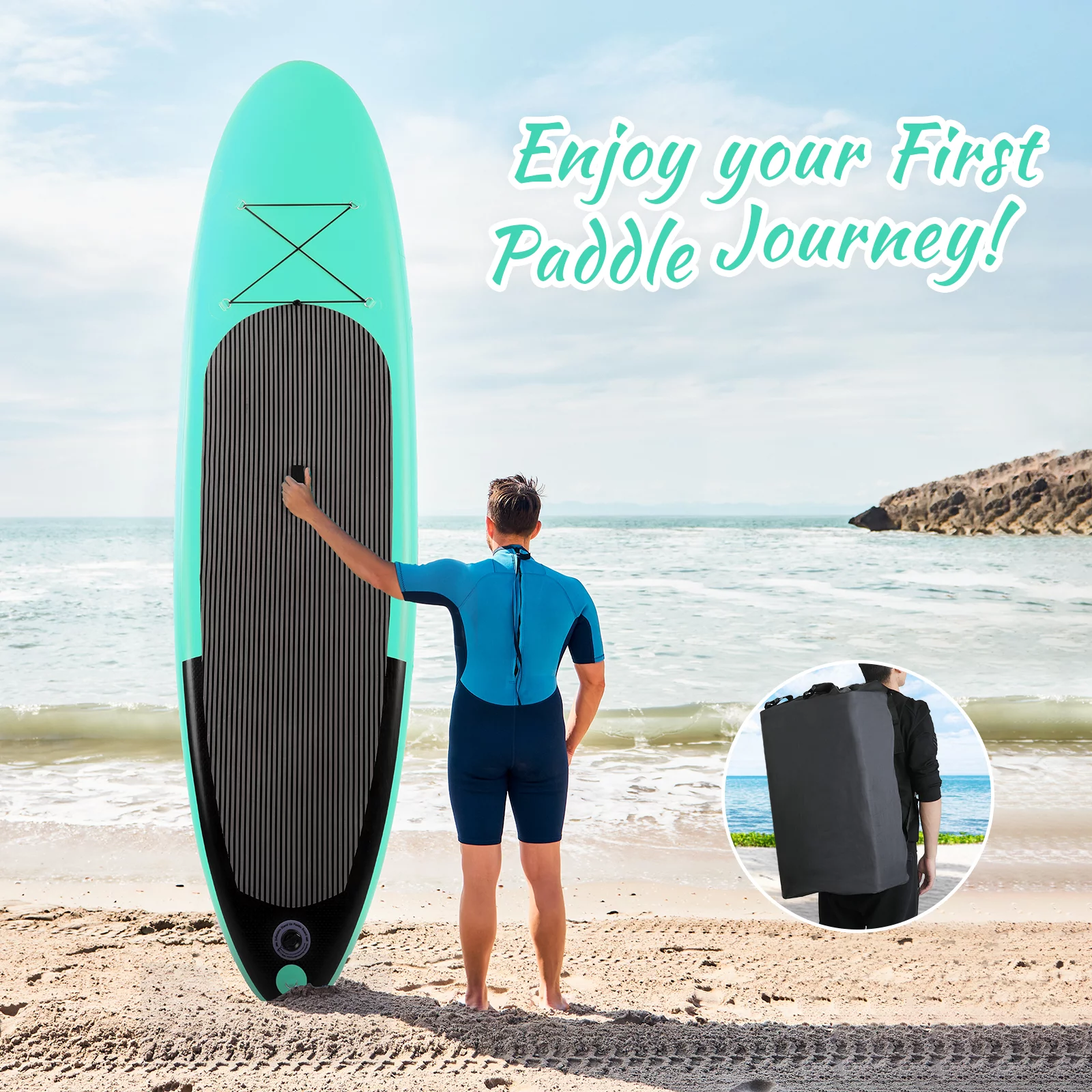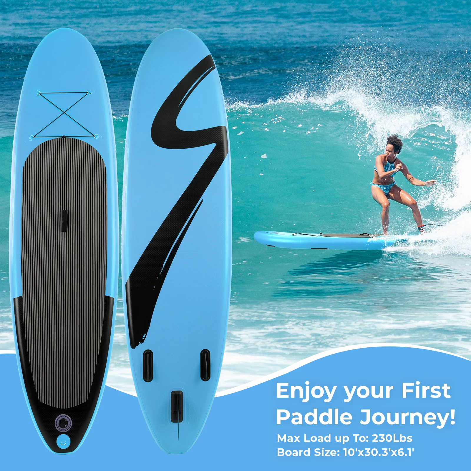 Pirecart 10ft Inflatable SUP Stand up Paddle Board with Backpack, Paddle, Leash