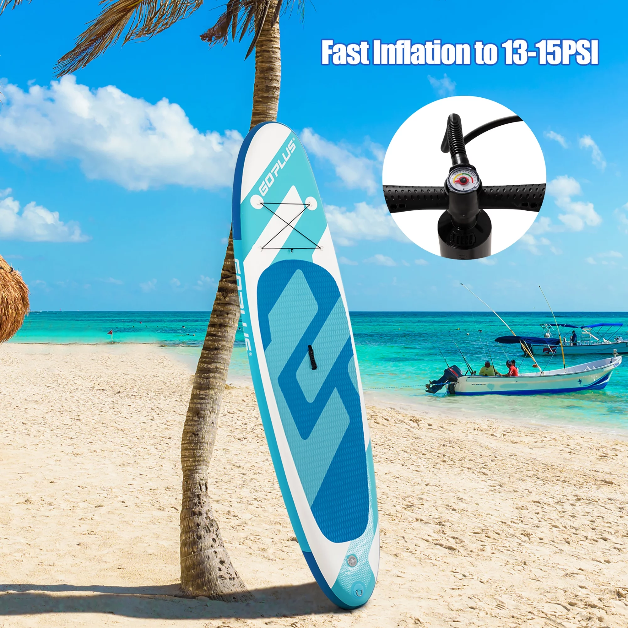 Goplus 10' Inflatable Stand Up Paddle Board SUP Adjustable Paddle Backpack Pump