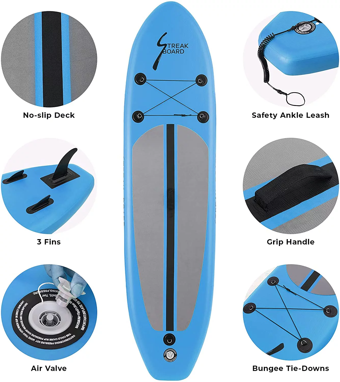 streakboard Inflatable Paddle Board Stand Up Paddle Board SUP with Complete Kit Non-Slip Deck