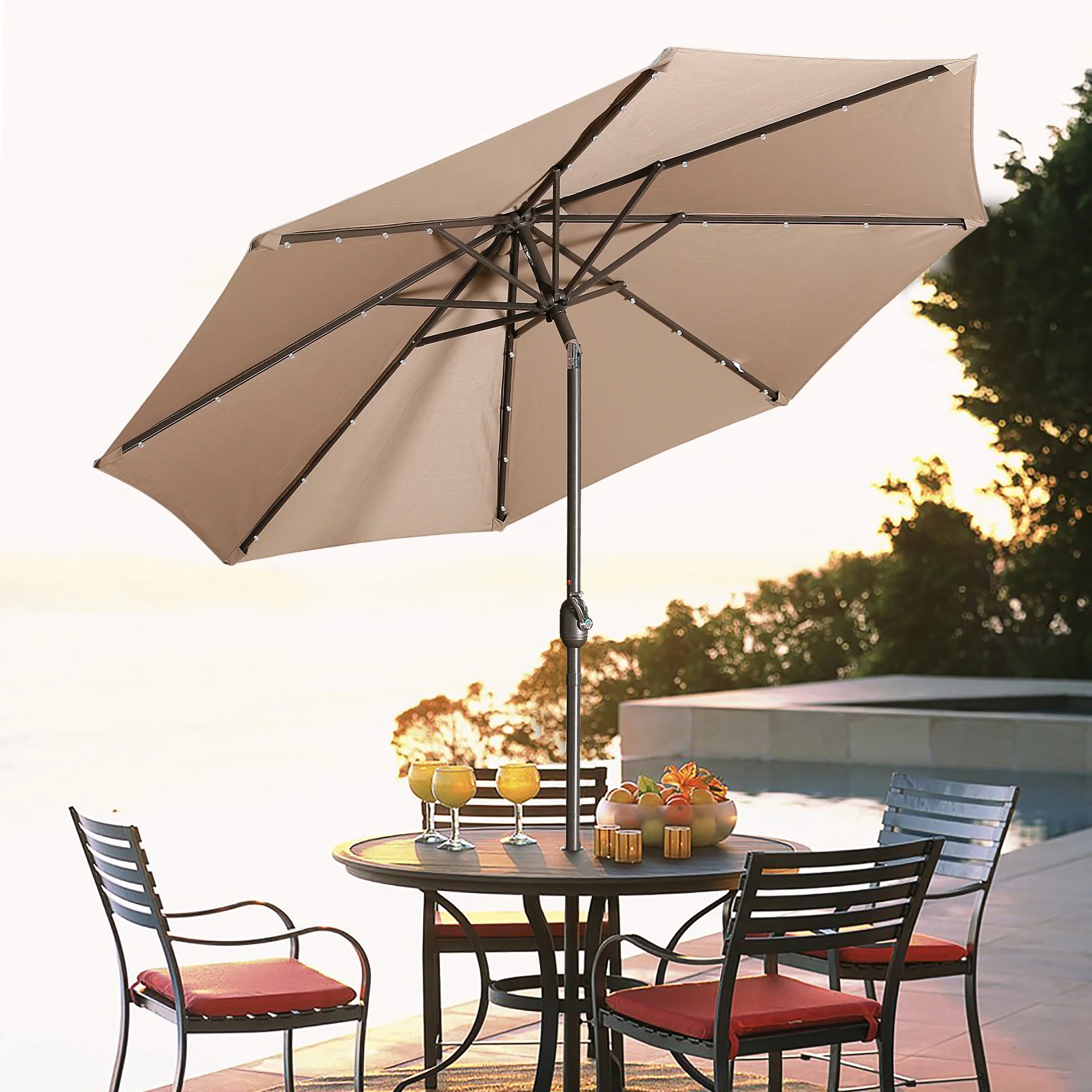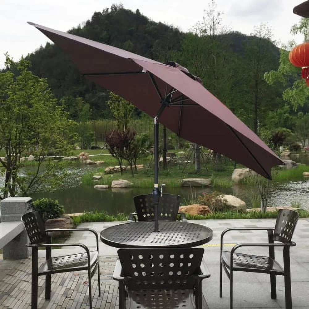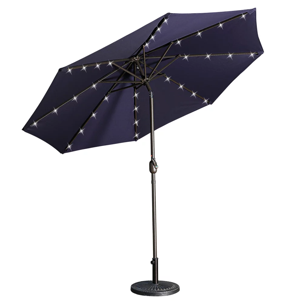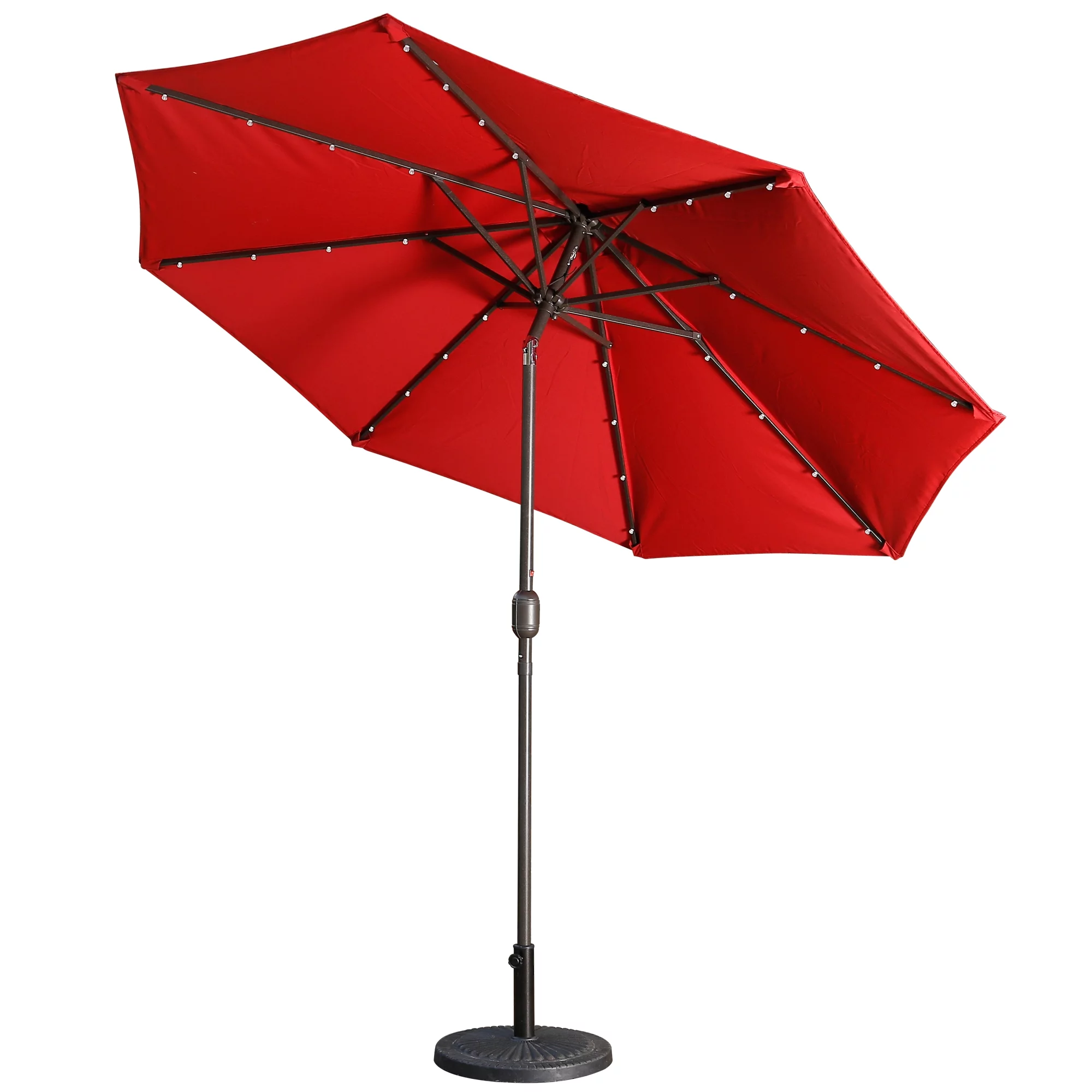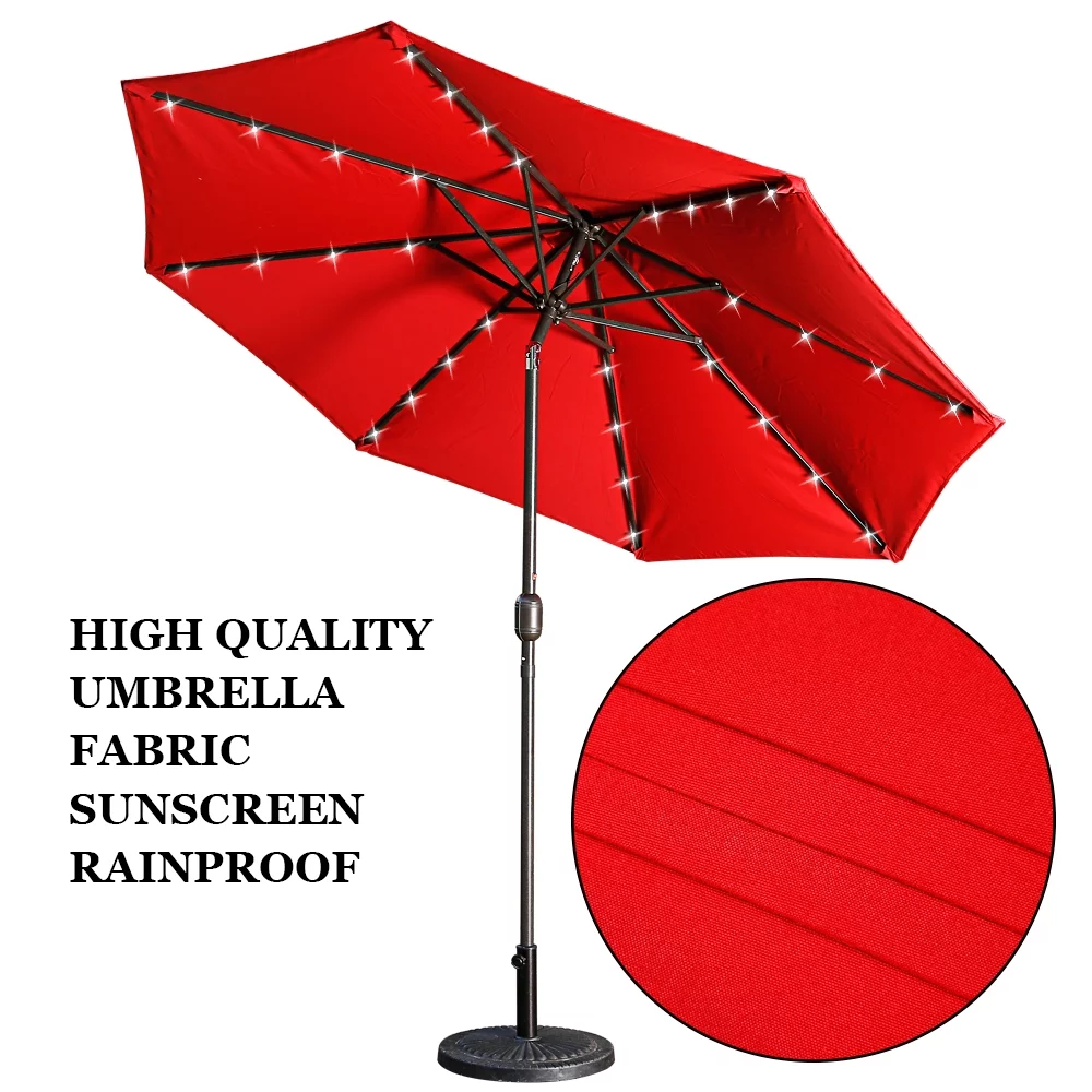 9ft Patio Umbrella Outdoor Market 32 LED Solar Umbrella with Tilt and Crank(Red)
