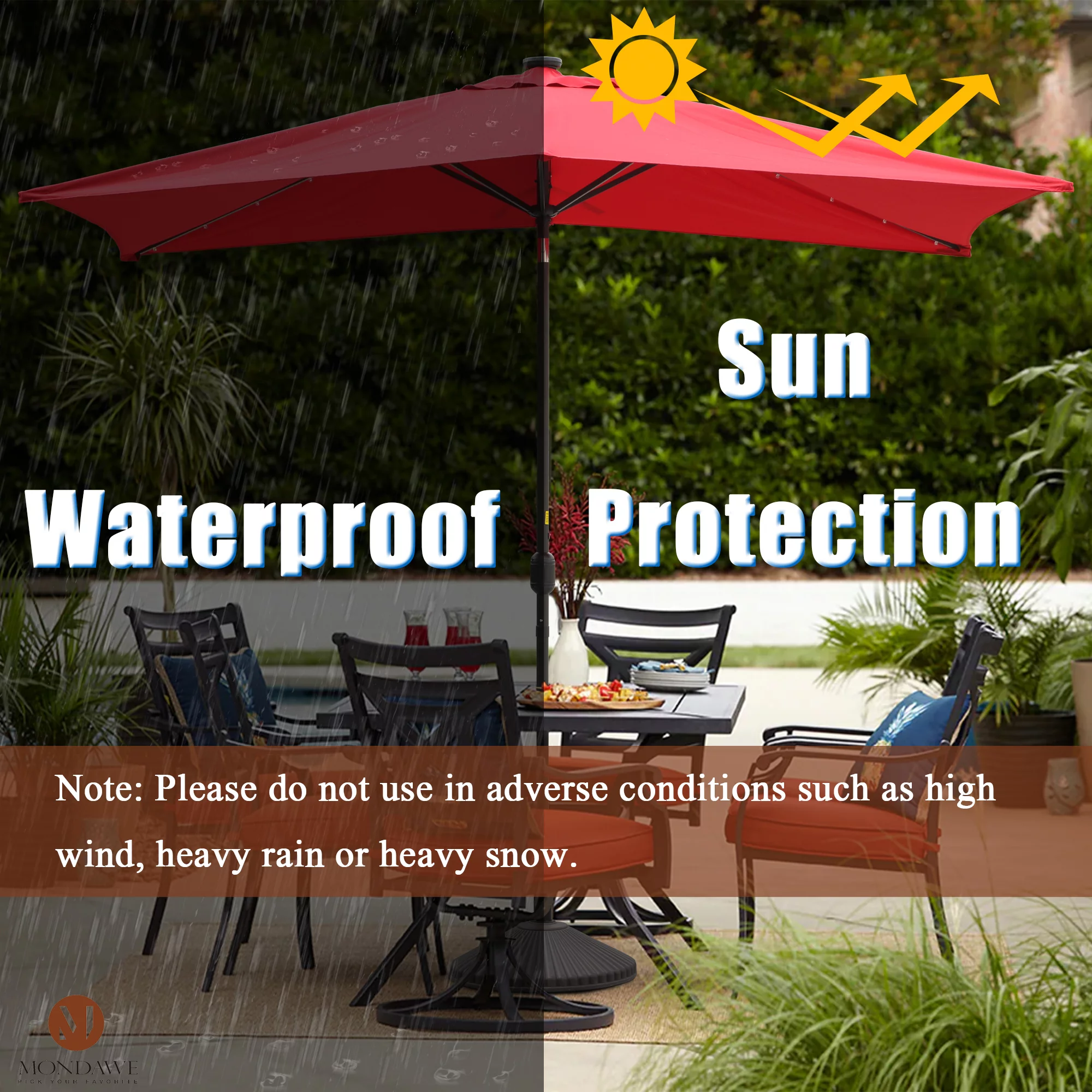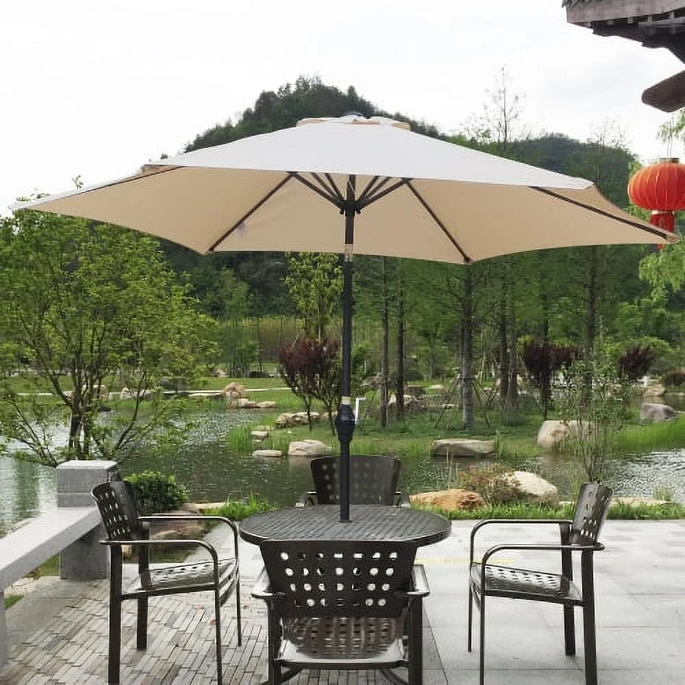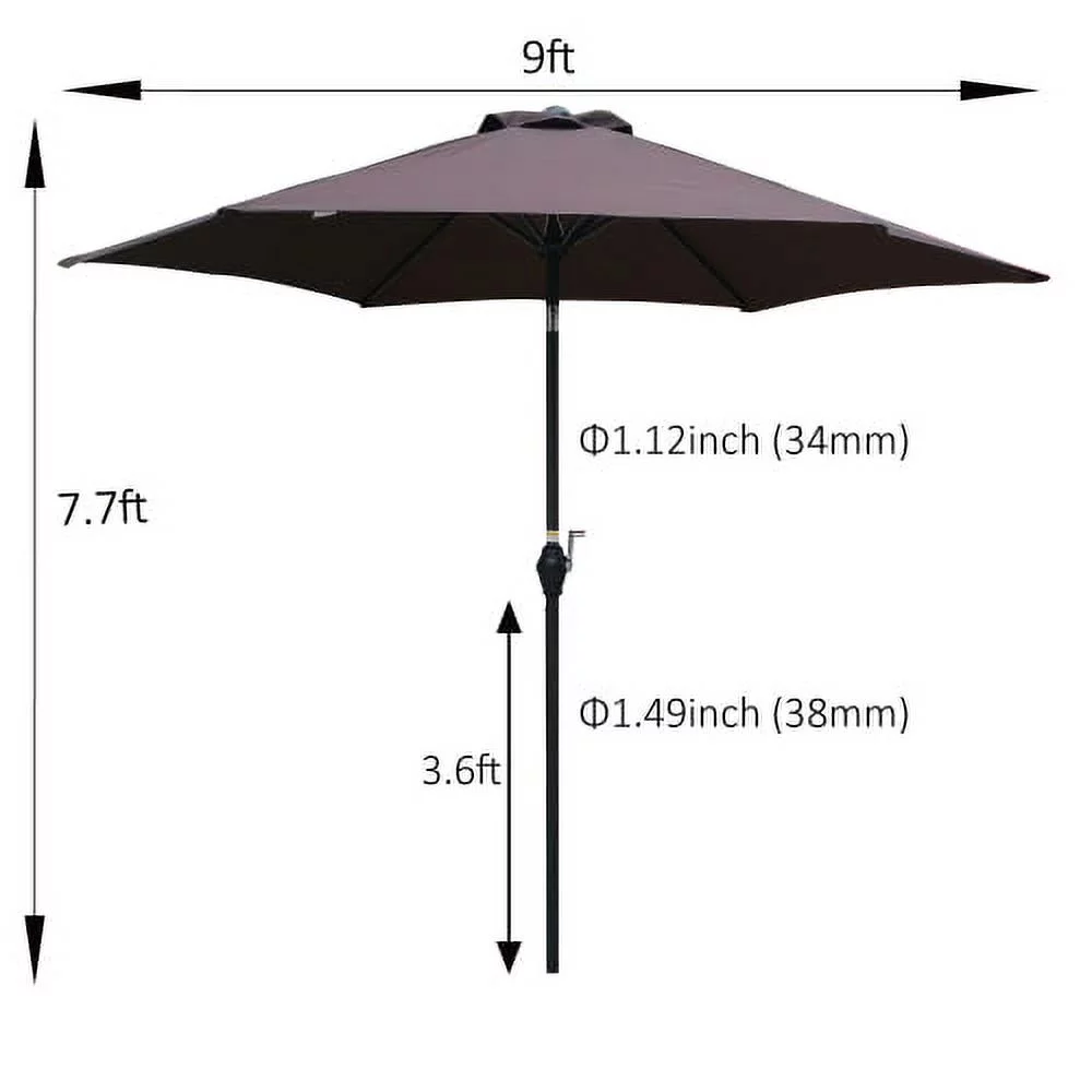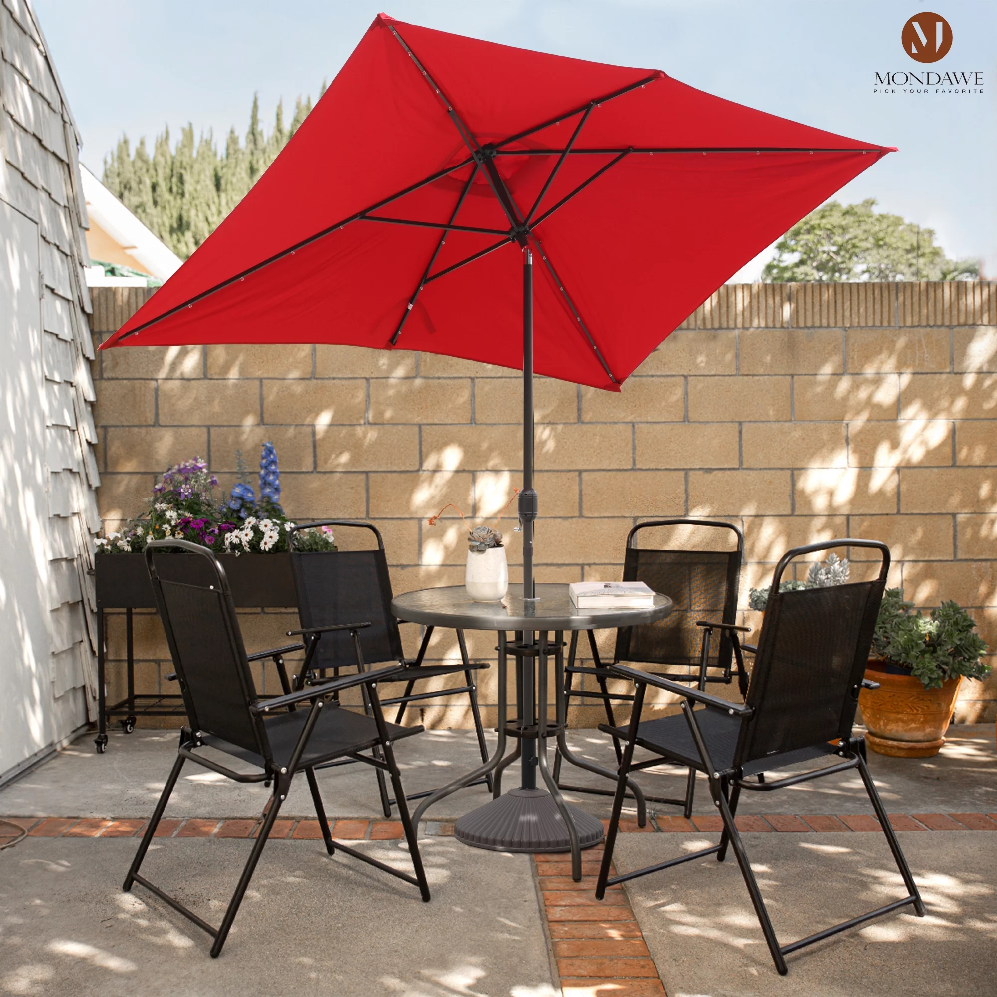 9ft Patio Umbrella Outdoor Market 32 LED Solar Umbrella with Tilt and Crank(Red)