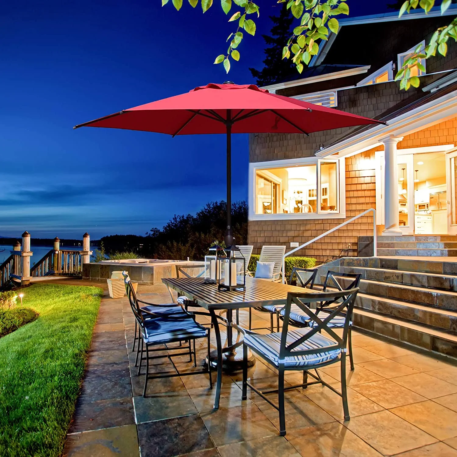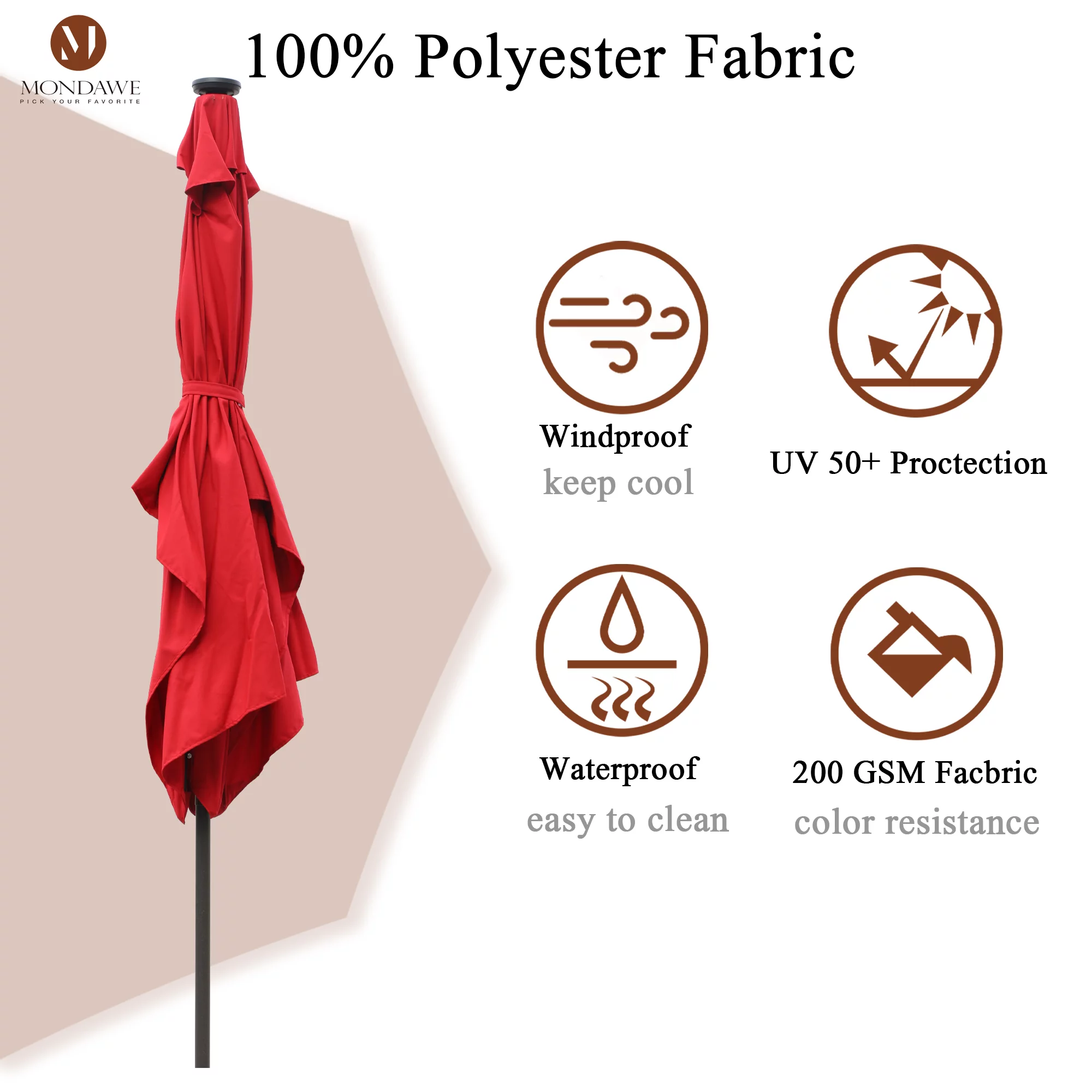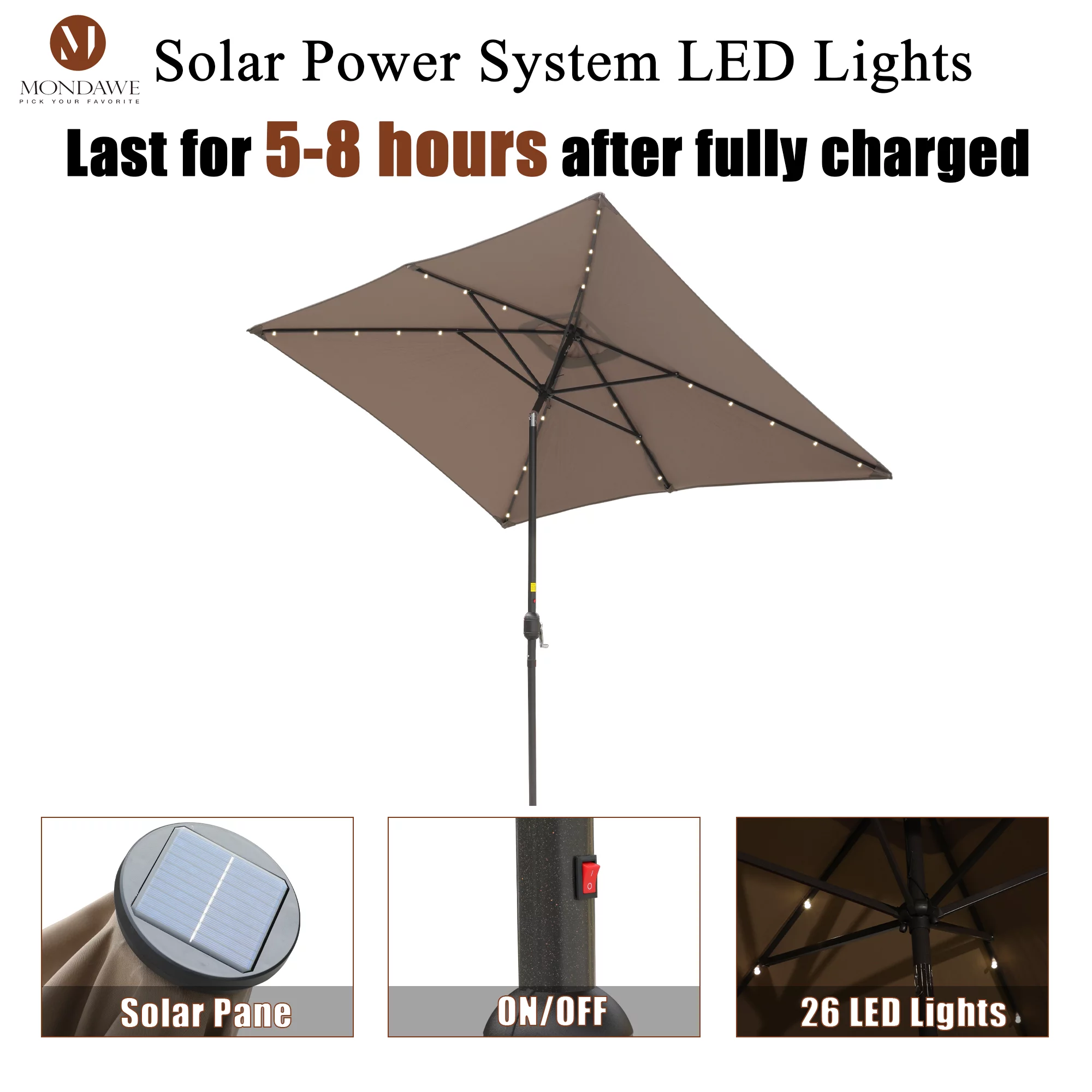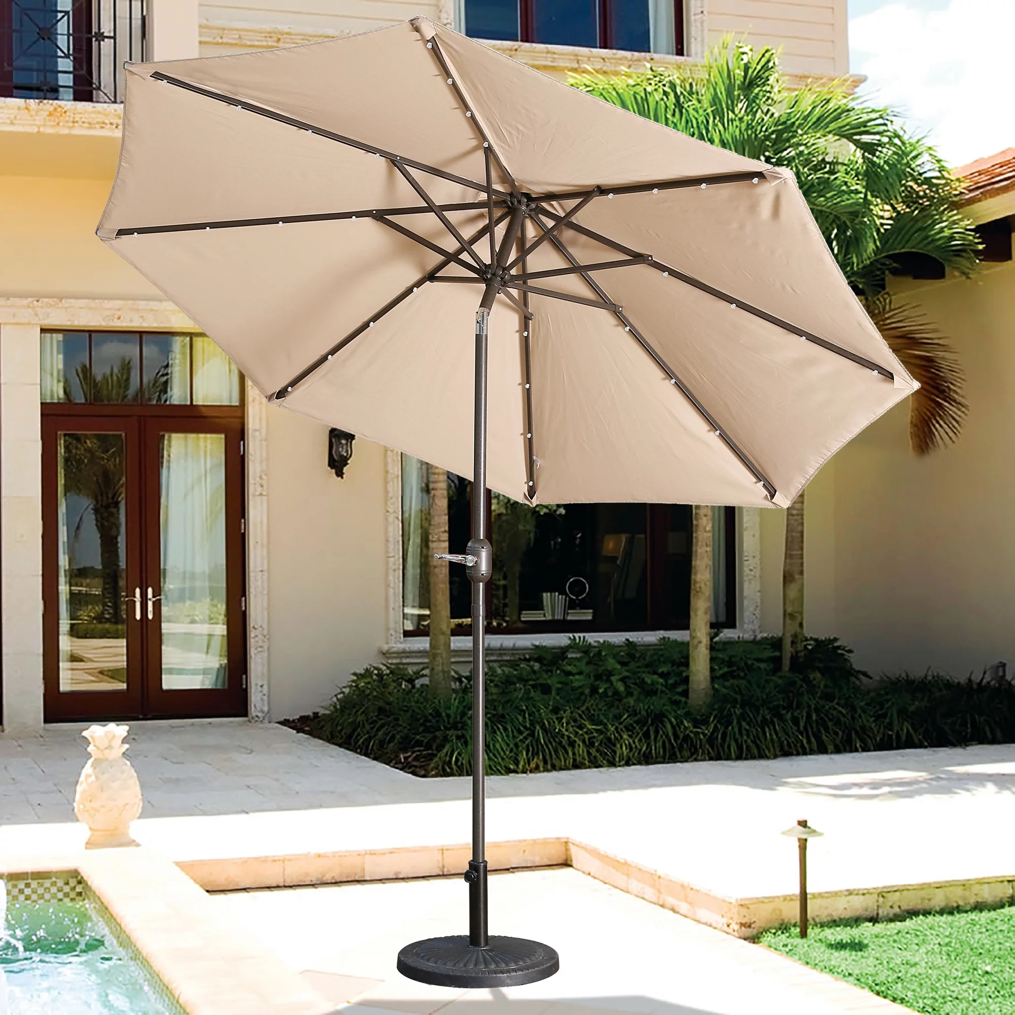 9ft Patio Umbrella Outdoor Market 32 LED Solar Umbrella with Tilt and Crank(Red)