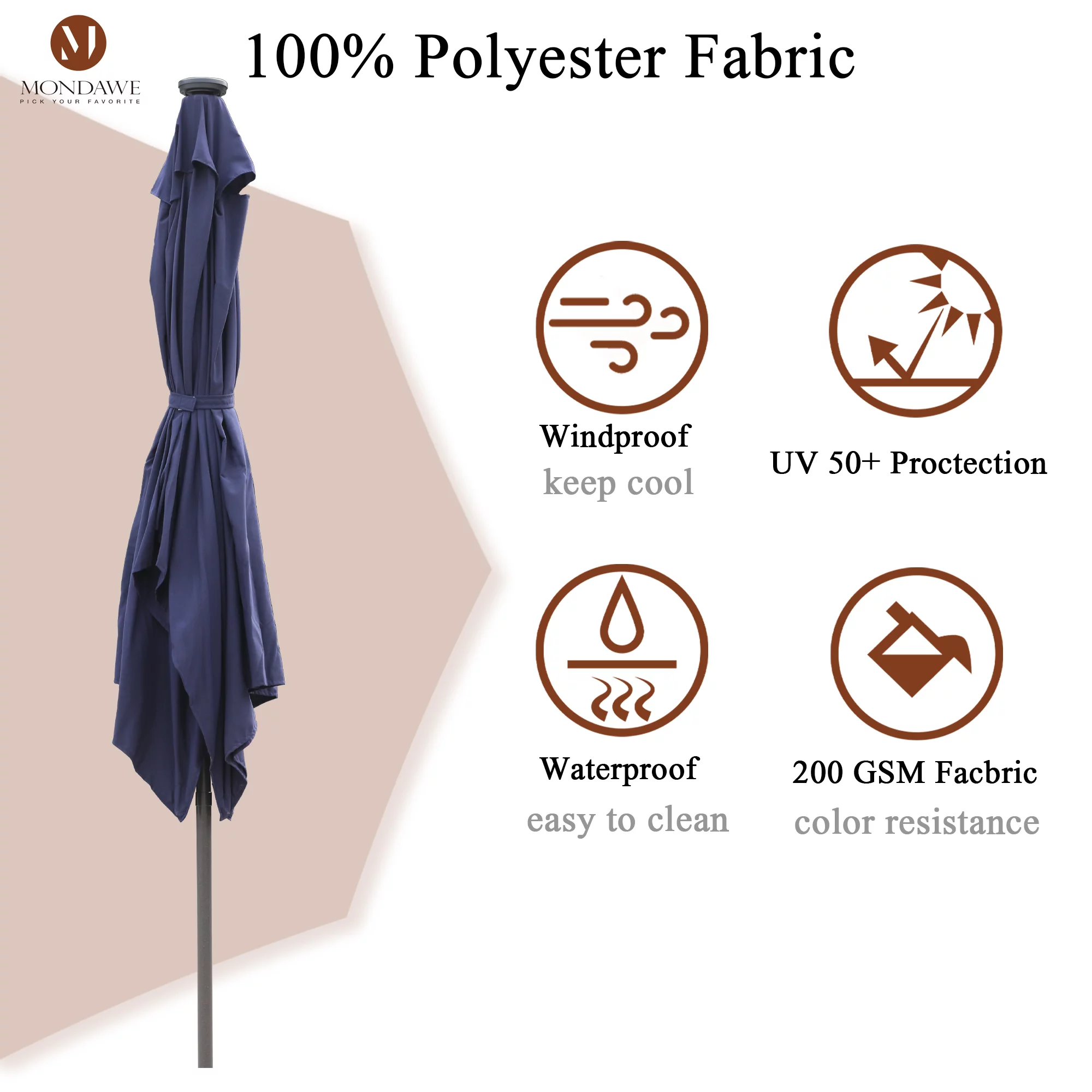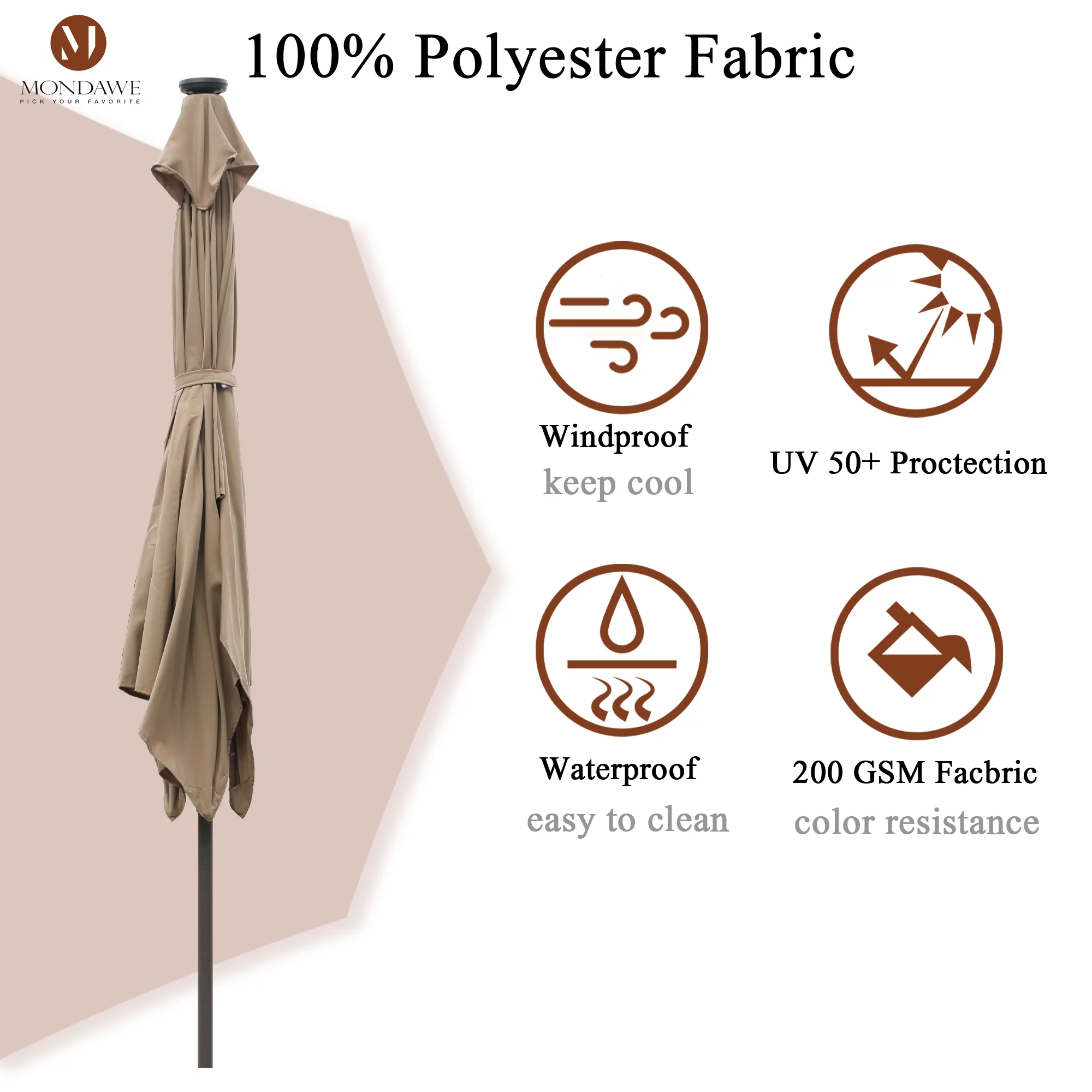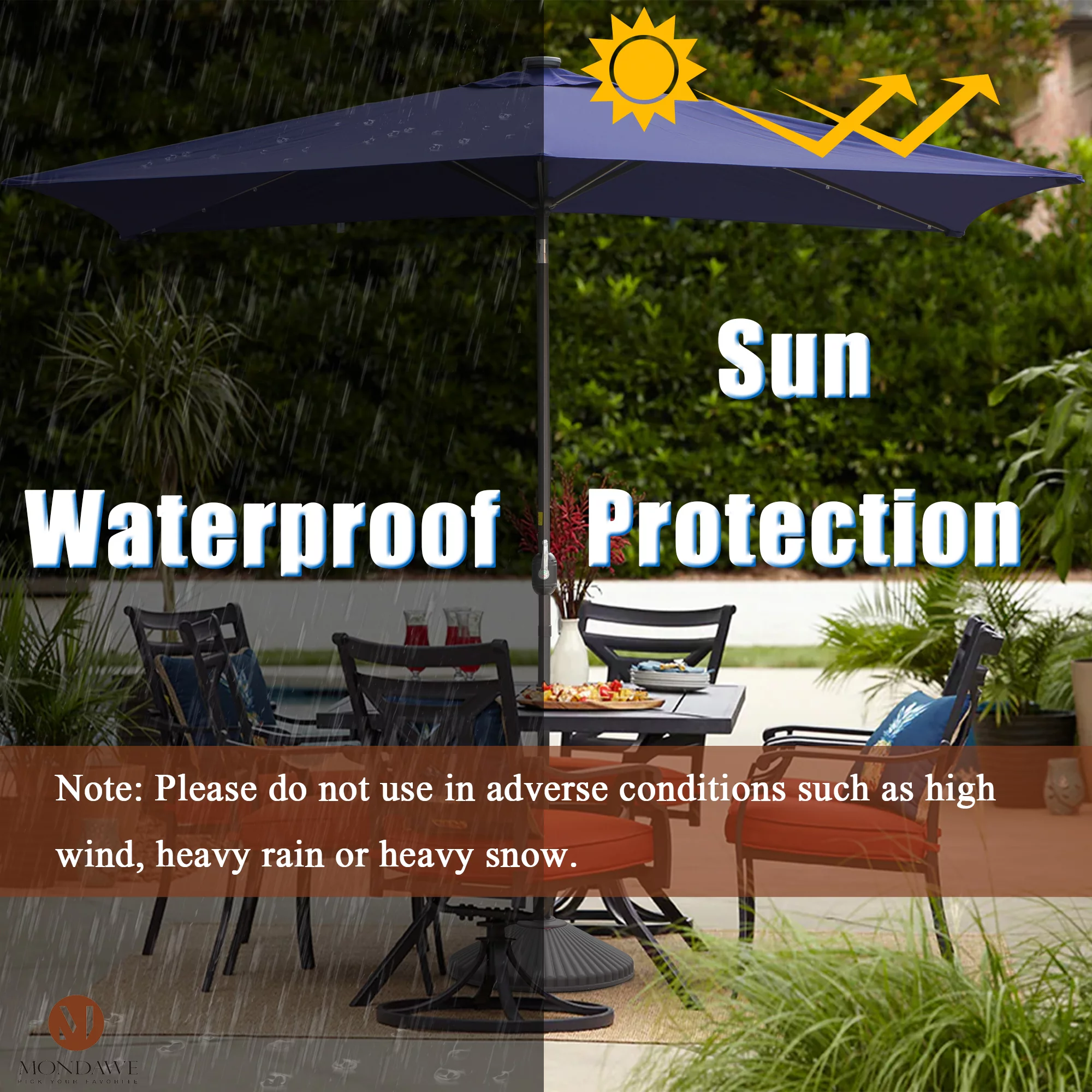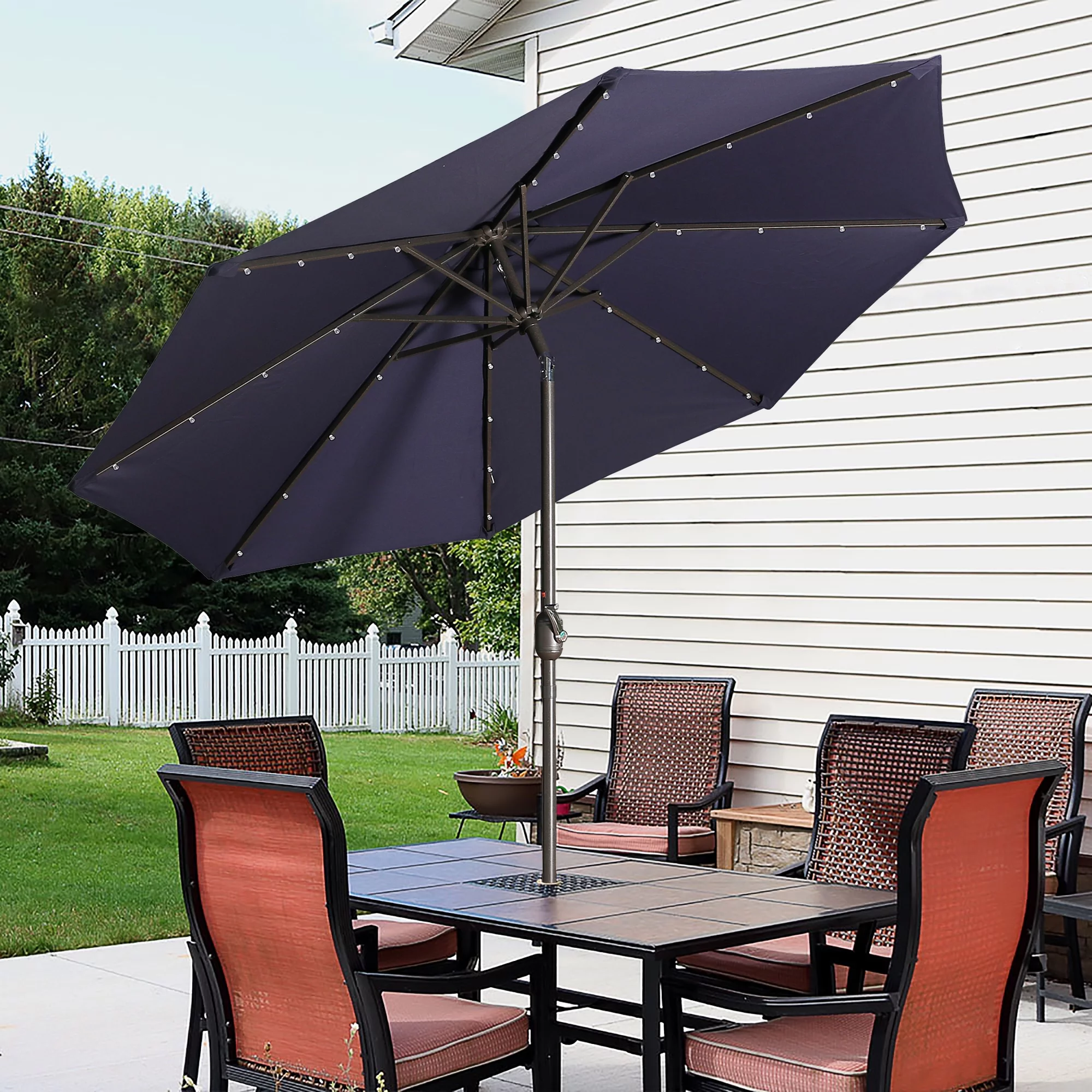 9ft Patio Umbrella Outdoor Market 32 LED Solar Umbrella with Tilt and Crank(Red)