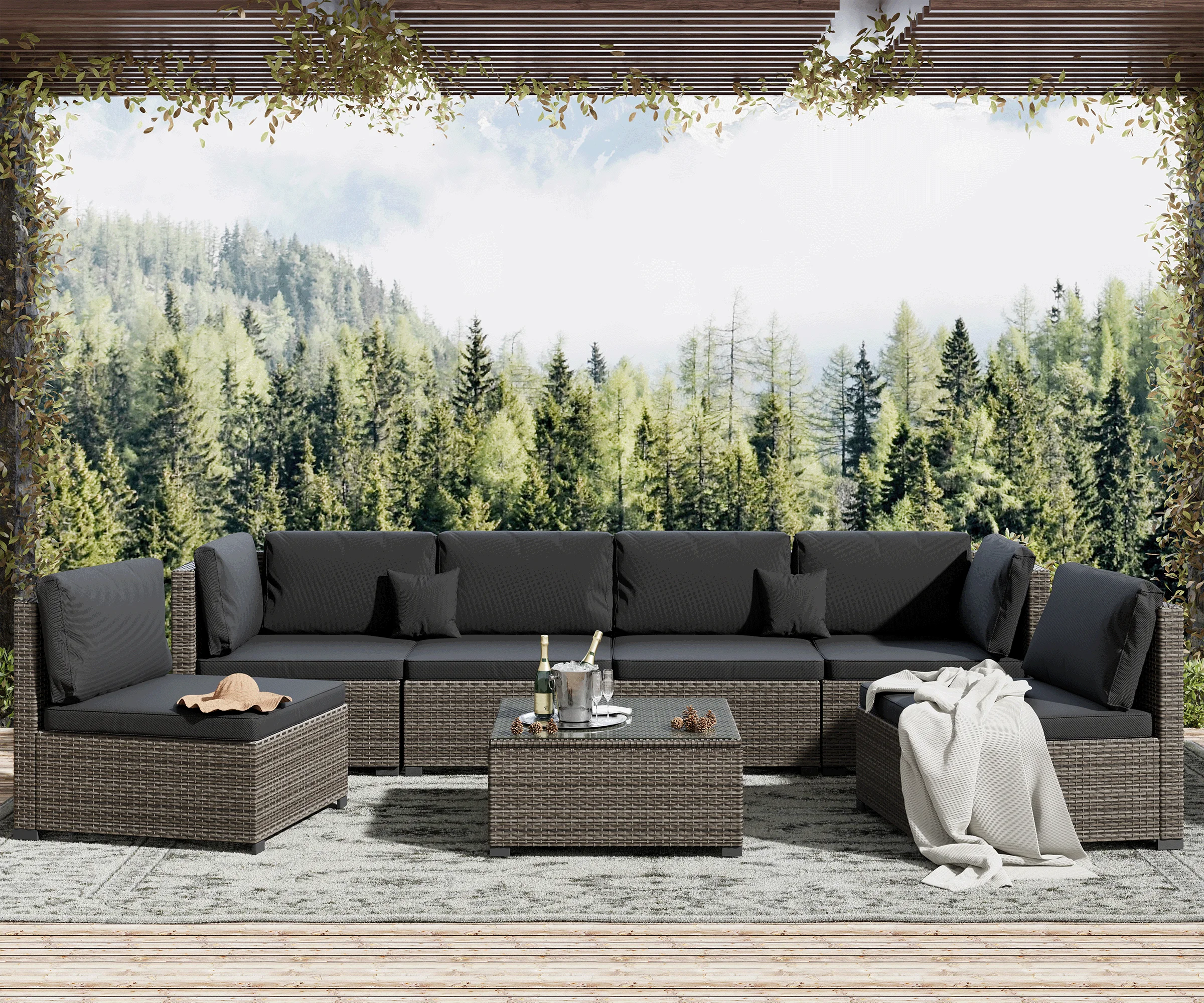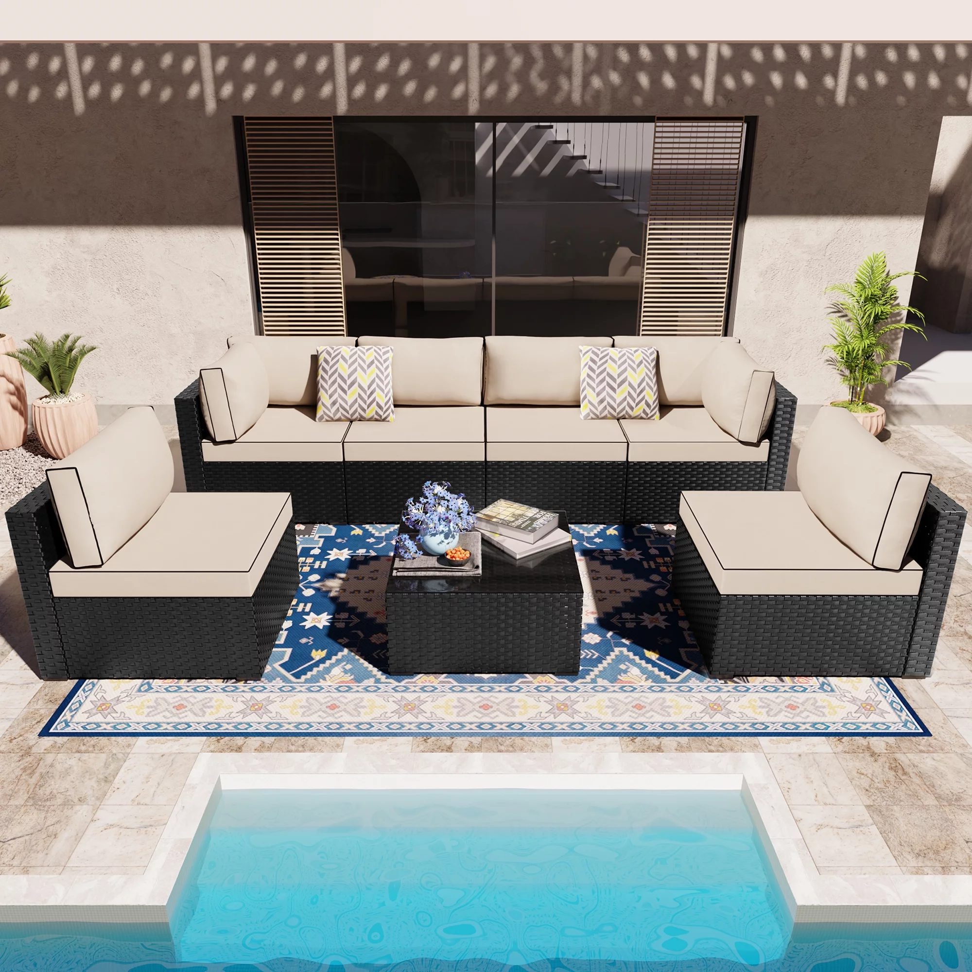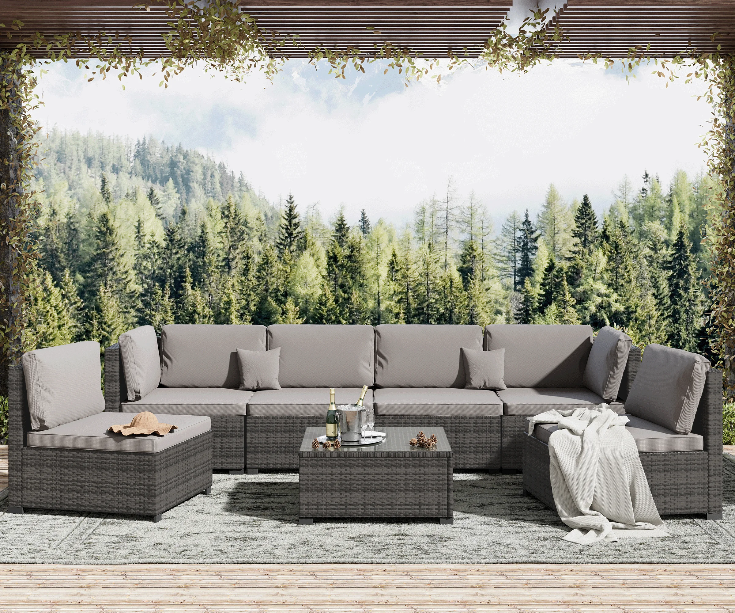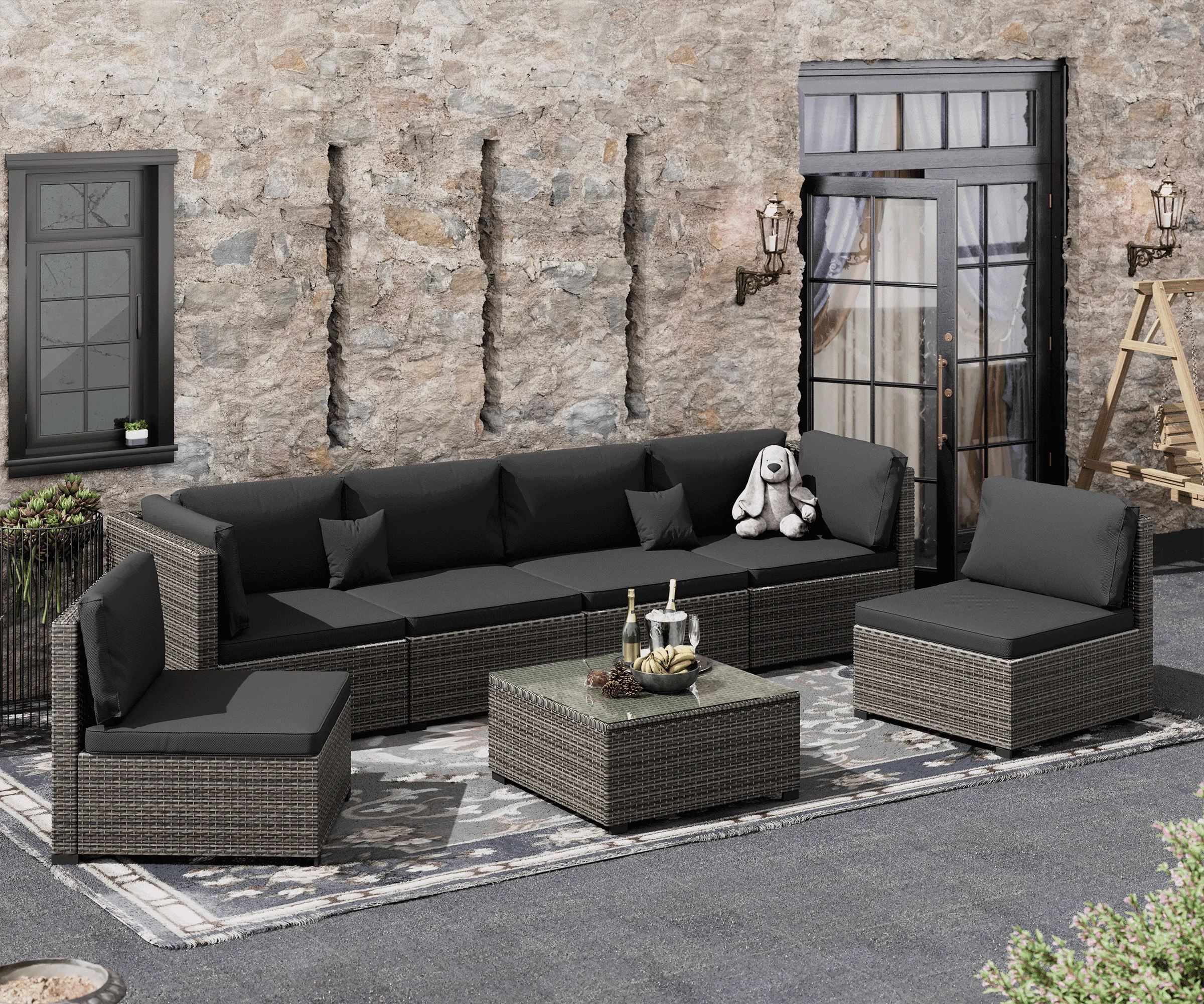 7 Piece Patio Furniture Set, Outdoor Furniture Patio Sectional Sofa, All Weather PE Rattan Outdoor Sectional with Cushion and Coffee Table.