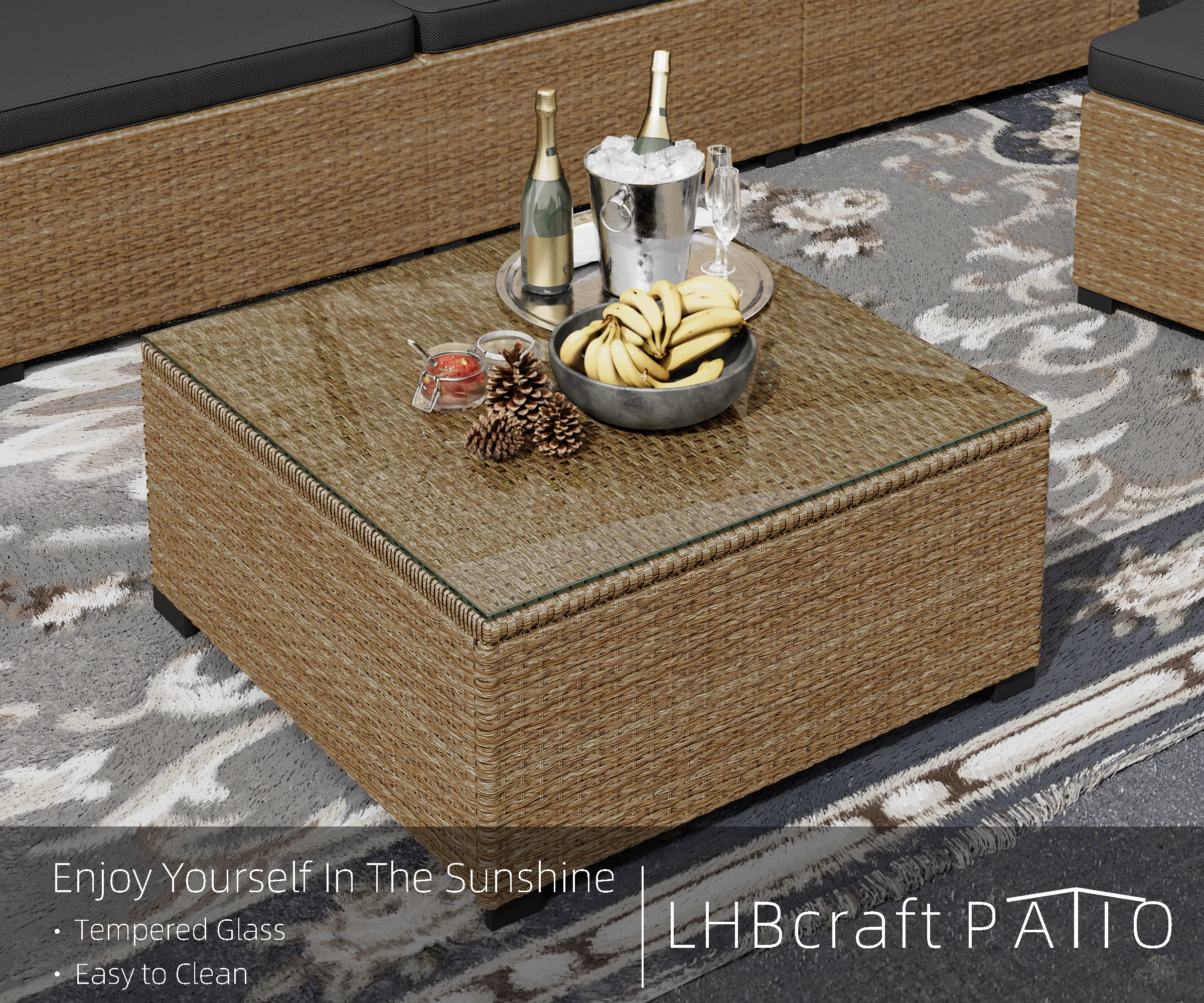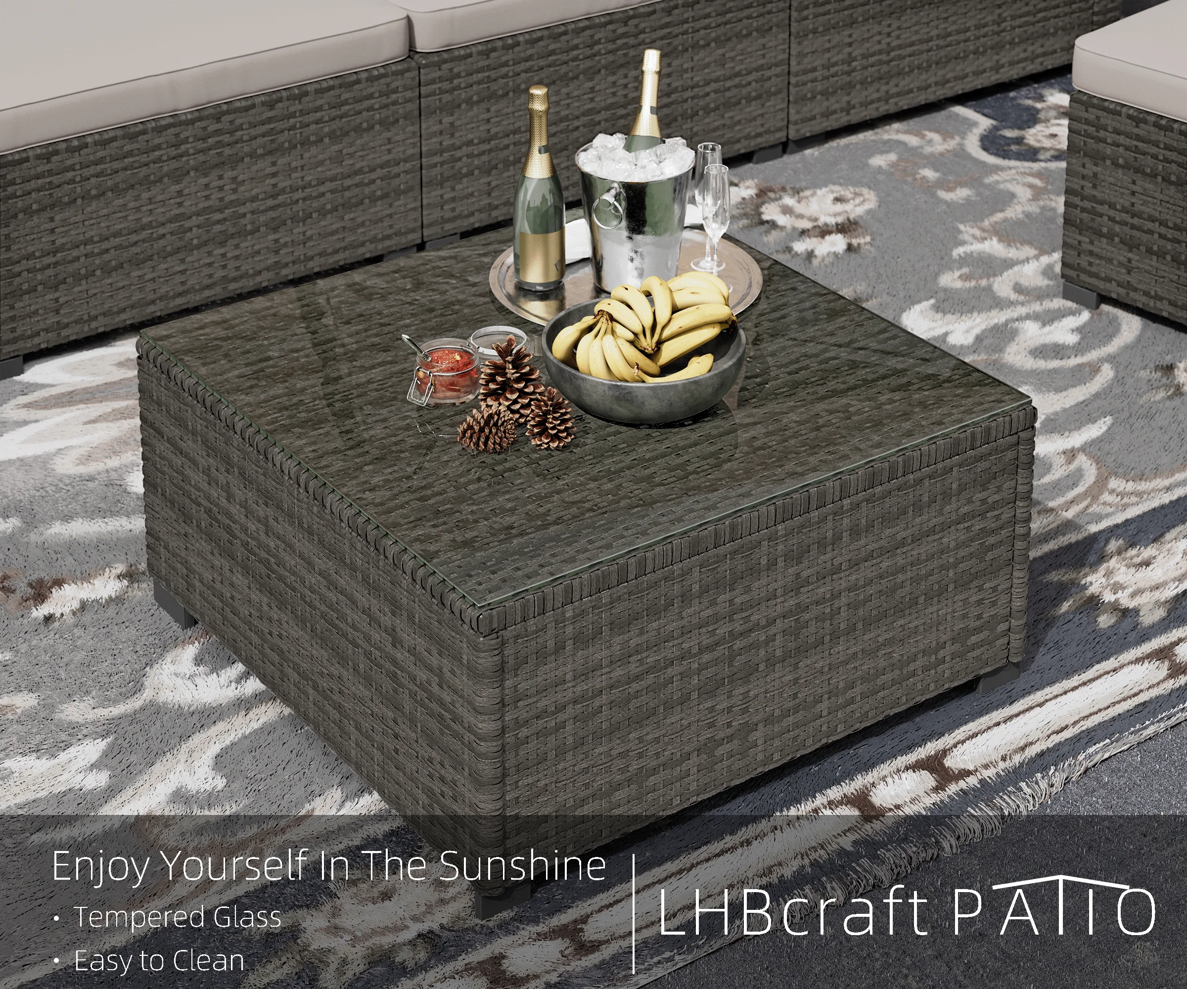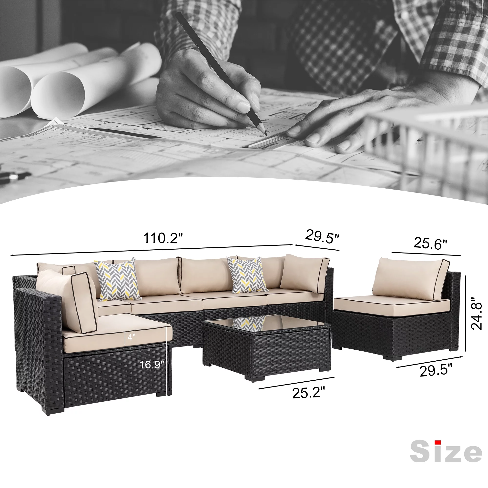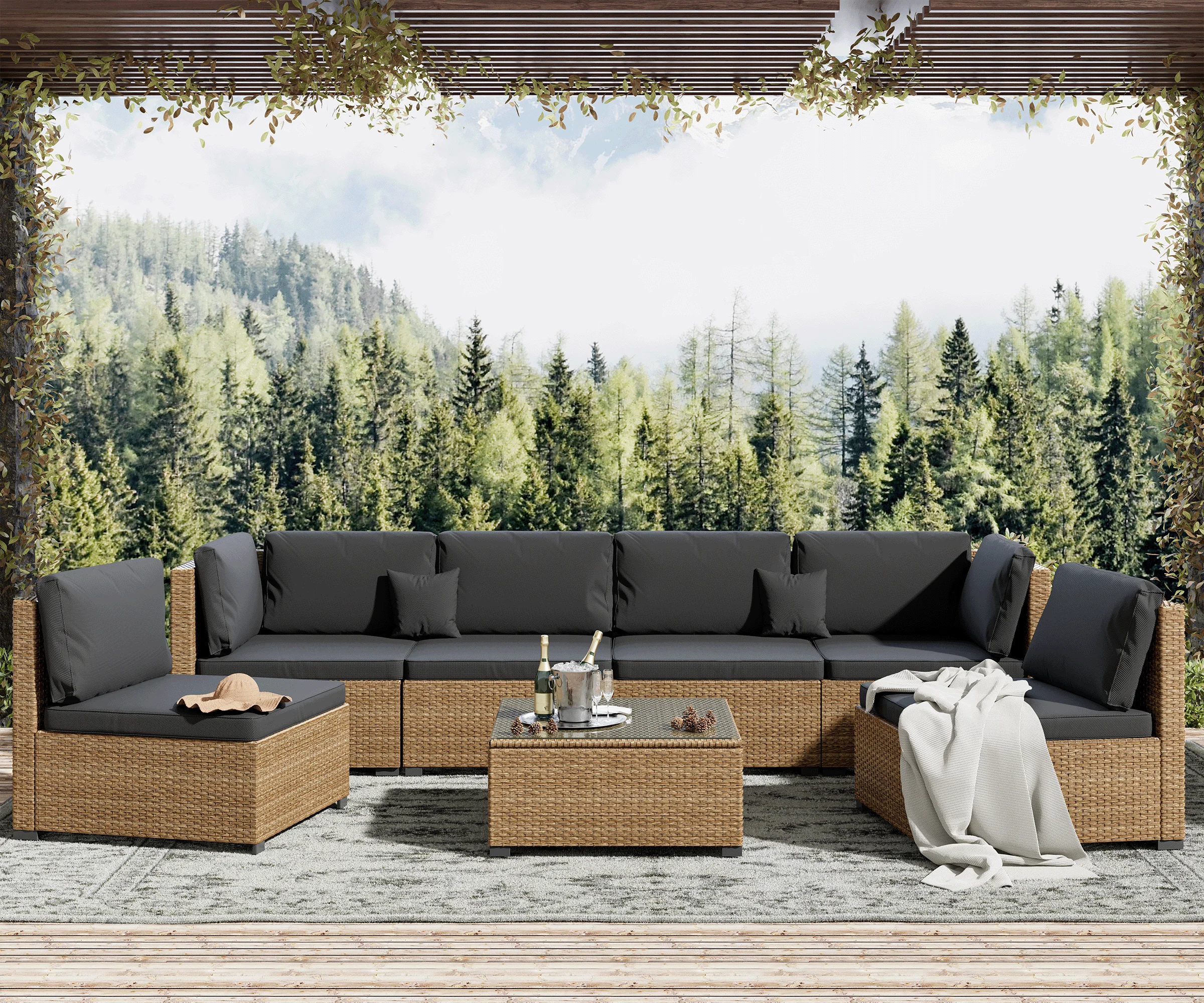 7 Piece Patio Furniture Set, Outdoor Furniture Patio Sectional Sofa, All Weather PE Rattan Outdoor Sectional with Cushion and Coffee Table.