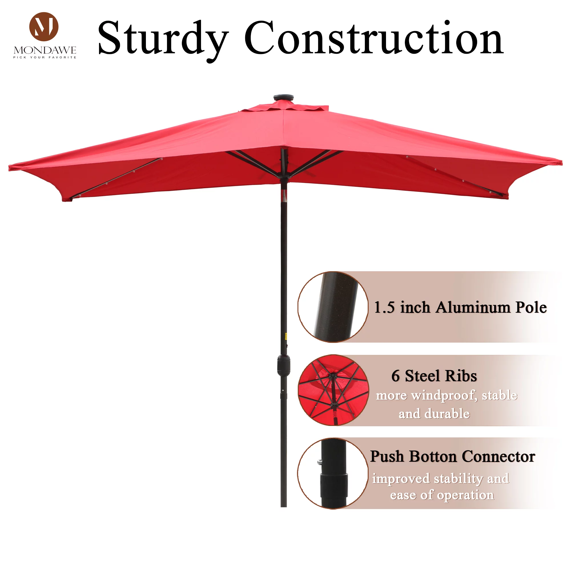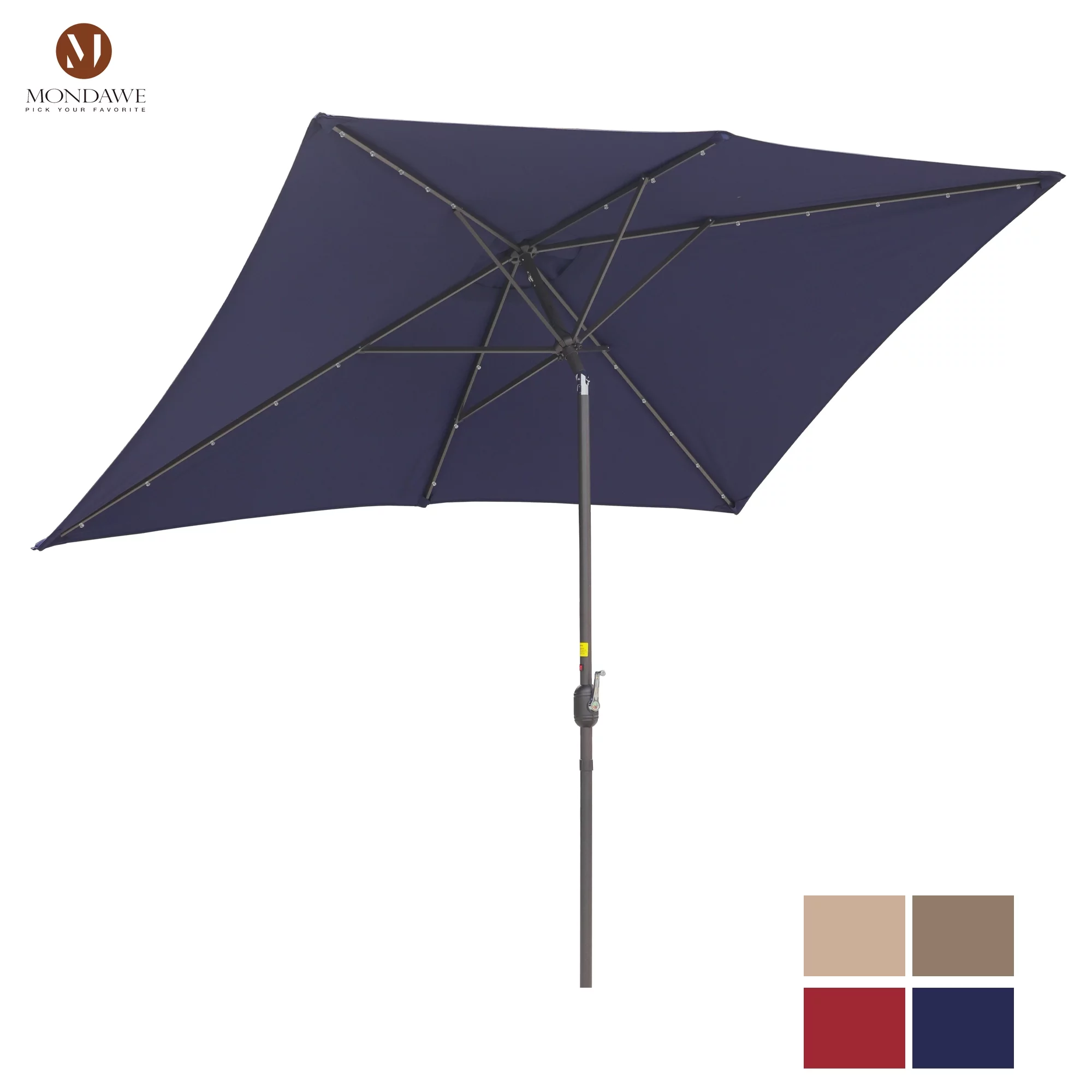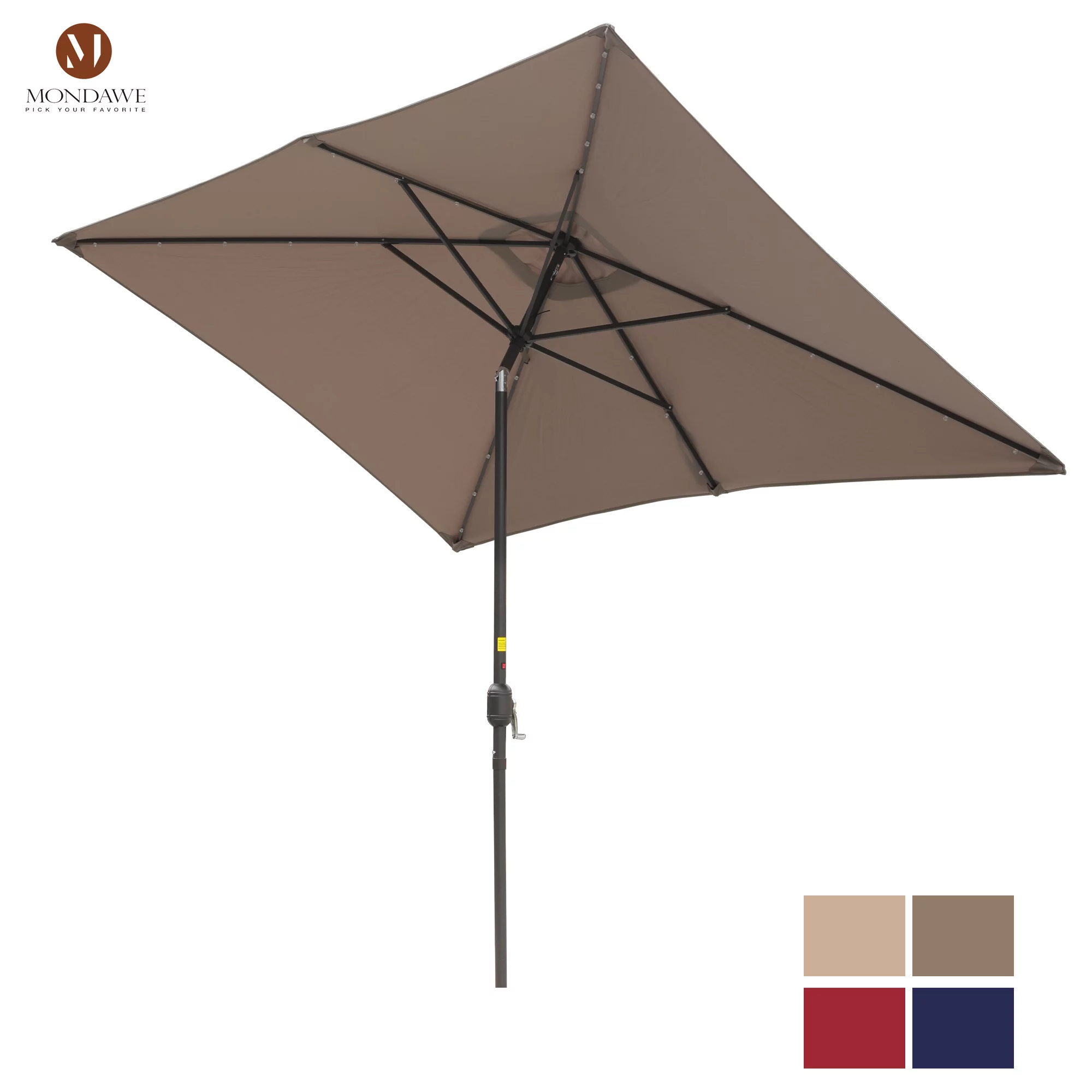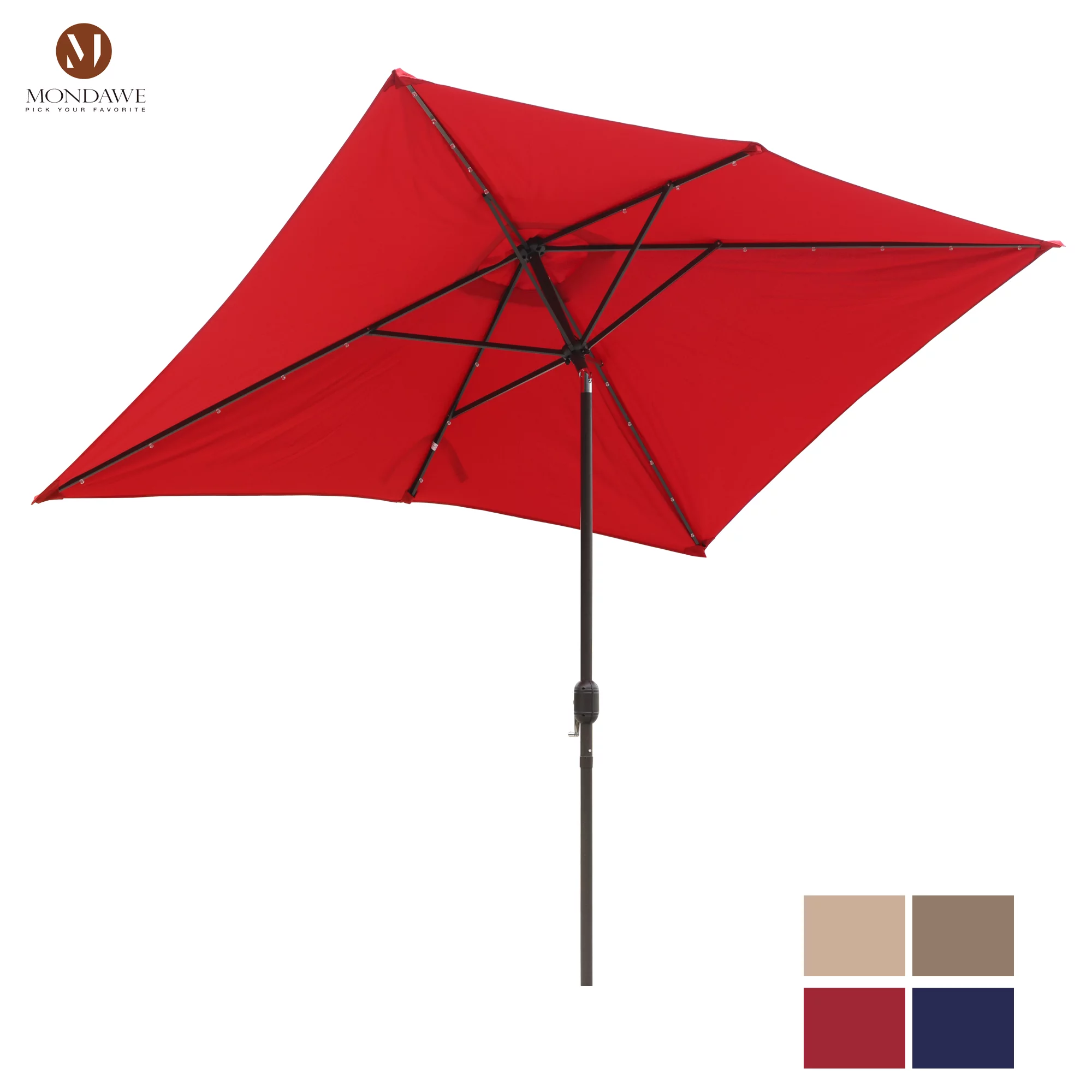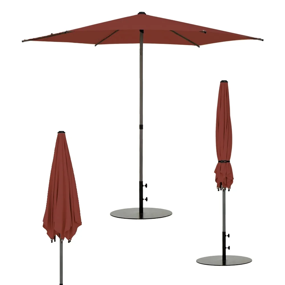 6.5 x 10ft Rectangular Patio Umbrella with 26 Led Lights Outdoor Market Table Umbrella with Push Button Tilt and Crank for Garden(Red)
