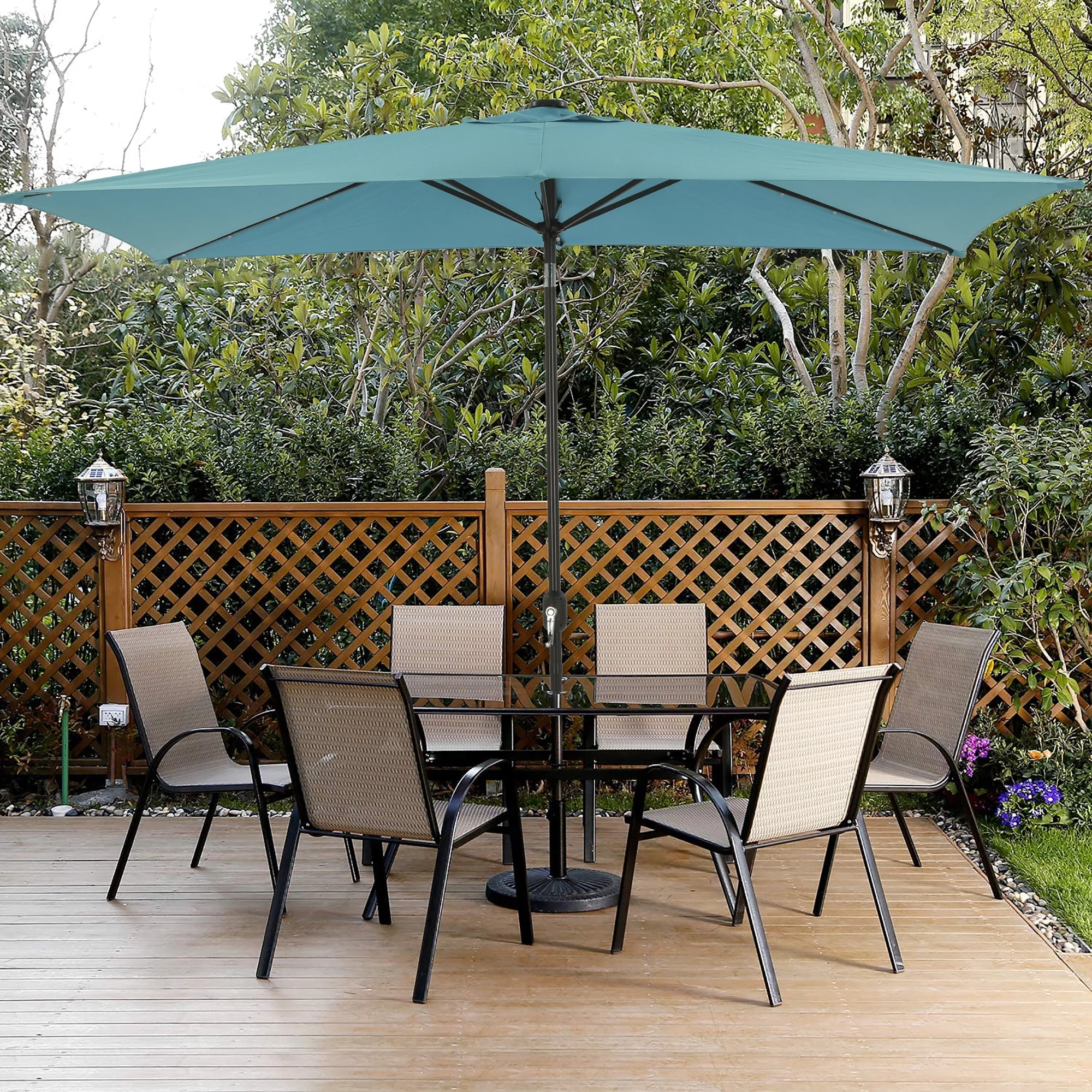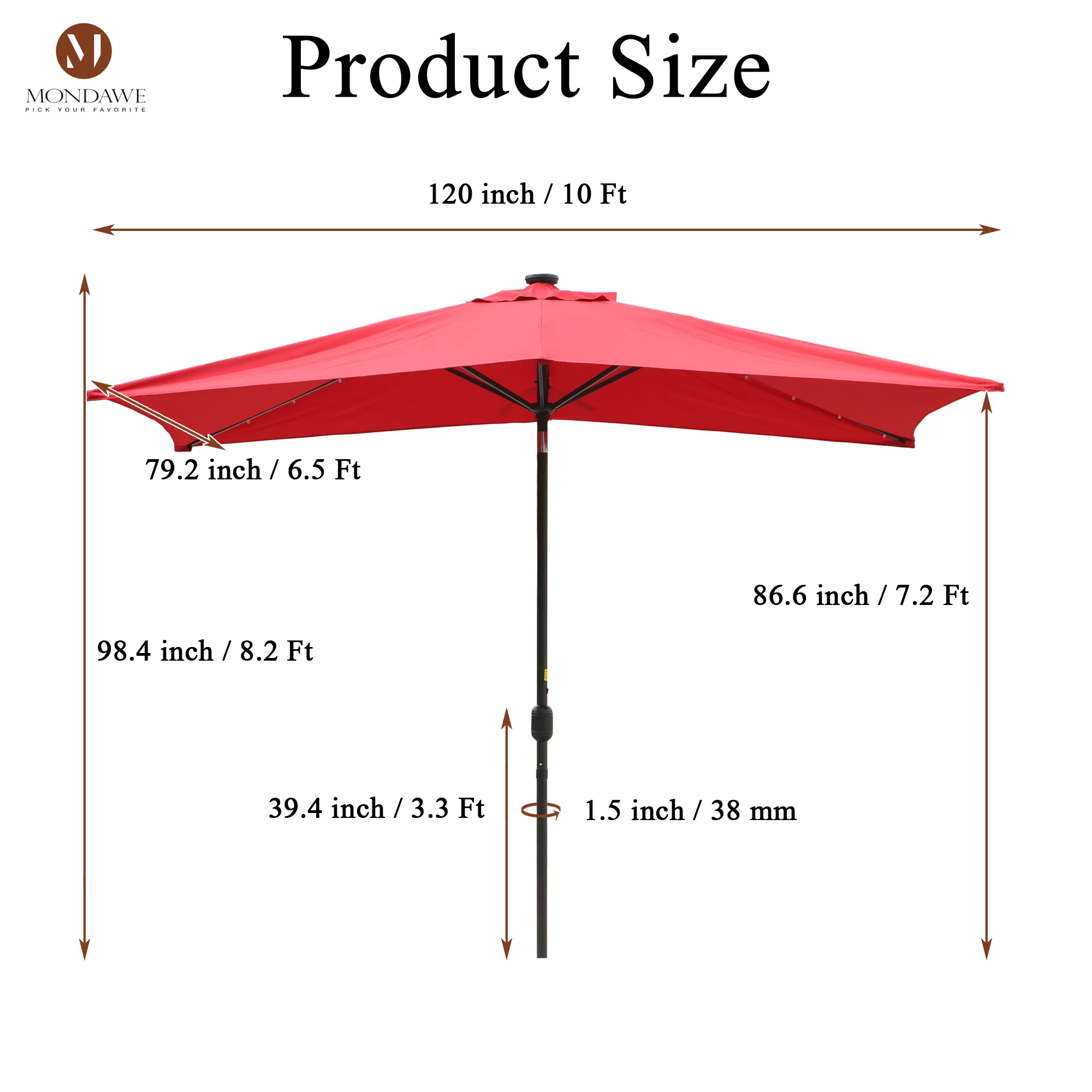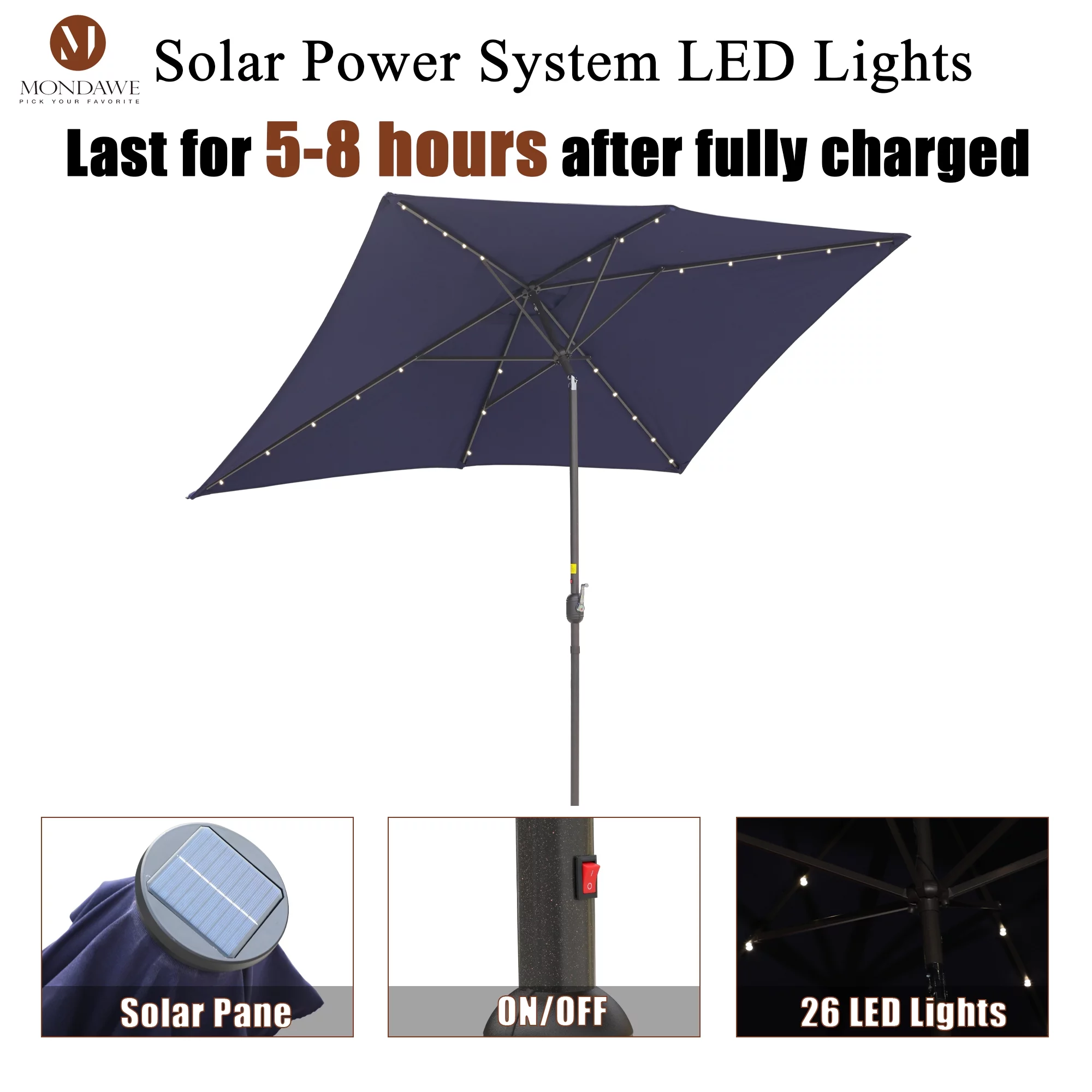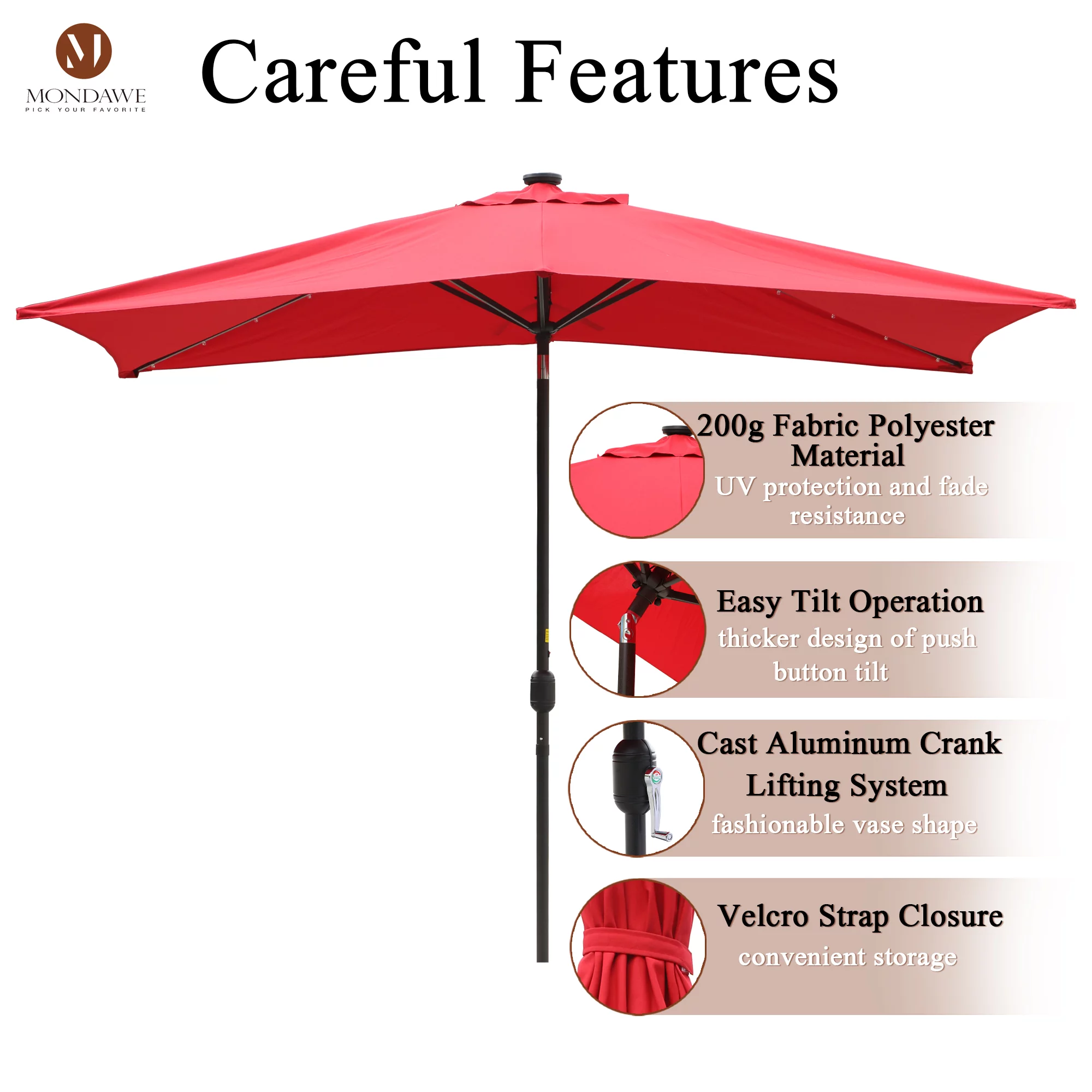 6.5 x 10ft Rectangular Patio Umbrella with 26 Led Lights Outdoor Market Table Umbrella with Push Button Tilt and Crank for Garden(Red)
