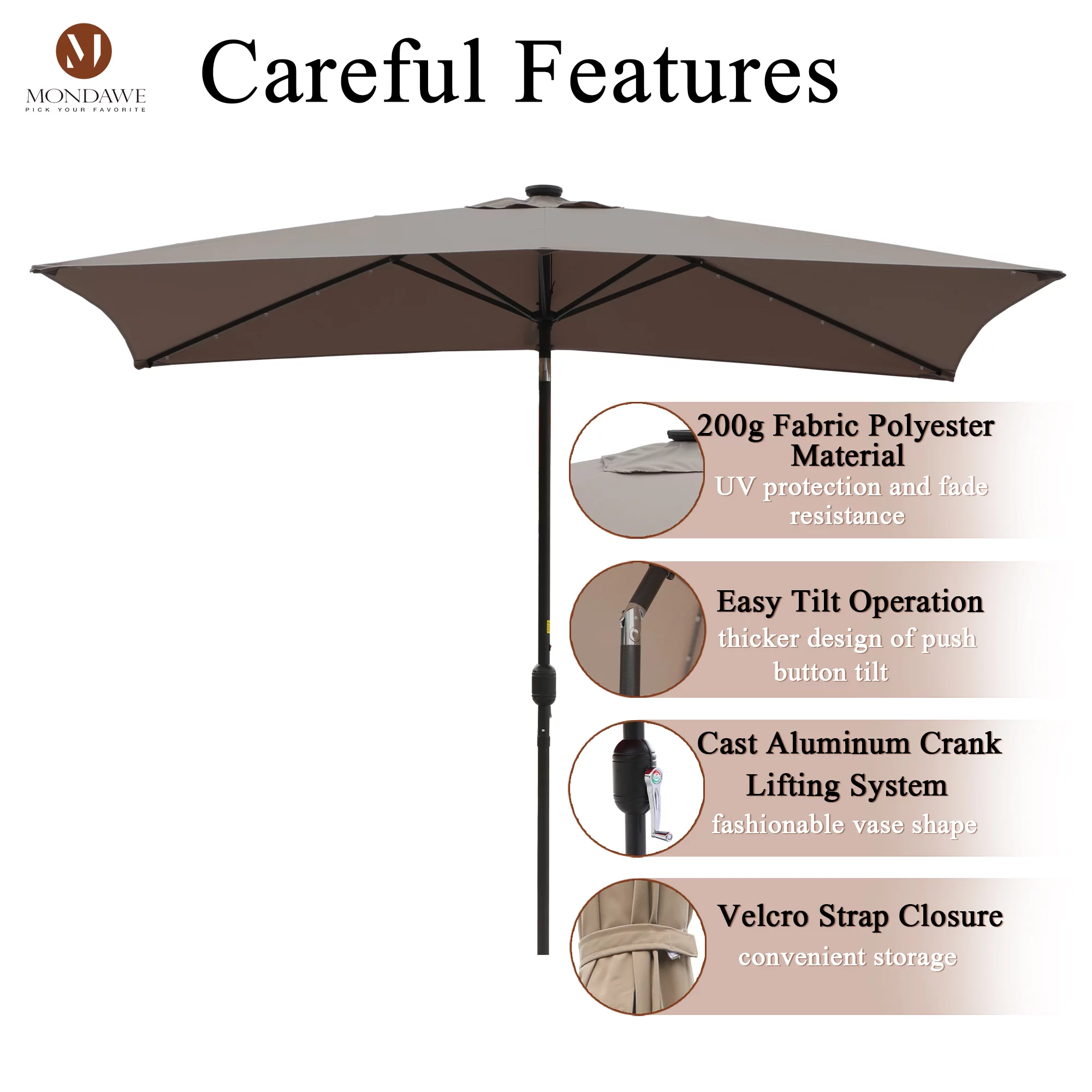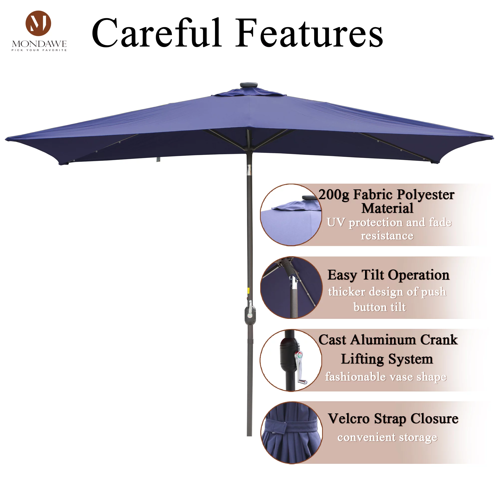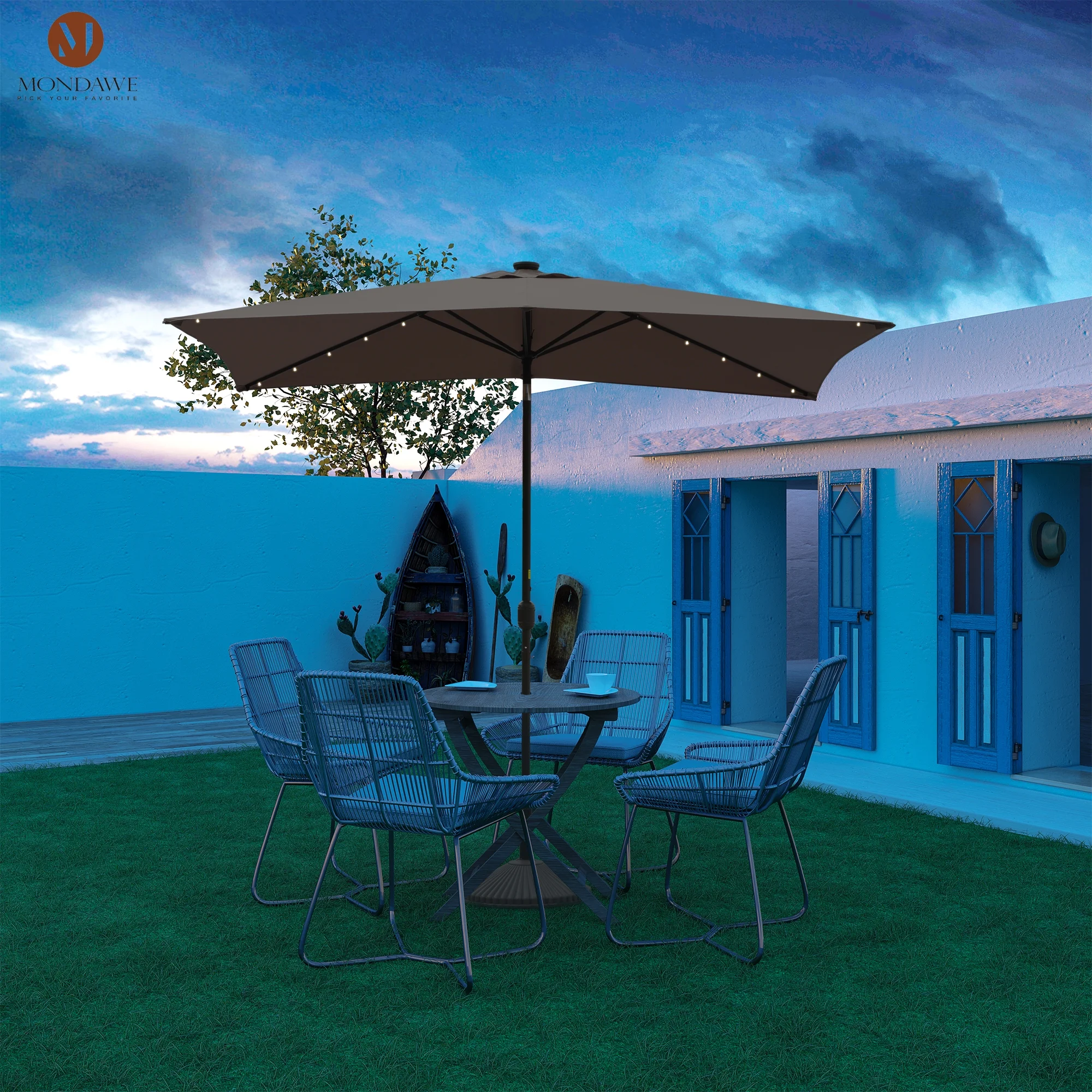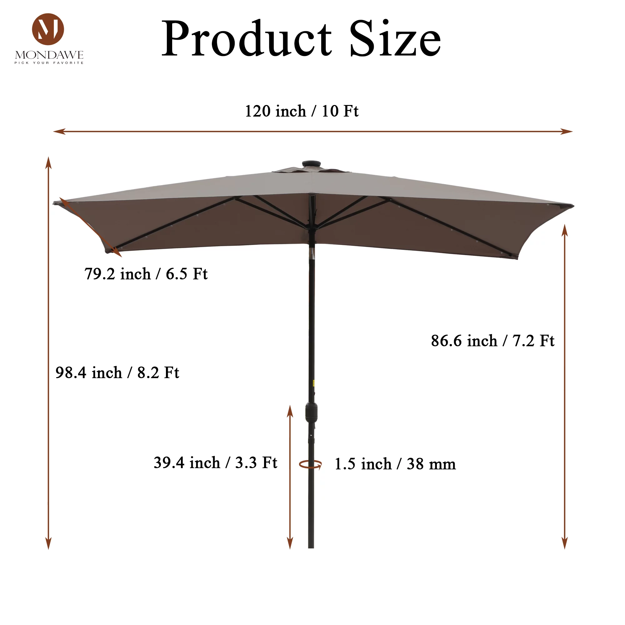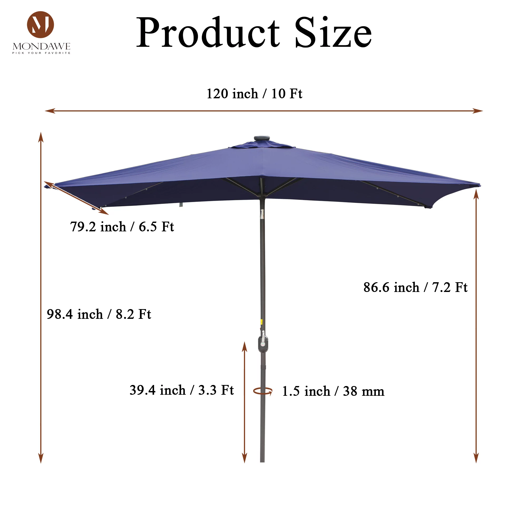 6.5 x 10ft Rectangular Patio Umbrella with 26 Led Lights Outdoor Market Table Umbrella with Push Button Tilt and Crank for Garden(Red)