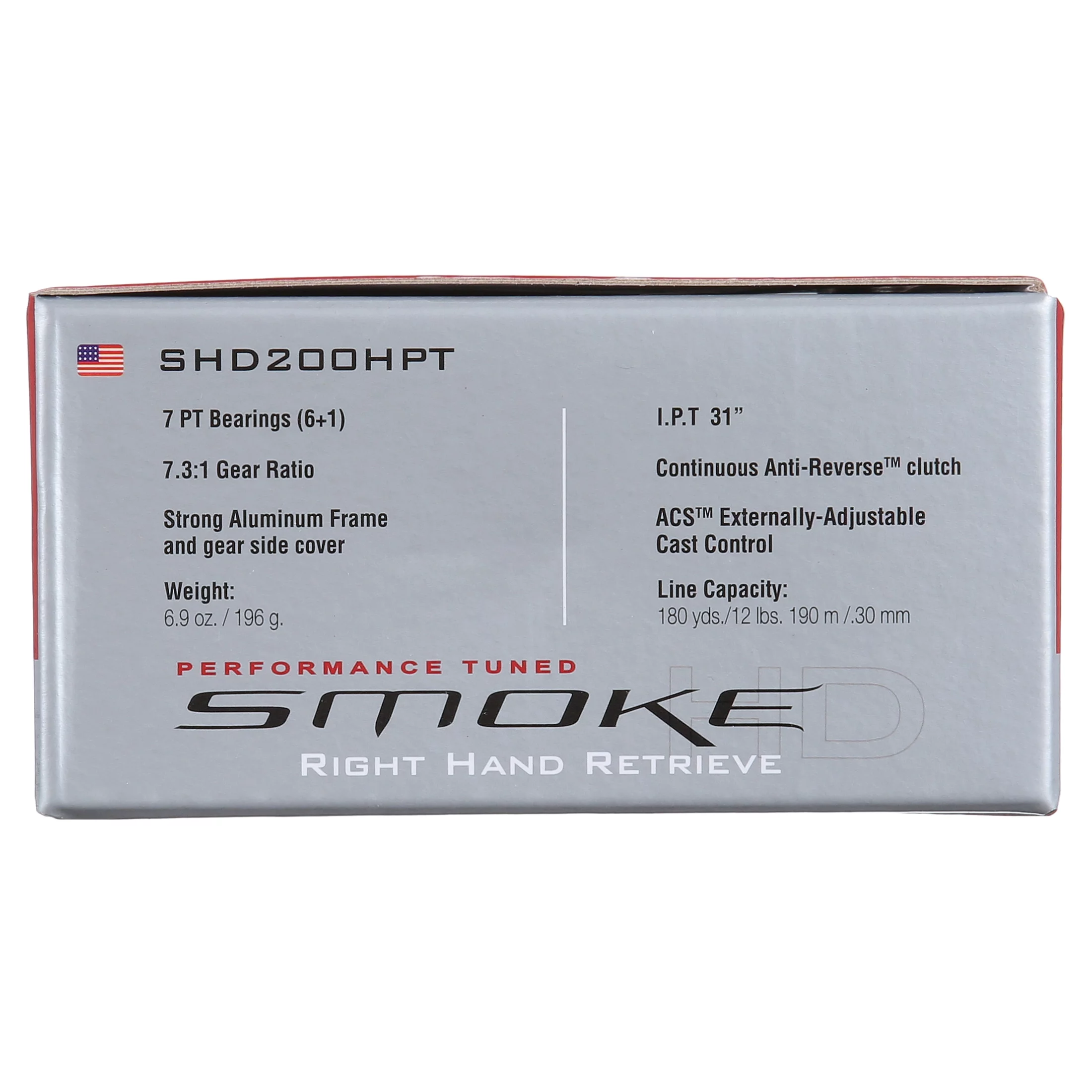 Quantum Smoke HD Baitcast Fishing Reel, Size 200 Reel, Right-Hand Retrieve, Continuous Anti-Reverse Clutch, Large EVA Handle Knobs, 7.3:1 Gear Ratio, Black