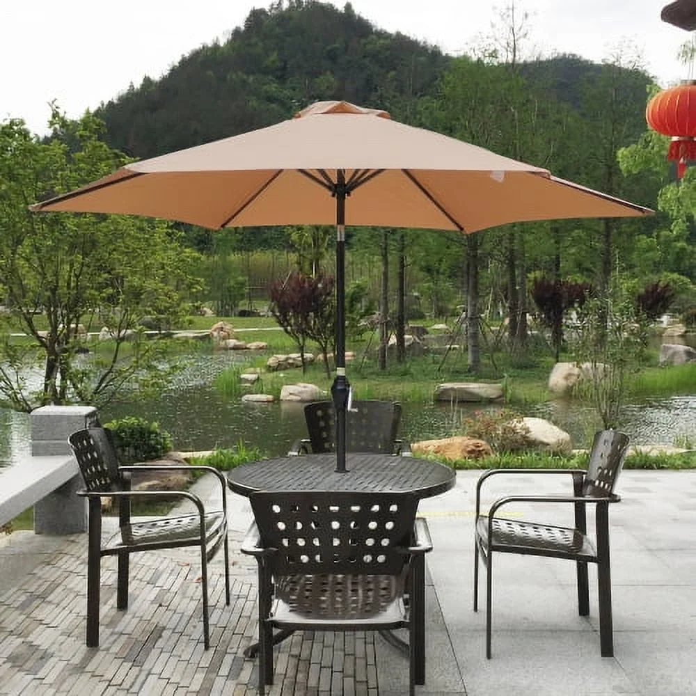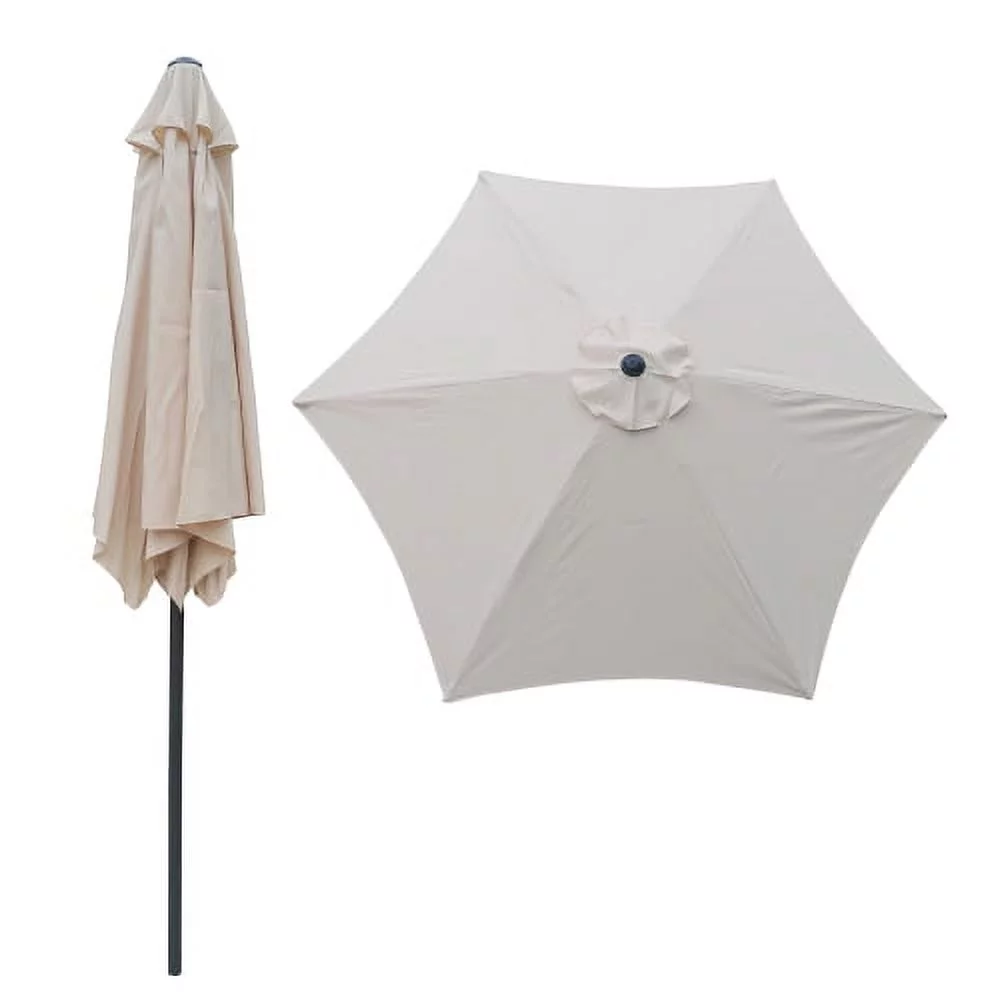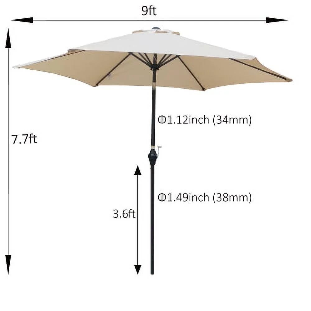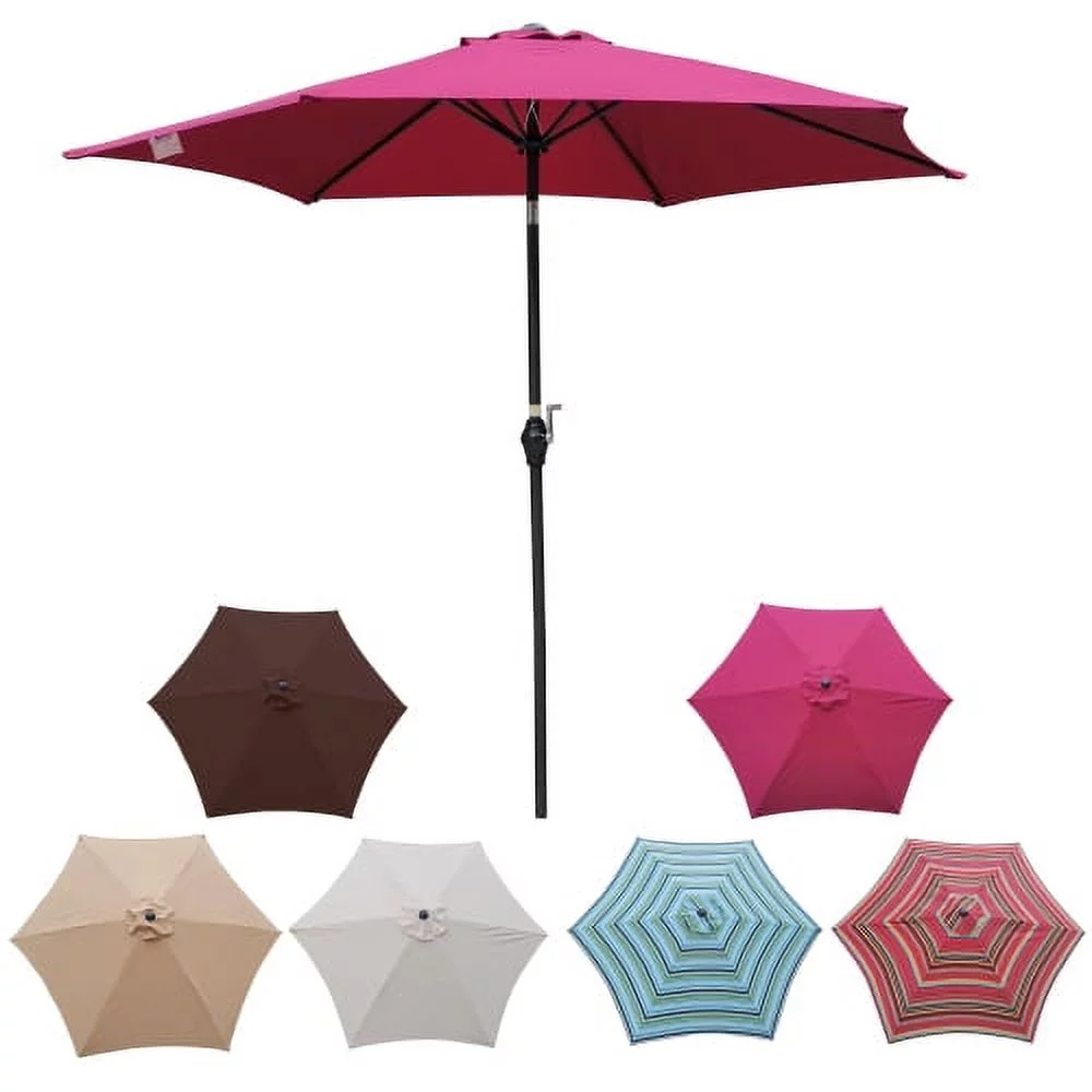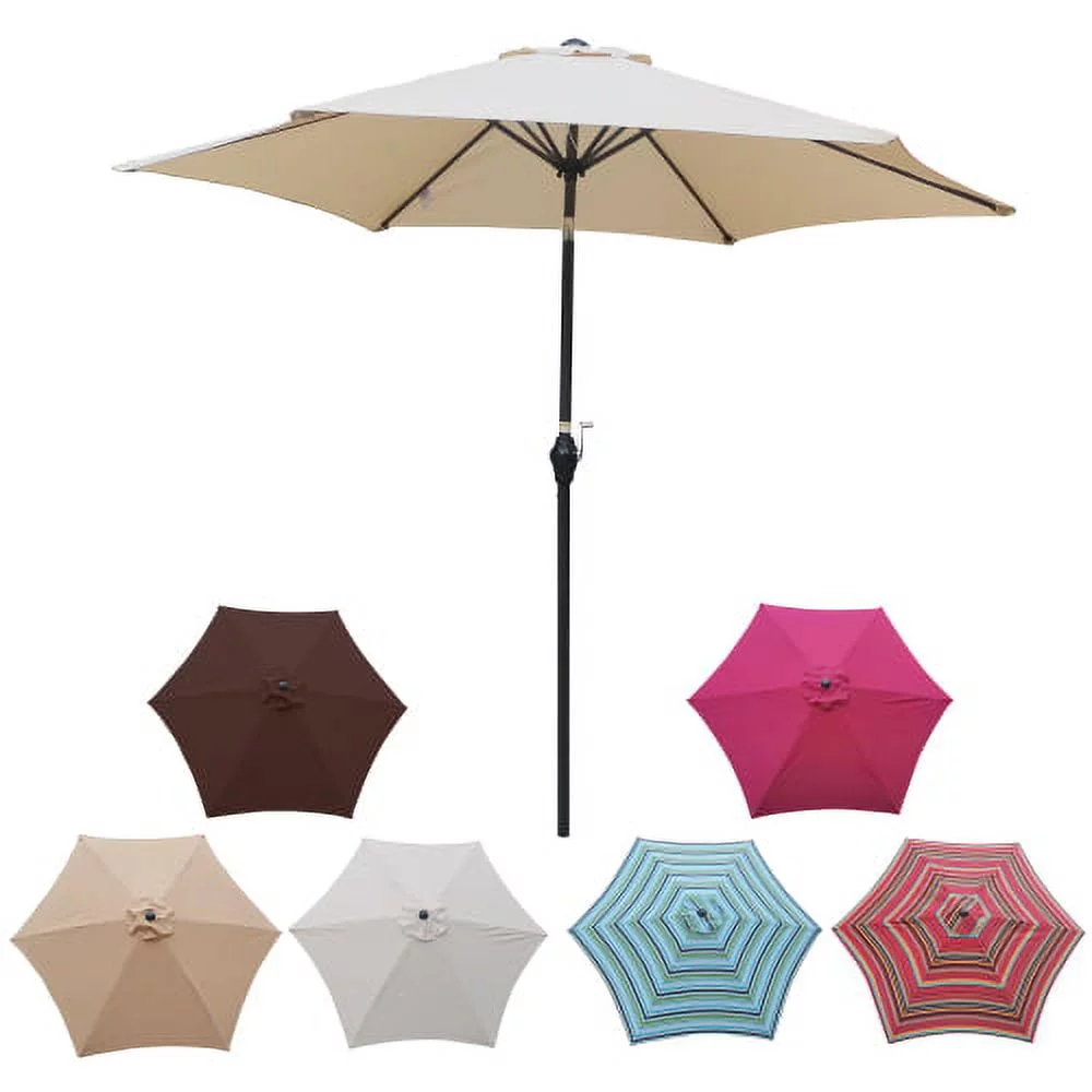 9FT Outdoor Patio Umbrella, Patio Beach Umbrella Outdoor Table Market Umbrella with Push Button Tilt/Crank and 6 Ribs, Outside Patio Umbrella for Garden Deck Backyard Swimming Pool, Blue Striped