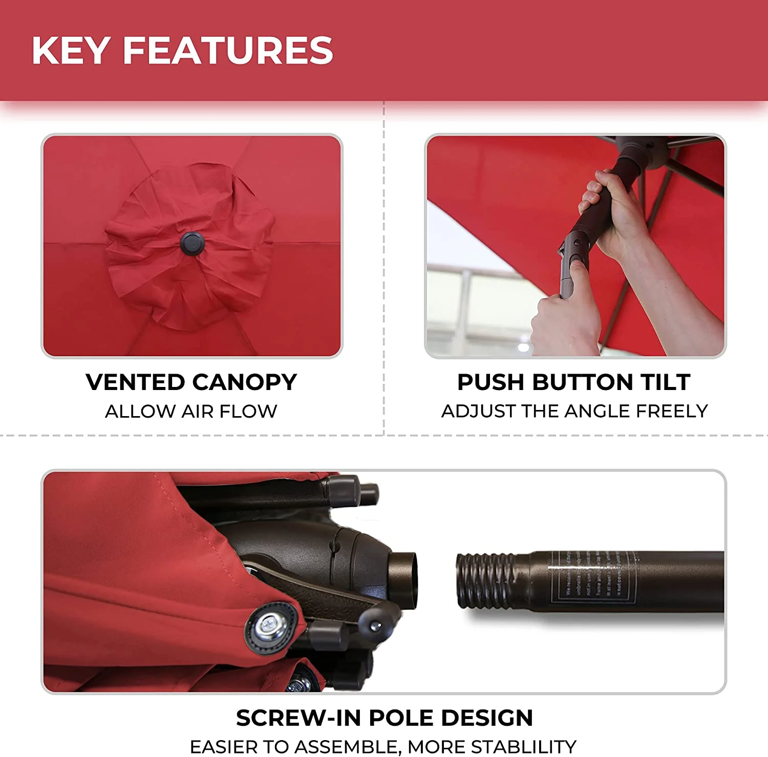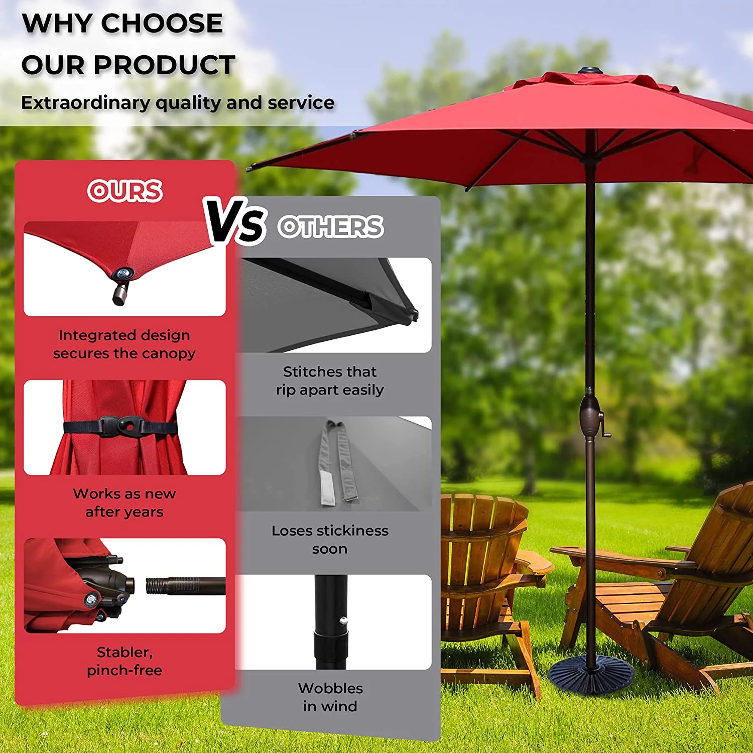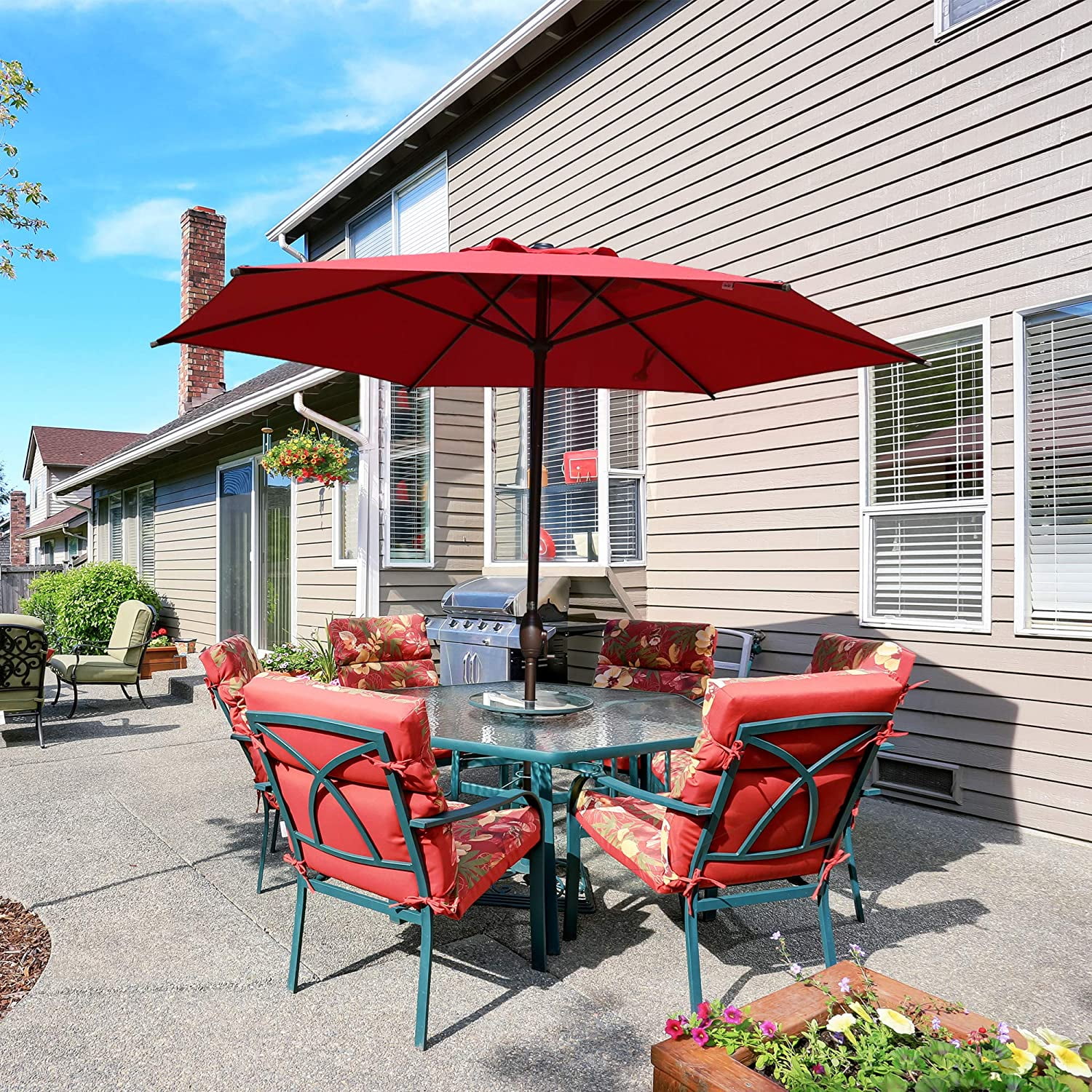 Abble Outdoor 11ft Patio Umbrella with Crank - Red