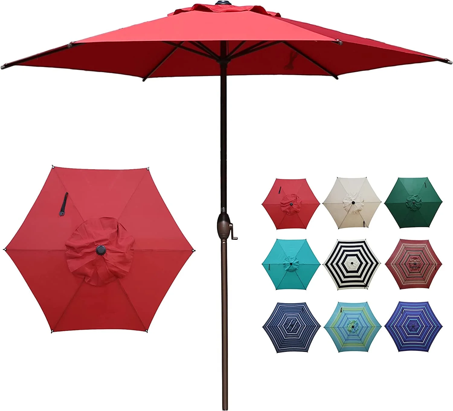 Abba Patio 7.5ft Round Oslo Outdoor Market Umbrella w/ Push Button Tilt, Crank, 6 Ribs-Dark Red