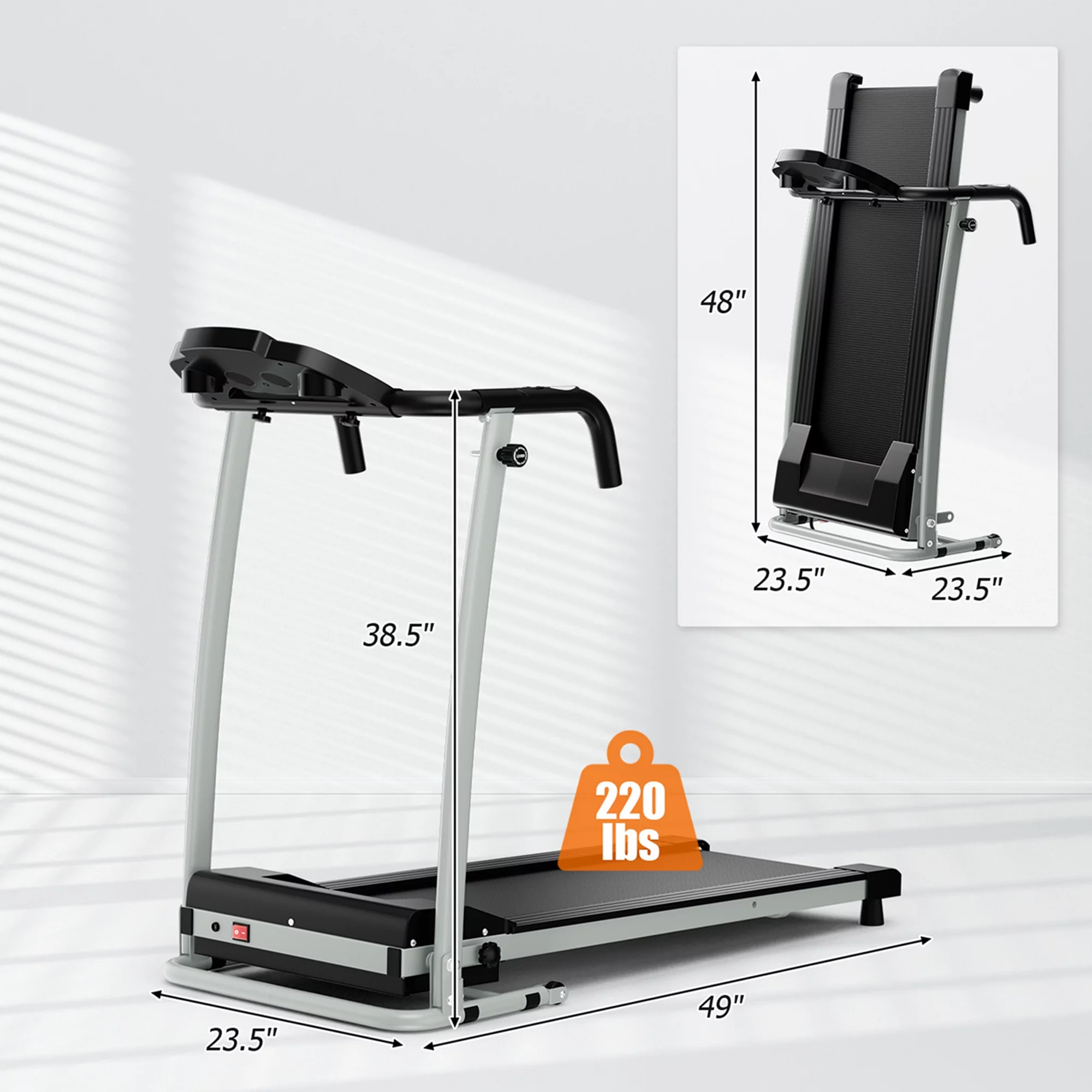 Costway 2 HP Folding Treadmill Motorized Running Machine 12 Preset Program & LCD Display Black