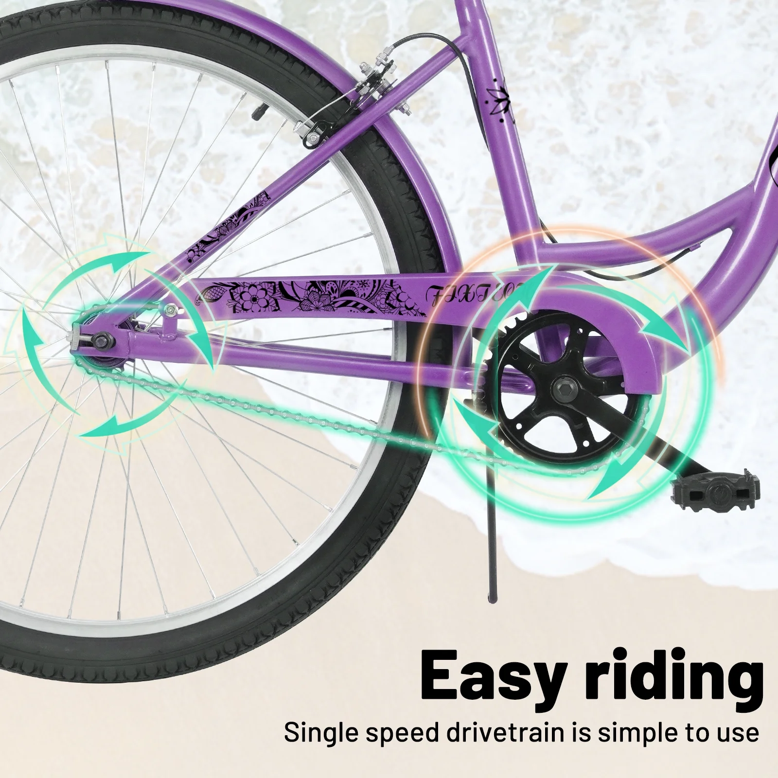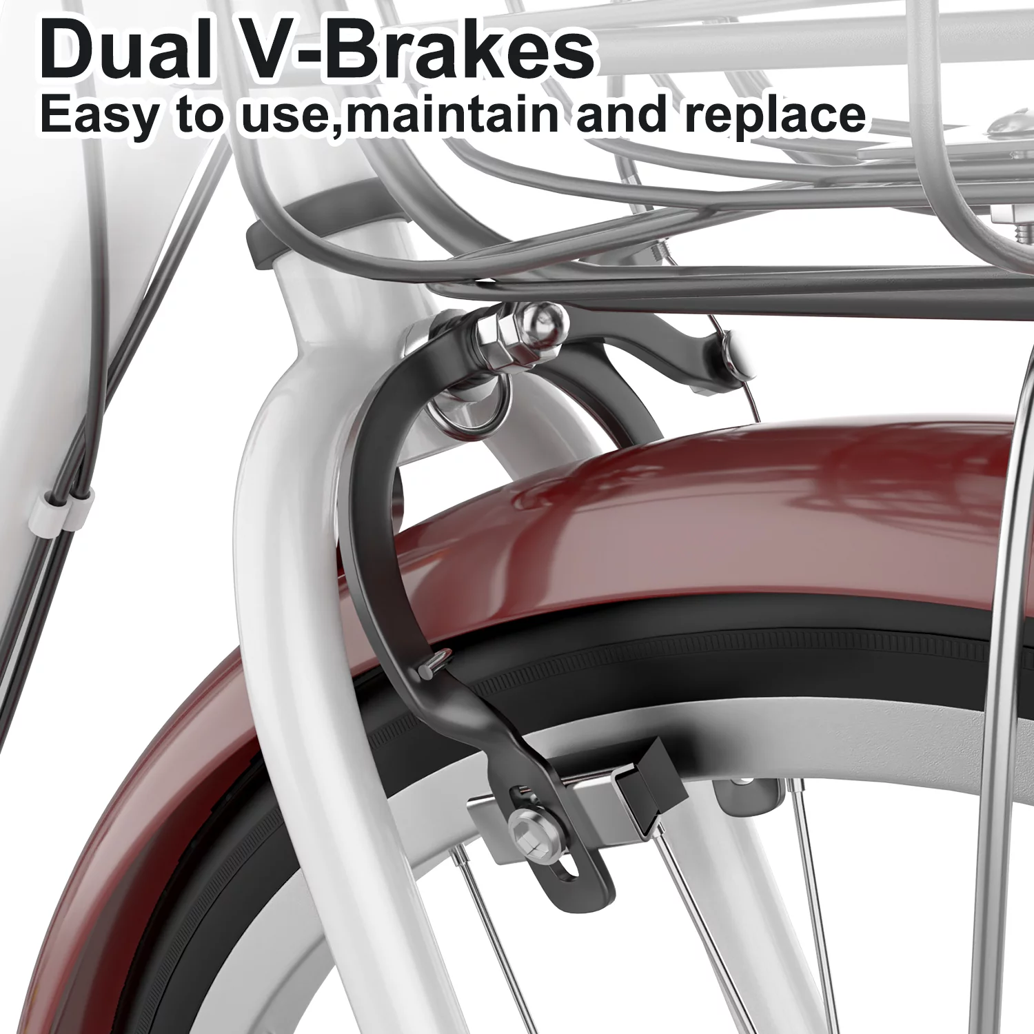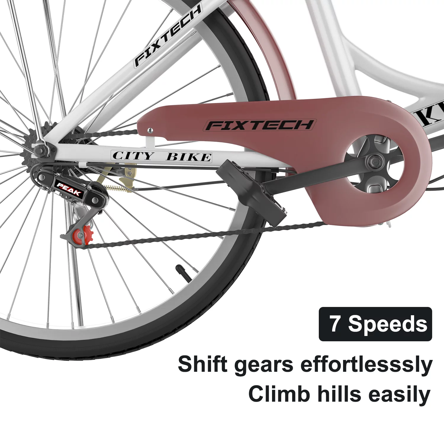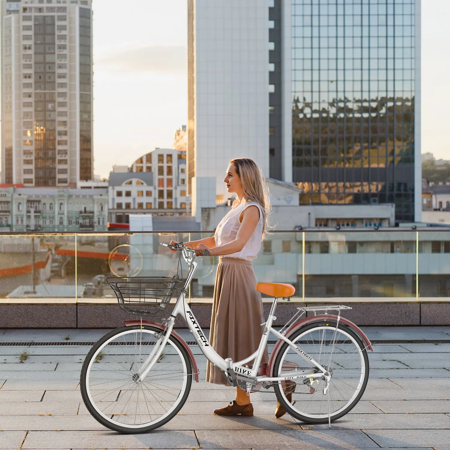 FIXTECH 7 Speed Foldable Comfort Cruiser Bike, 26 inch with Basket for Women and Girls, White