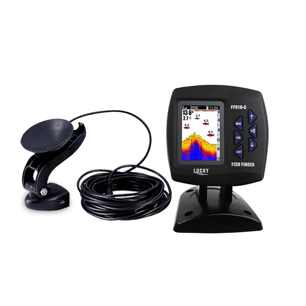 Tomfoto FF918-C100DS Color Screen Wired Fish Finder Dual Frequency 328ft/100m Water Depth Boat Fish Finder
