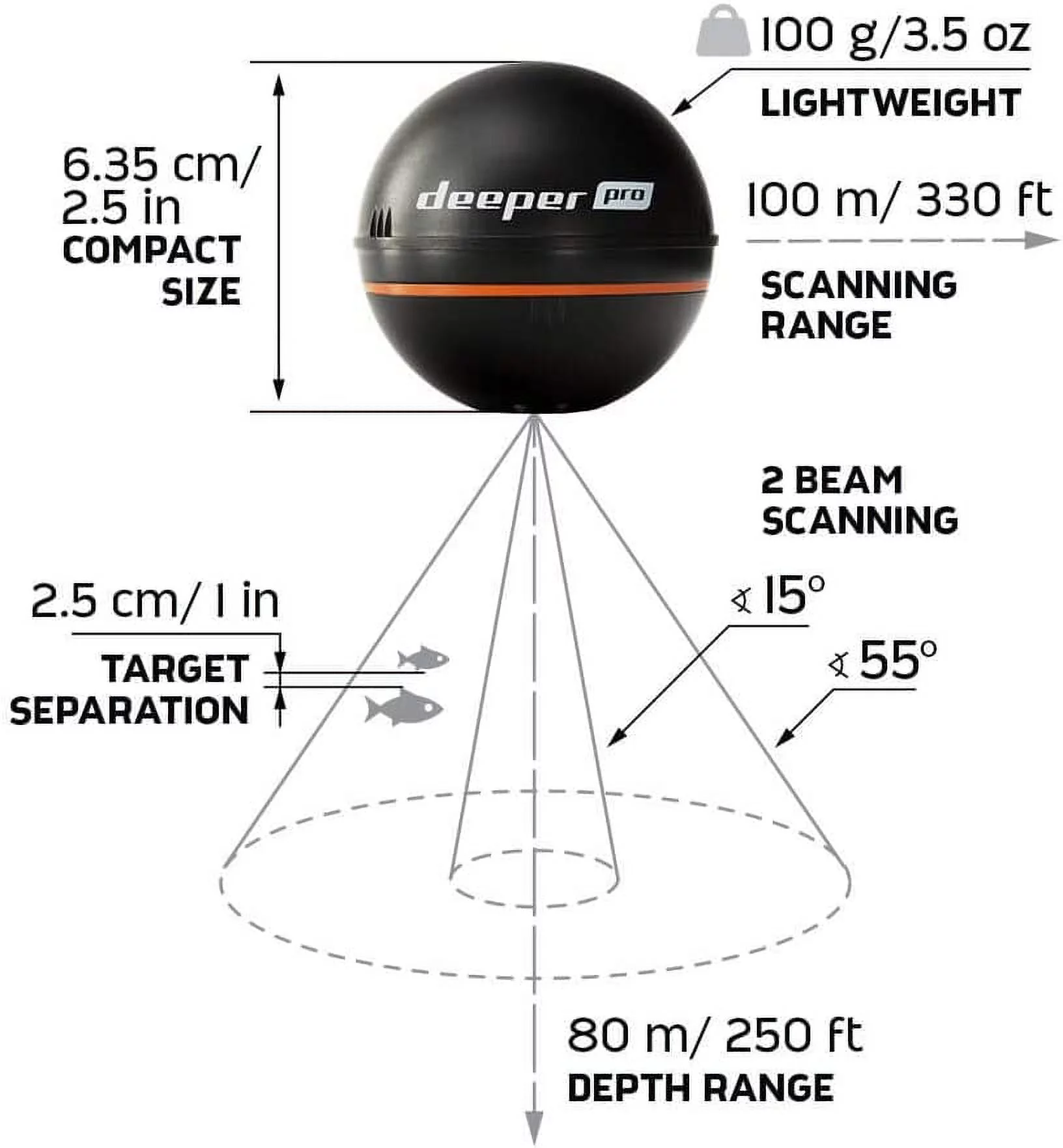 Deeper PRO Smart Sonar Castable and Portable Smart Sonar WiFi Fish Finder for Kayaks and Boats on Shore Ice Fishing Fish Finder